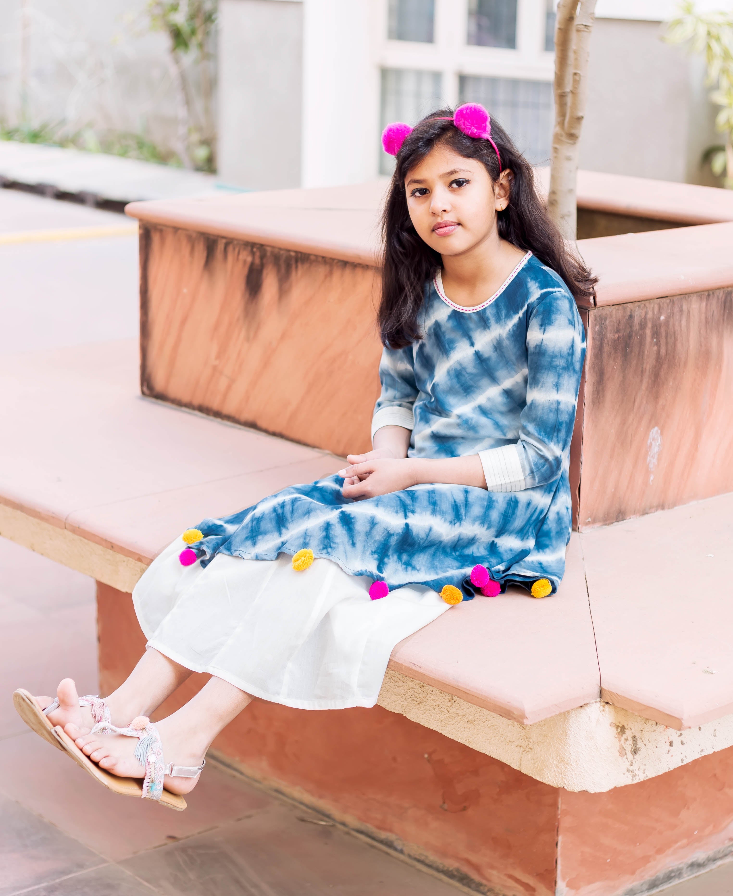 Cotton Tasseled Tie-Dye Asymmetrical Kurta Dress