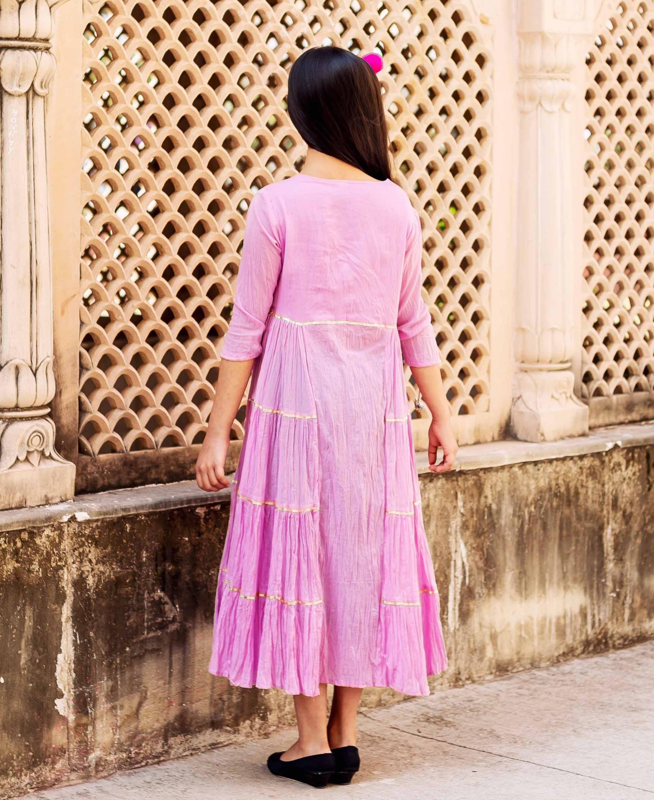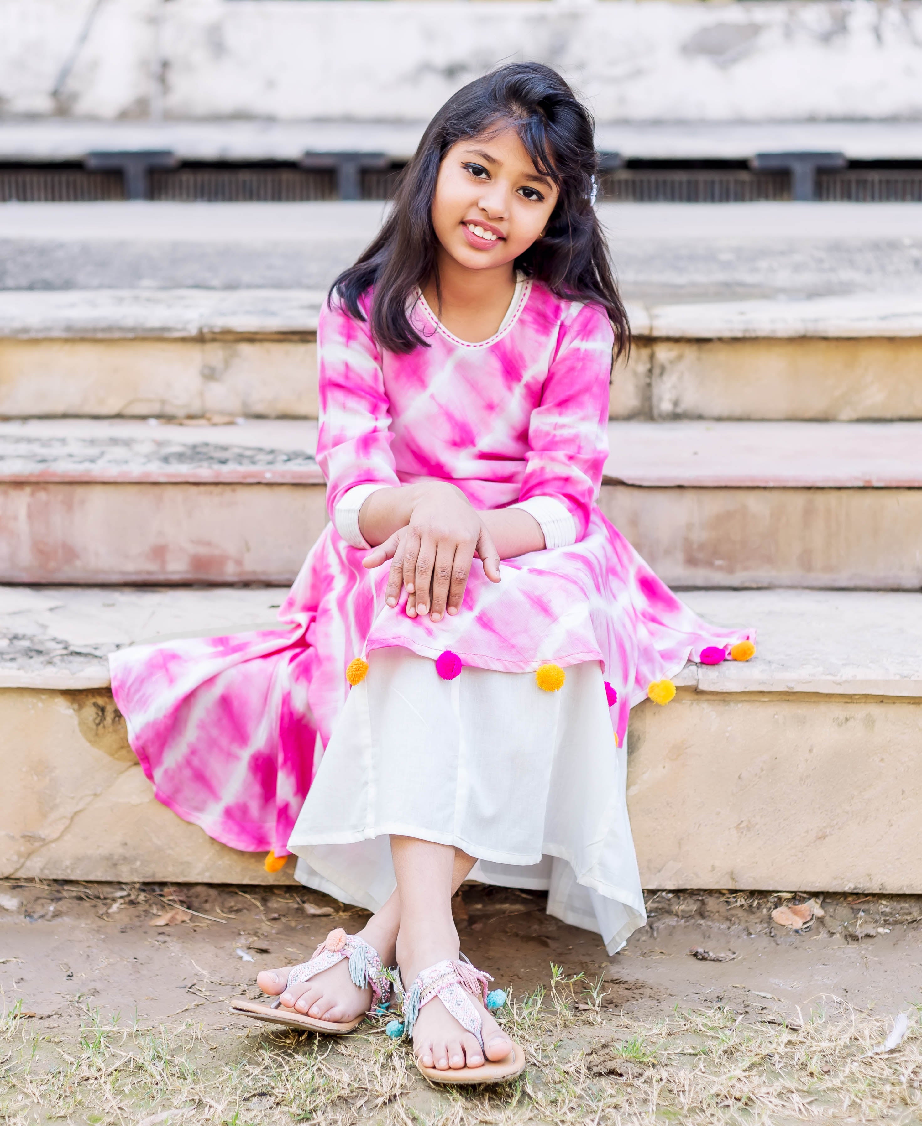 Cotton Tie Dye Asymmetrical Kurta Dress In Pink And White