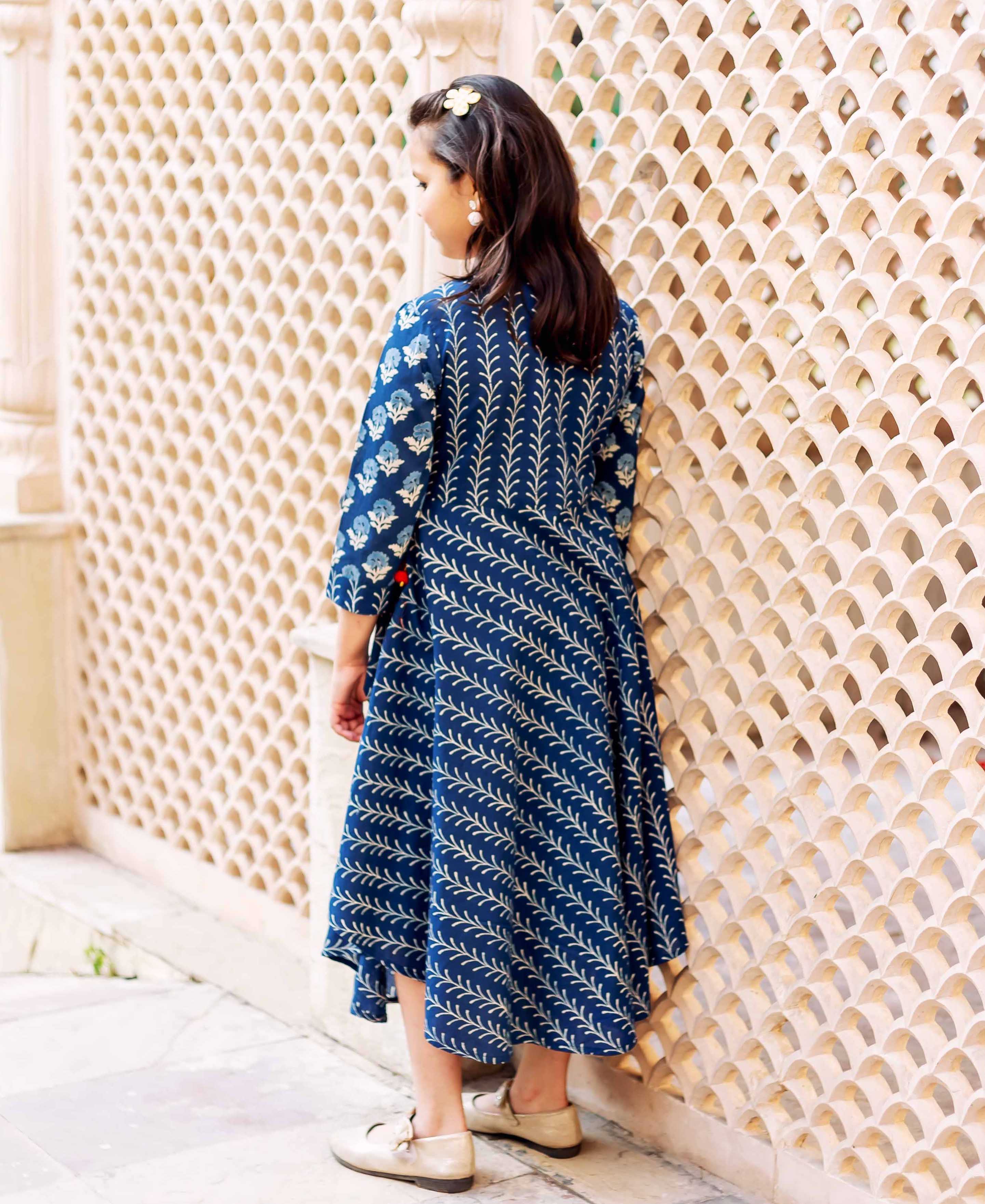 Blue Tasseled Cotton Asymmetrical Angrakha Dress