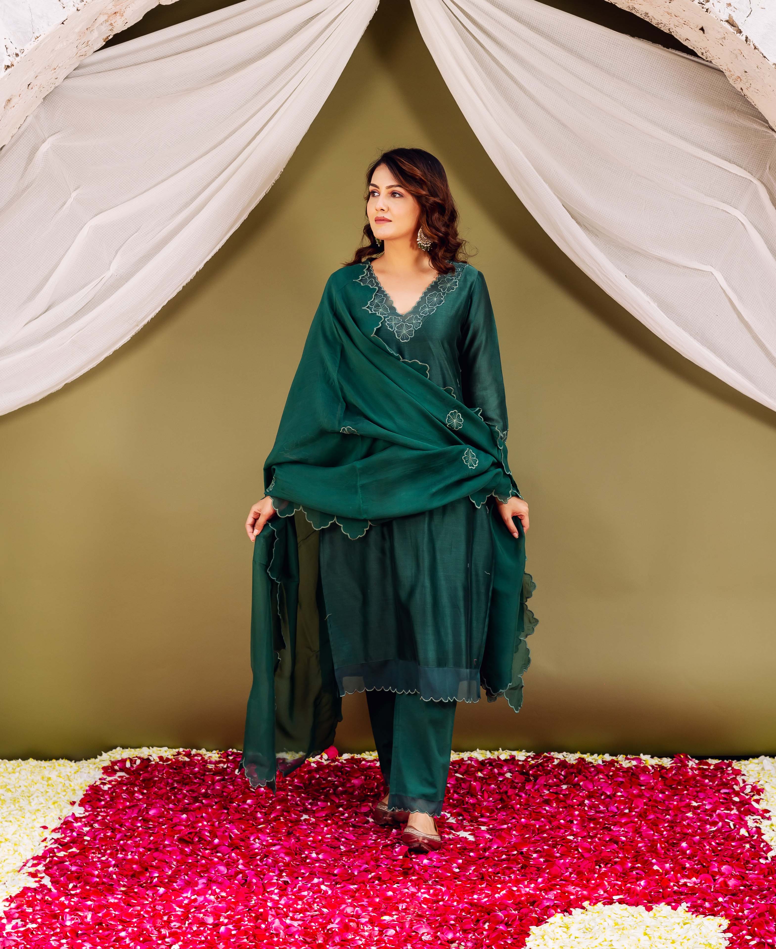 Bottle Green Organza Dupatta