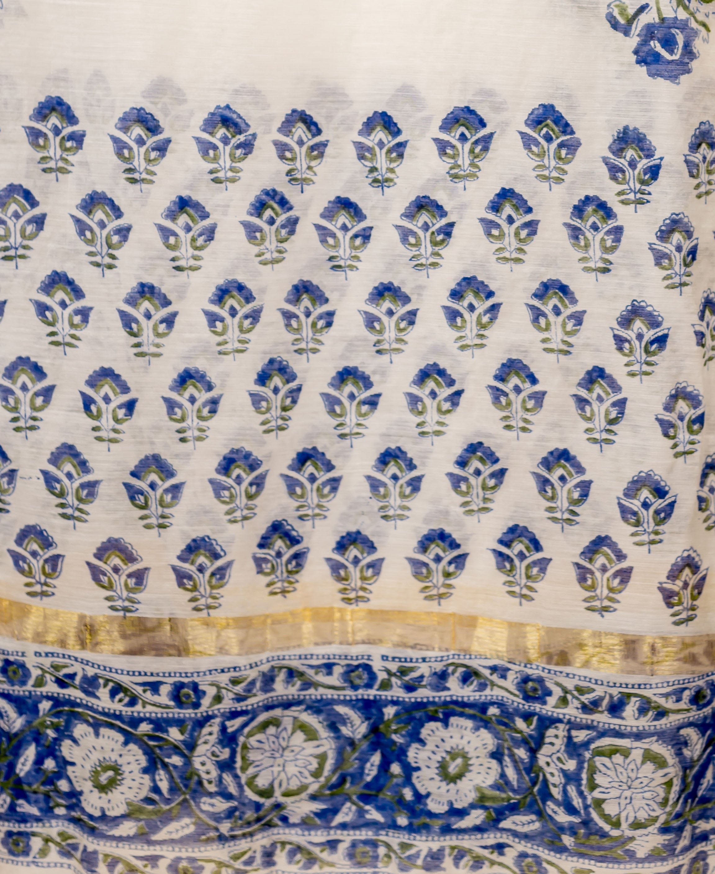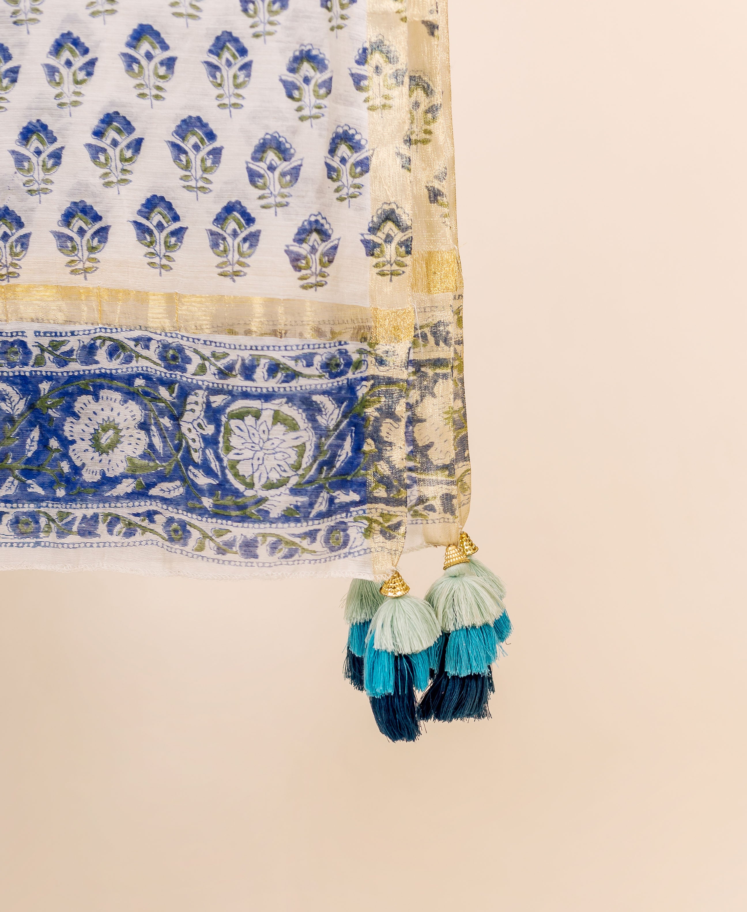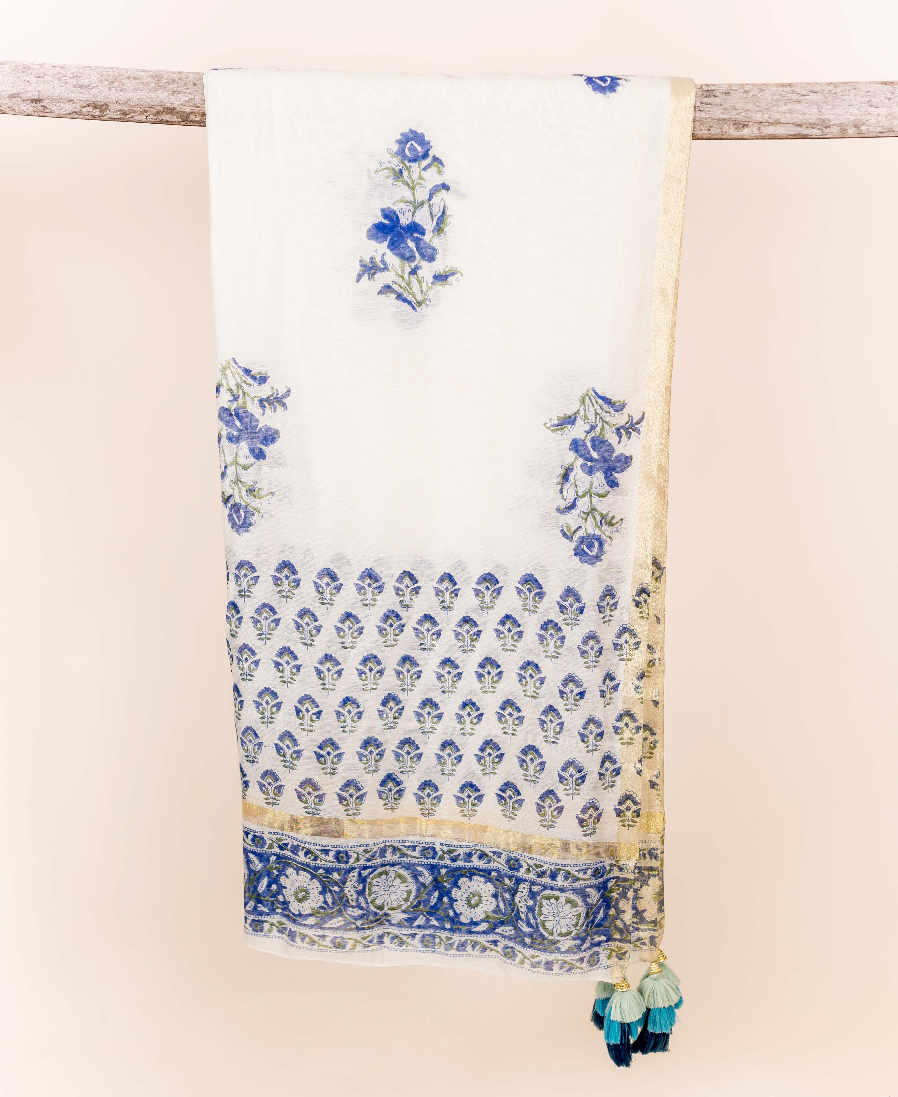 Blue and White Block Printed Chanderi Dupatta