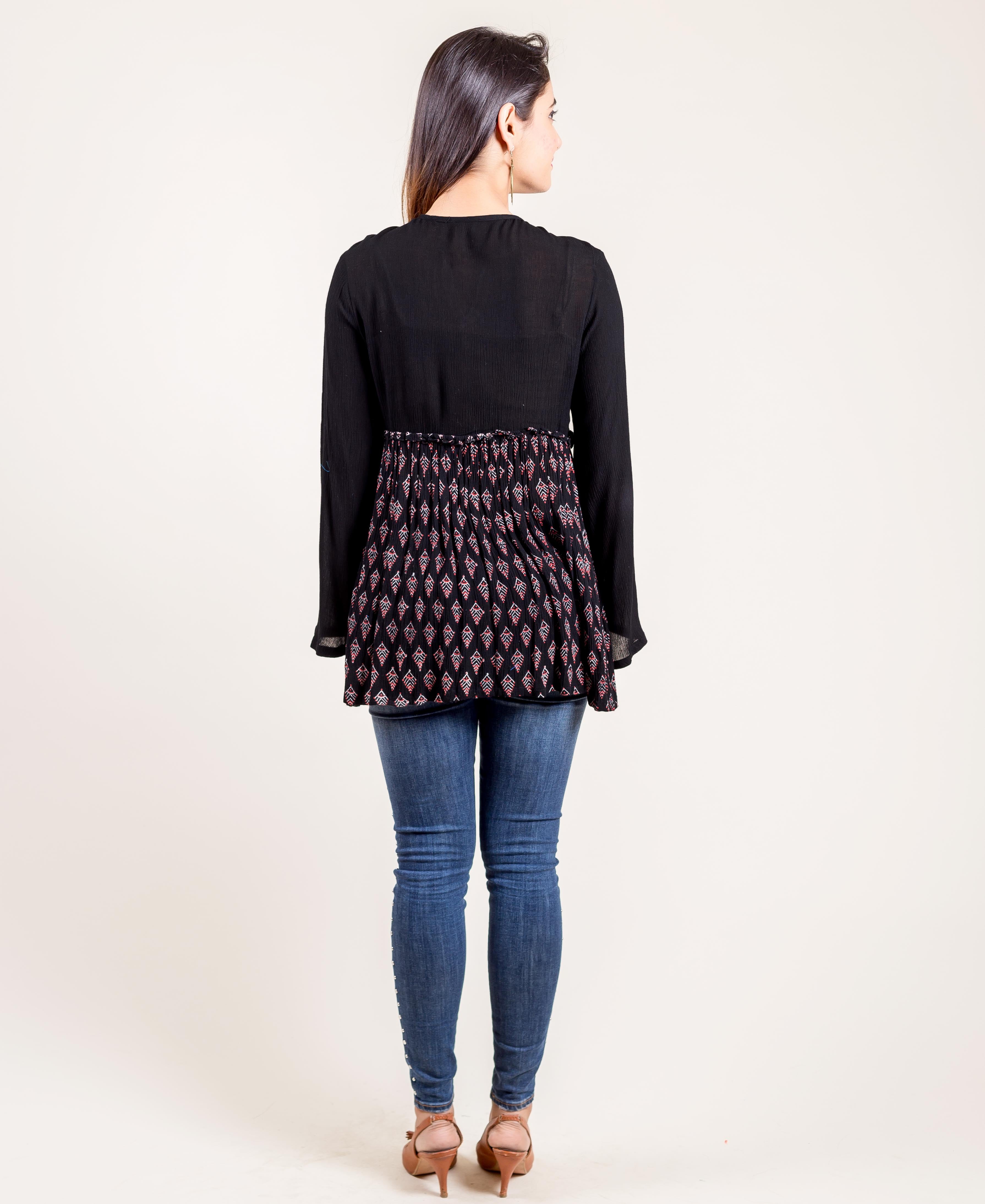 Black Printed Cotton Top