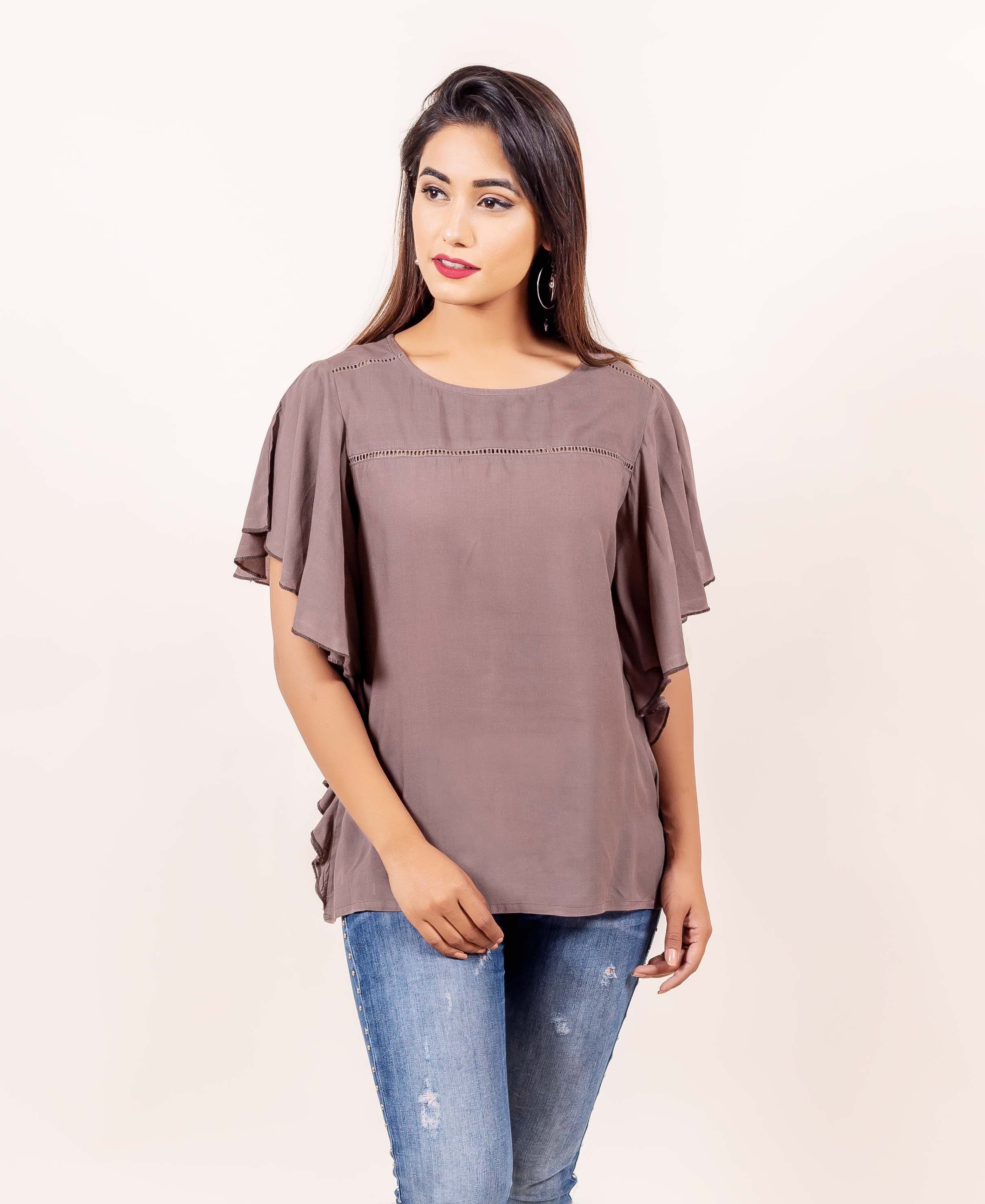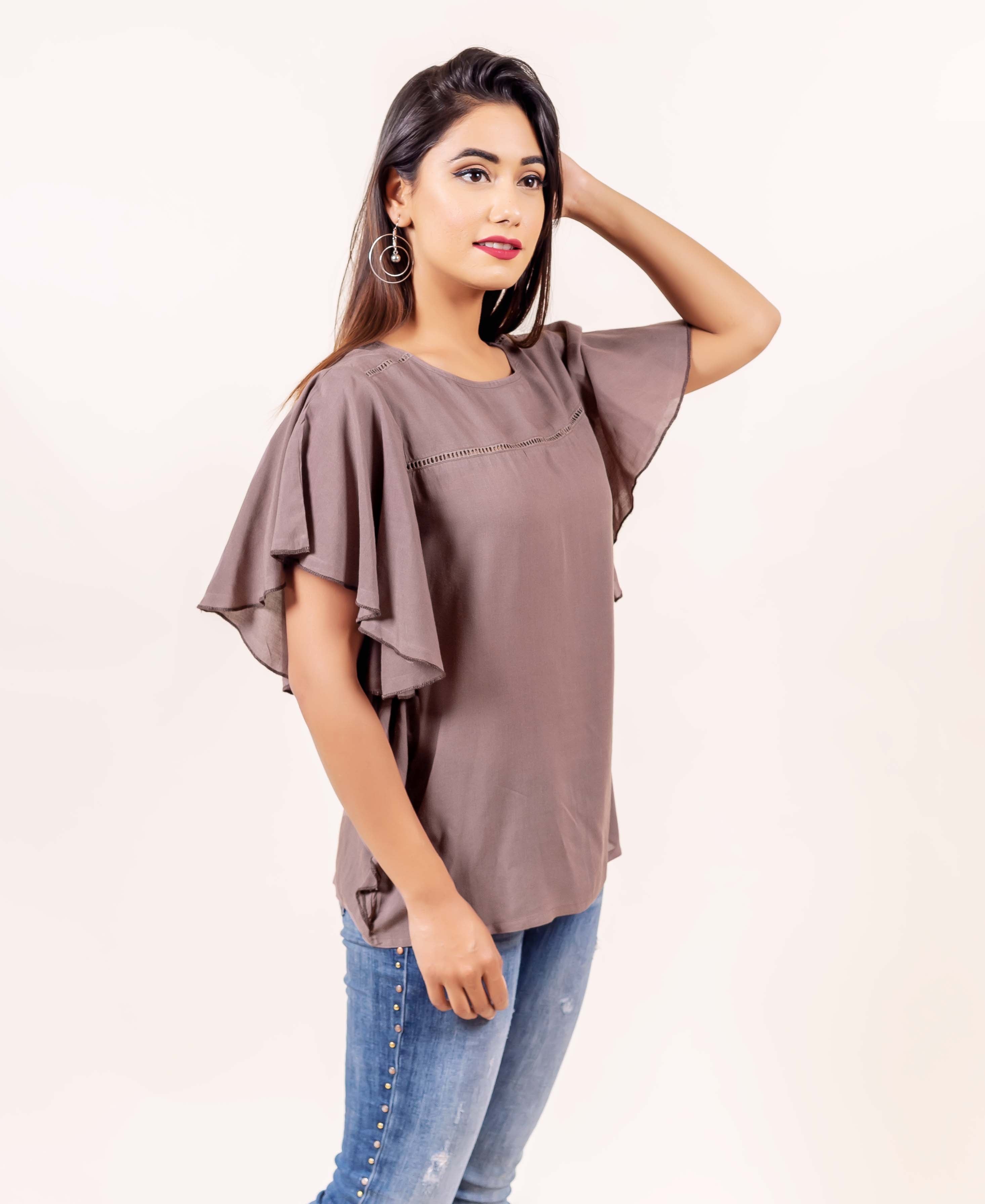Brown Bell Sleeves Top