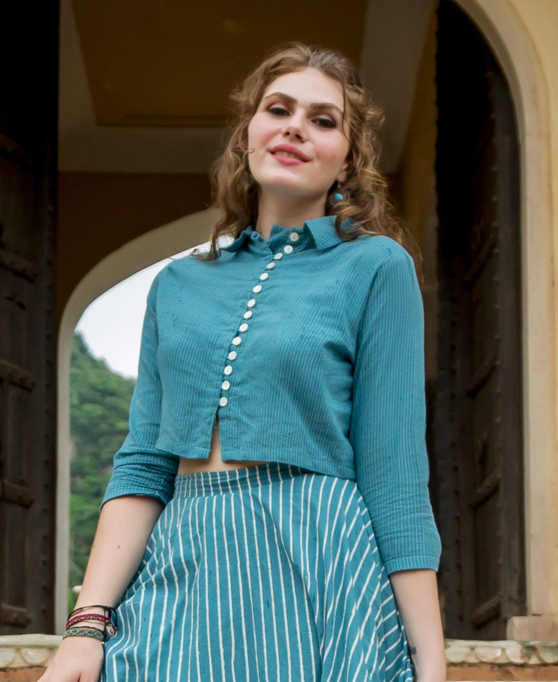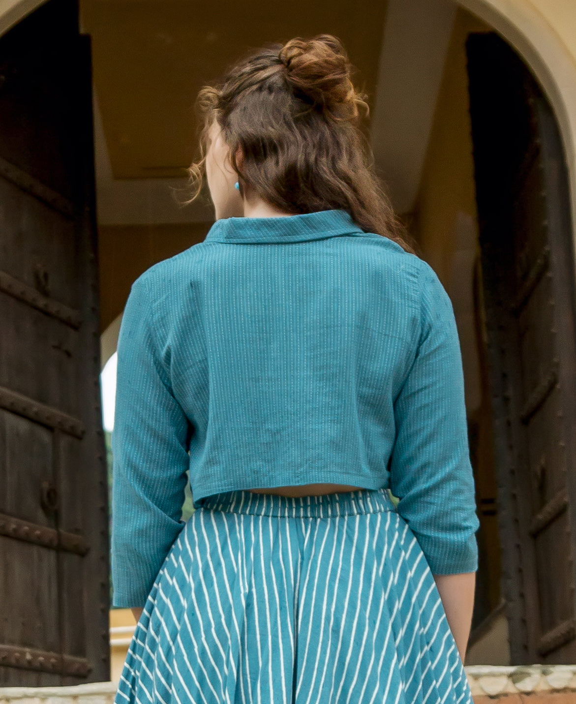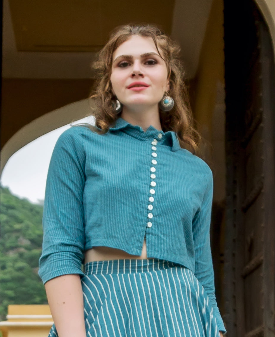 Blue Yarn Dyed Crop Top