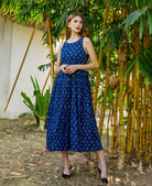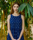 Indigo Hand Block Printed Sleeveless Tiered Dress
