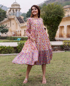 White and Grey Hand Block Printed Tiered Dress