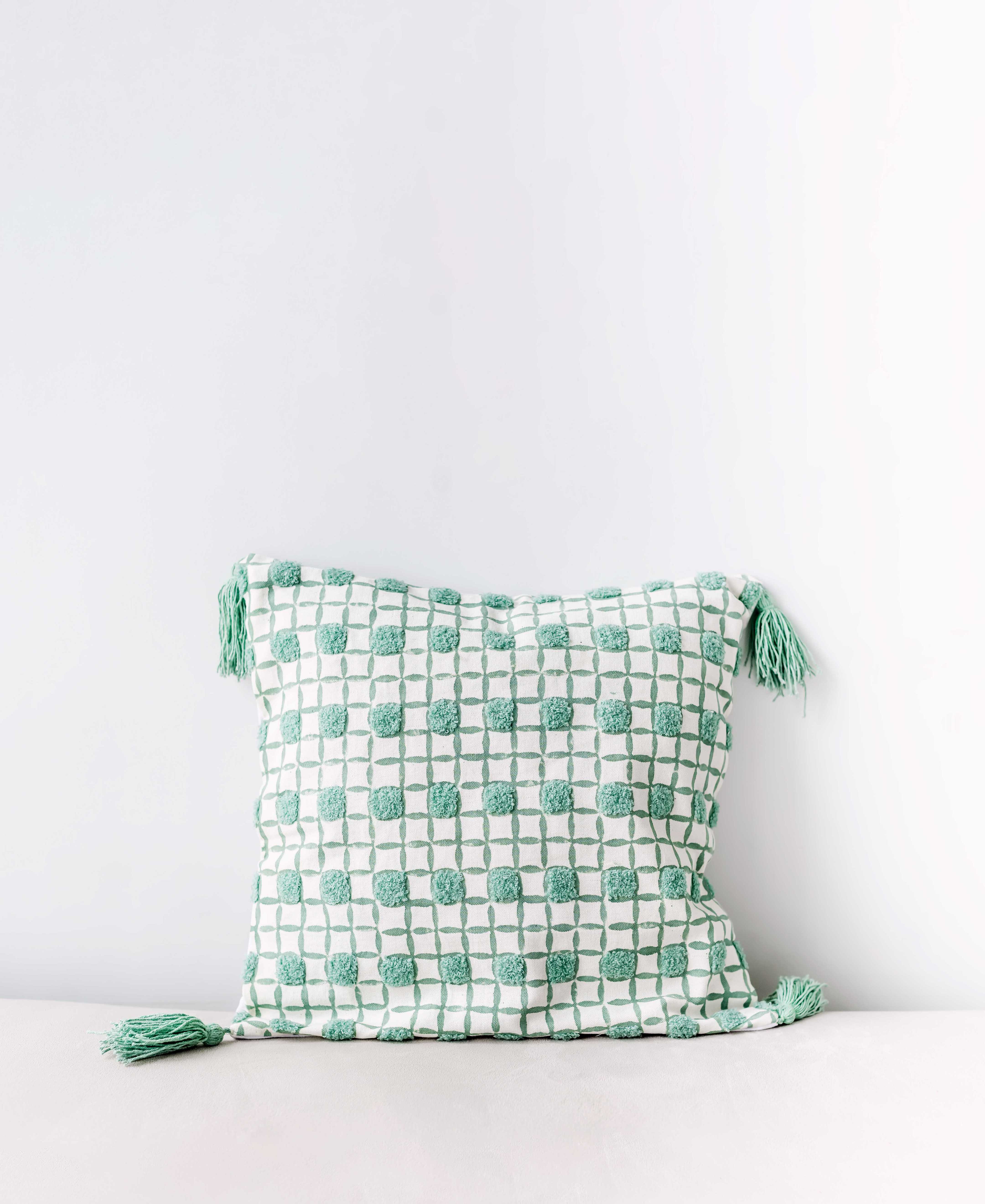 Meadow Grid Hand Block Printed & Embroidered Cotton Cushion Cover