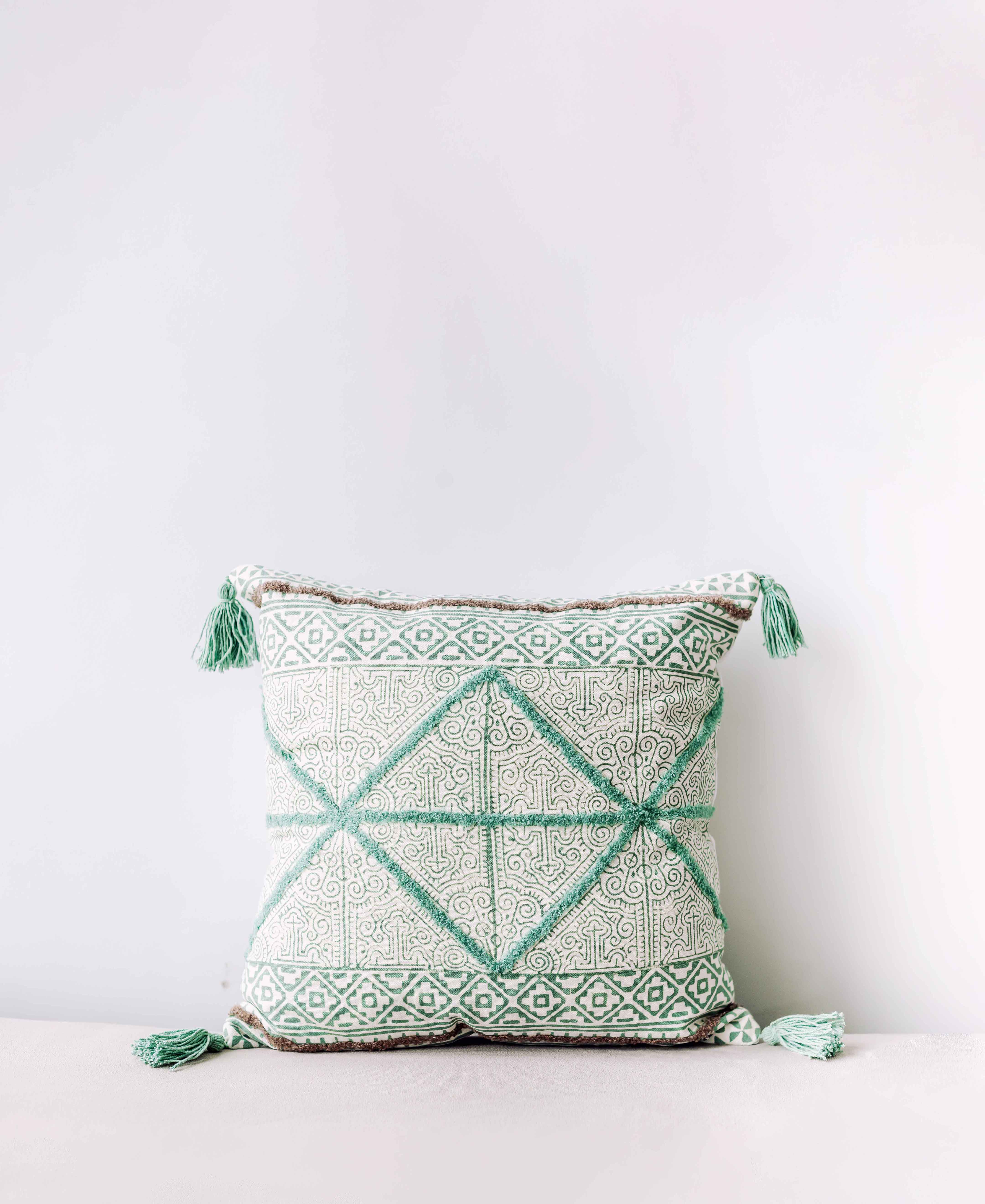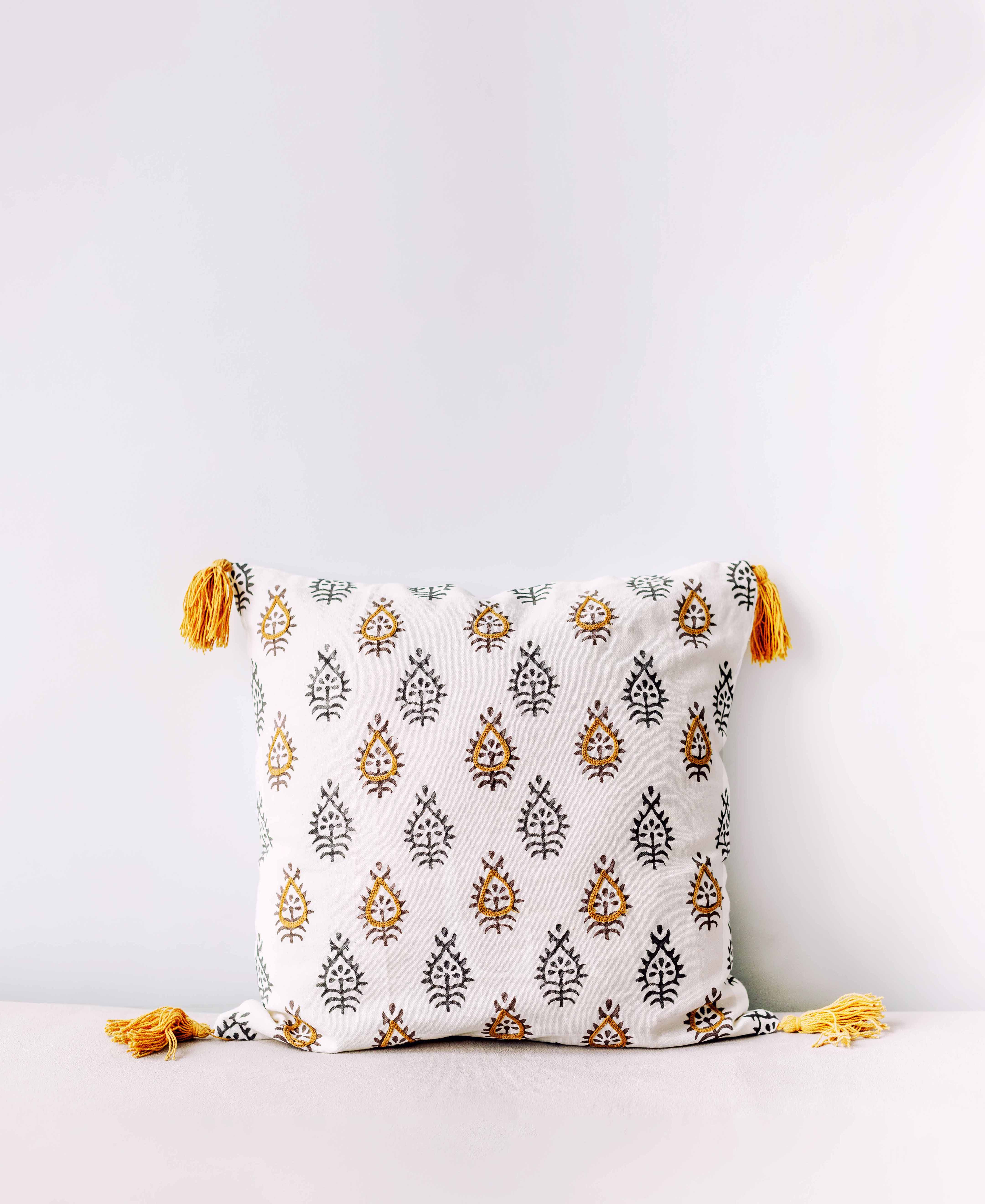 Verdant Charm Hand Block Printed Cotton Cushion Cover