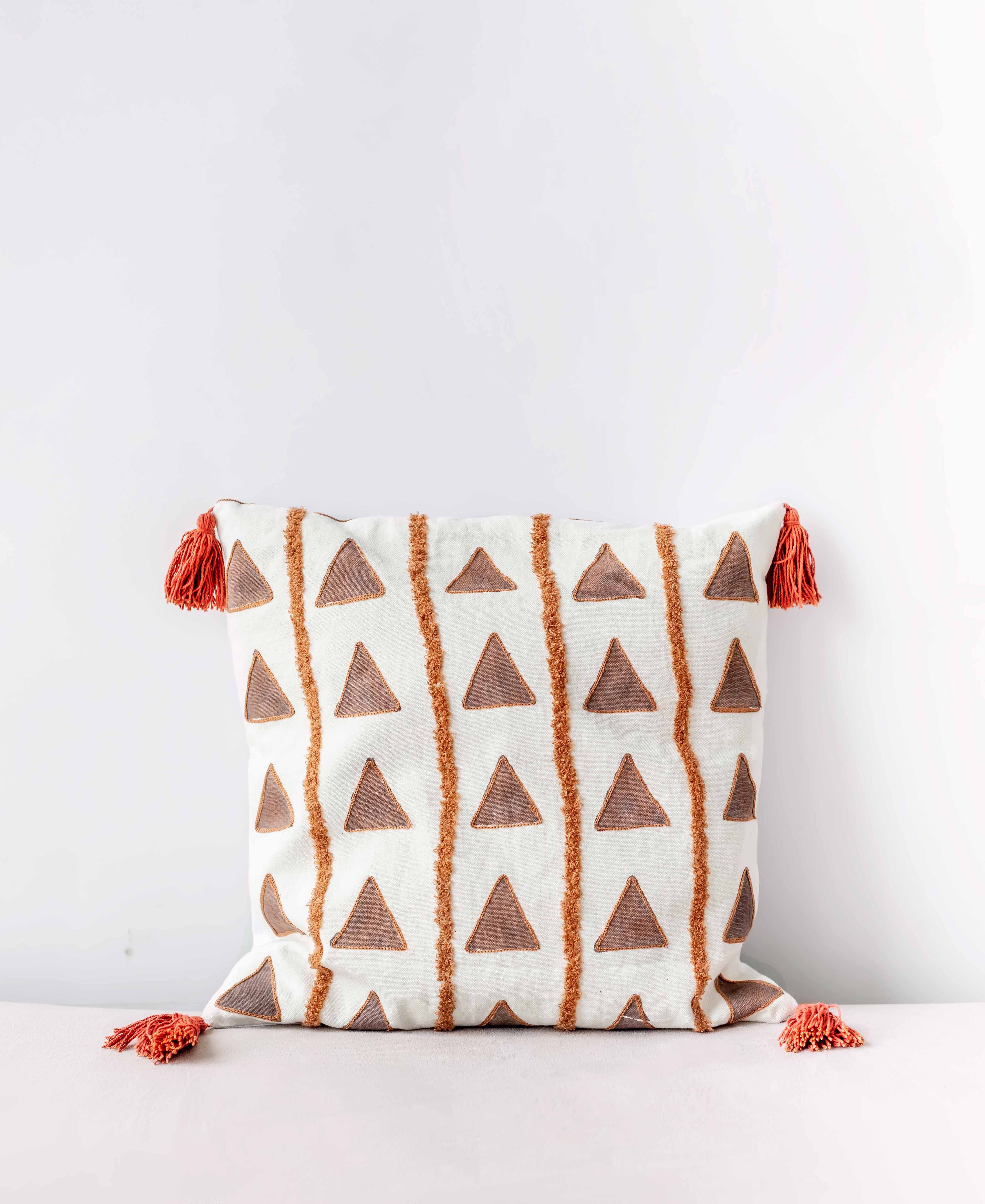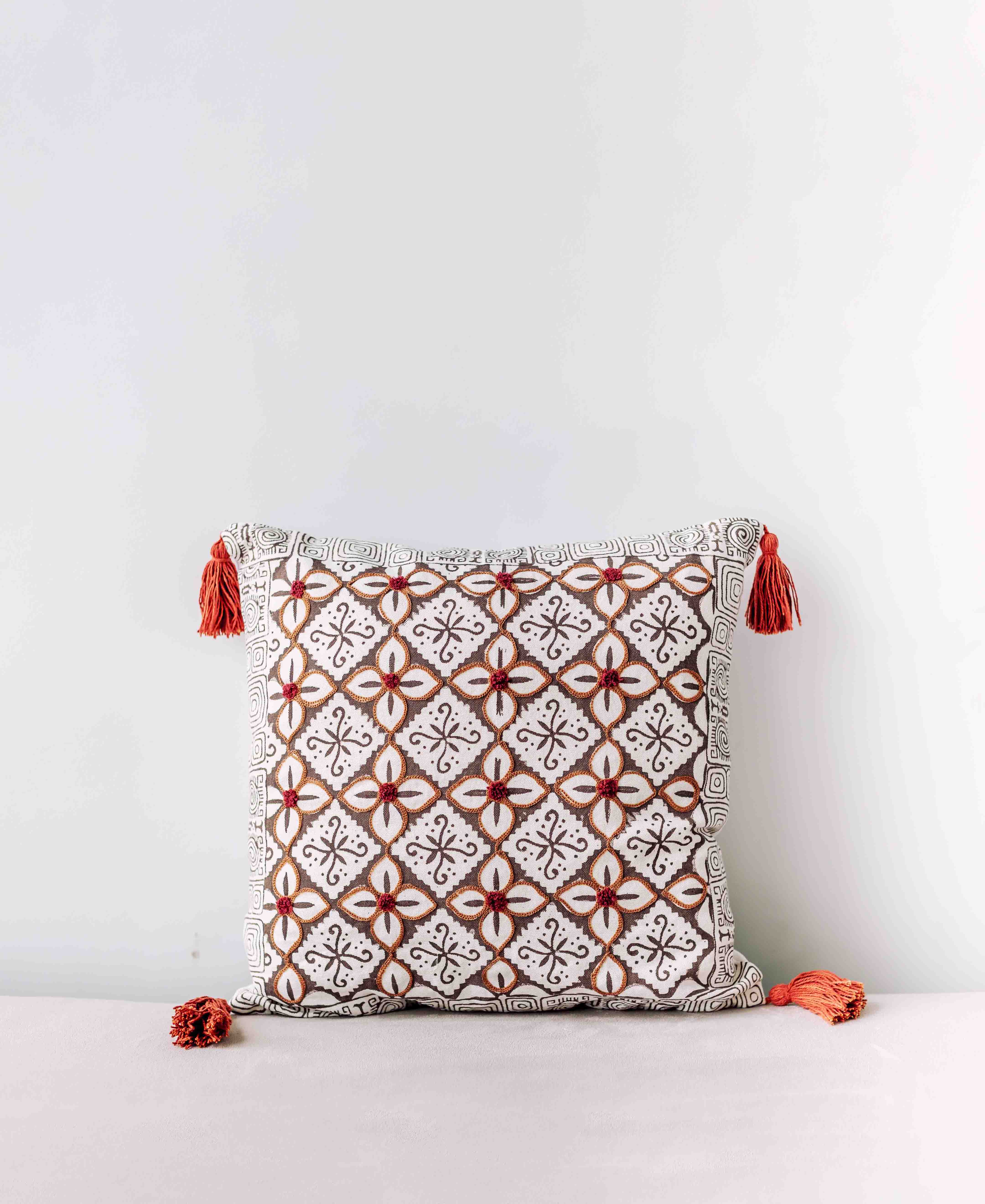 Terra Triad Hand Block Printed & Embroidered Cotton Cushion Cover