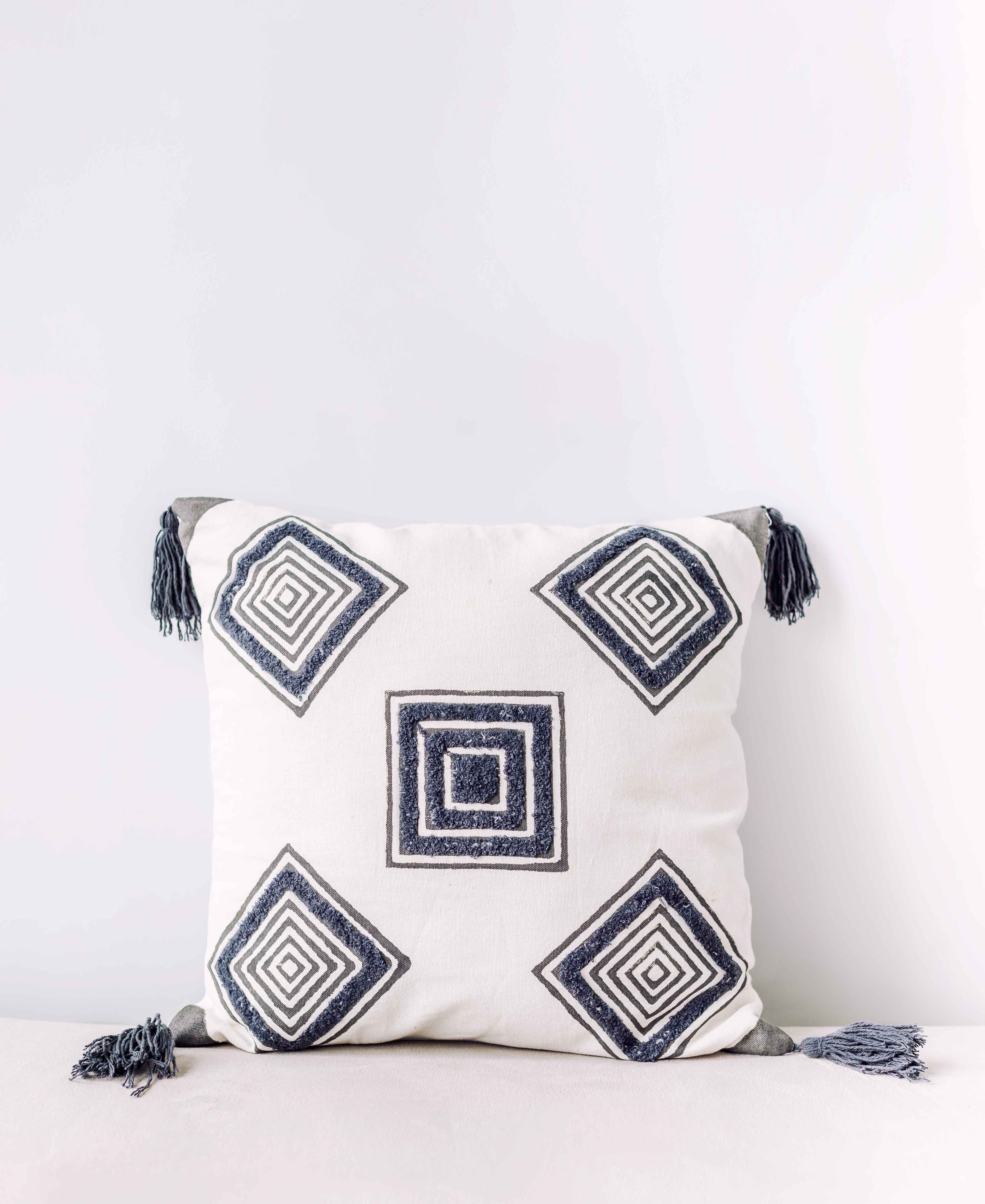 Slate Frame Hand Block Printed & Embroidered Cotton Cushion Cover