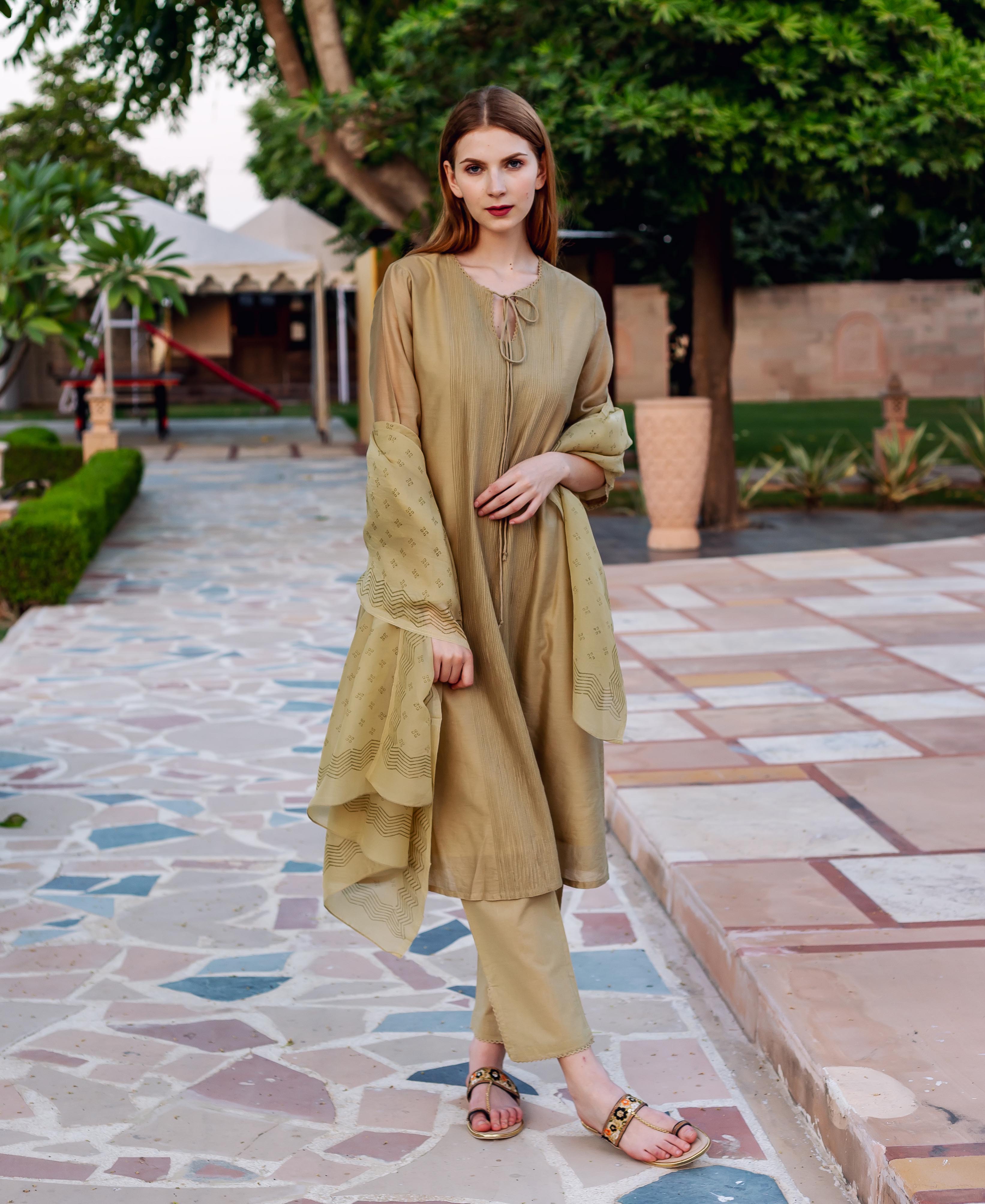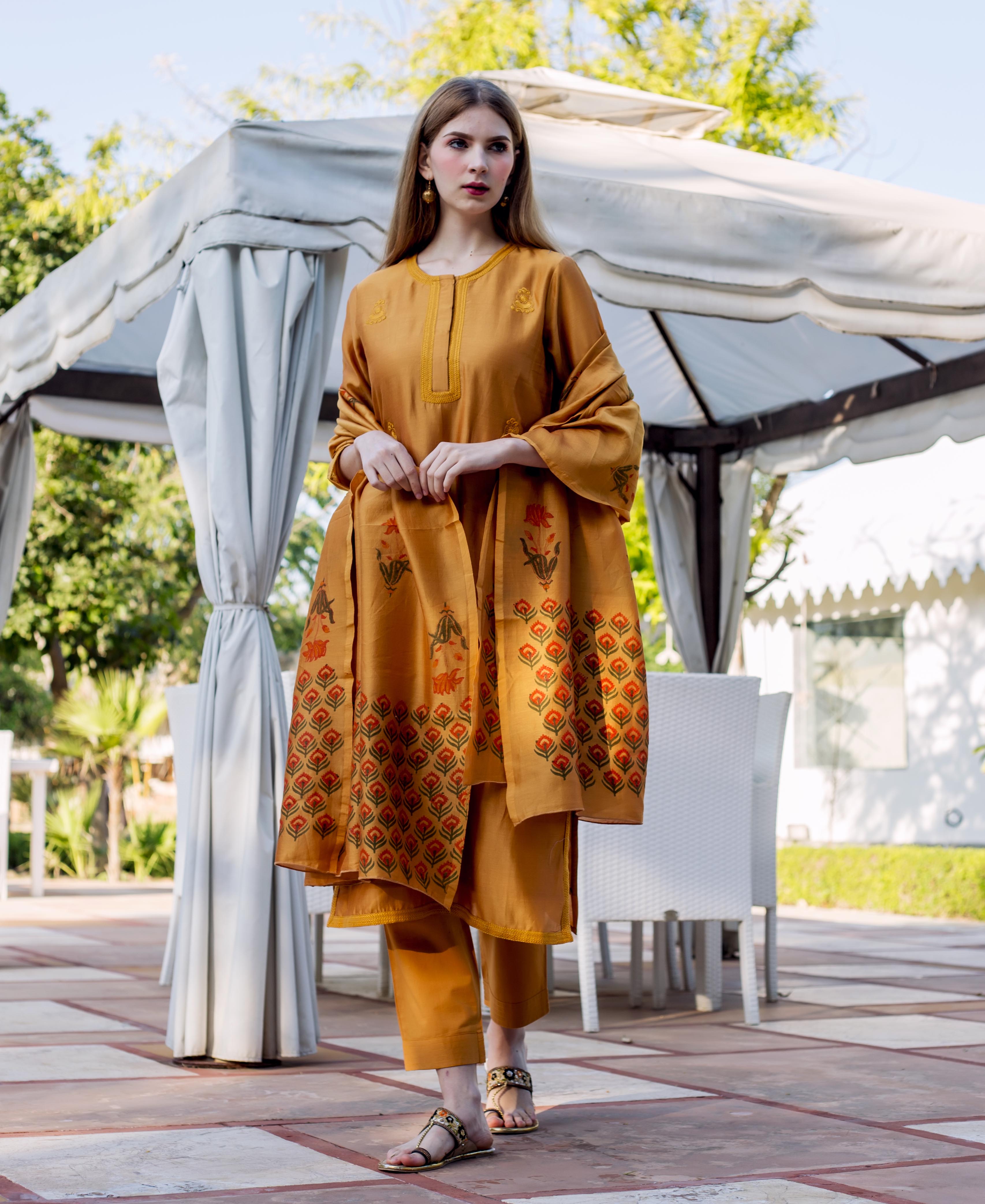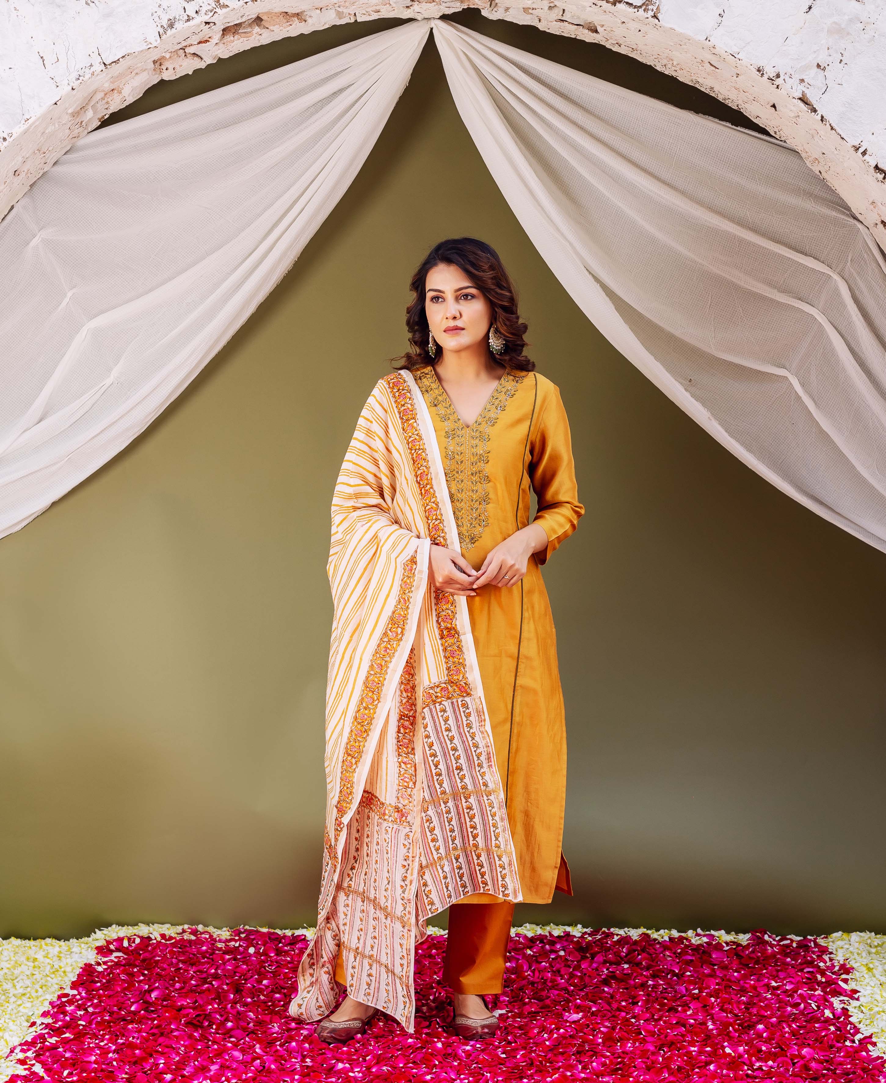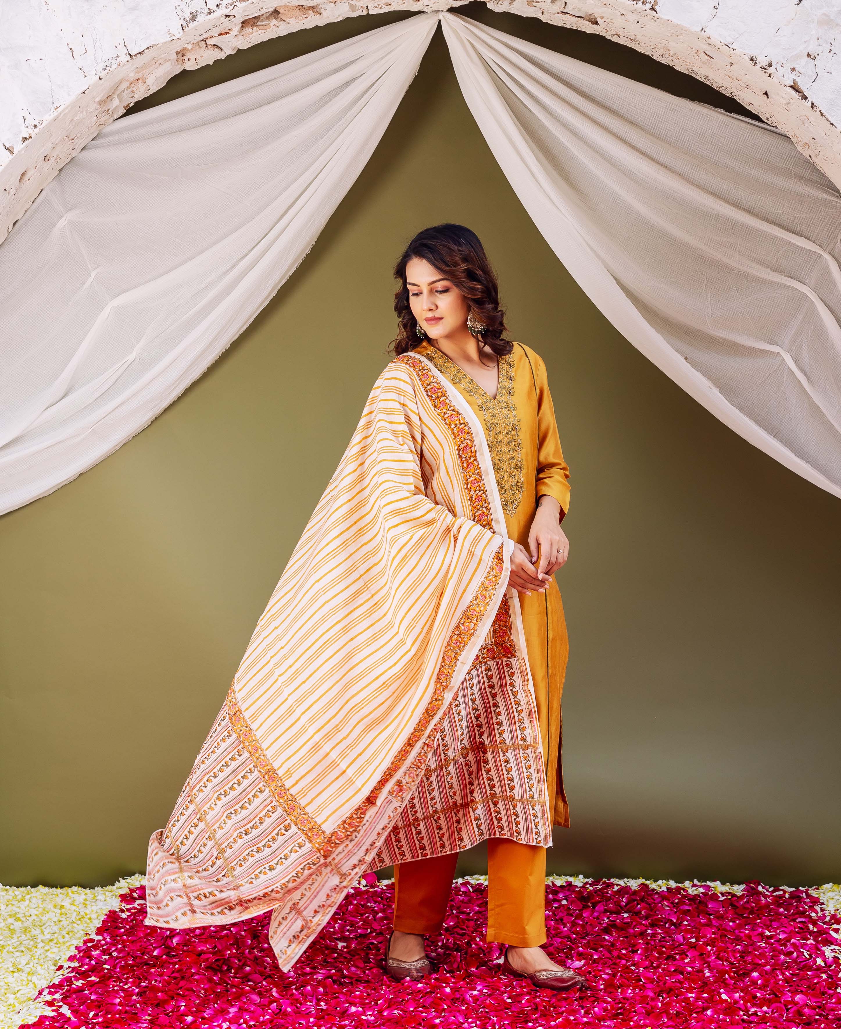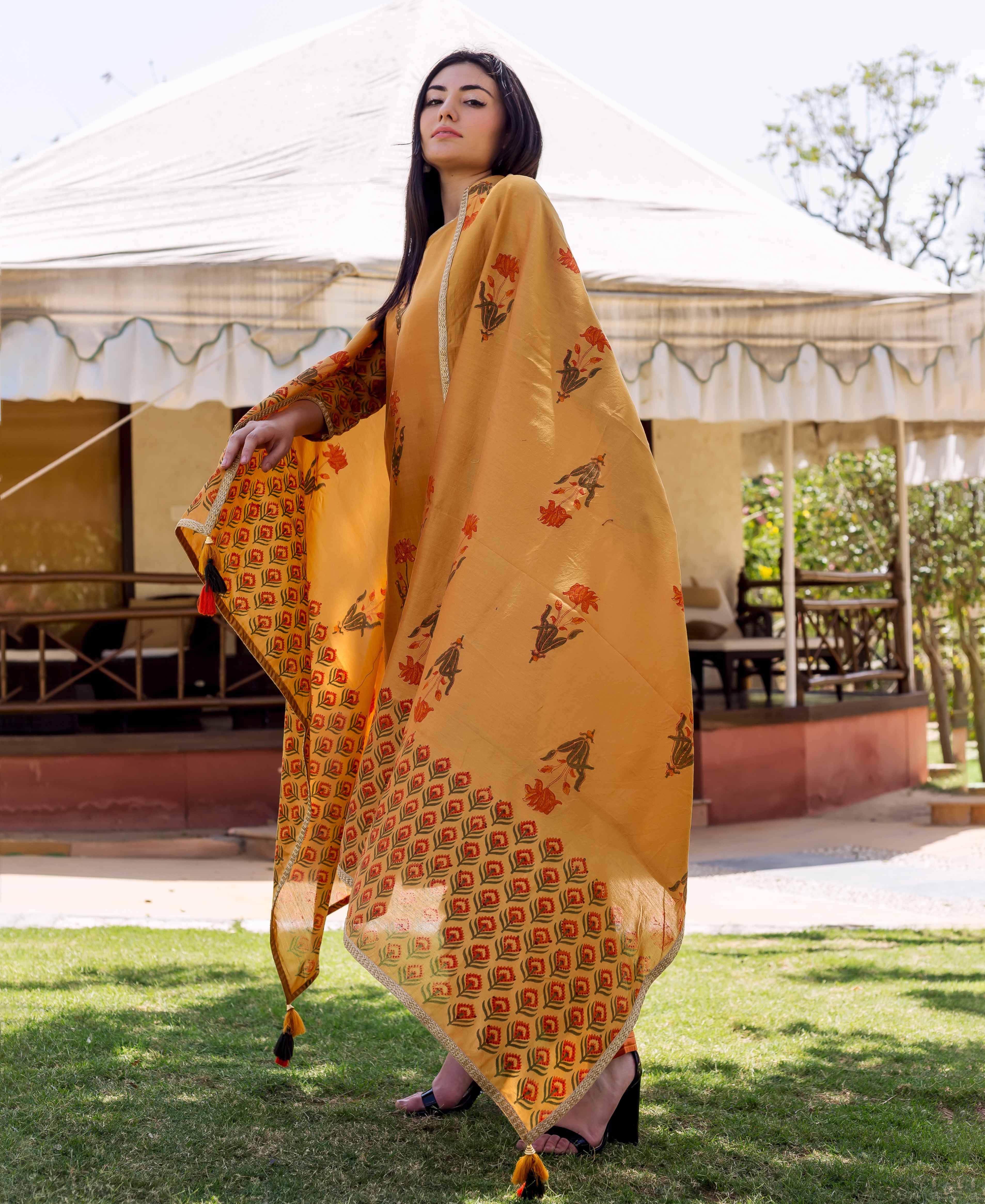 Royal Elegance Mustard Silk Chanderi Dupatta