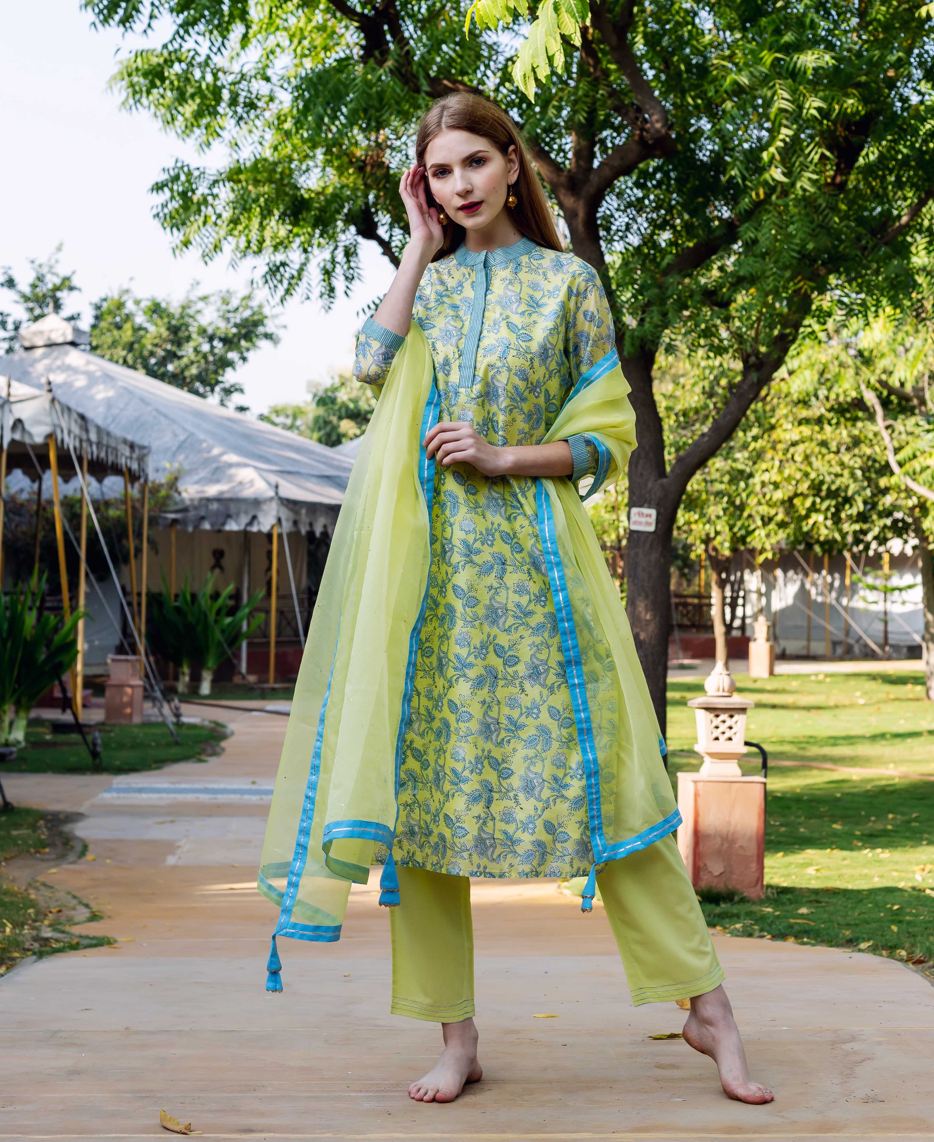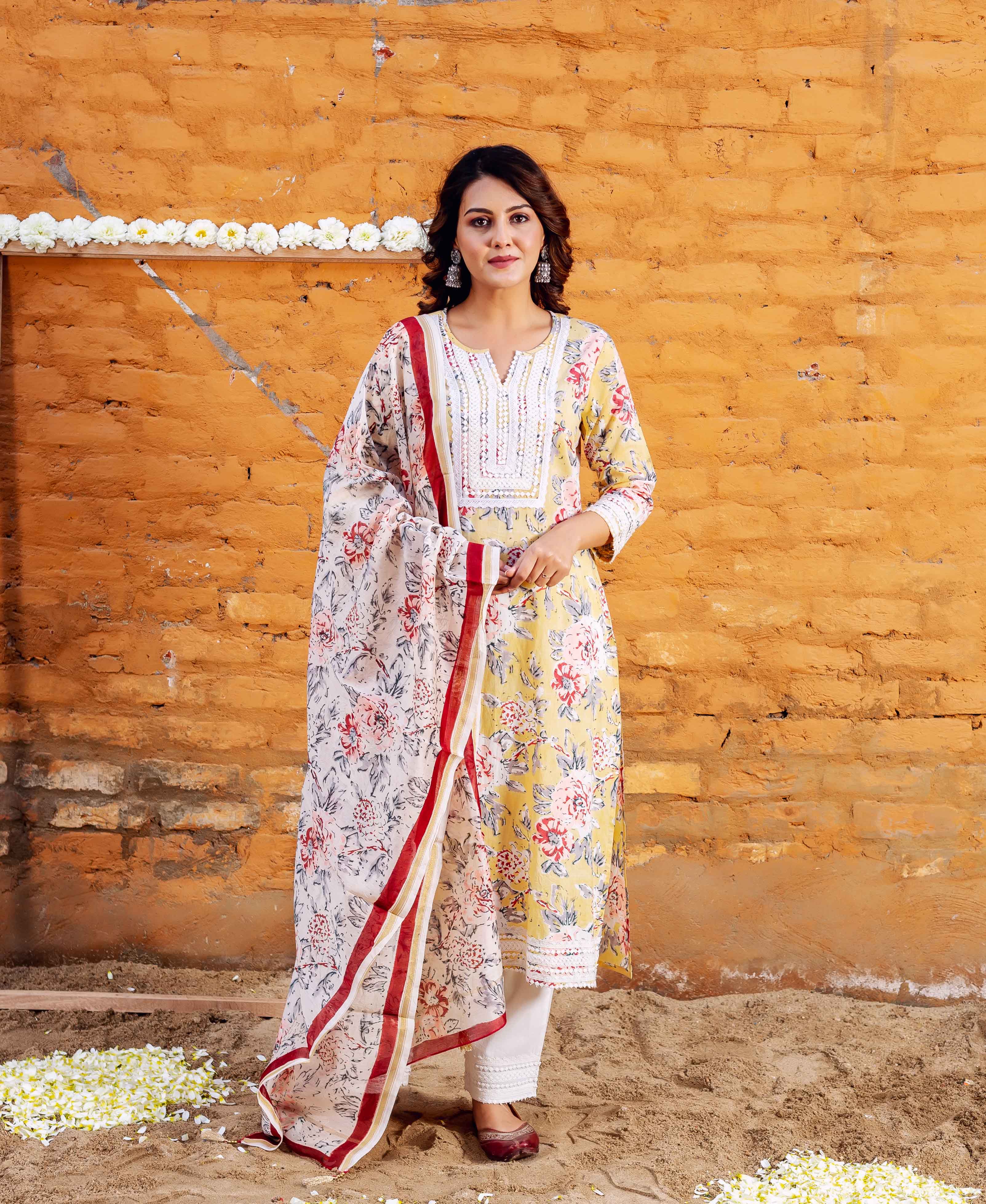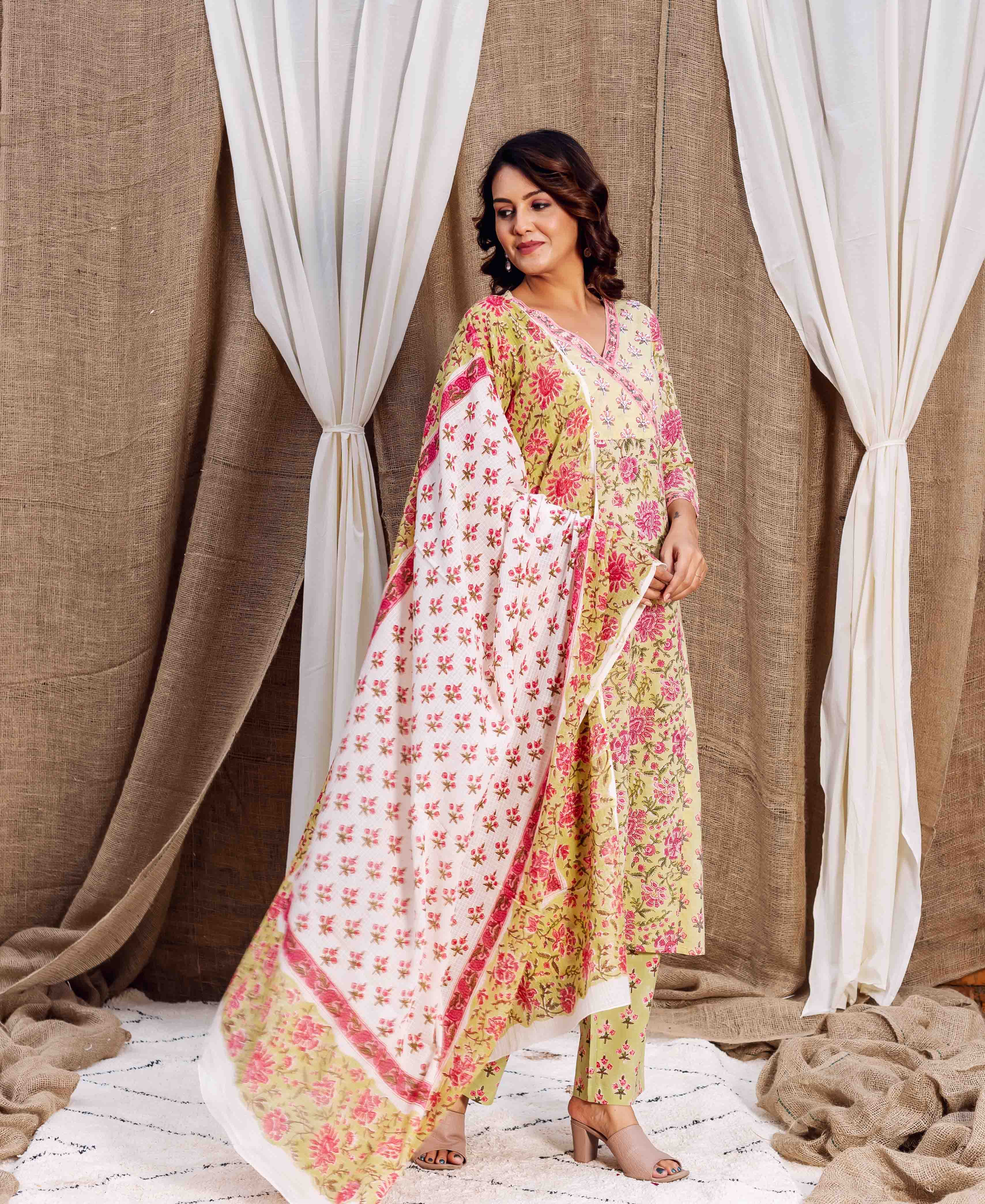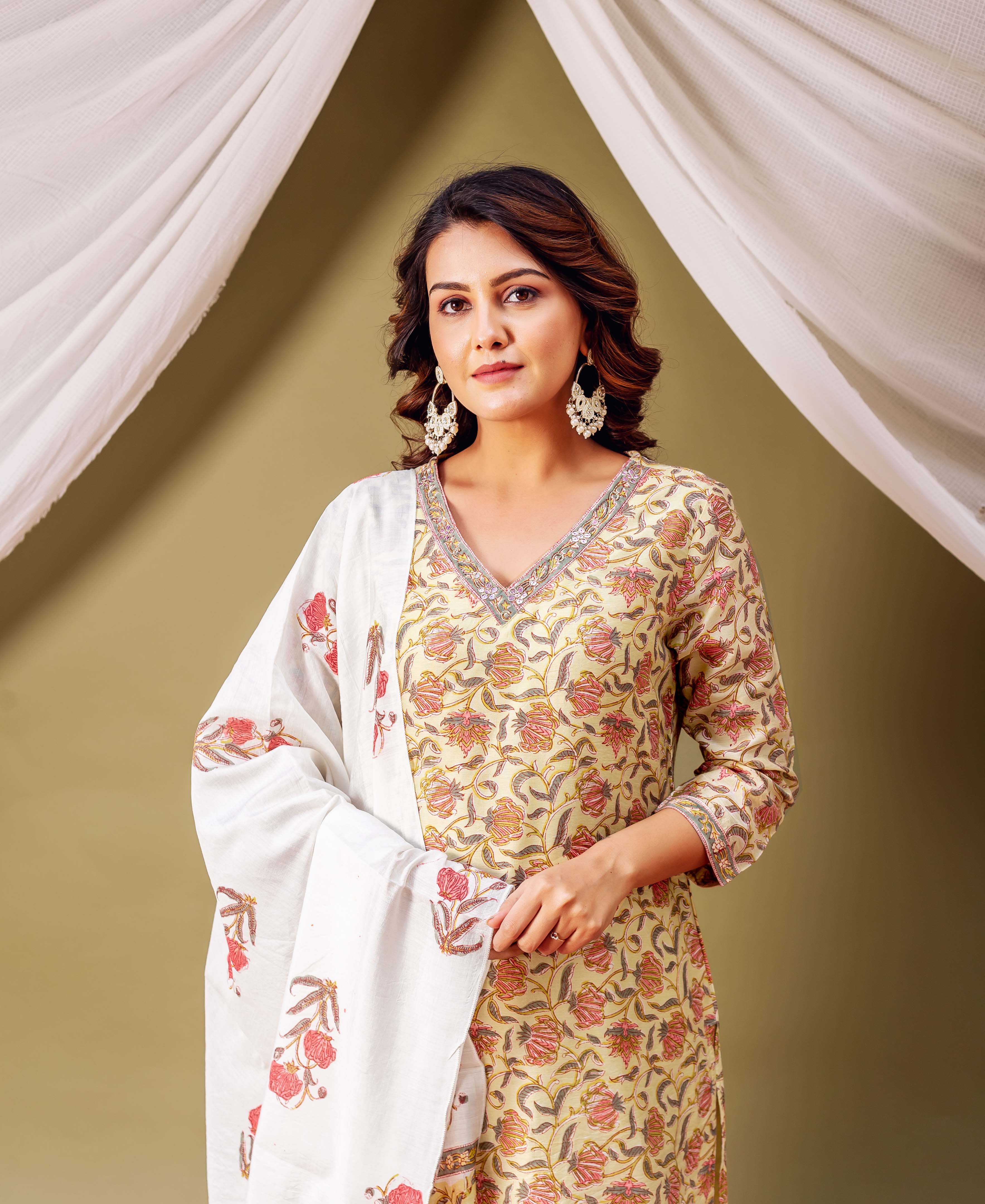 Sunflower Yellow Chanderi Hand Block Printed Dupatta