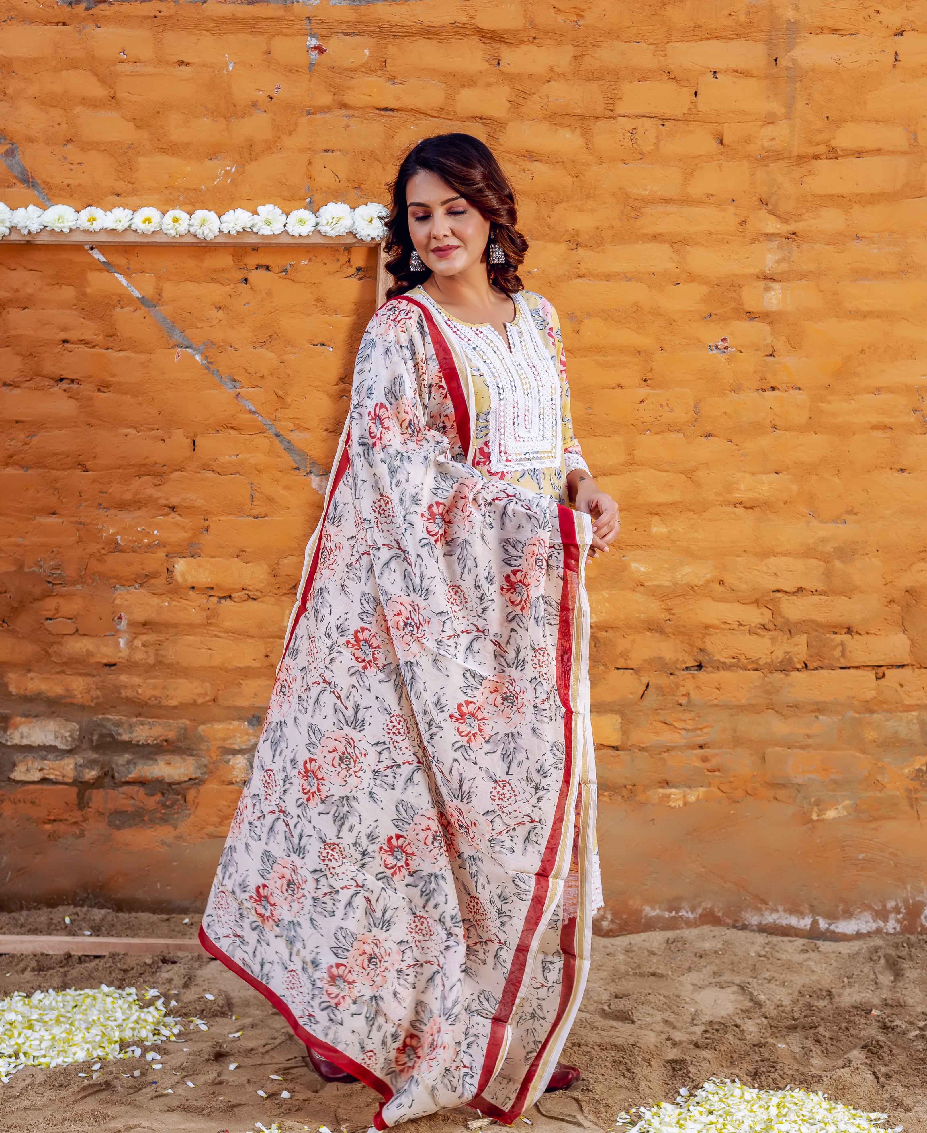 Multi Printed Kota Doriya Hand Block Printed Dupatta