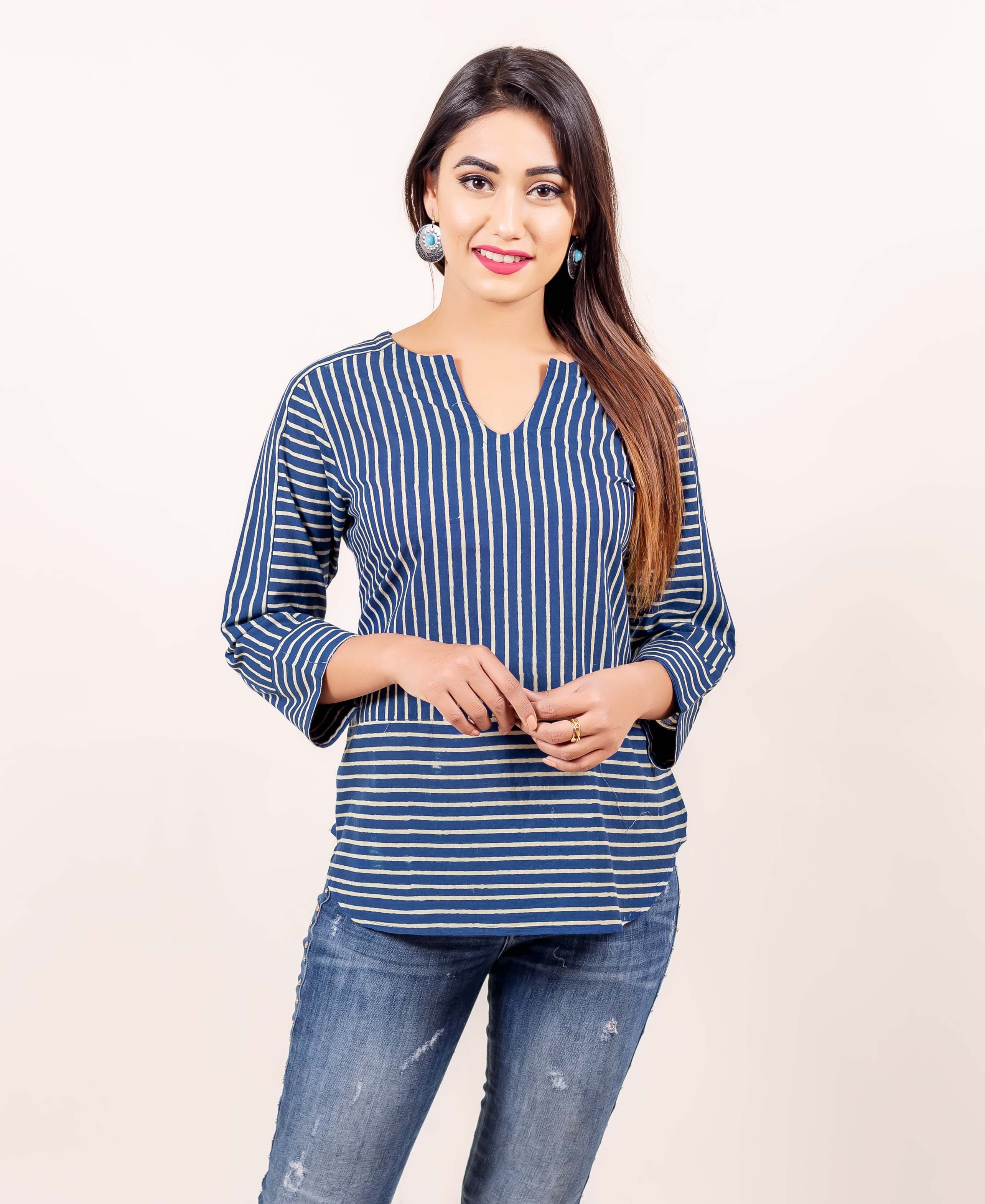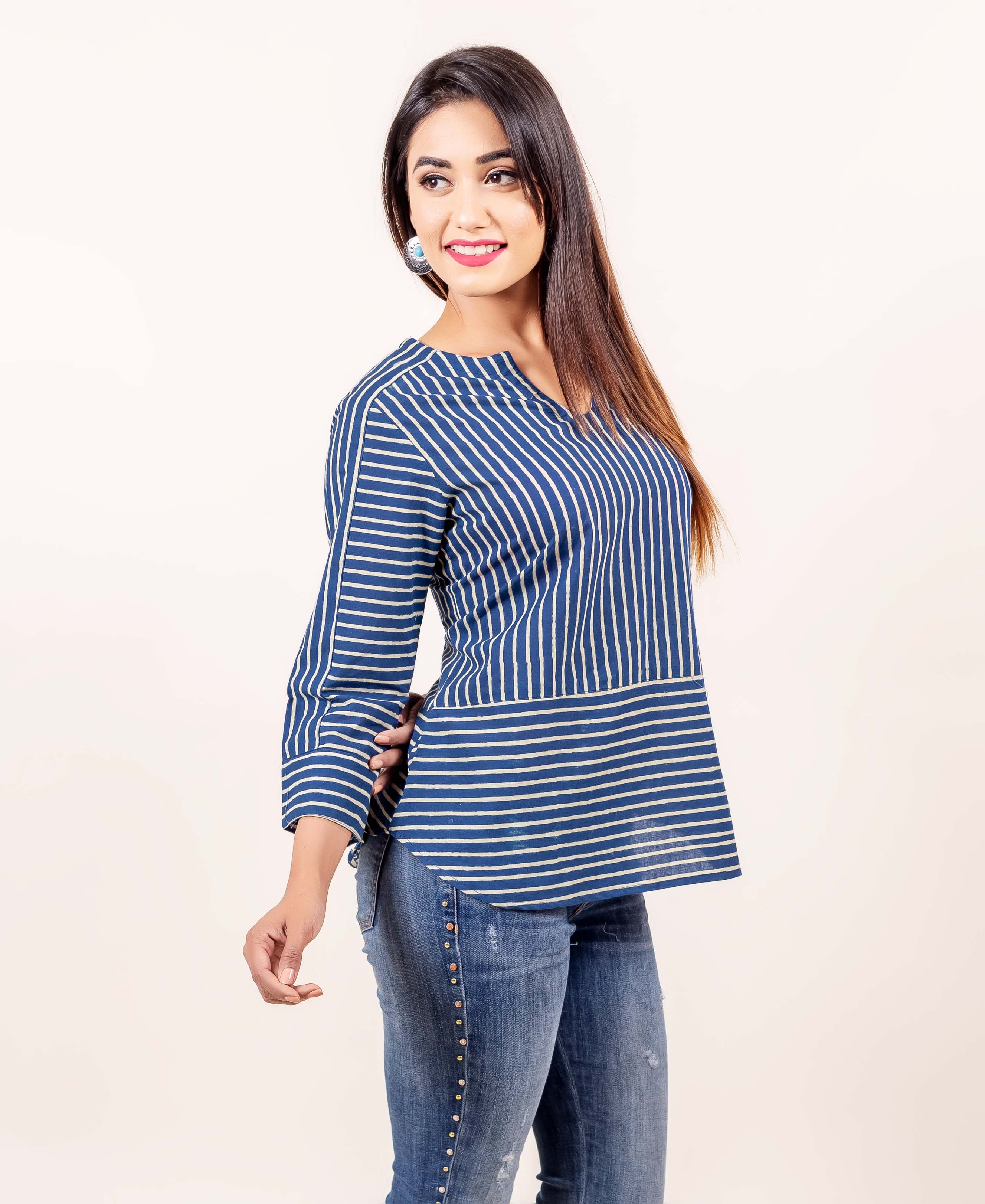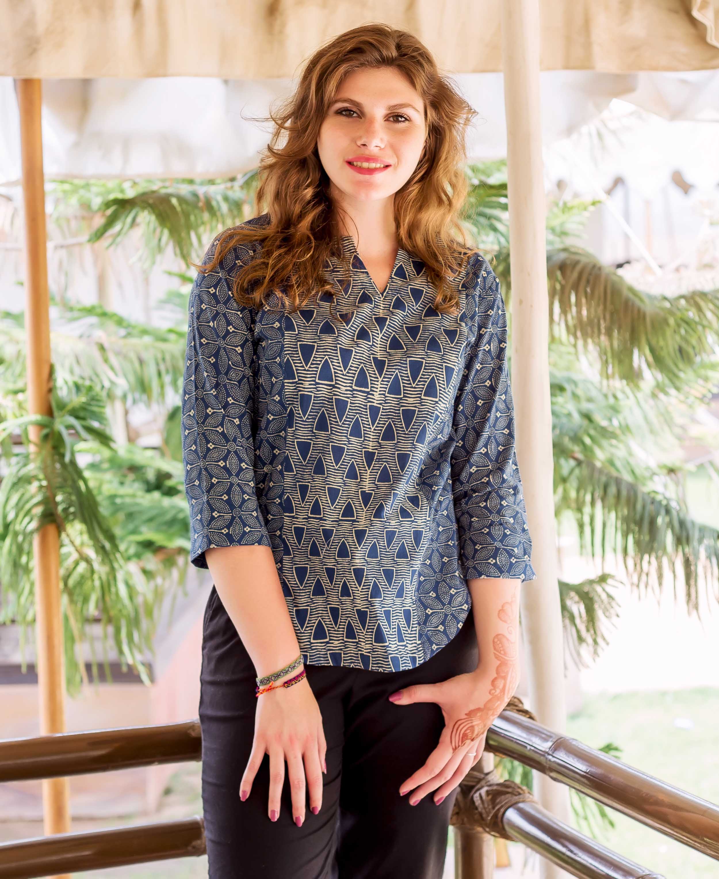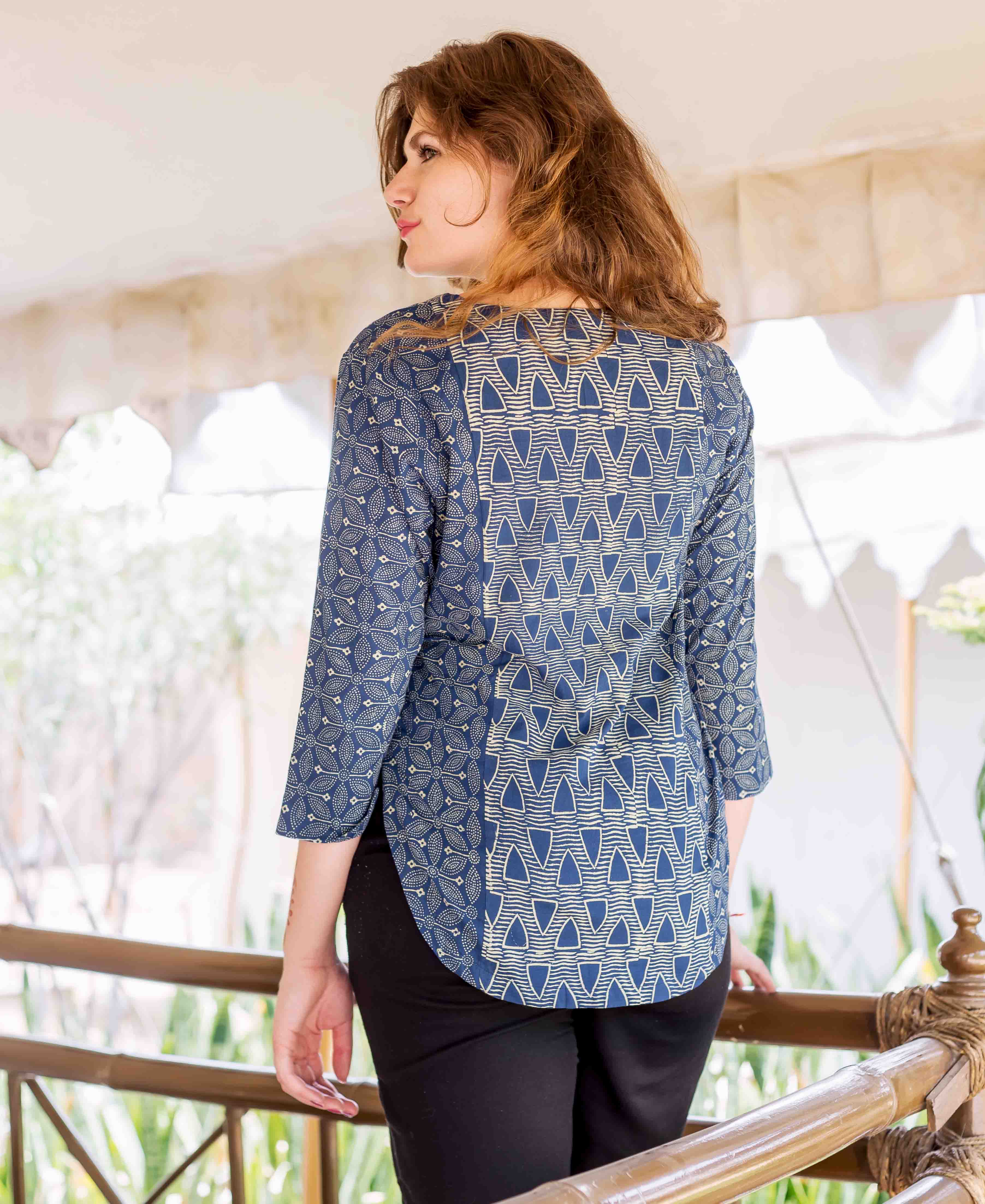 Indigo Hand Block Printed Cotton Top