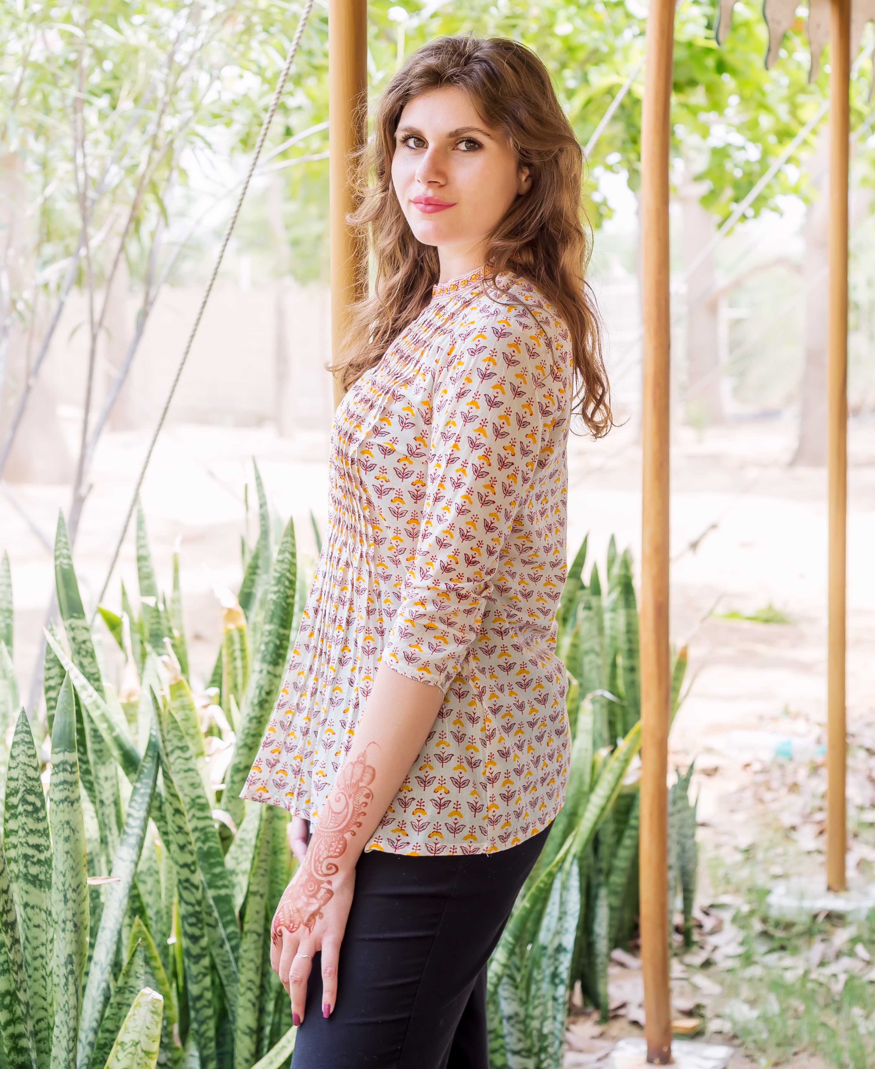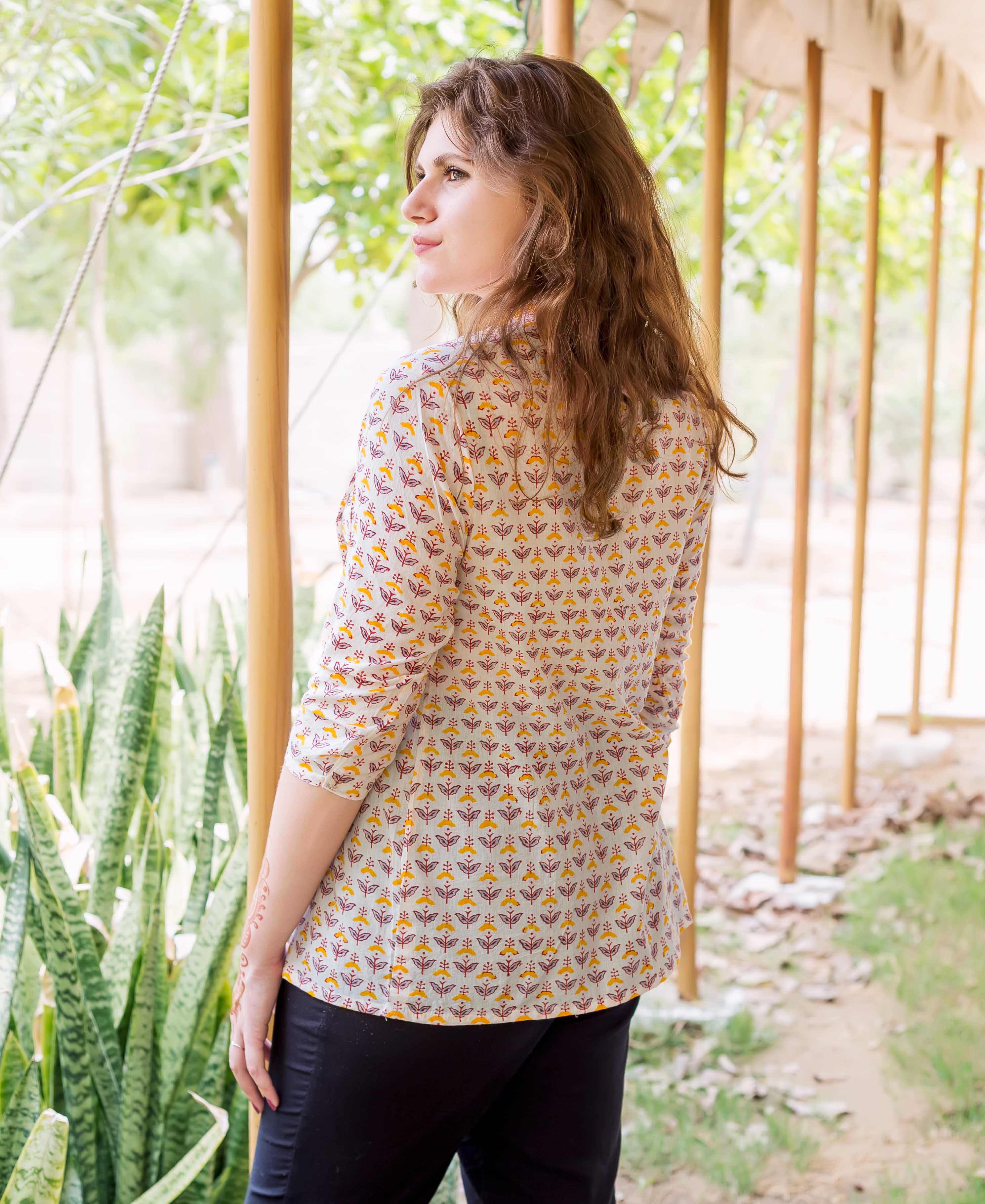 Yellow and Pink Hand Block Printed Ethnic Top