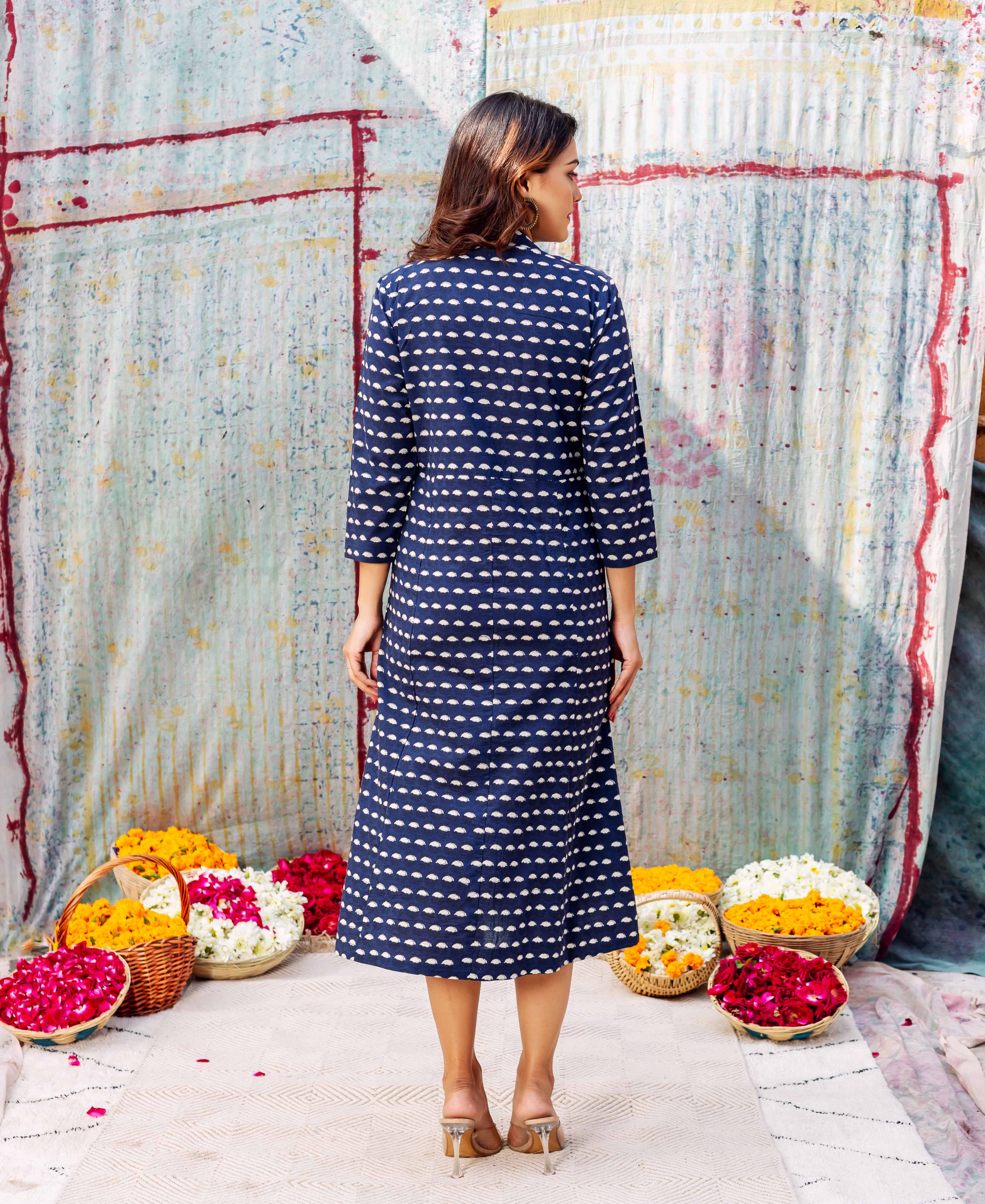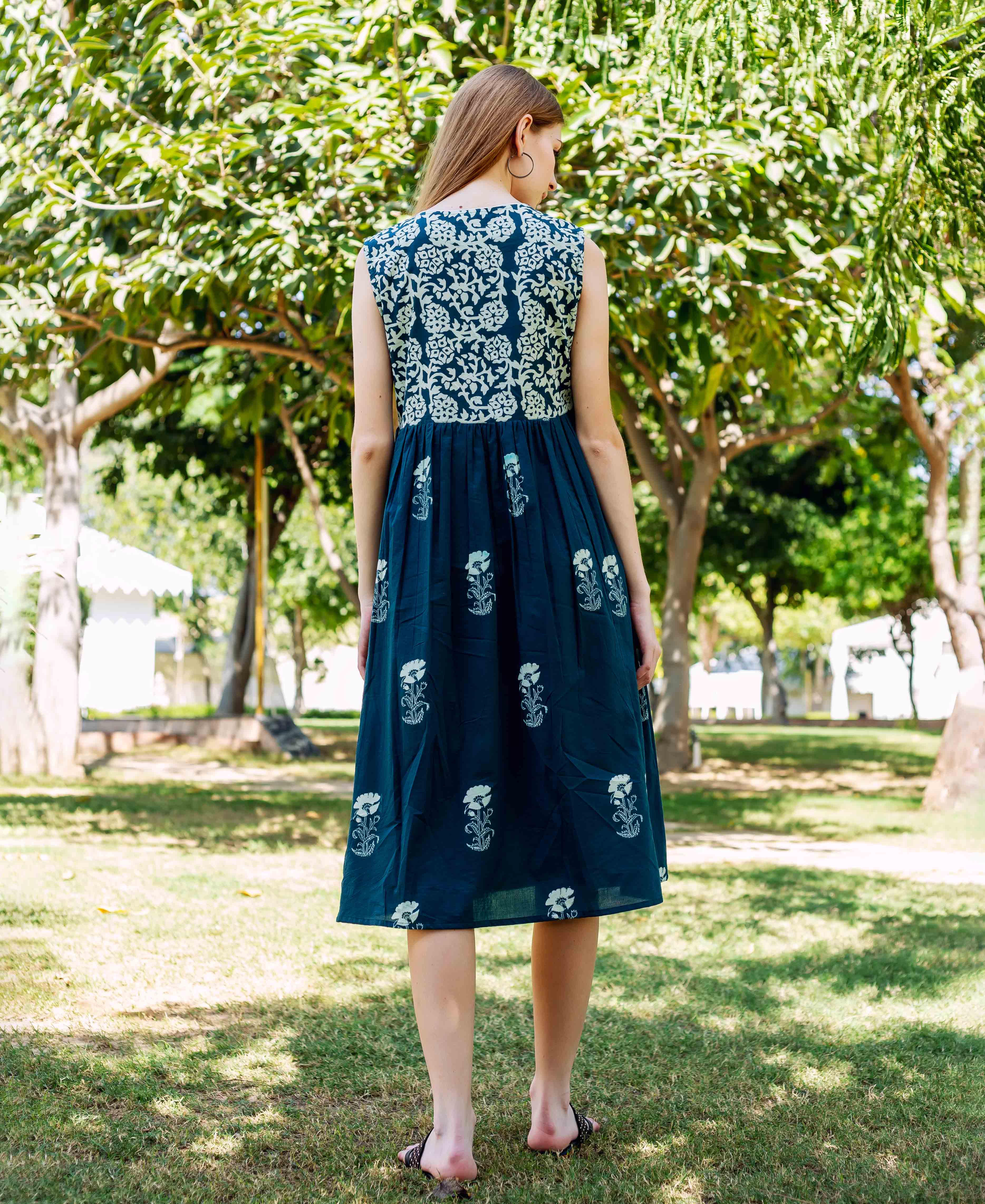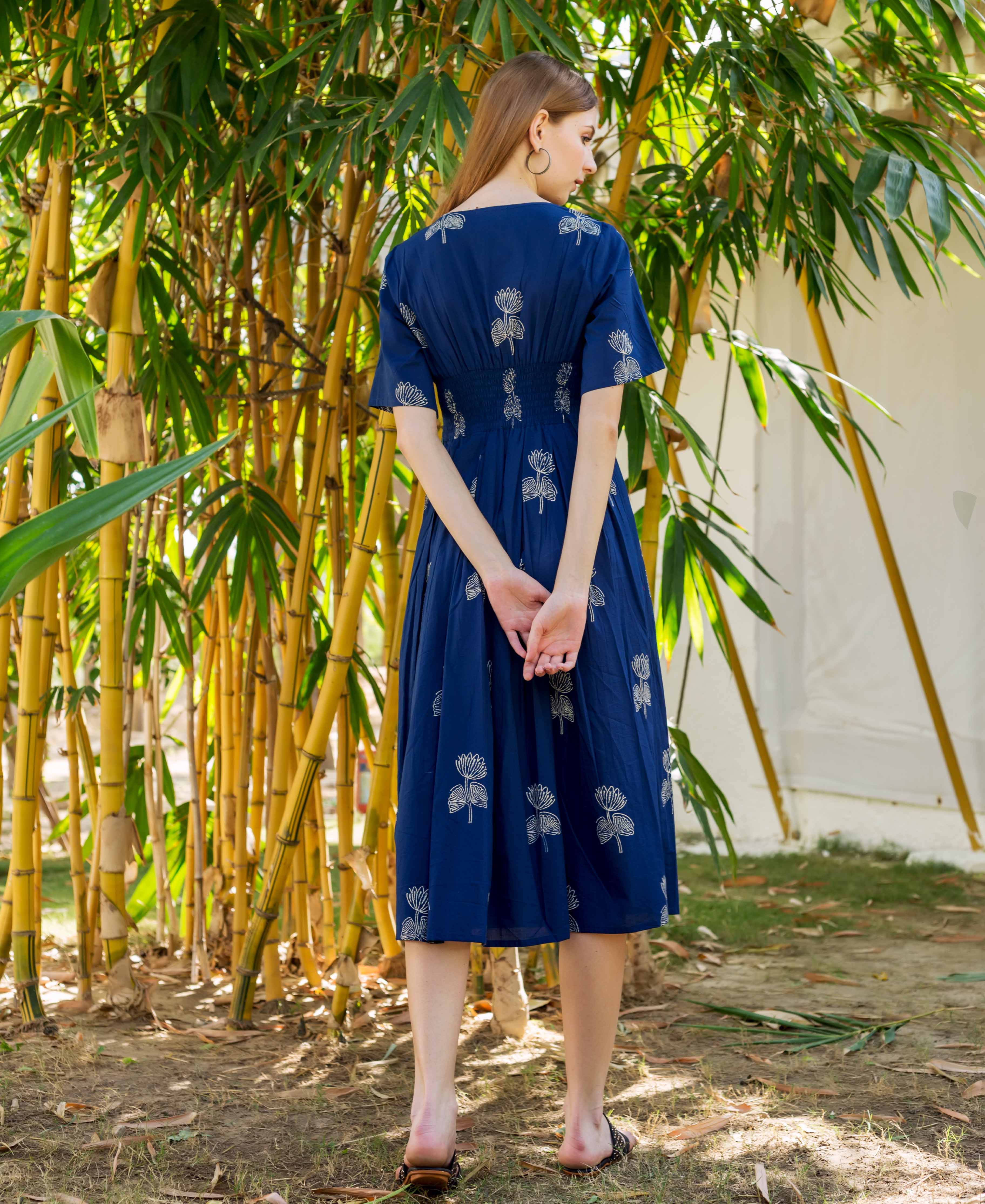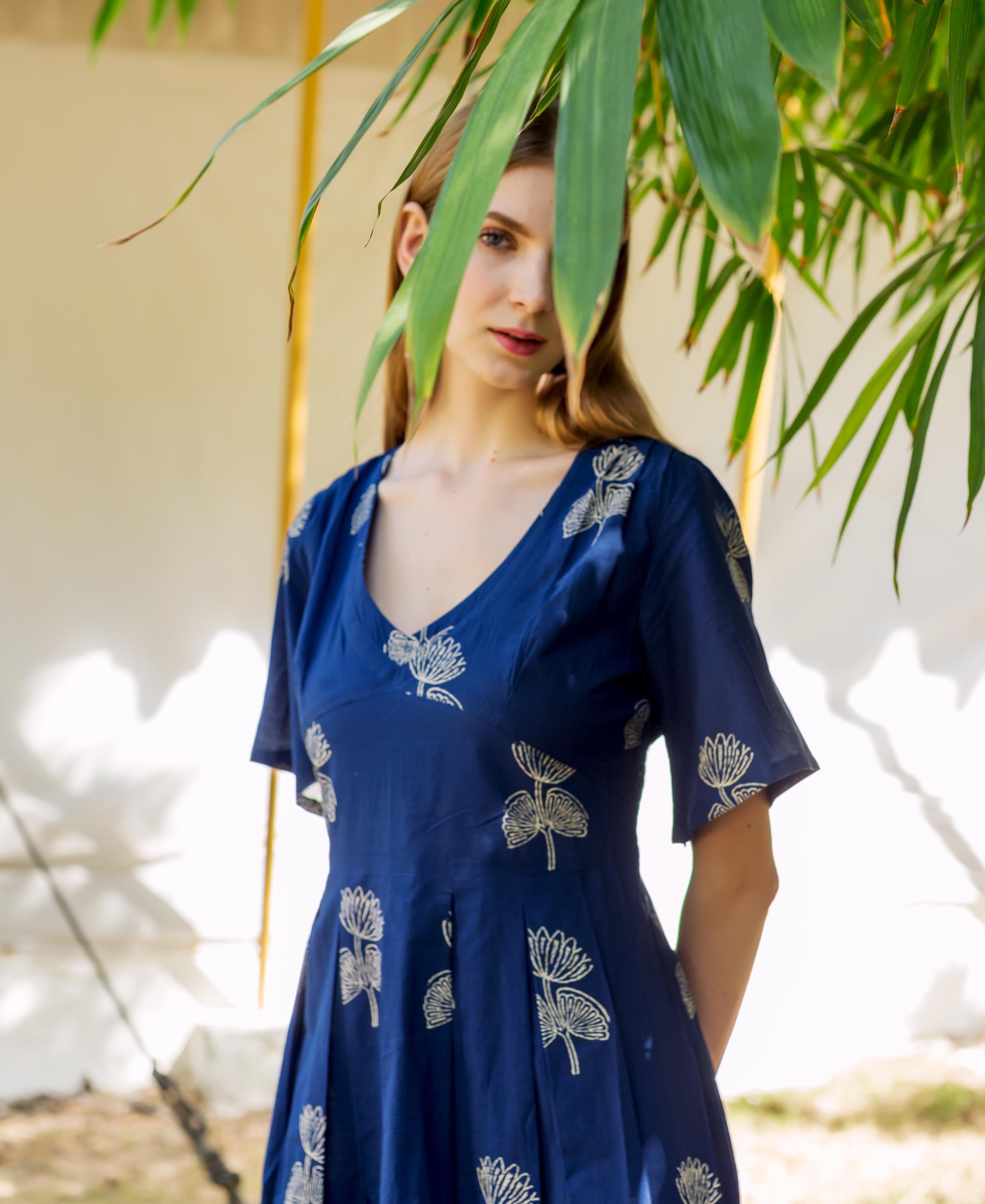 Indigo Hand Block Printed Dress