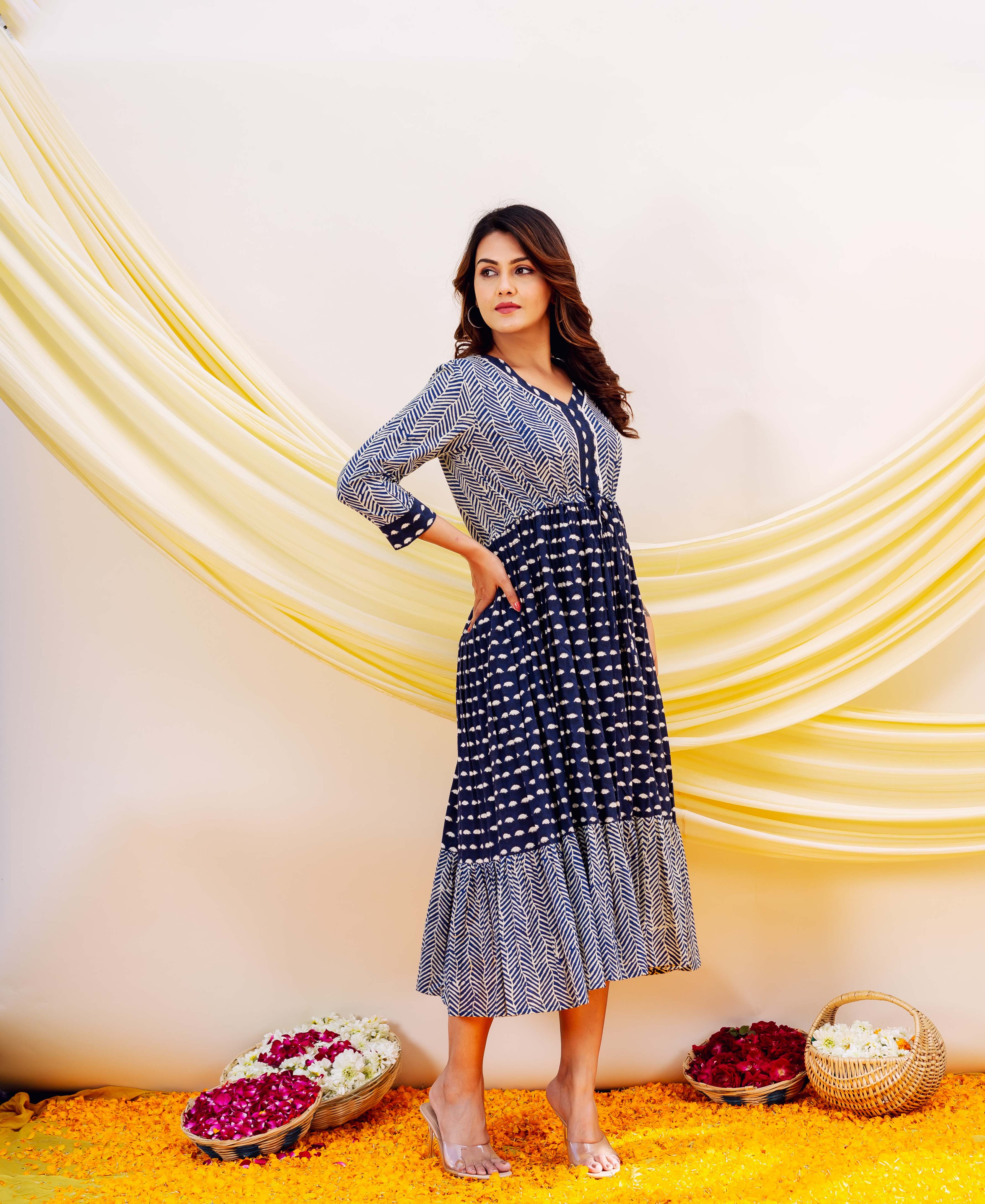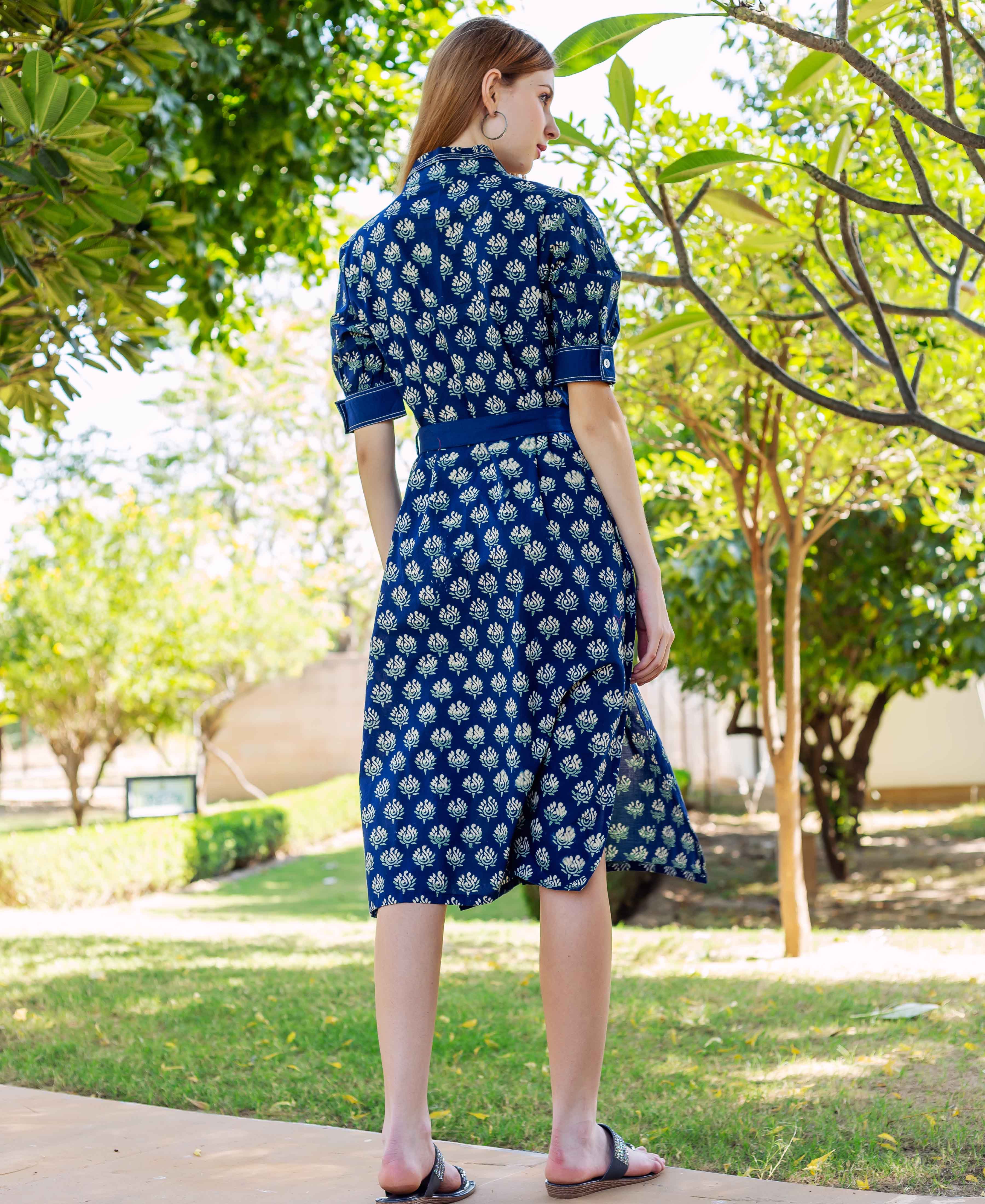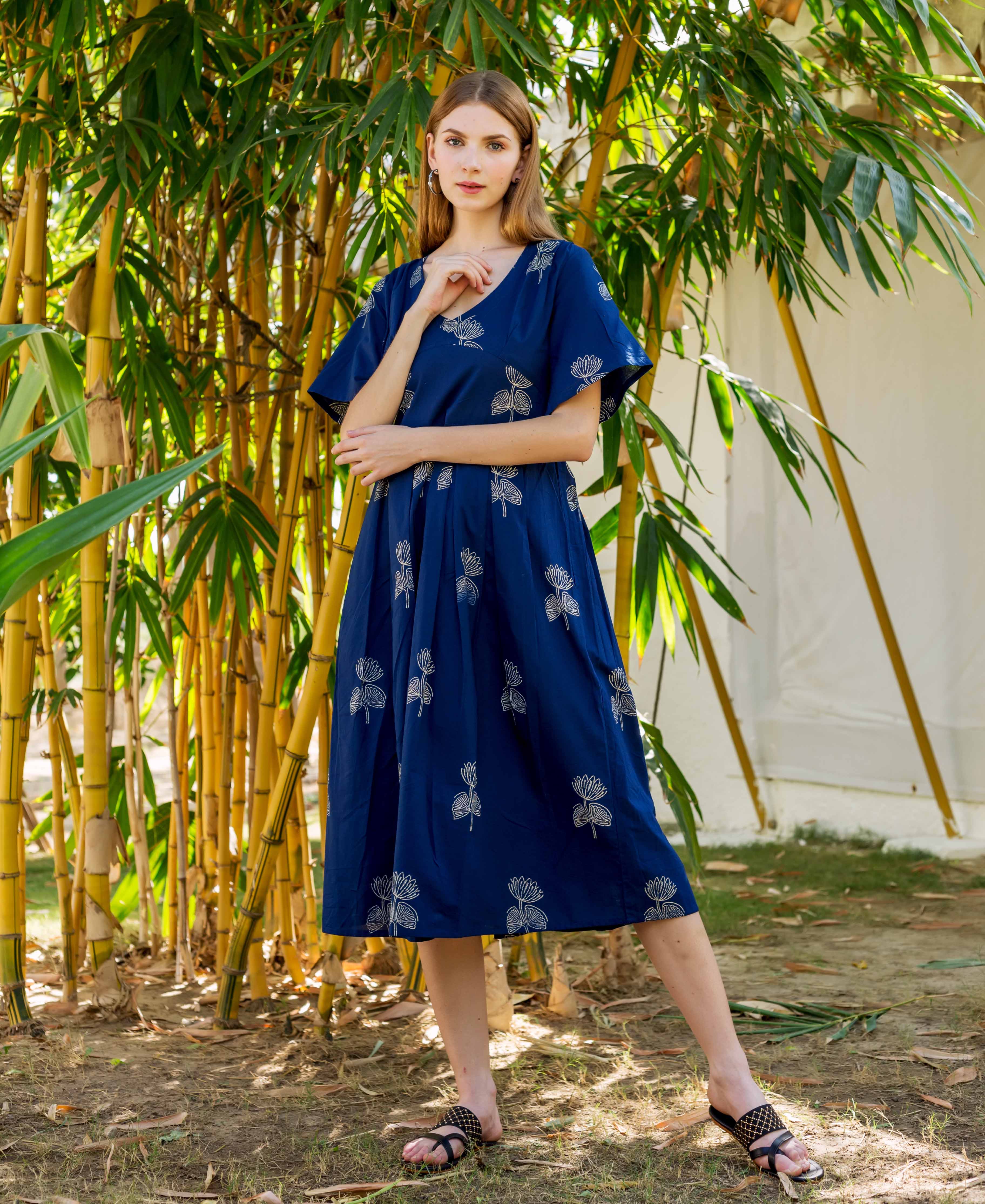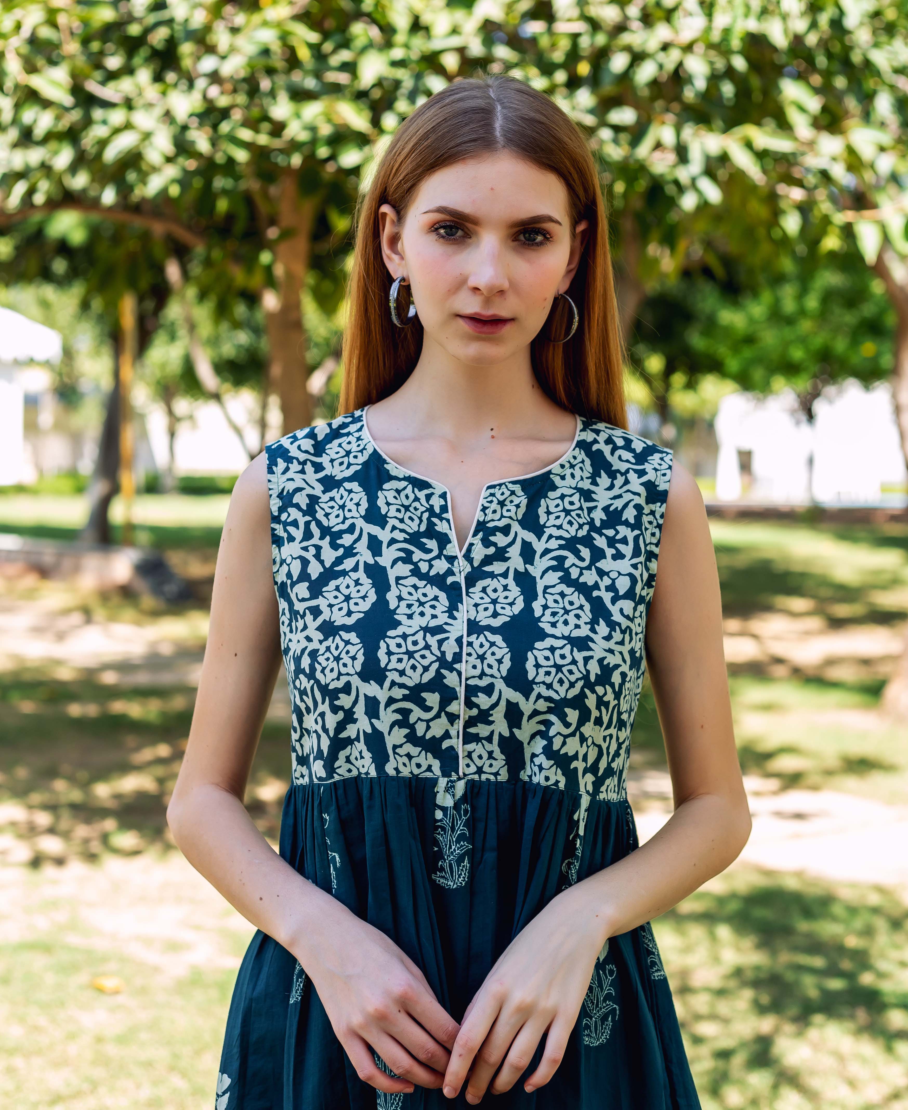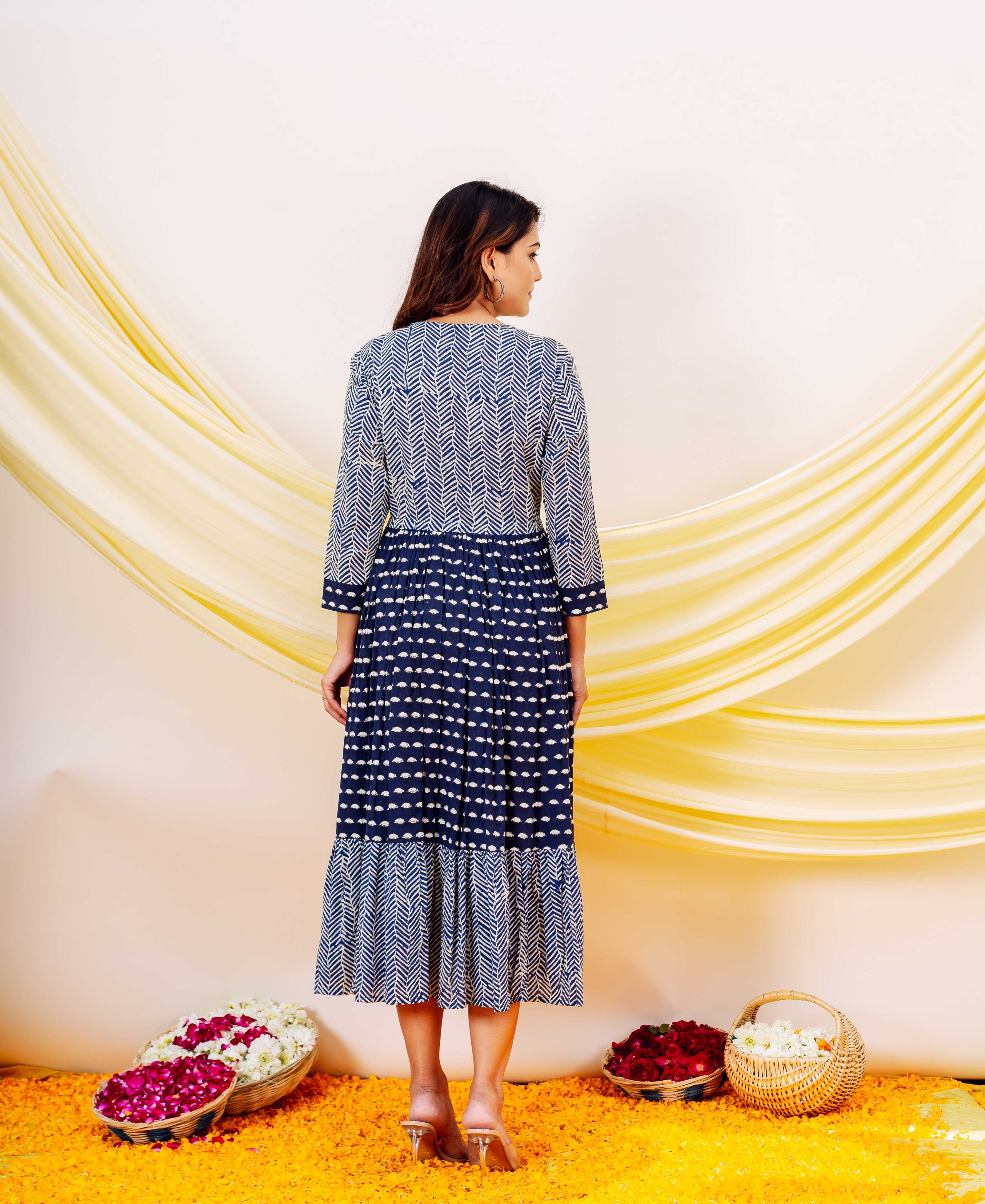 Indigo Hand Block Printed Dress