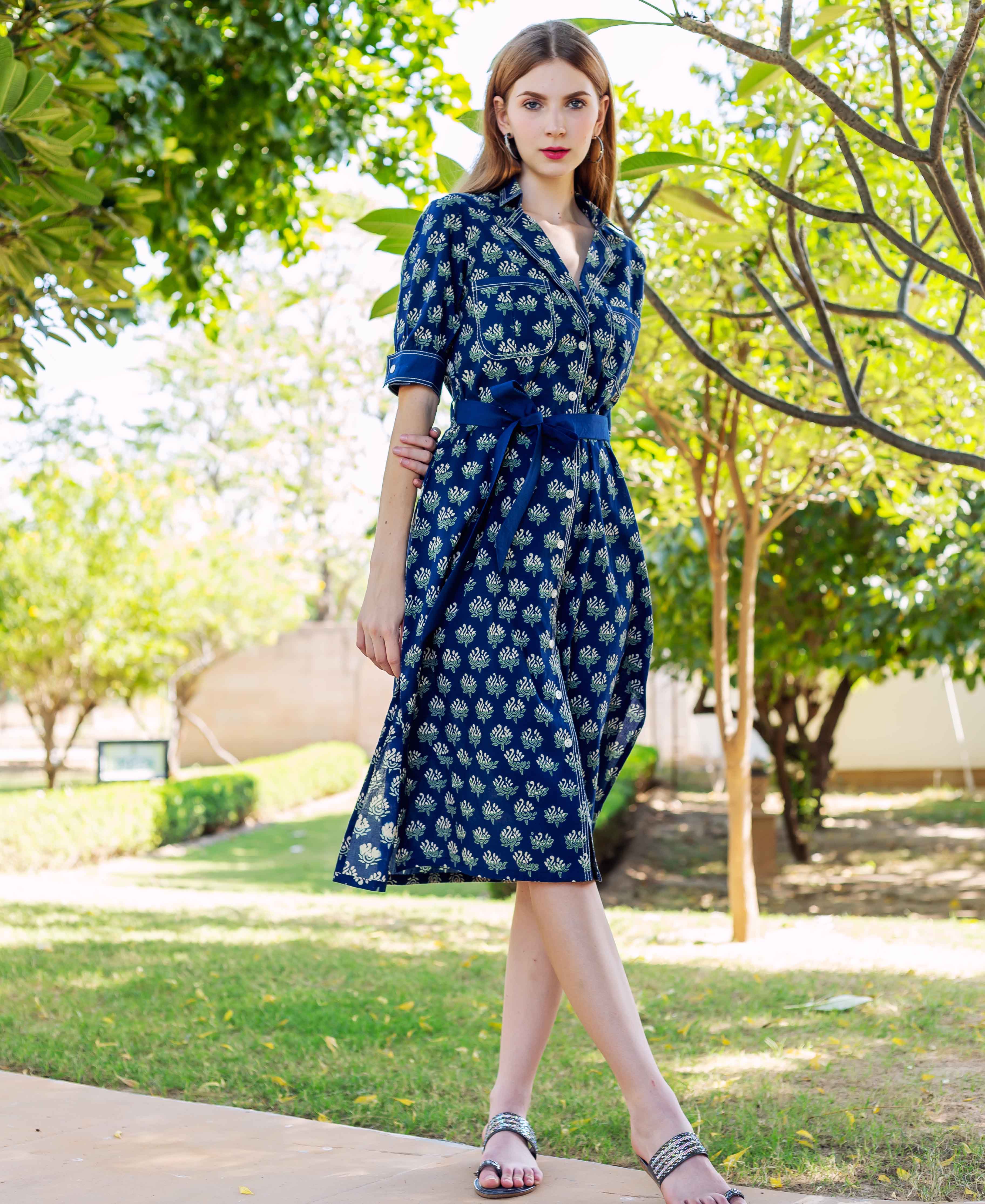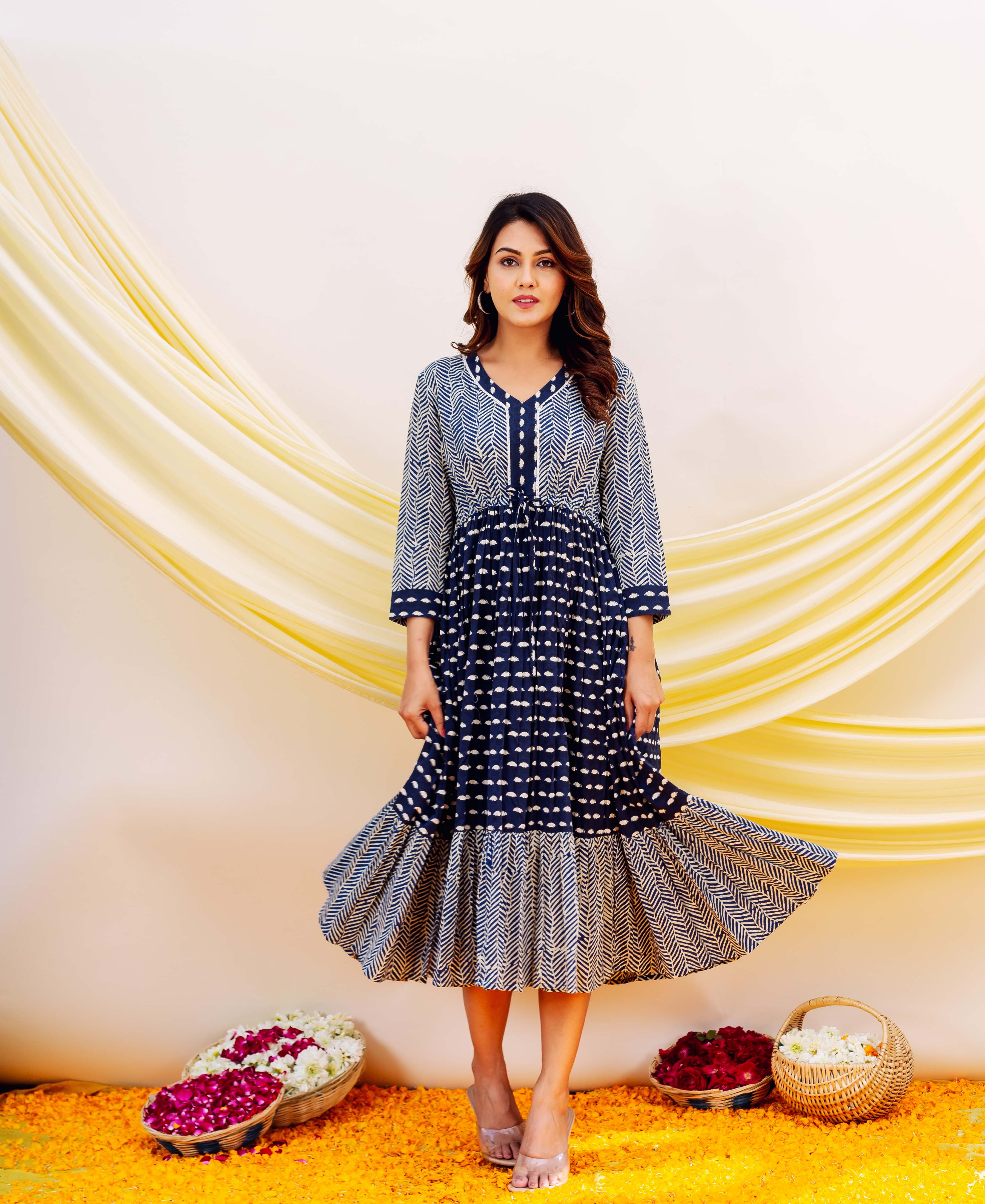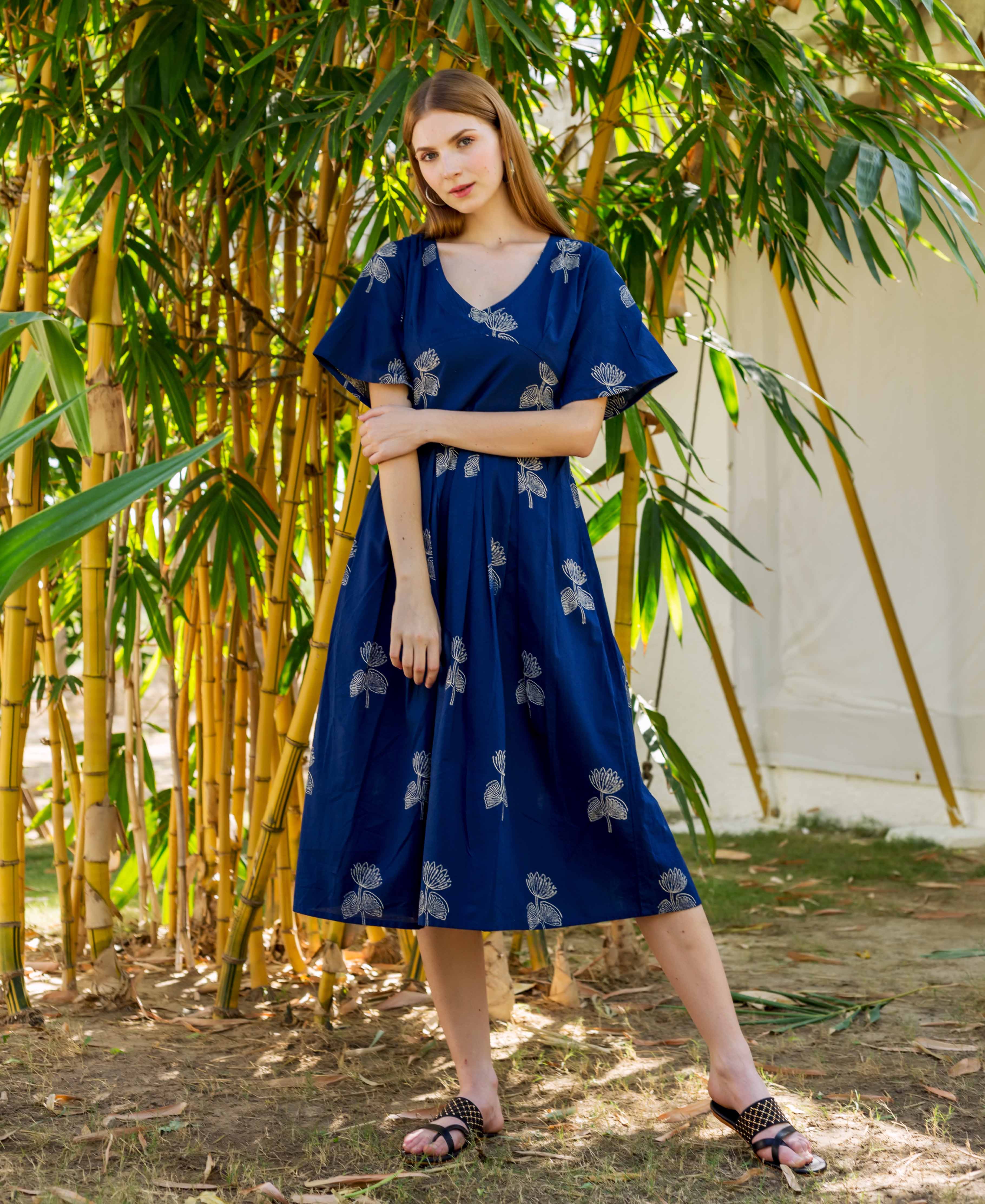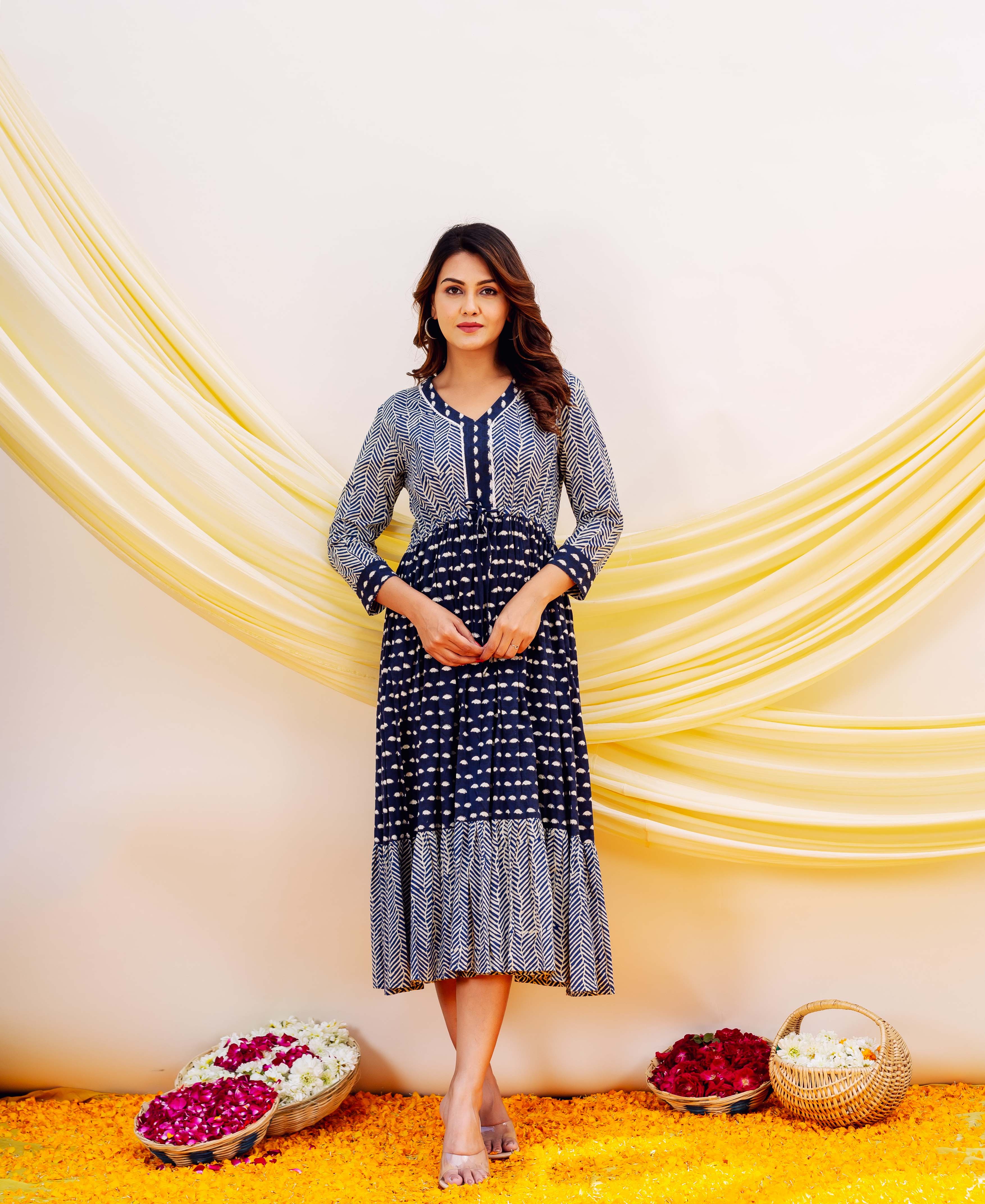 Indigo Hand Block Printed Dress