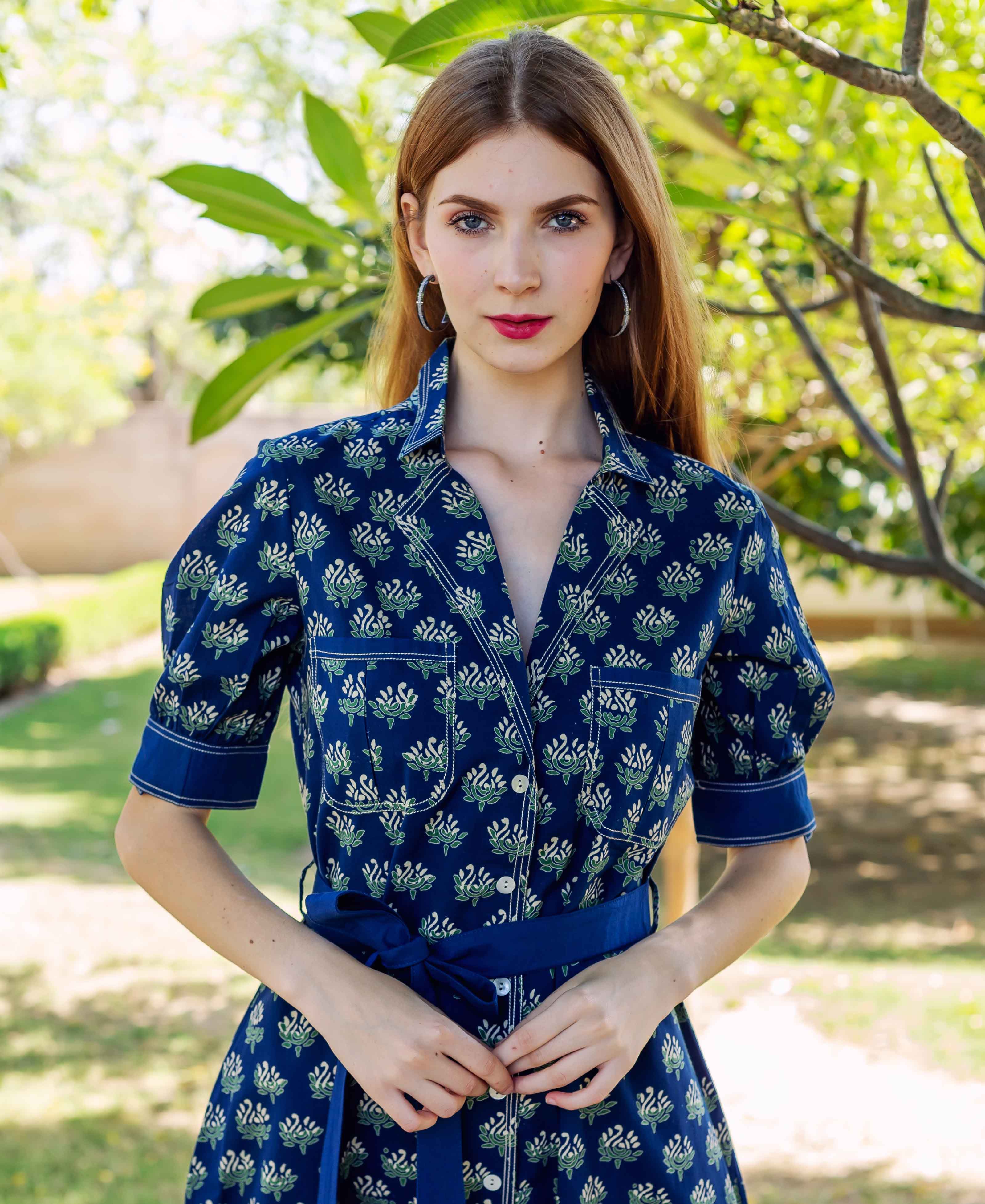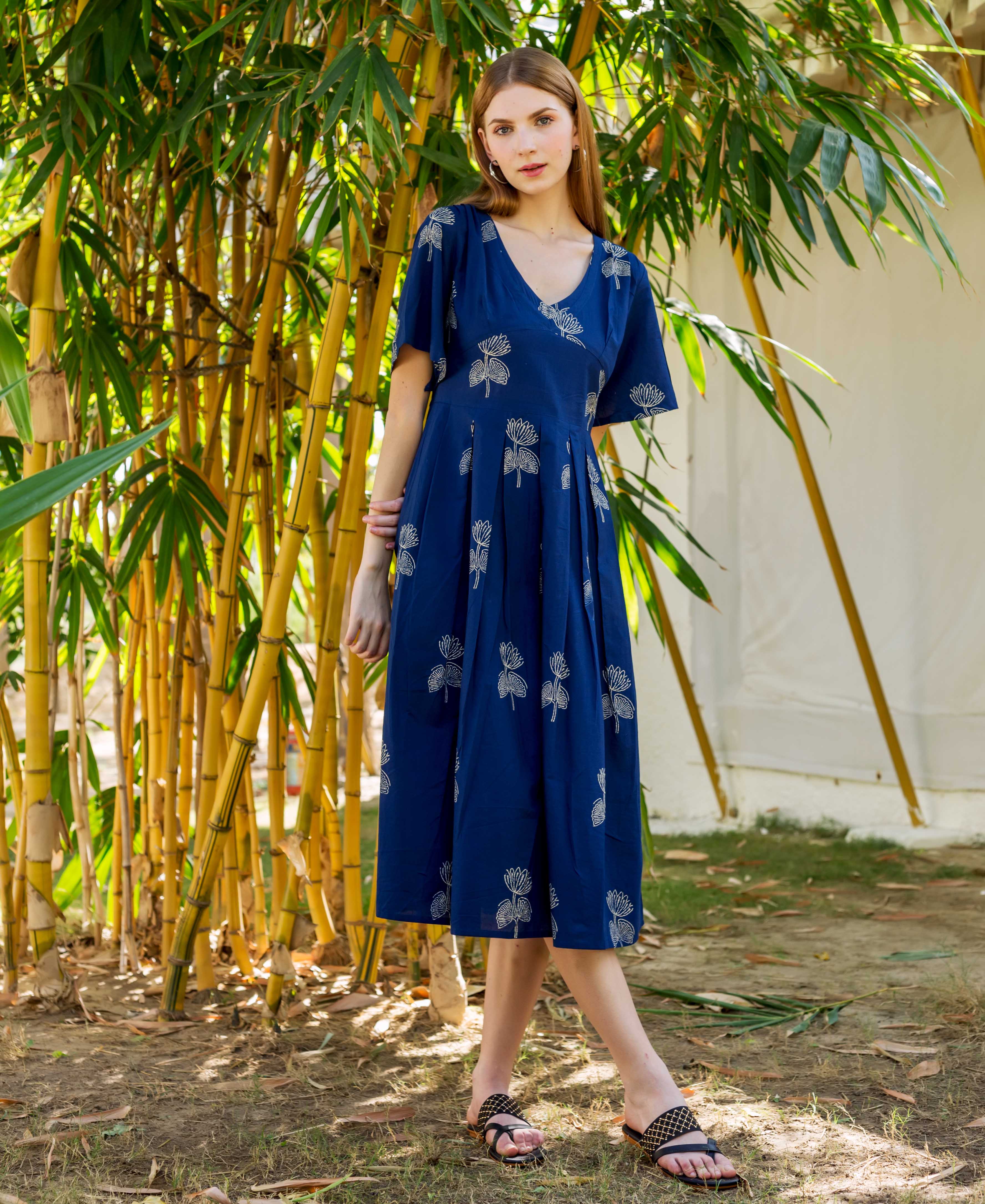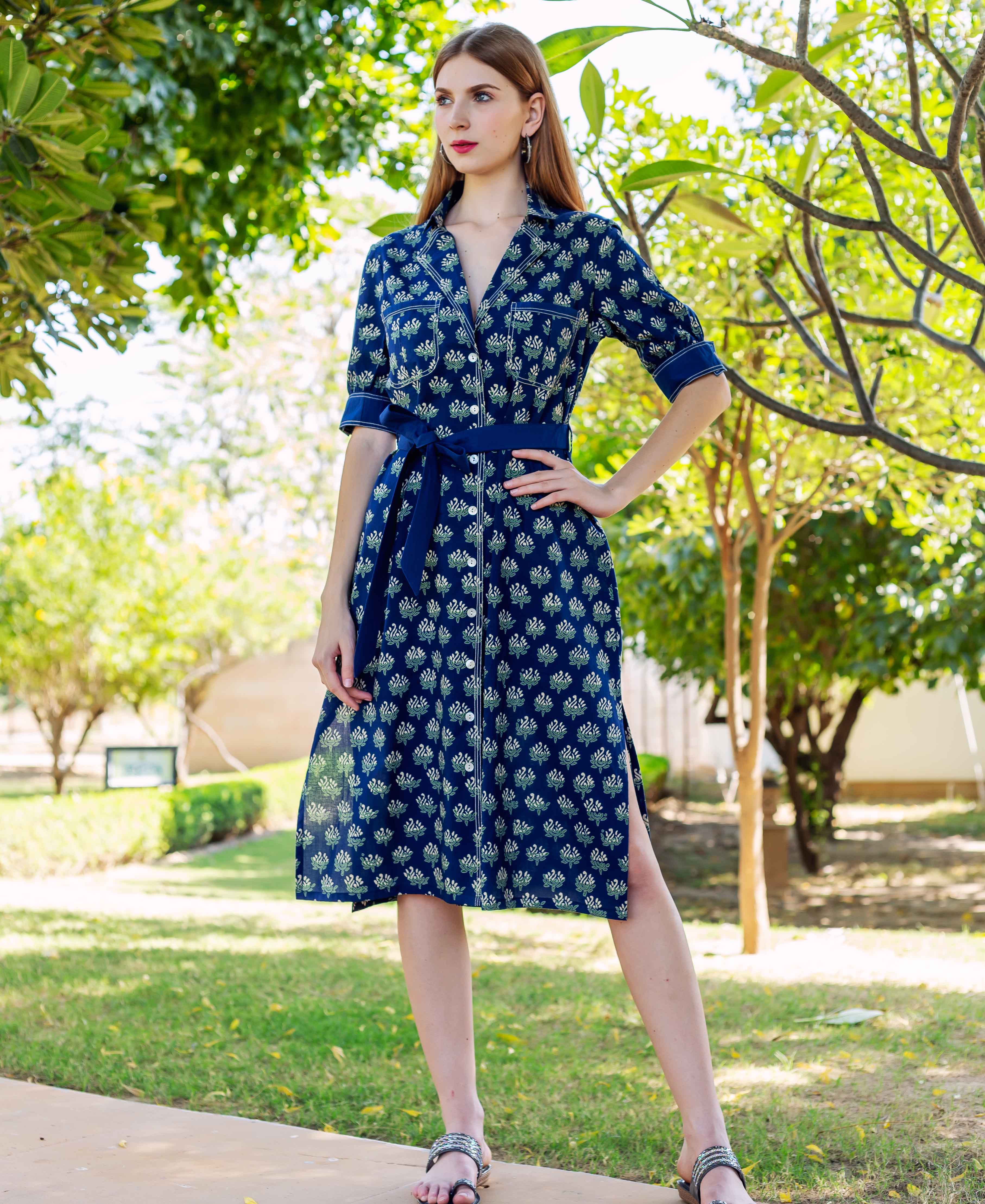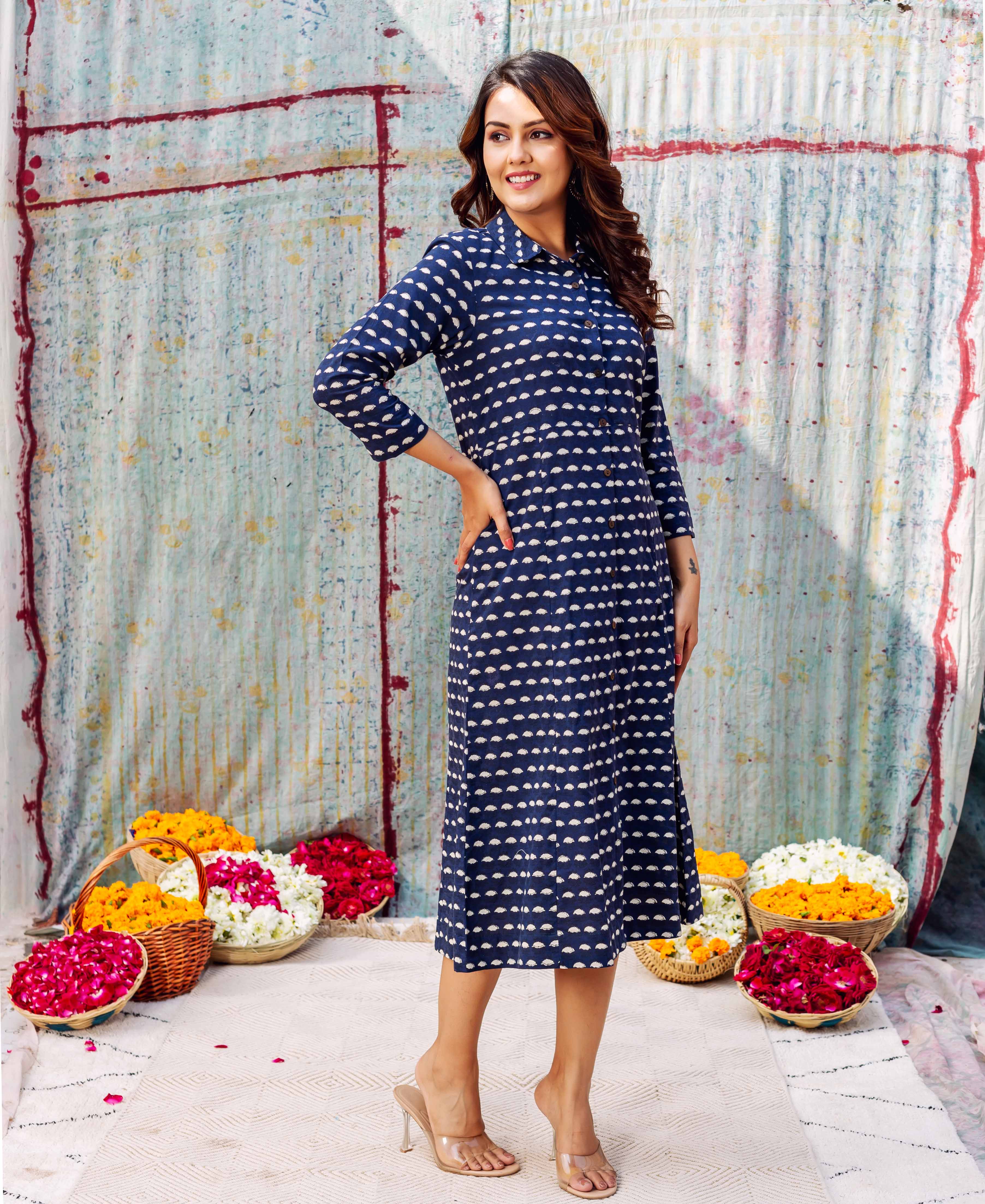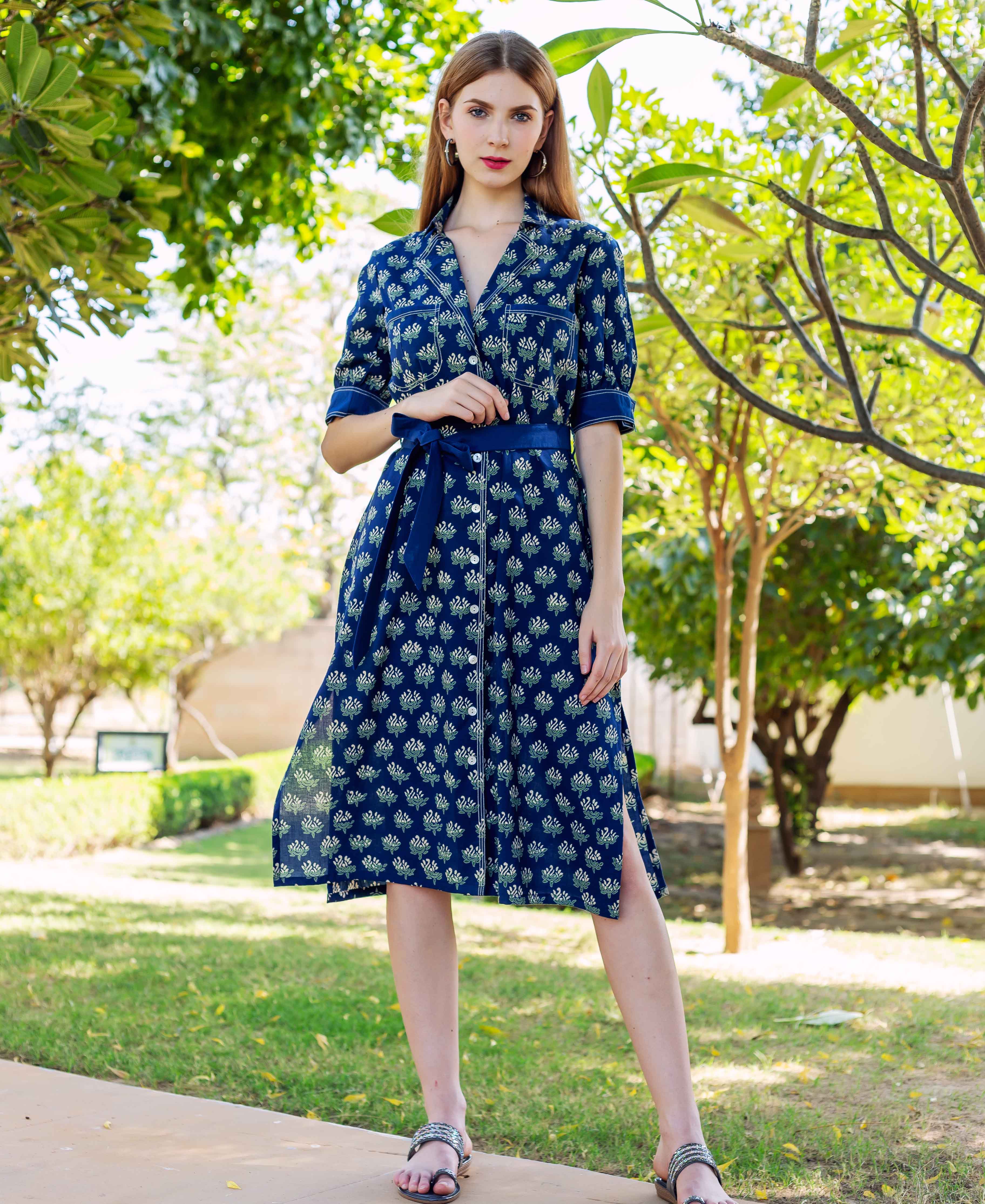 Indigo Hand Block Printed Dress
