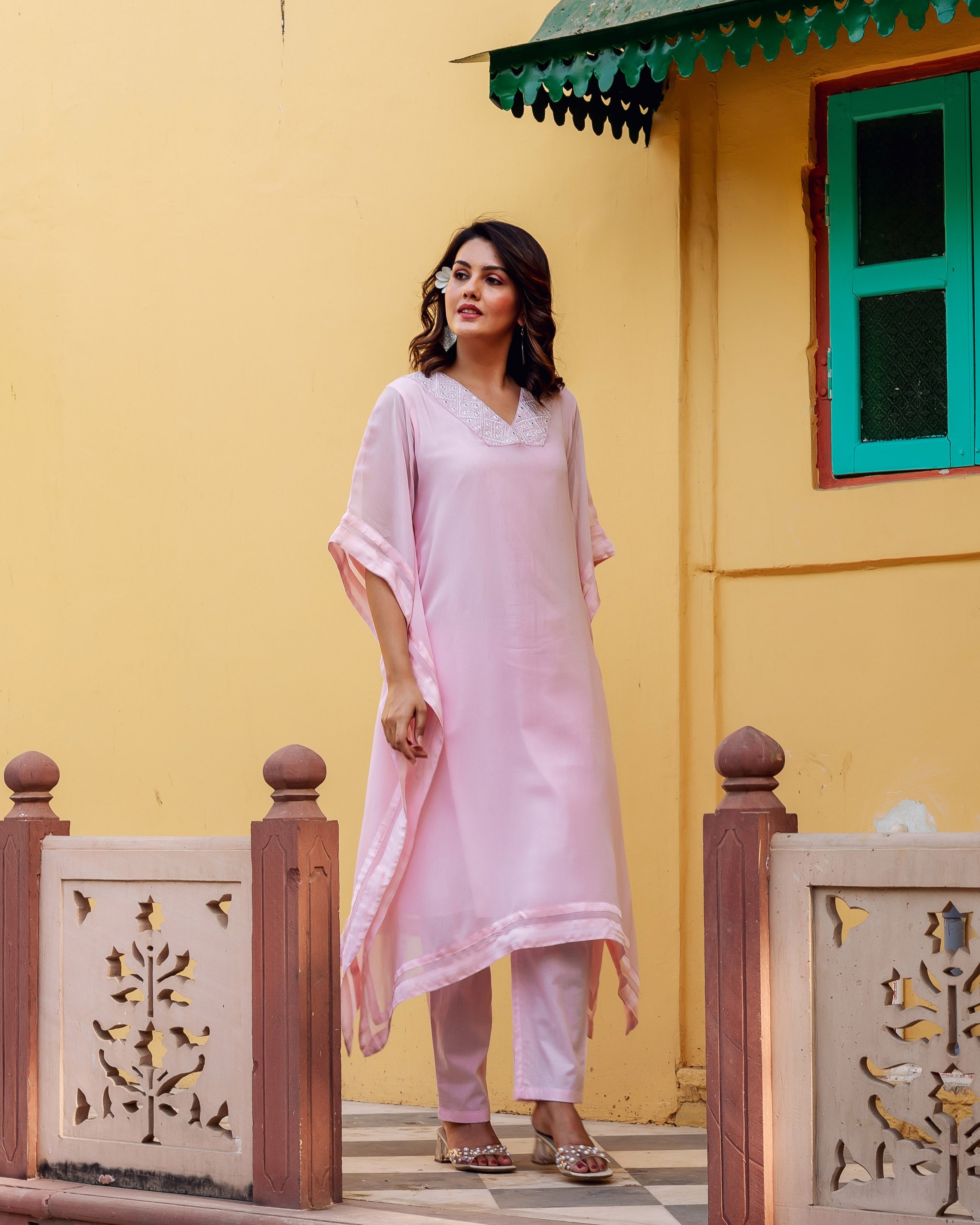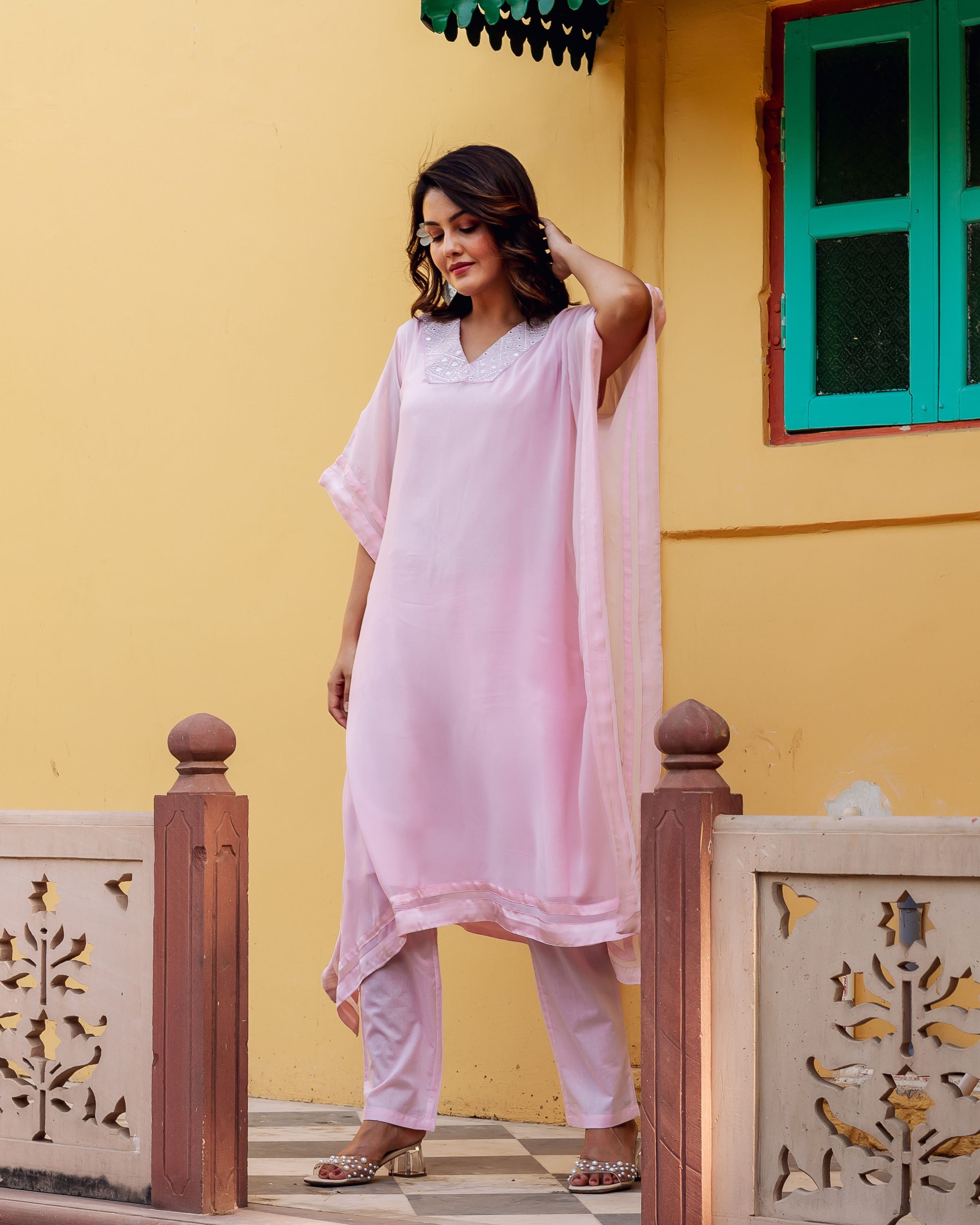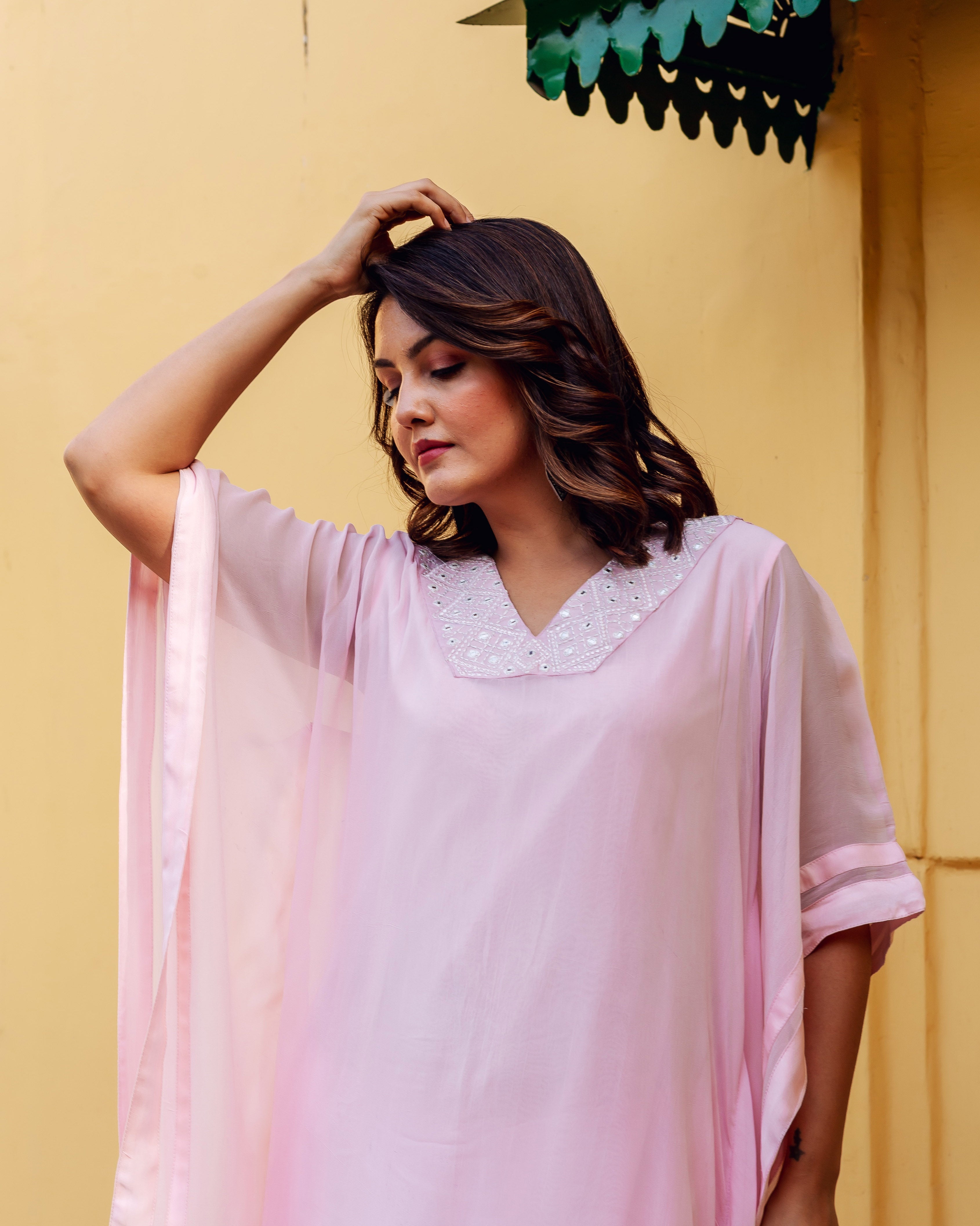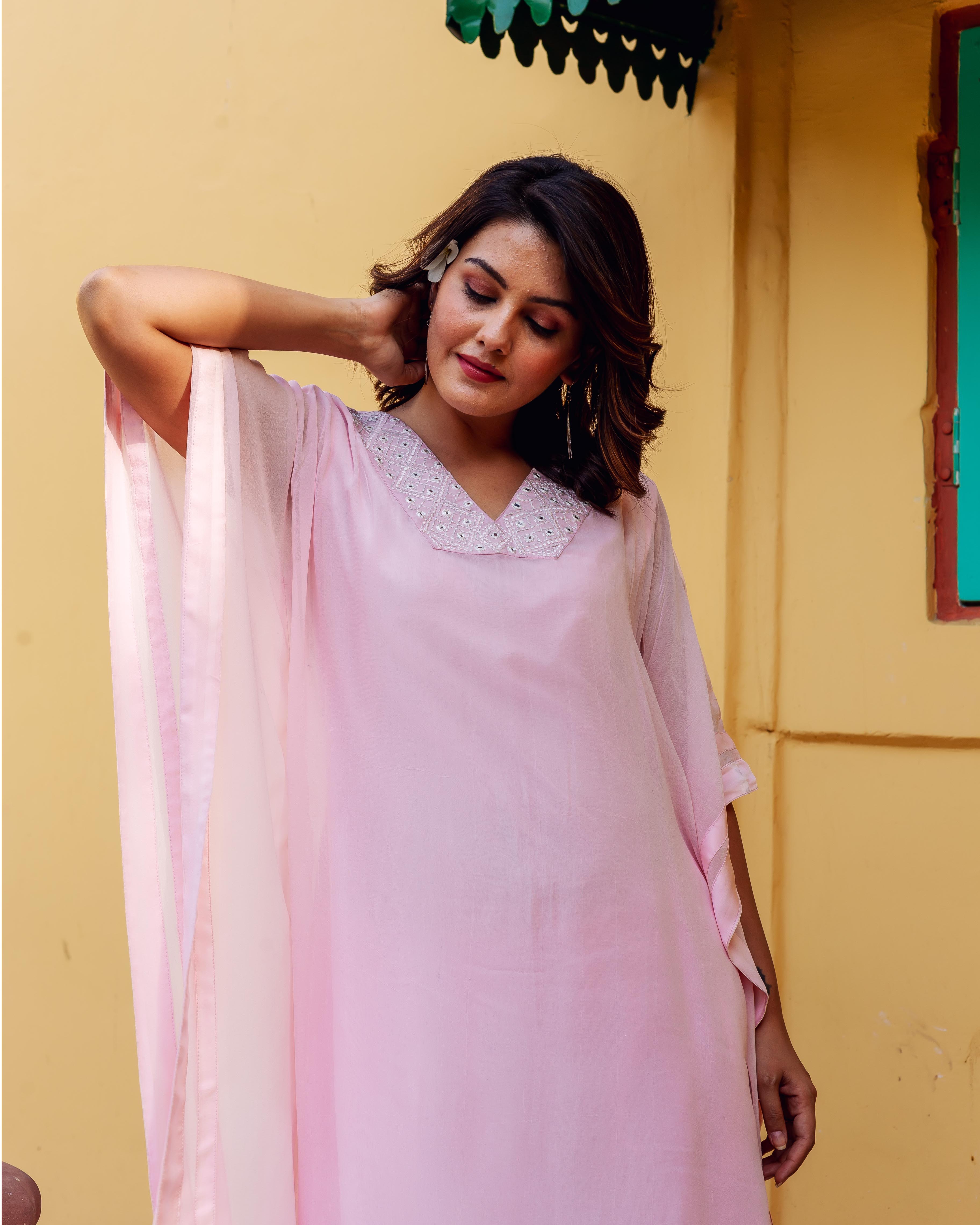 Pink Embroidered Kaftan