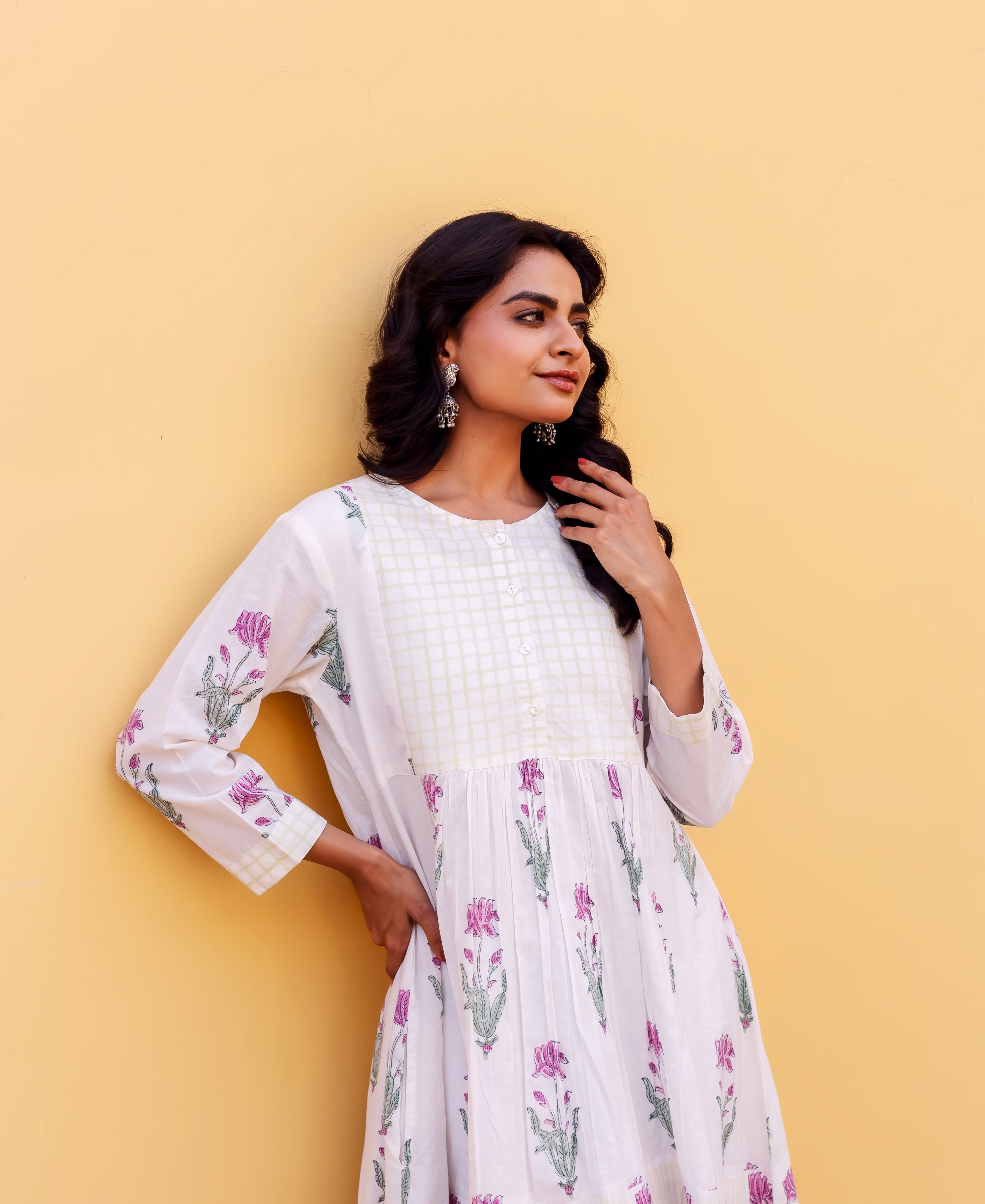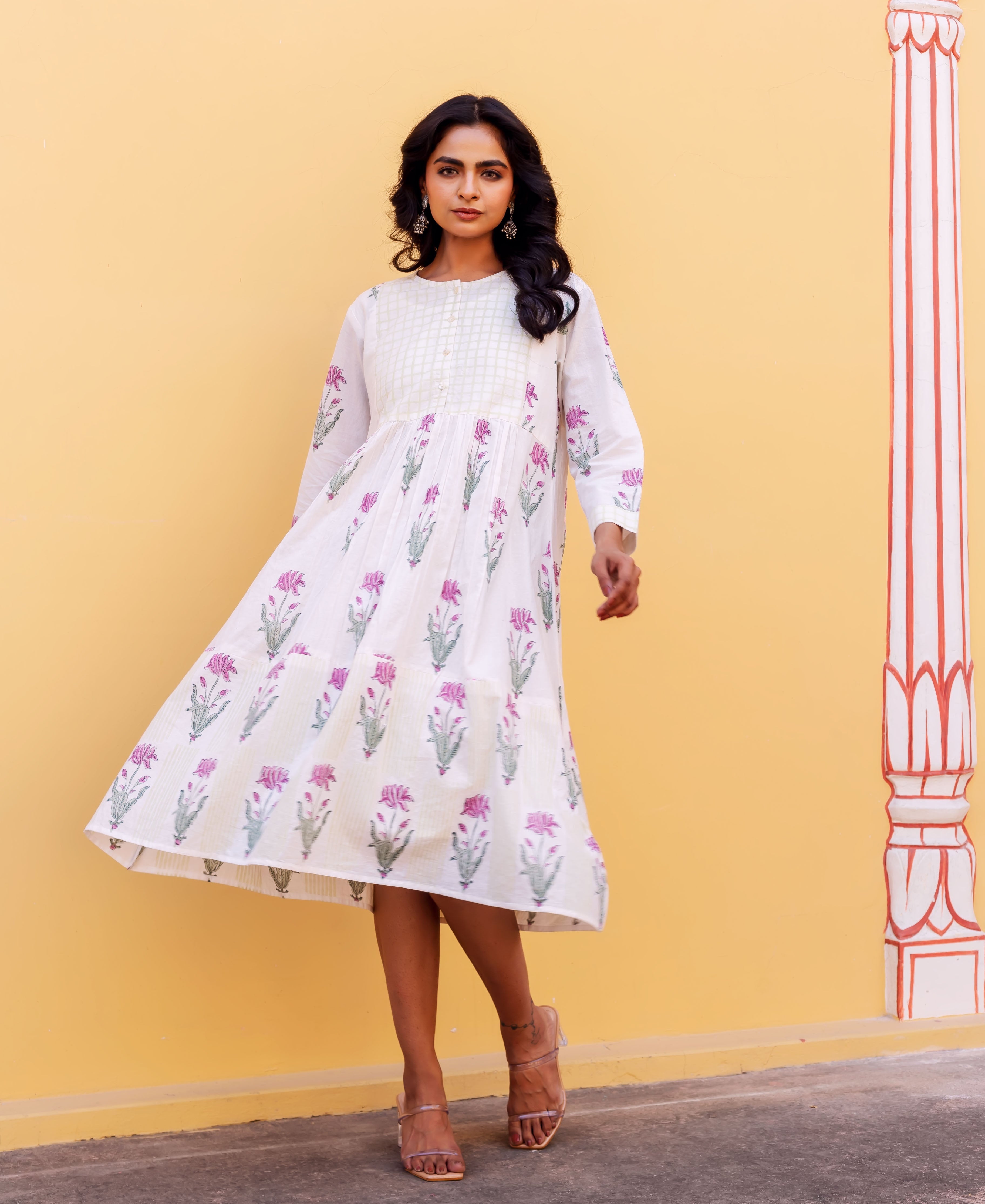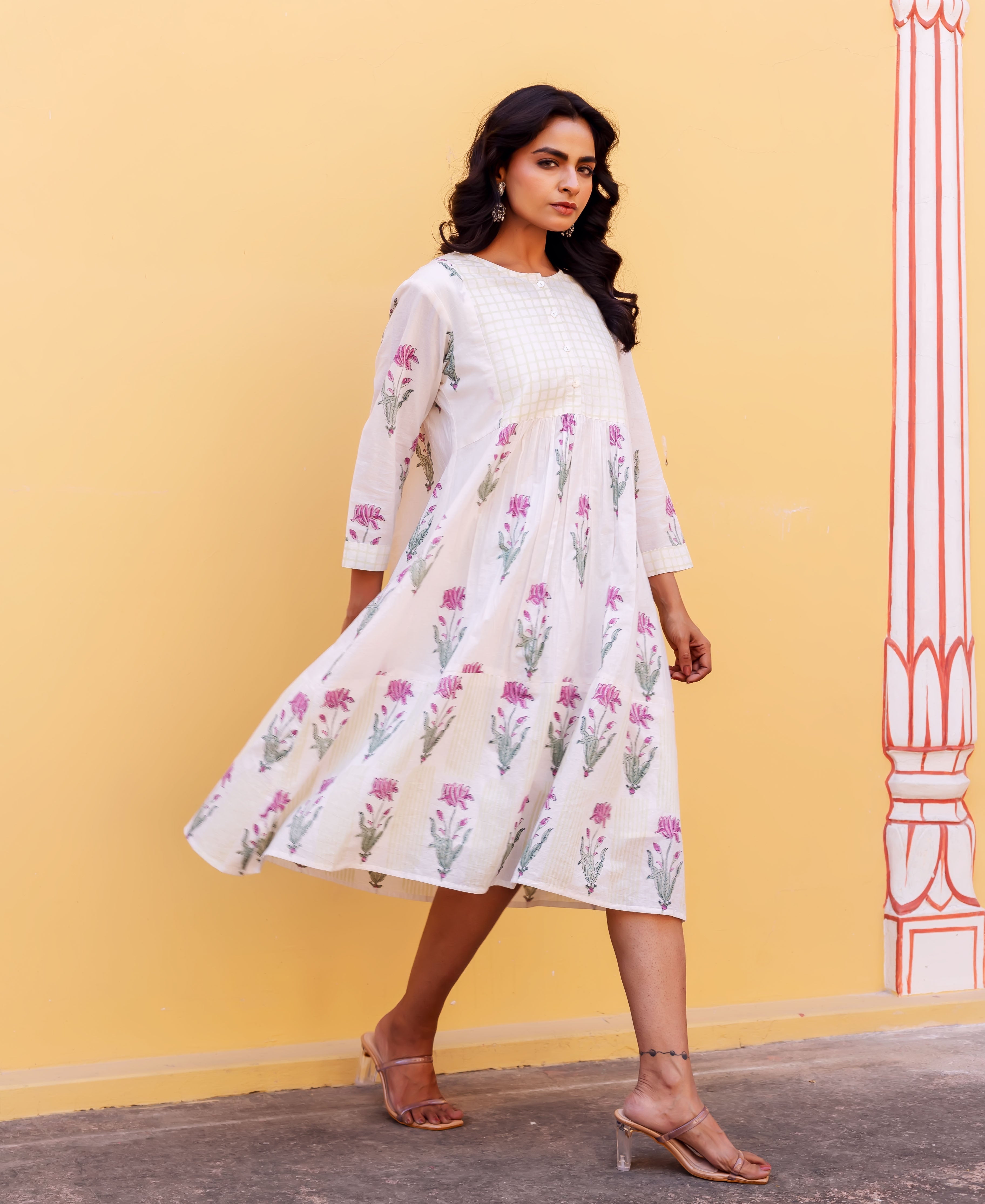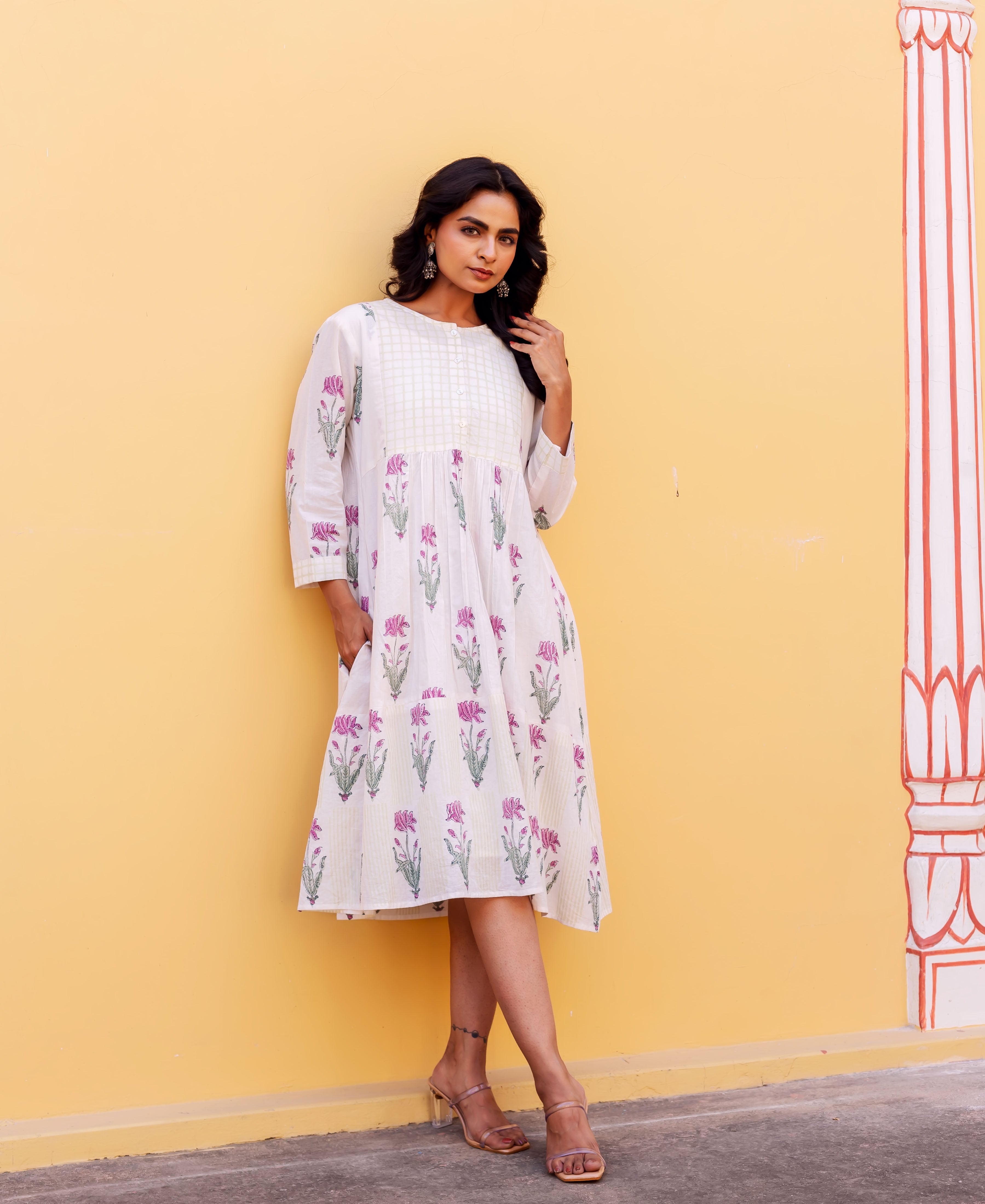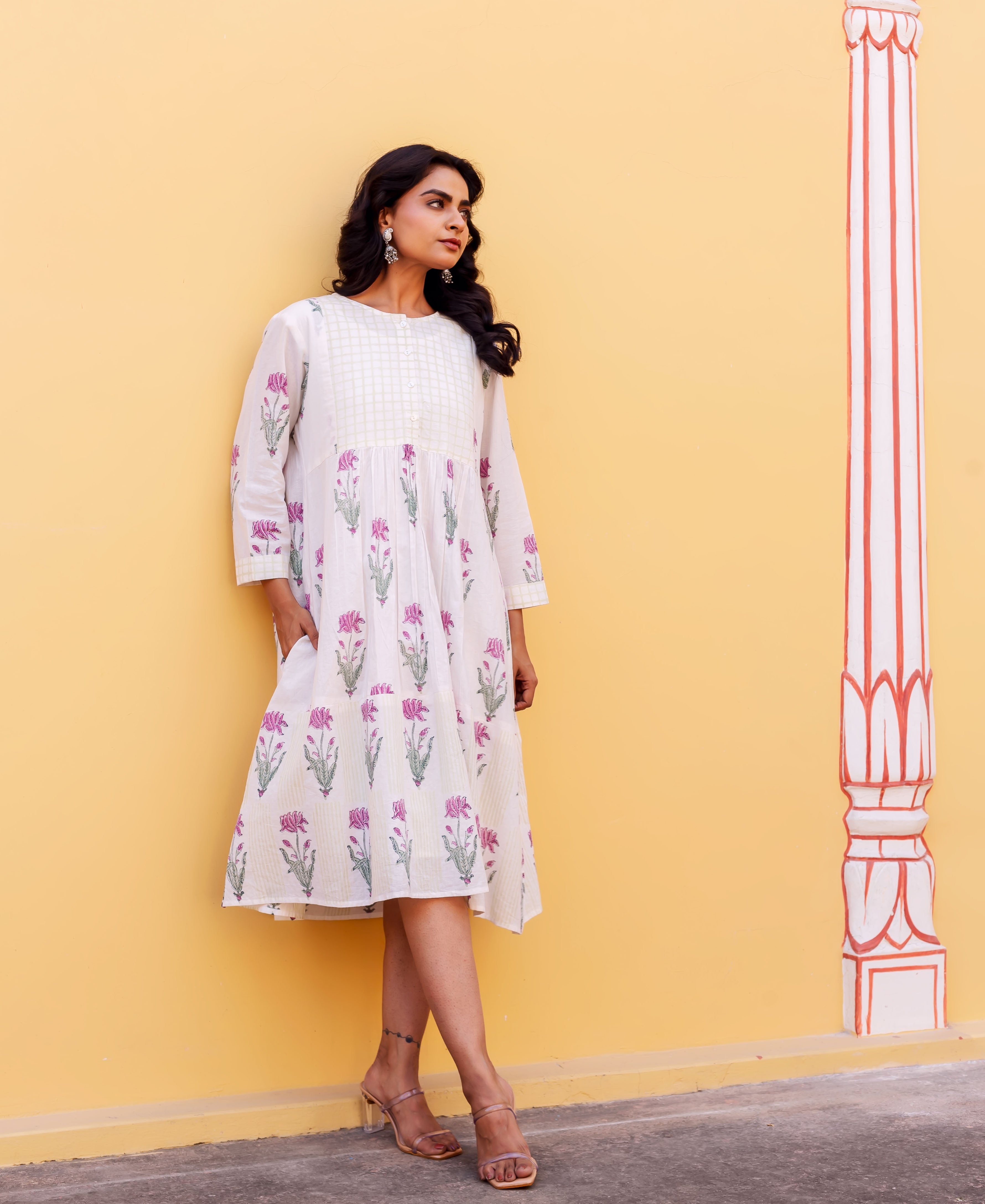 Ivory Petal Hand Block Printed Cotton Dress