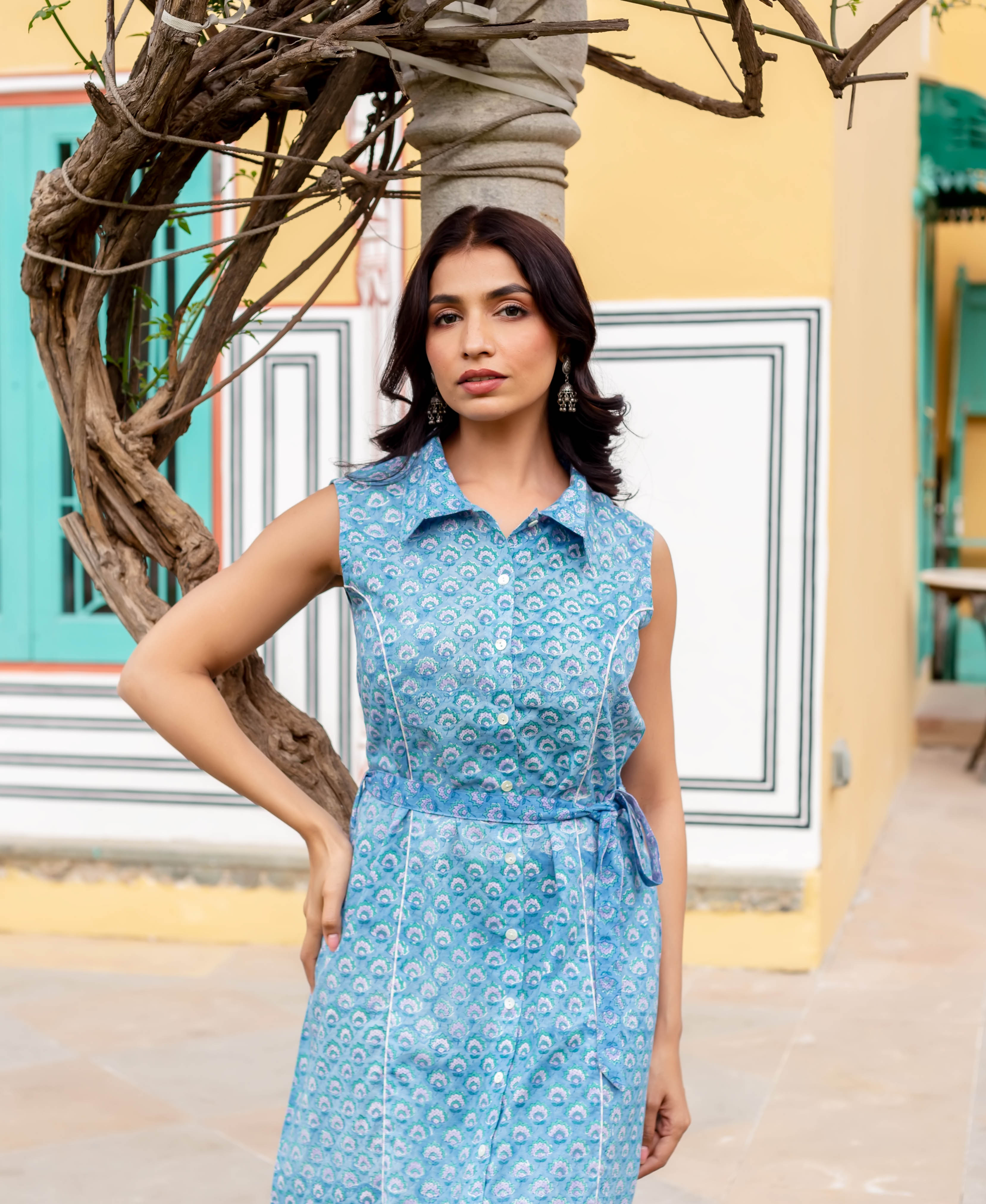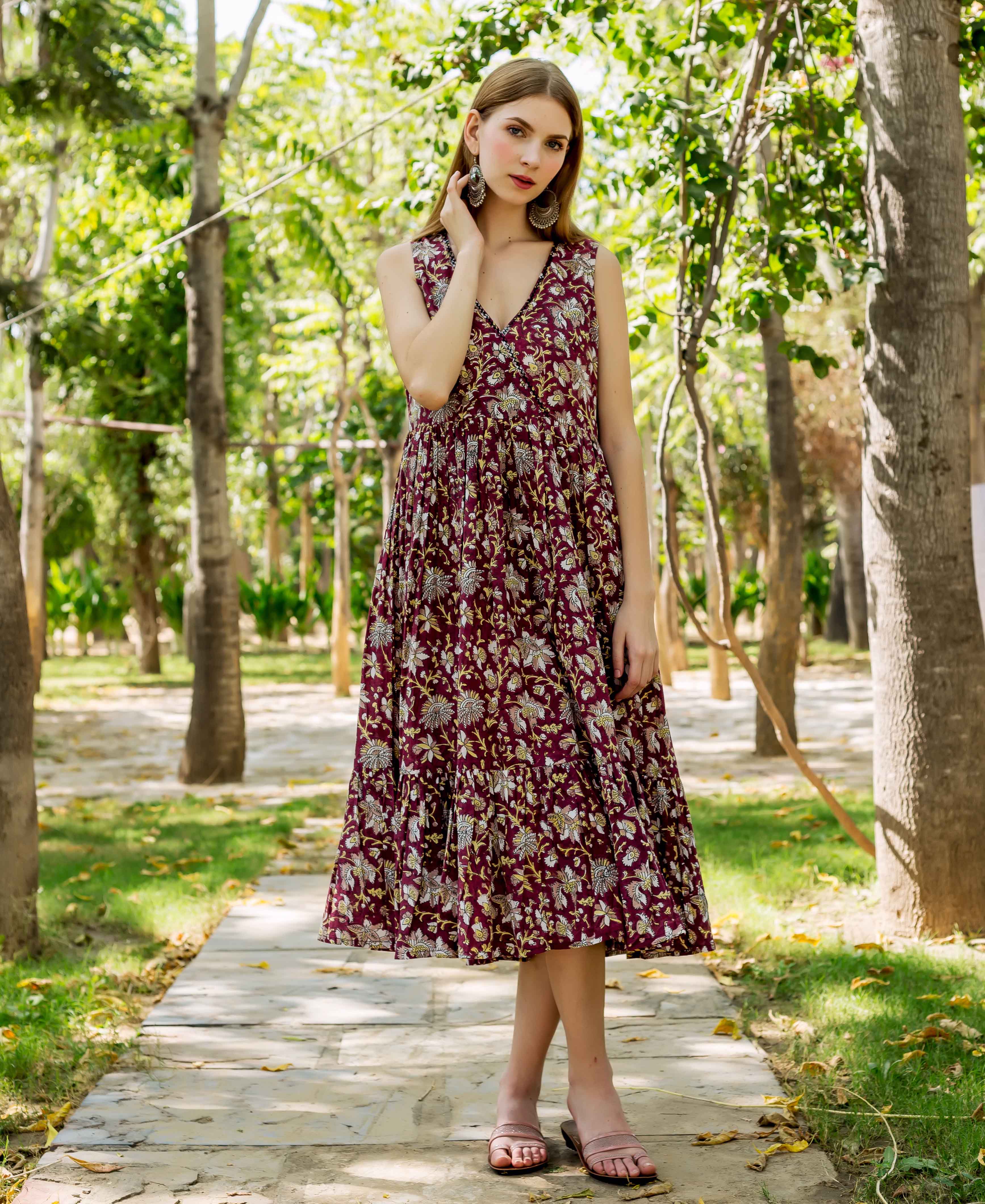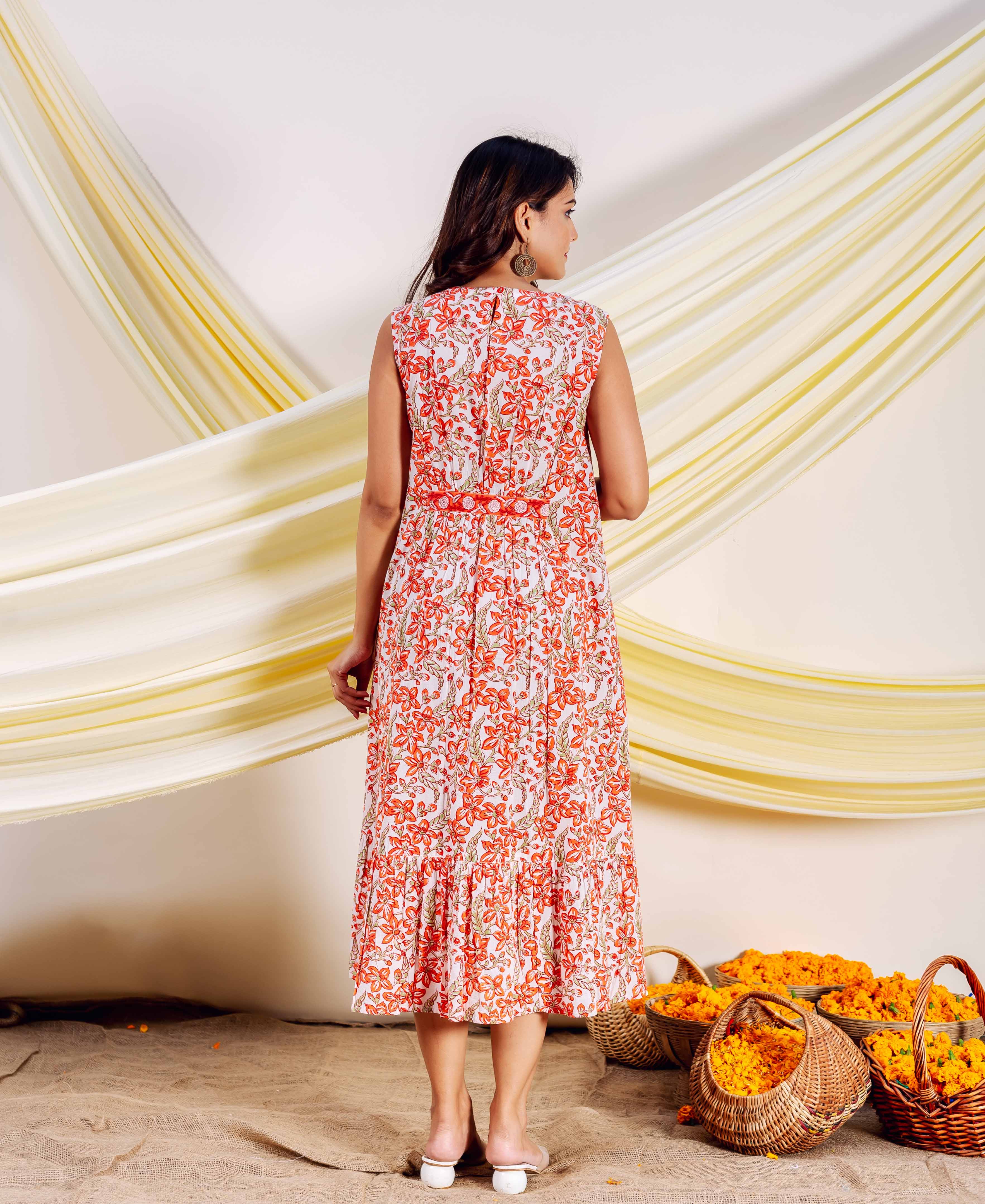 Bloomsong Sleeveless Hand Block Printed Dress