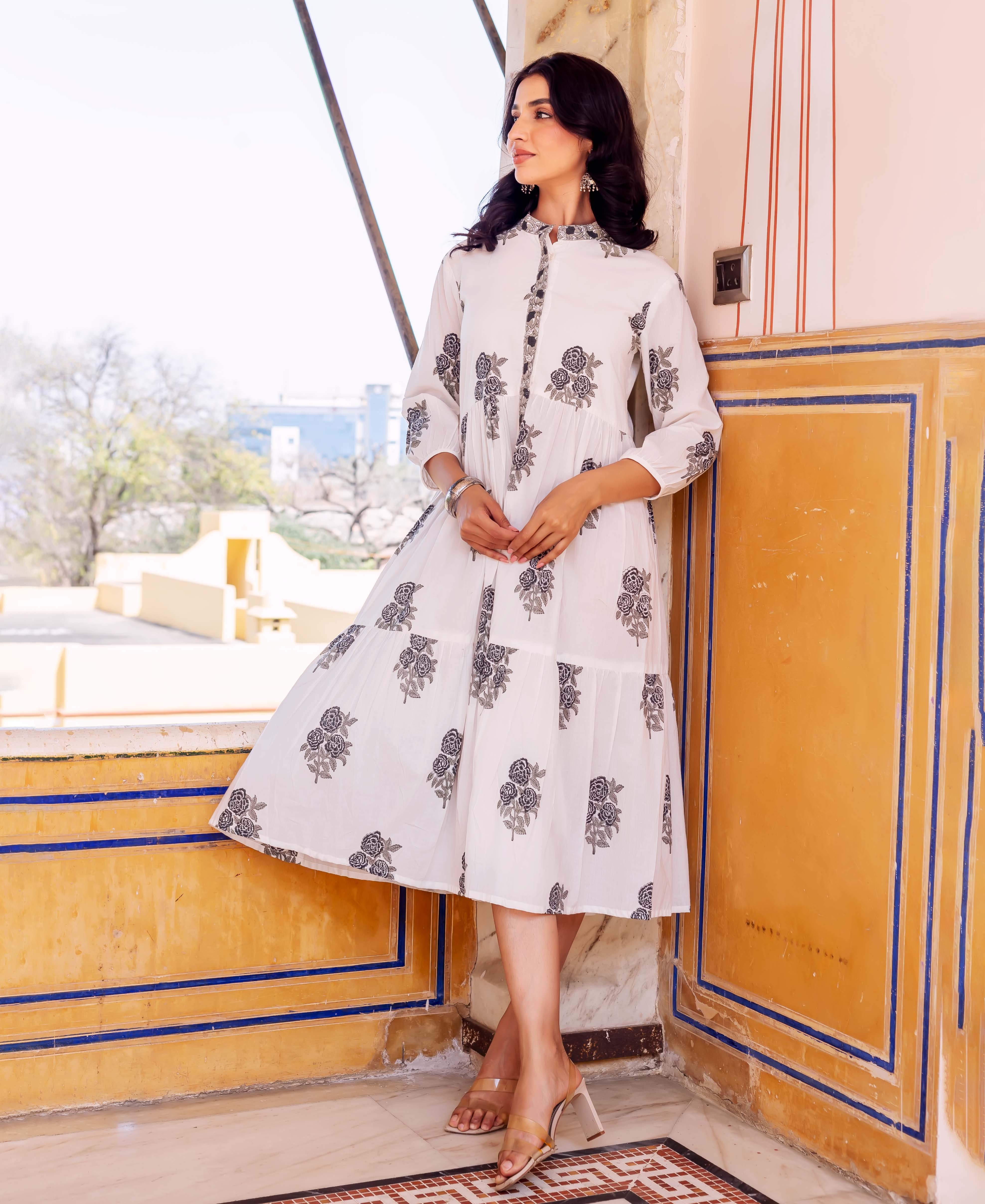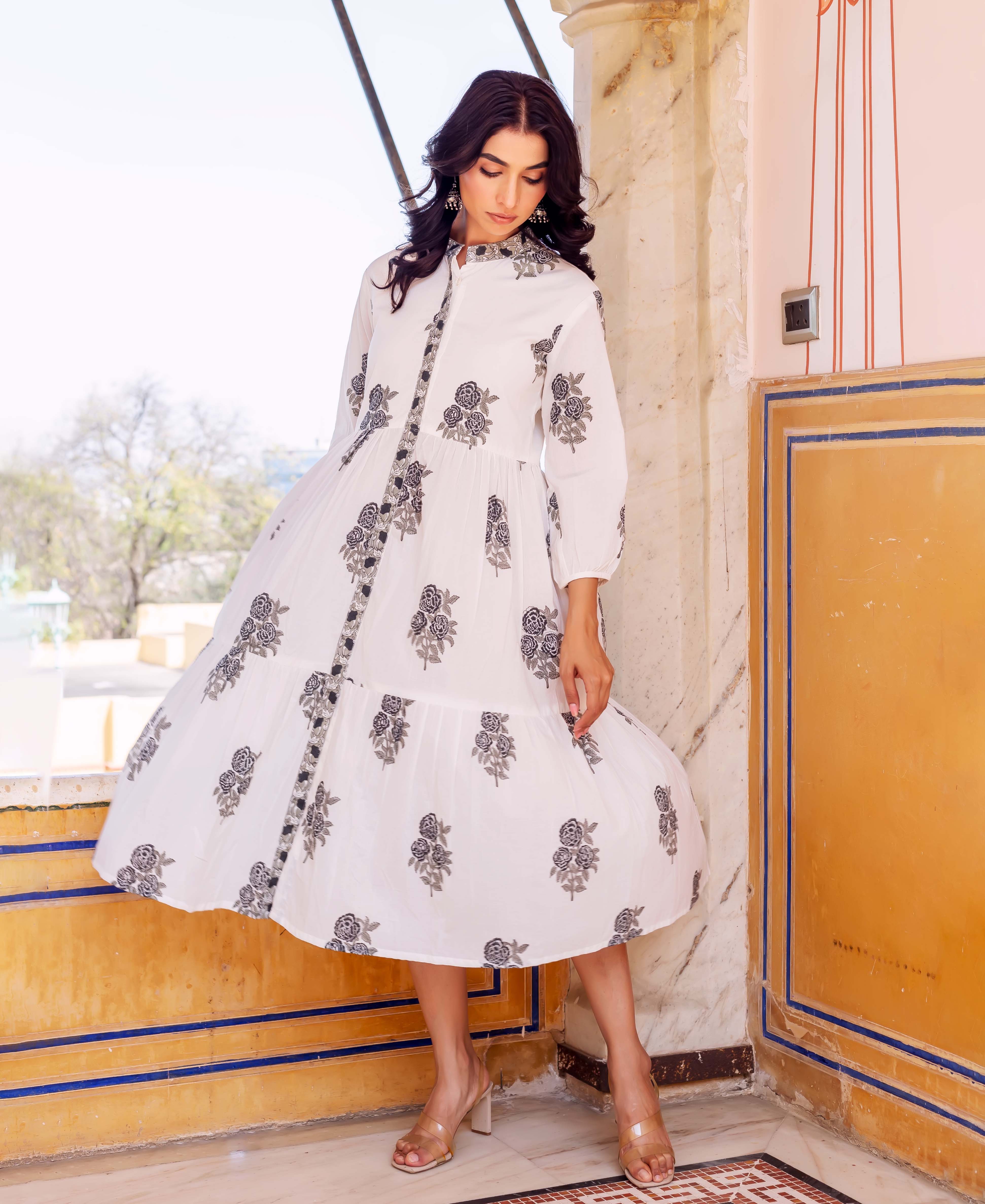 White Butta Printed Tiered Dress