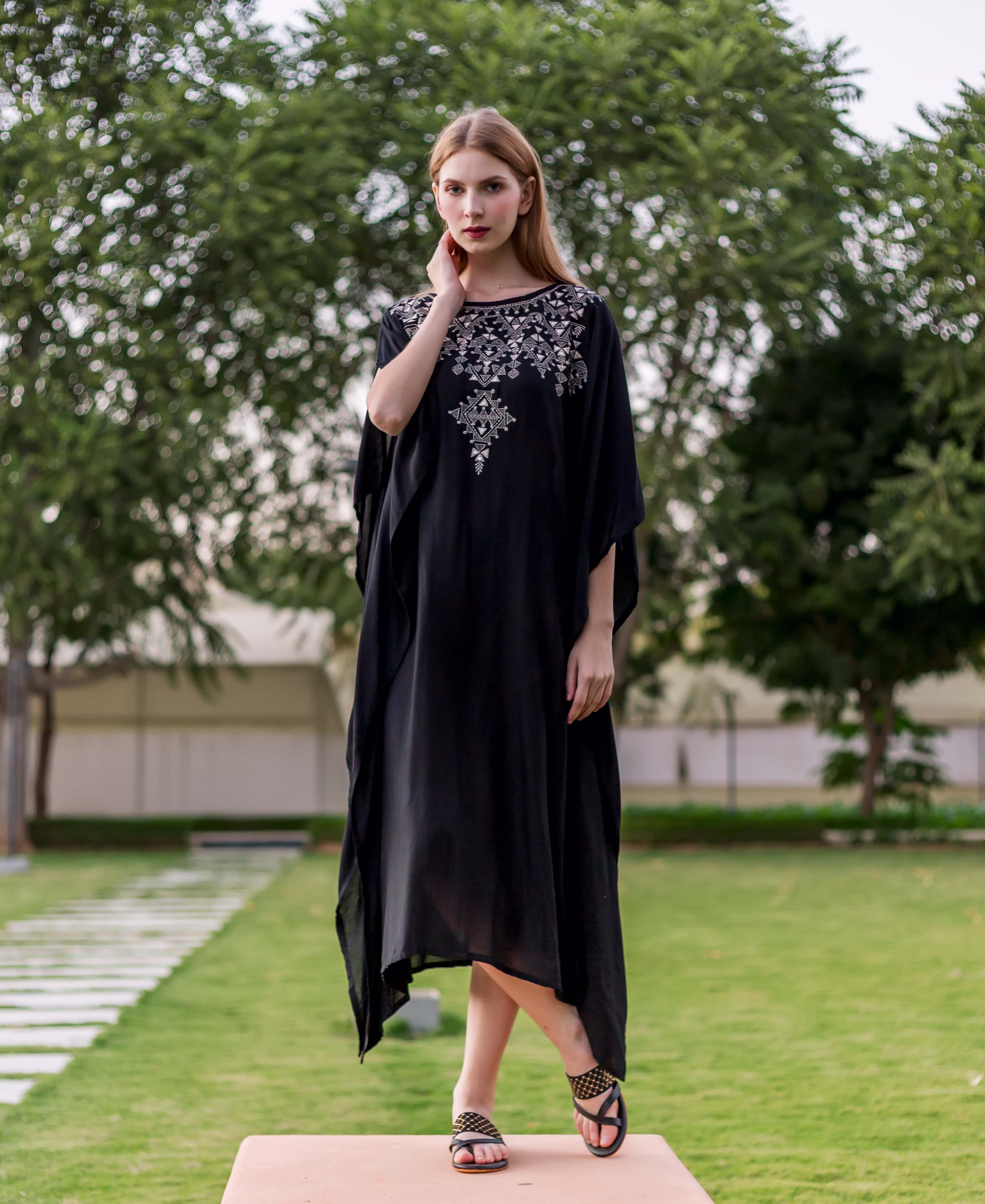 Black Embroidered Kaftan