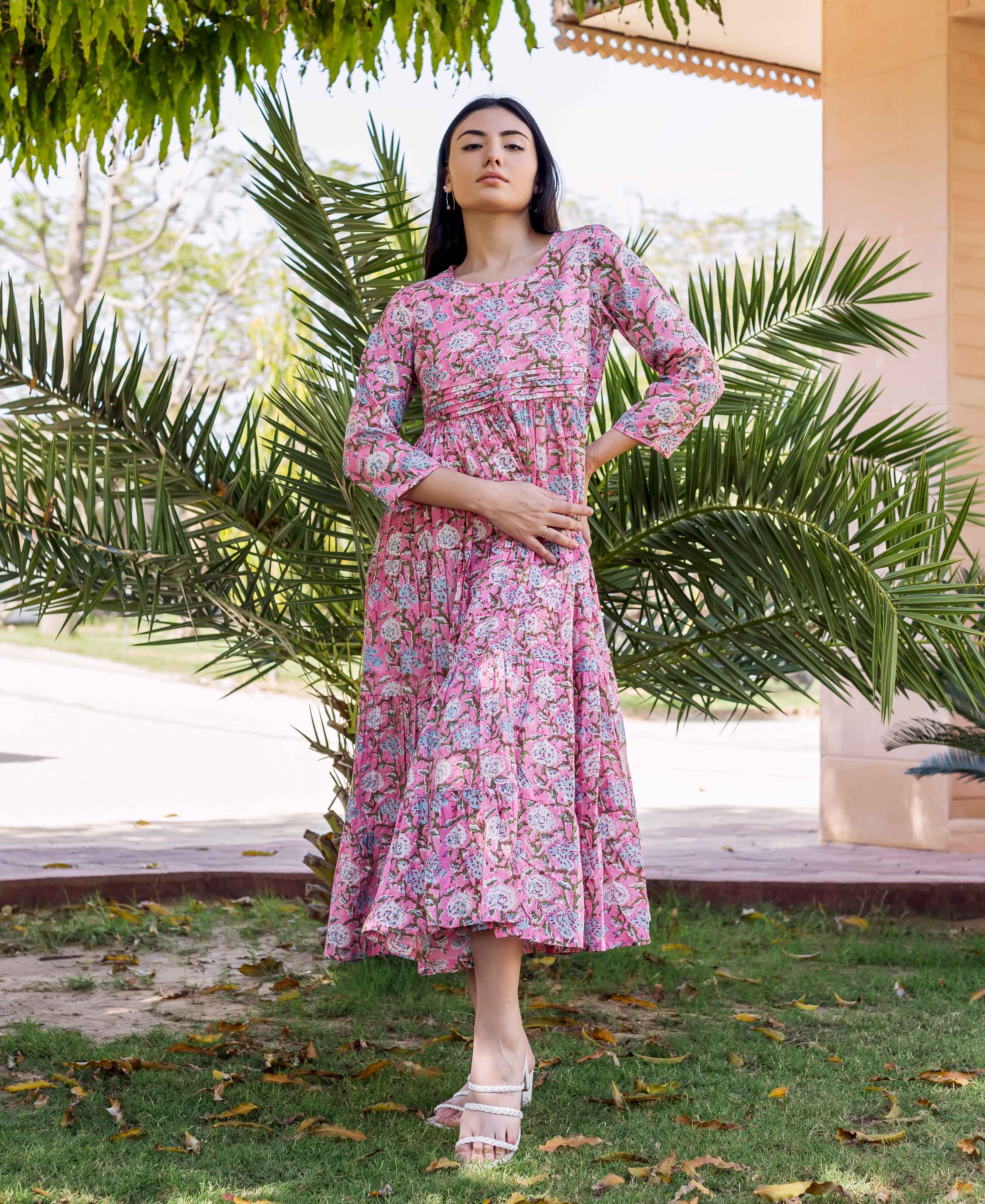 Pink Block Printed Tiered Laila Dress