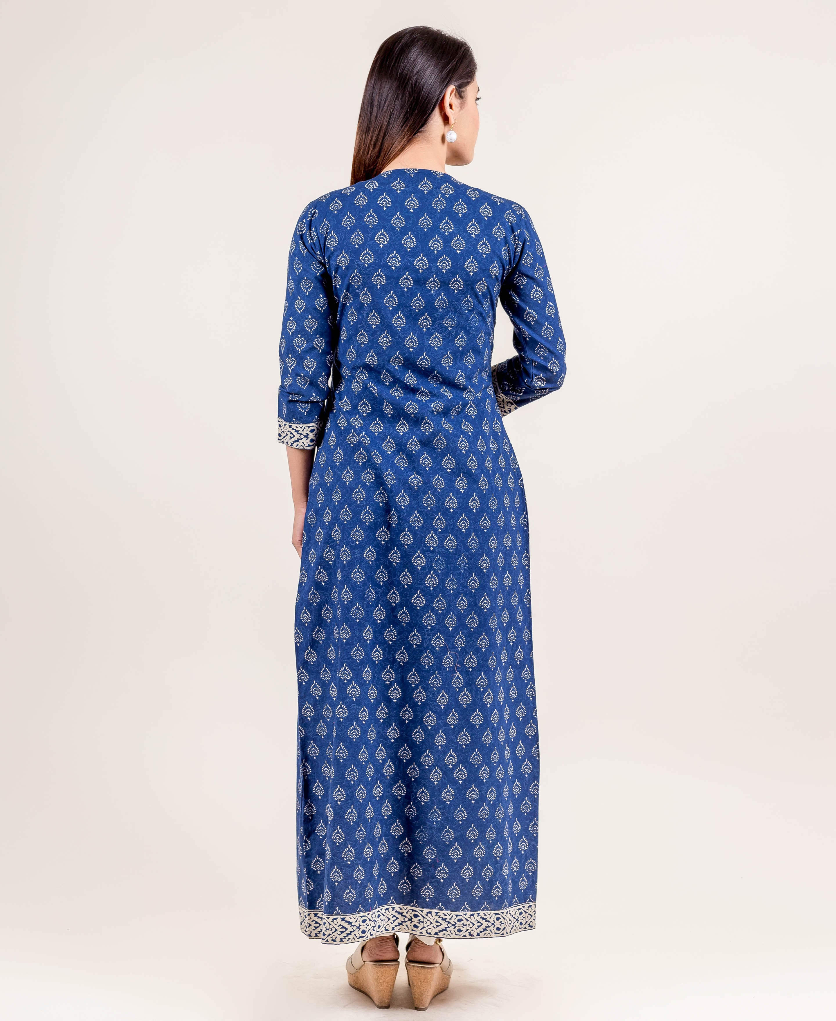 Blue Hand Block Printed Indo Western Dress