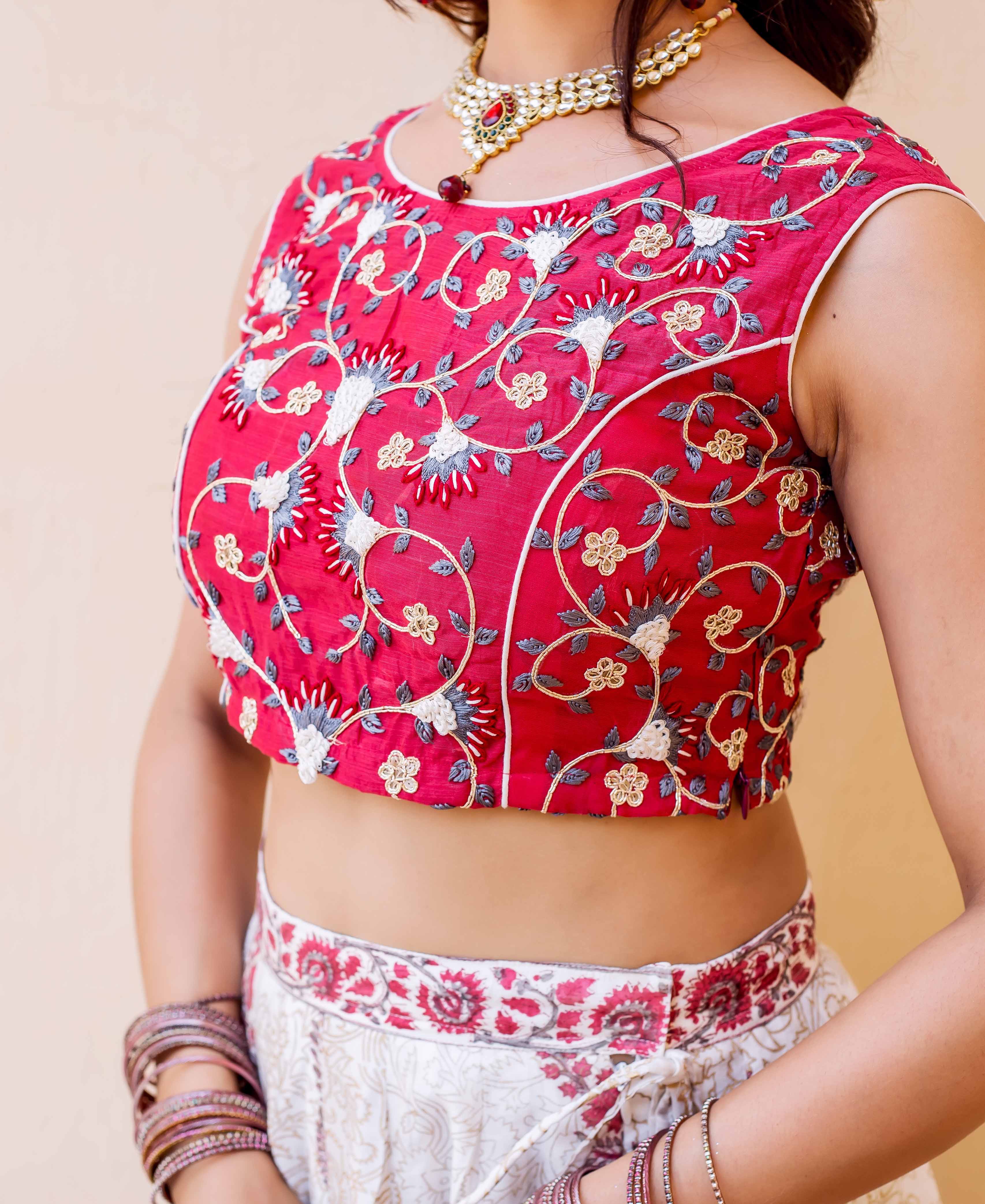 Heena Hand Block Printed and Embroidered Lehenga Set