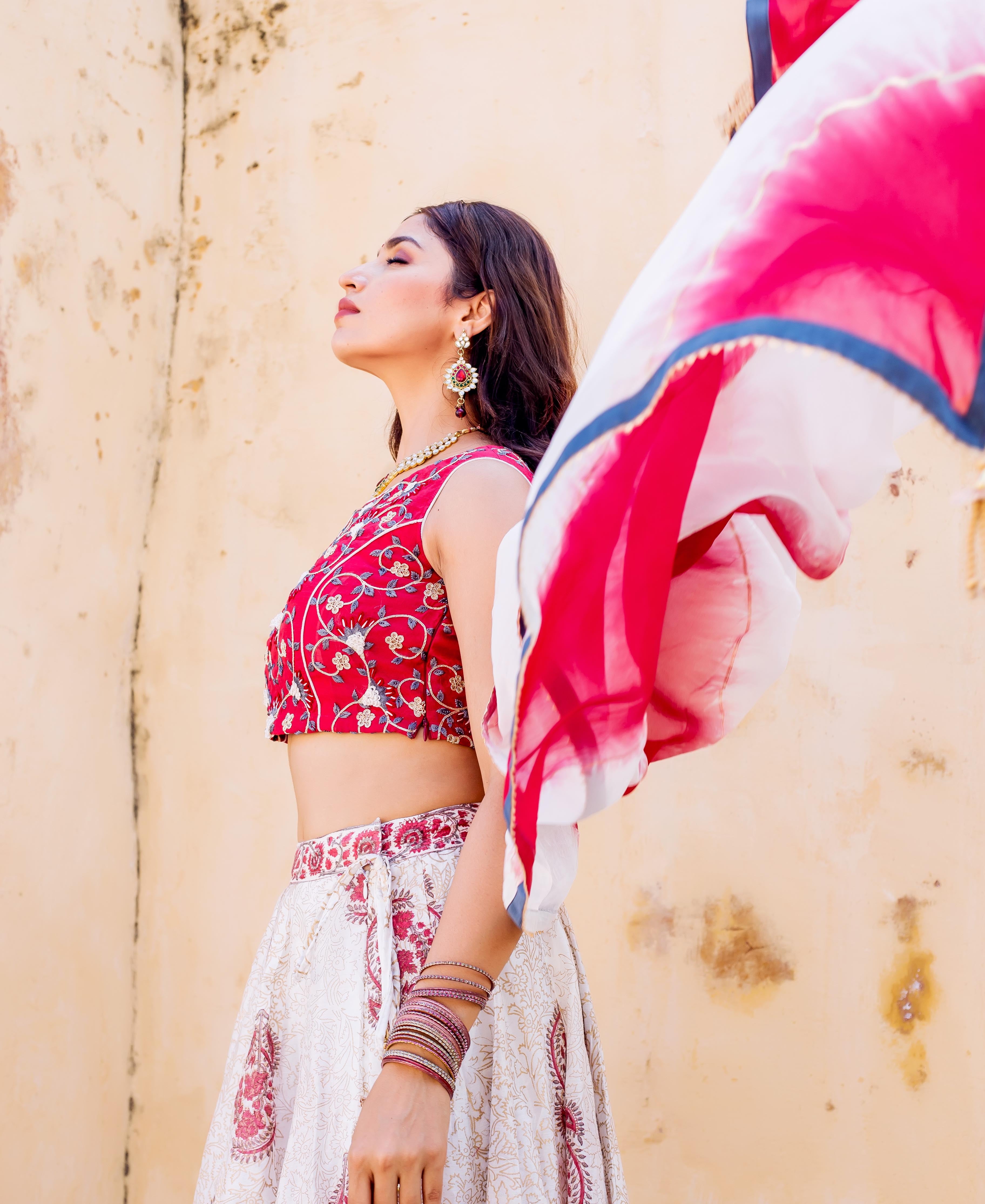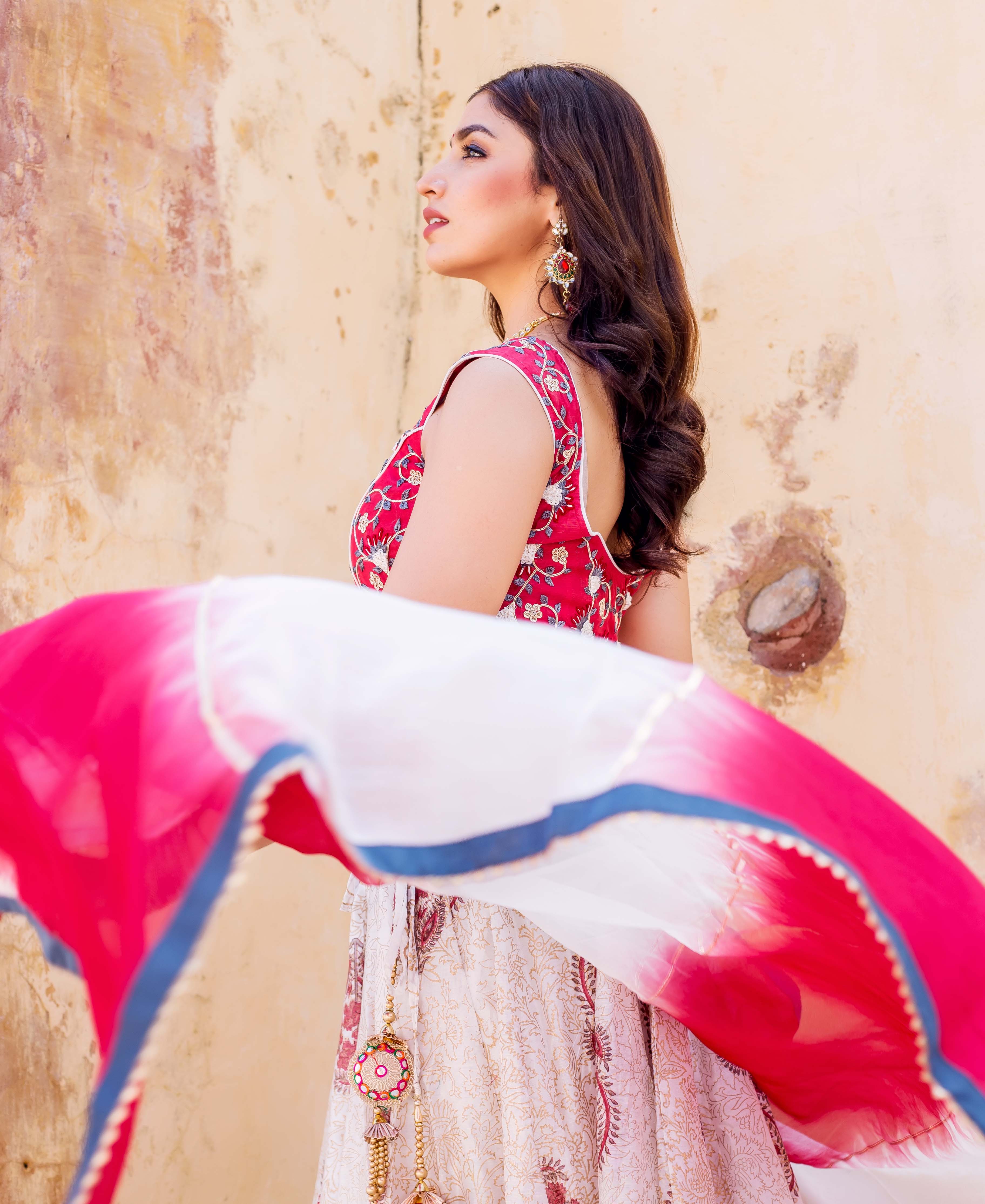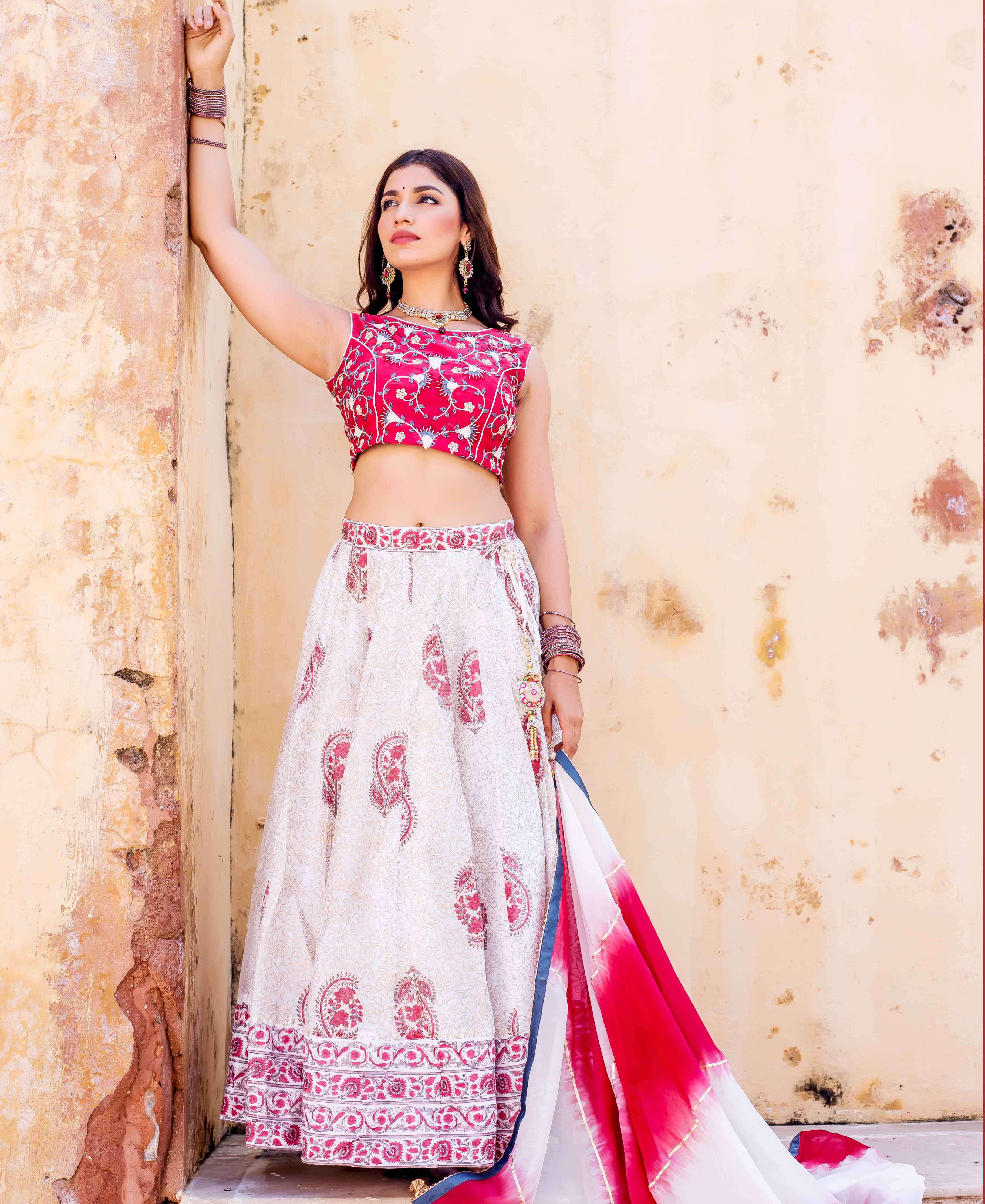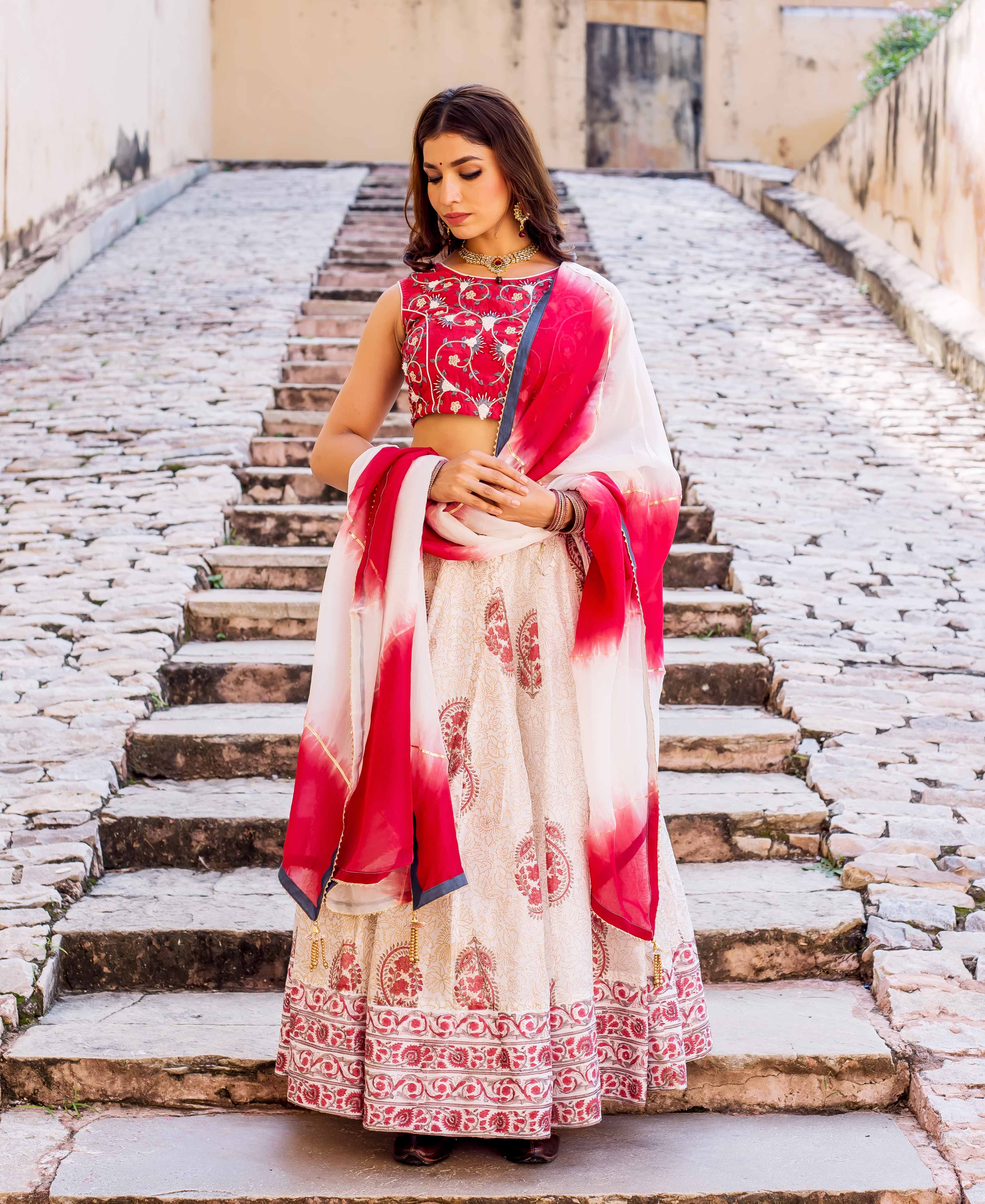 Zoya Hand Block Printed and Embroidered Lehenga Set