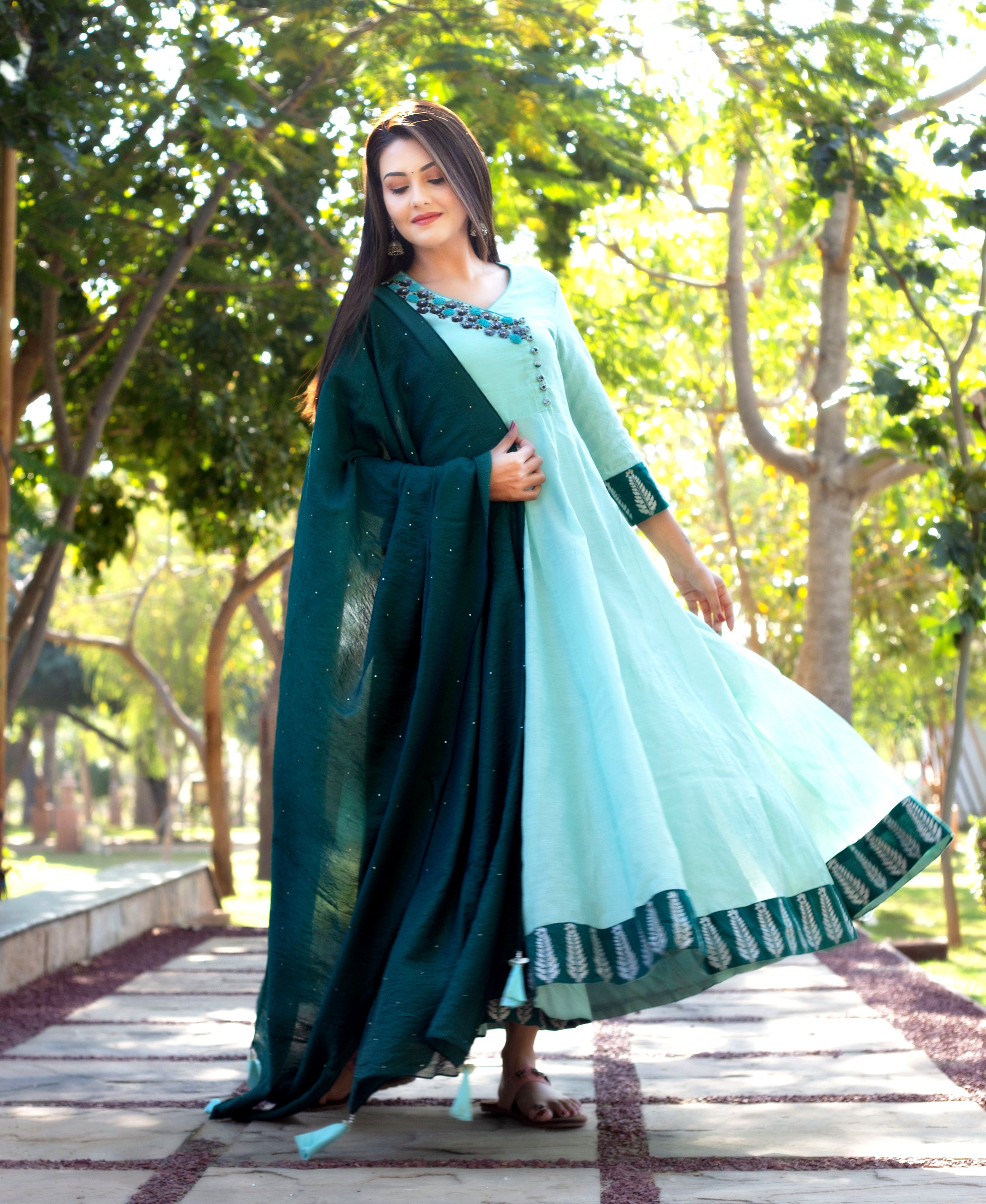 Noora Mint Green Hand Embroidered Angrakha Style Dress