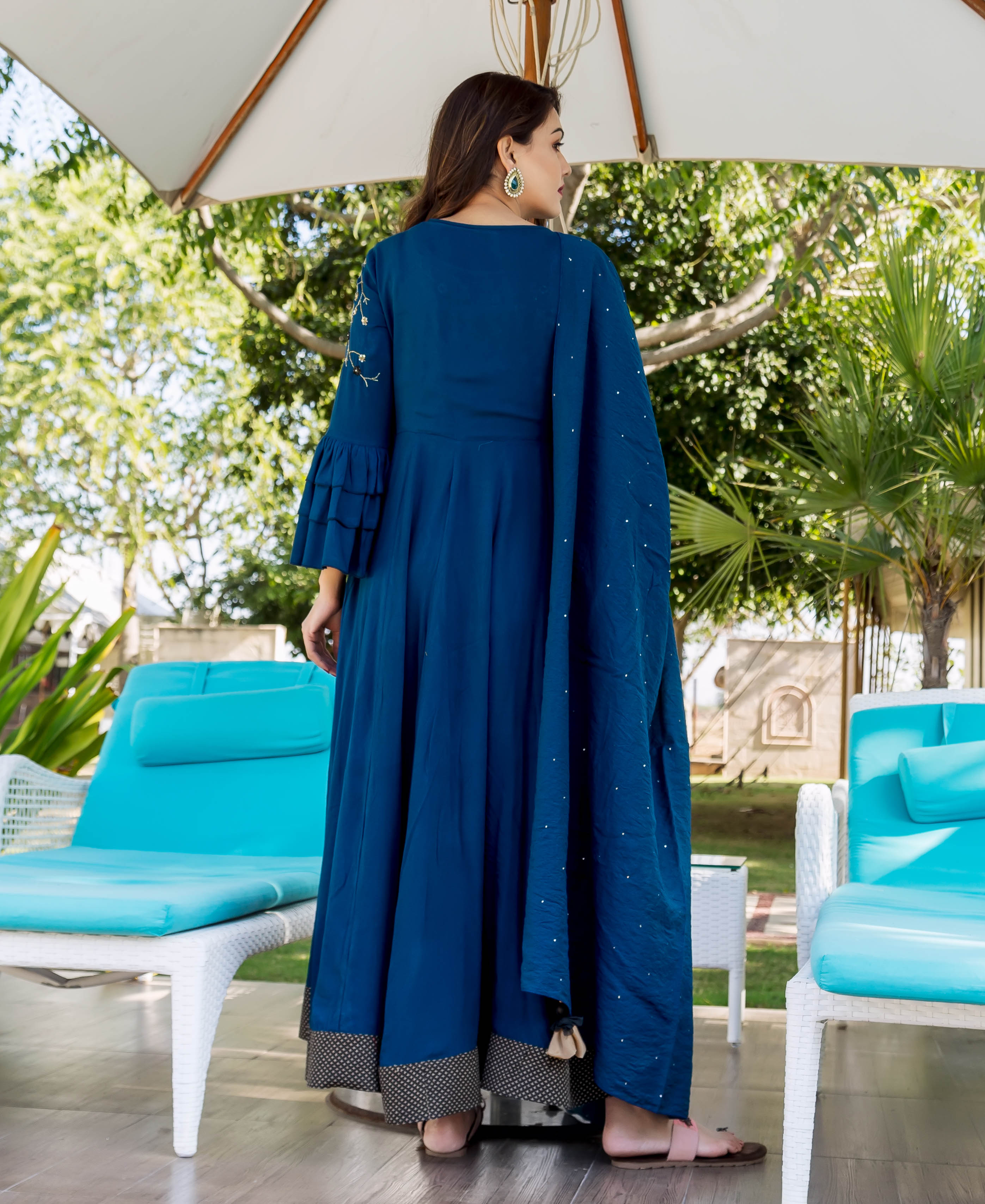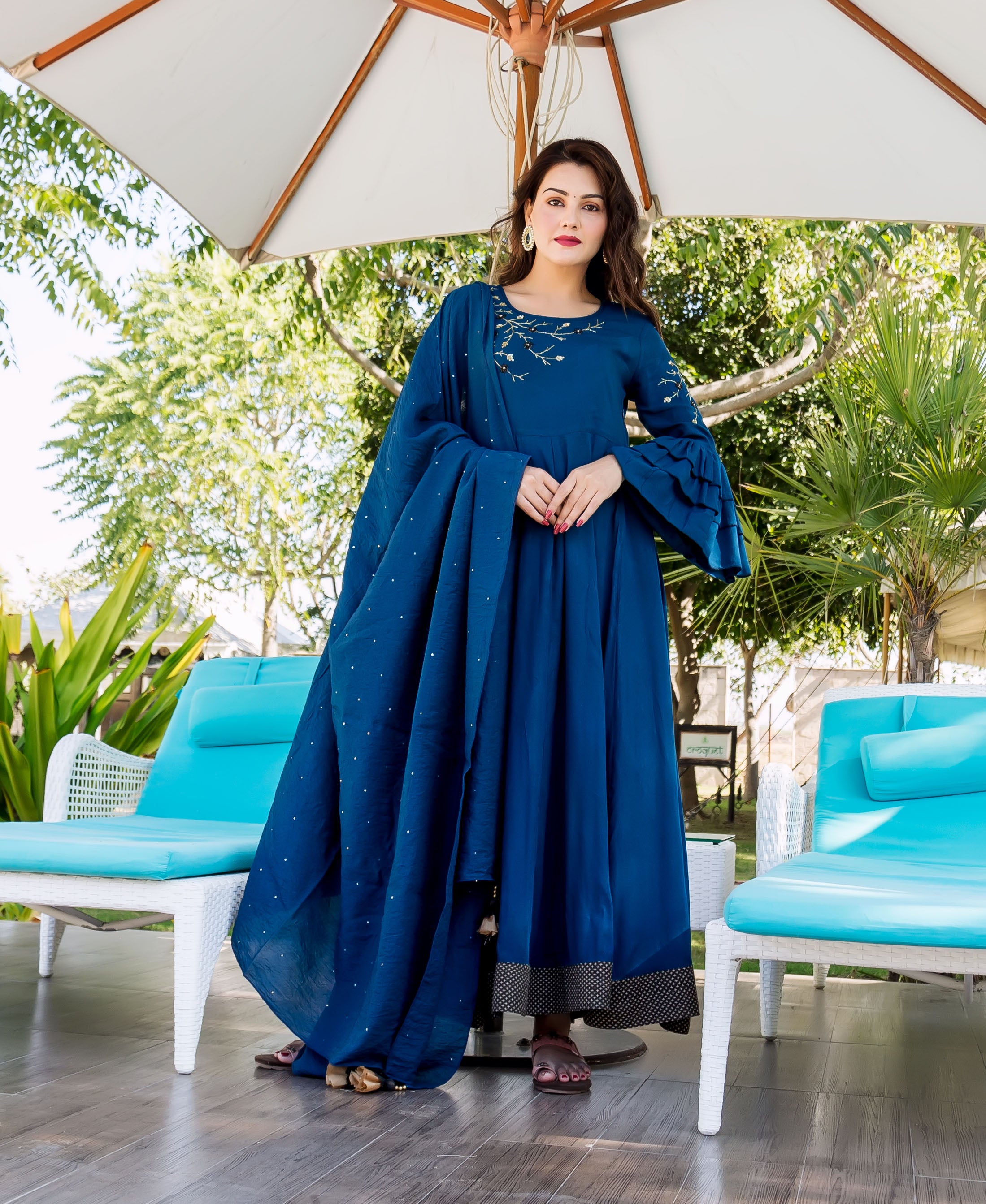 Yukta Oxford Blue Hand Embroidered Anarkali Dress
