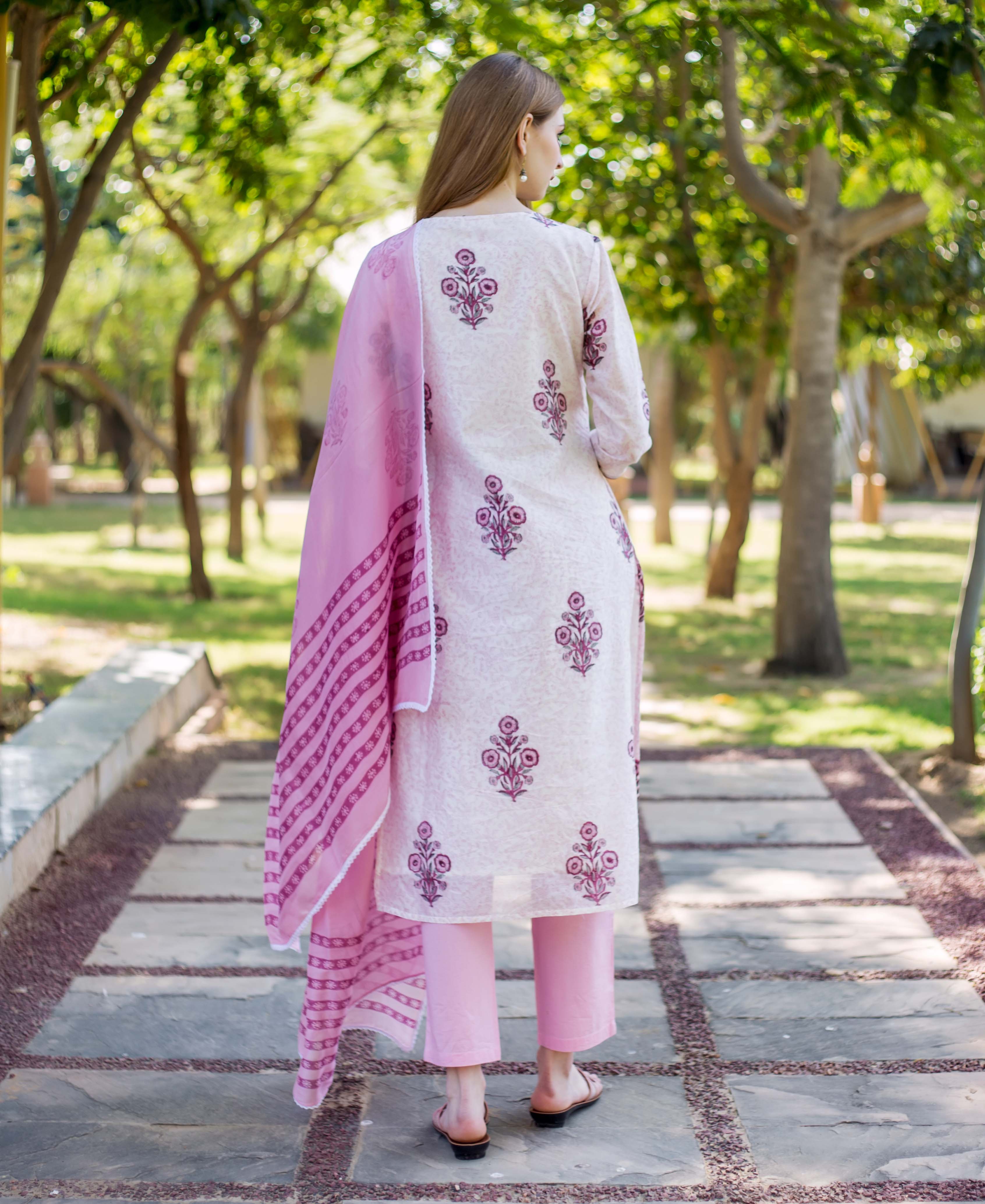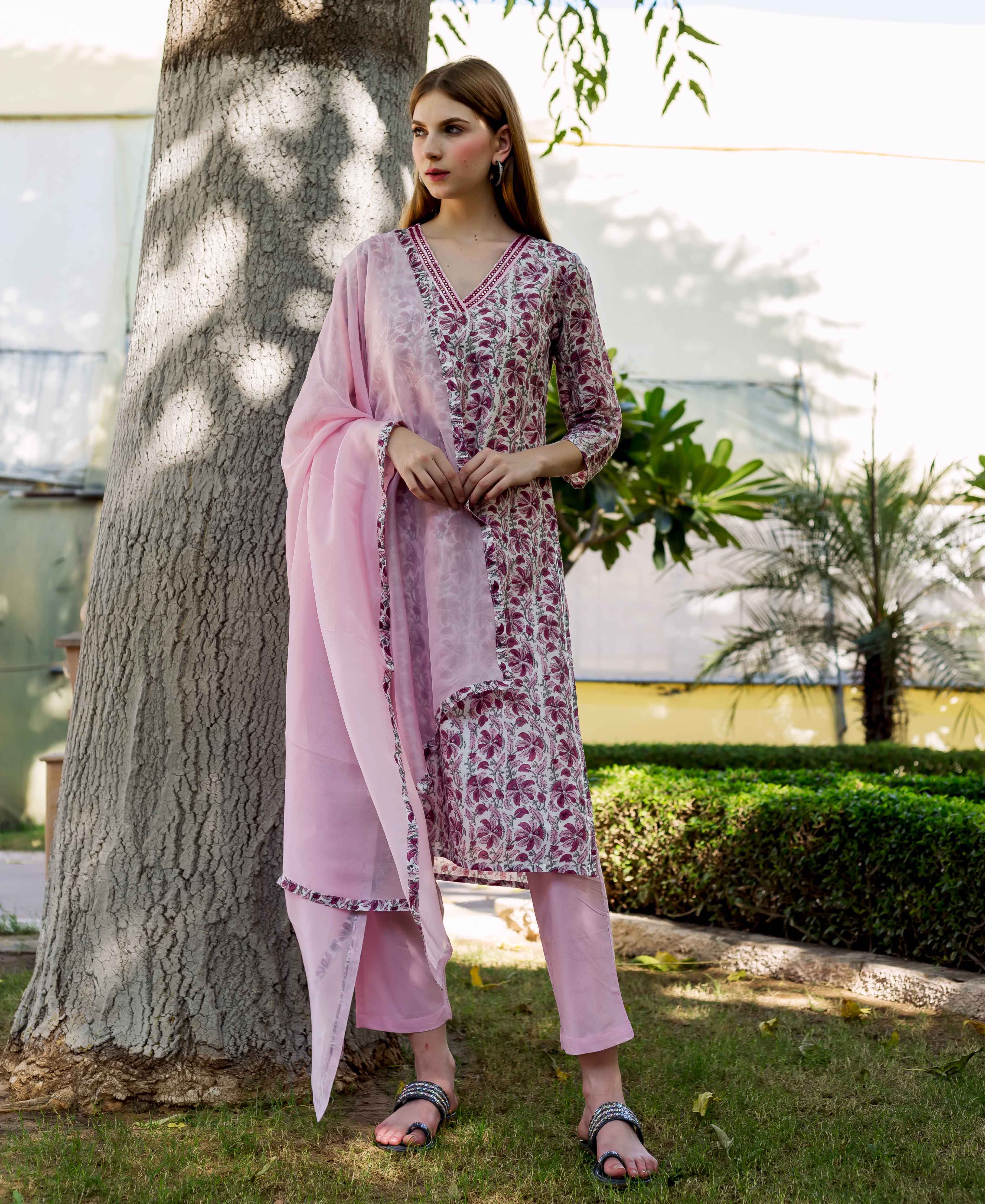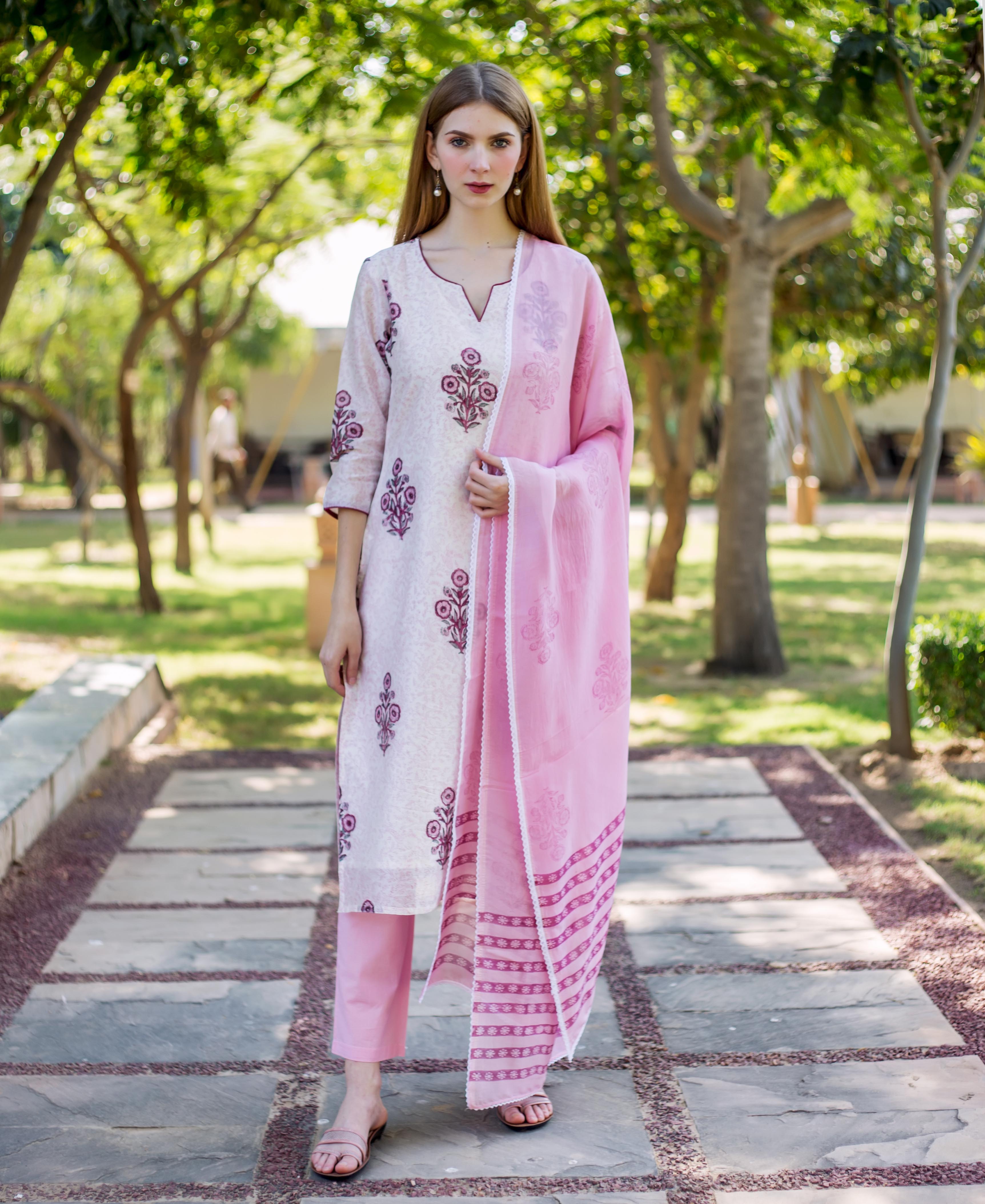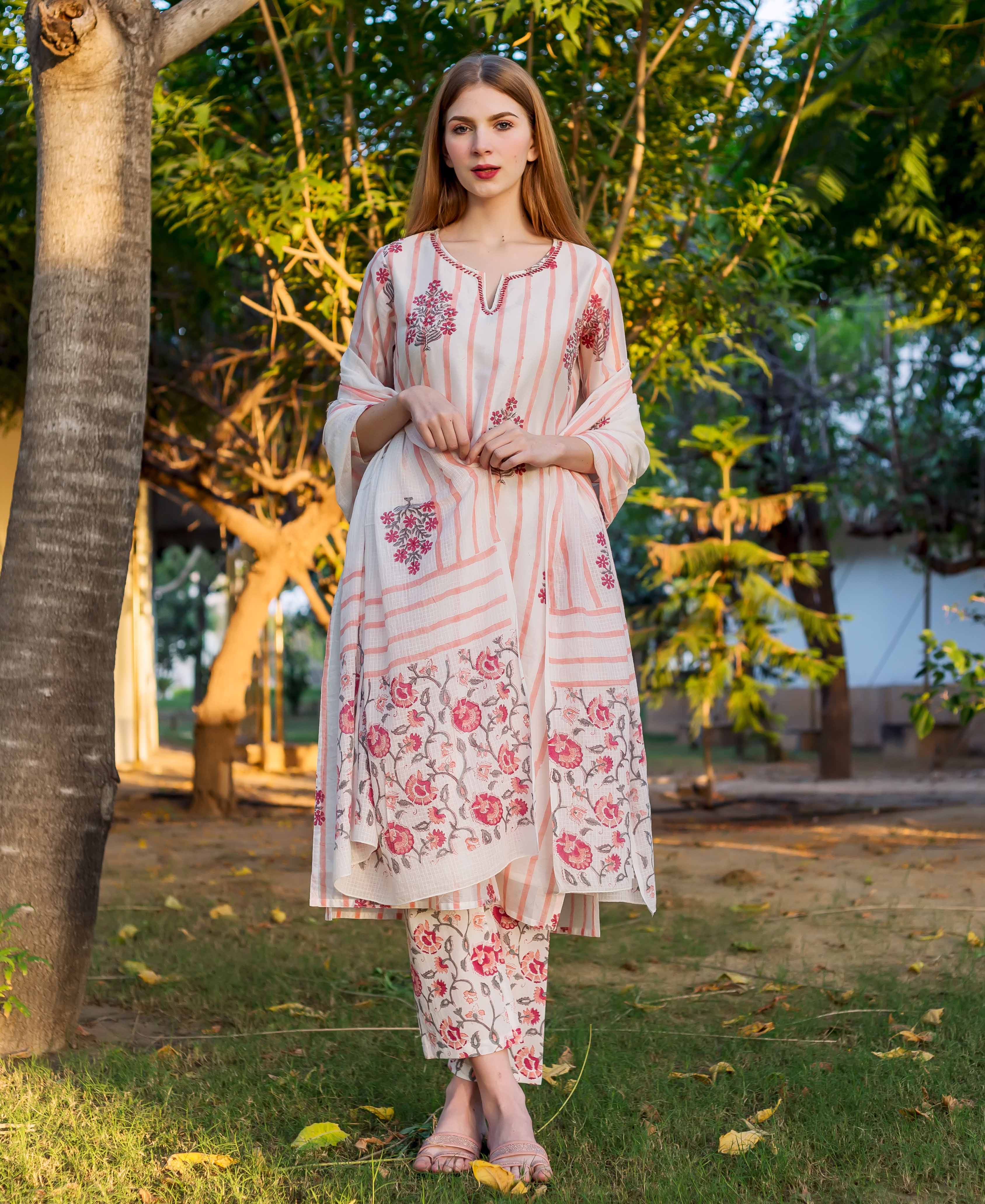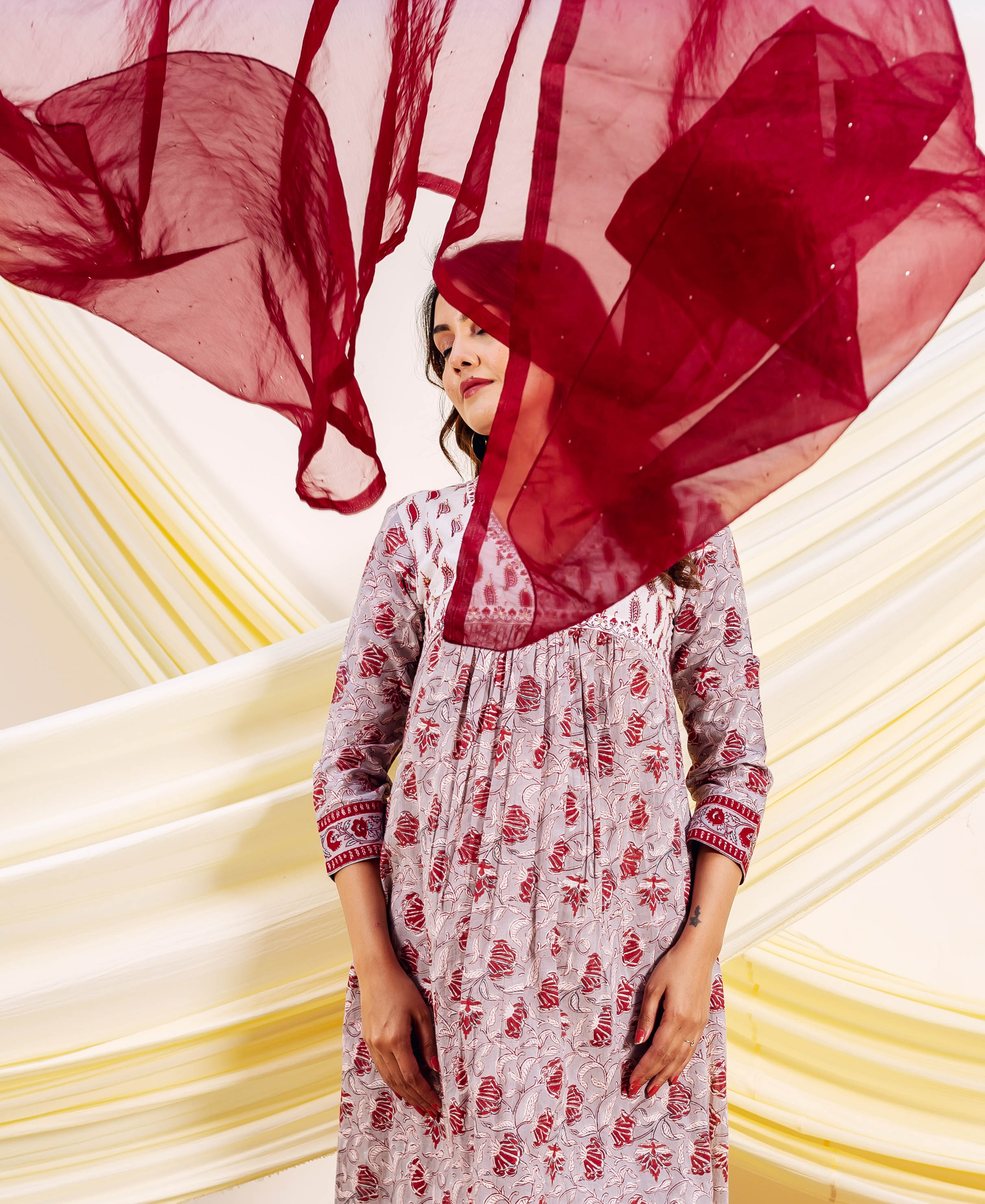Indigo Hand Block Printed & Embroidered Straight Kurta