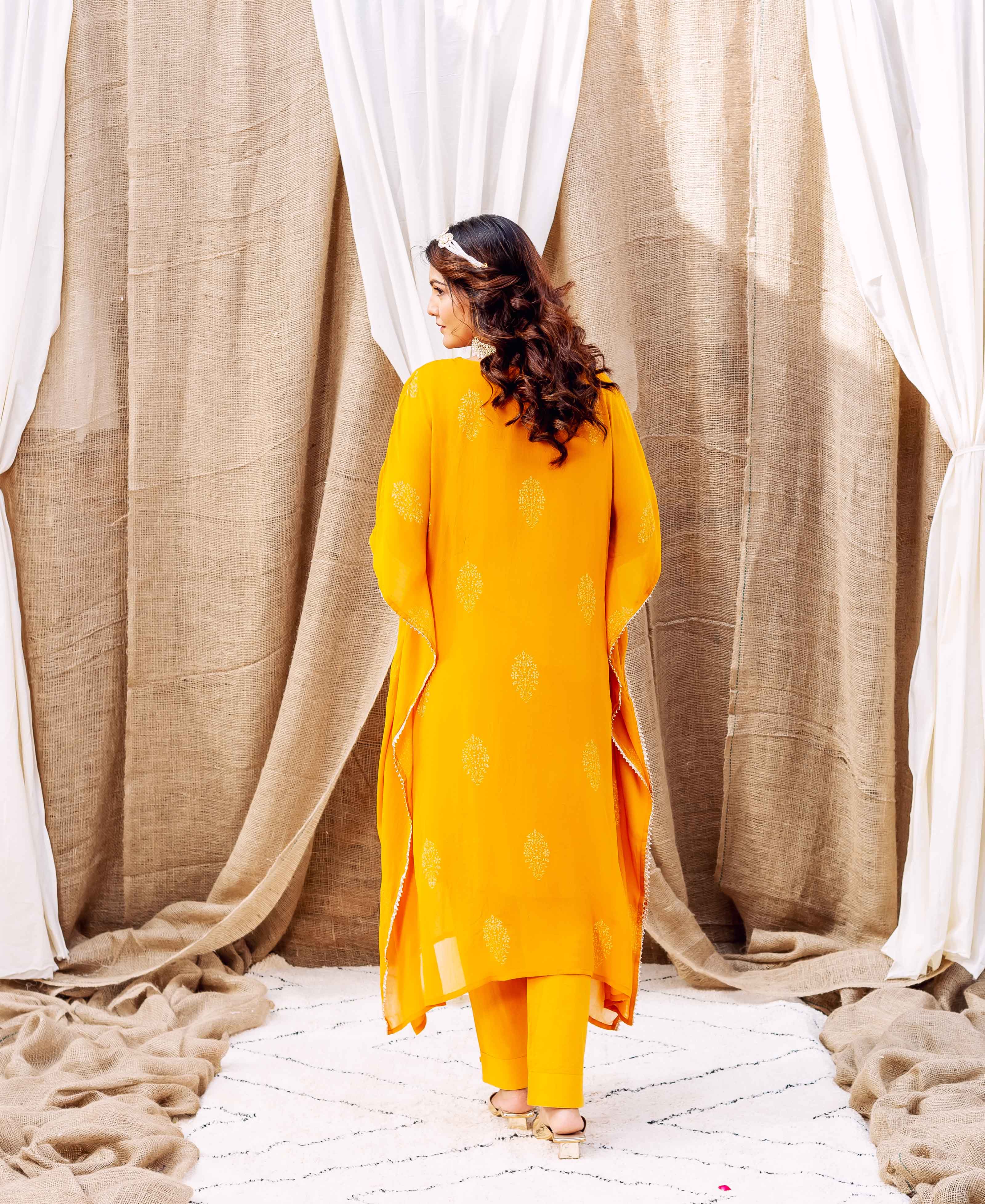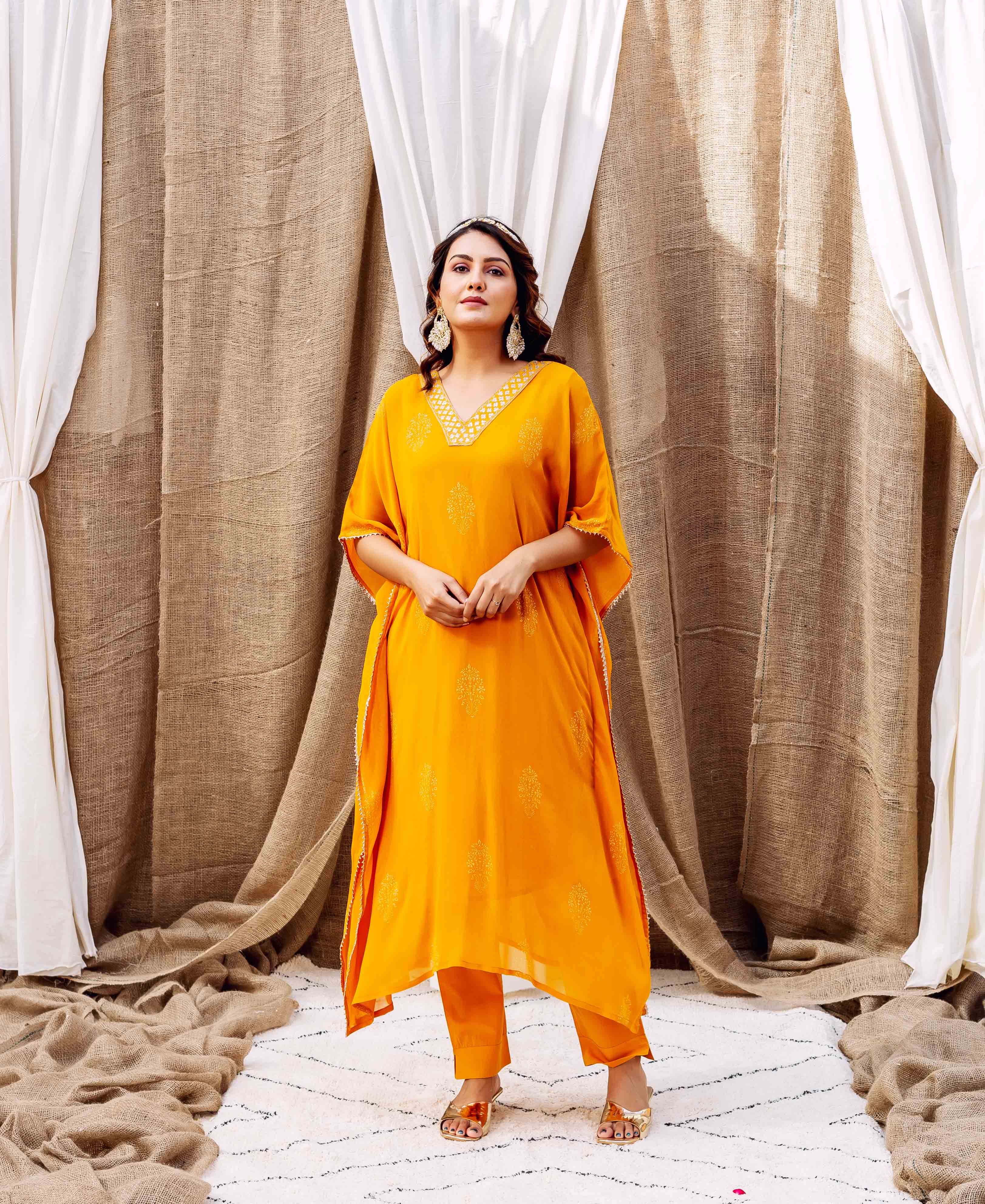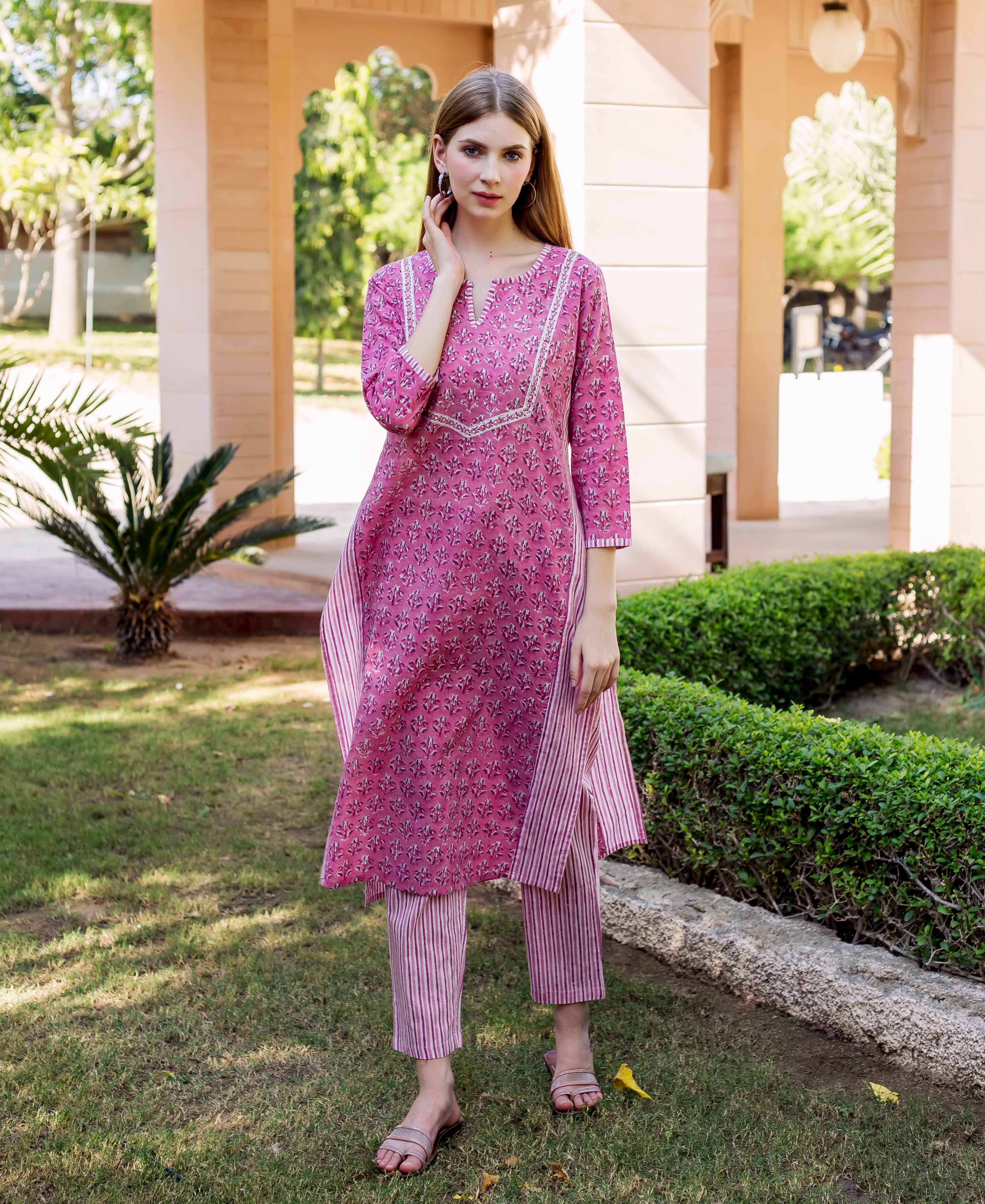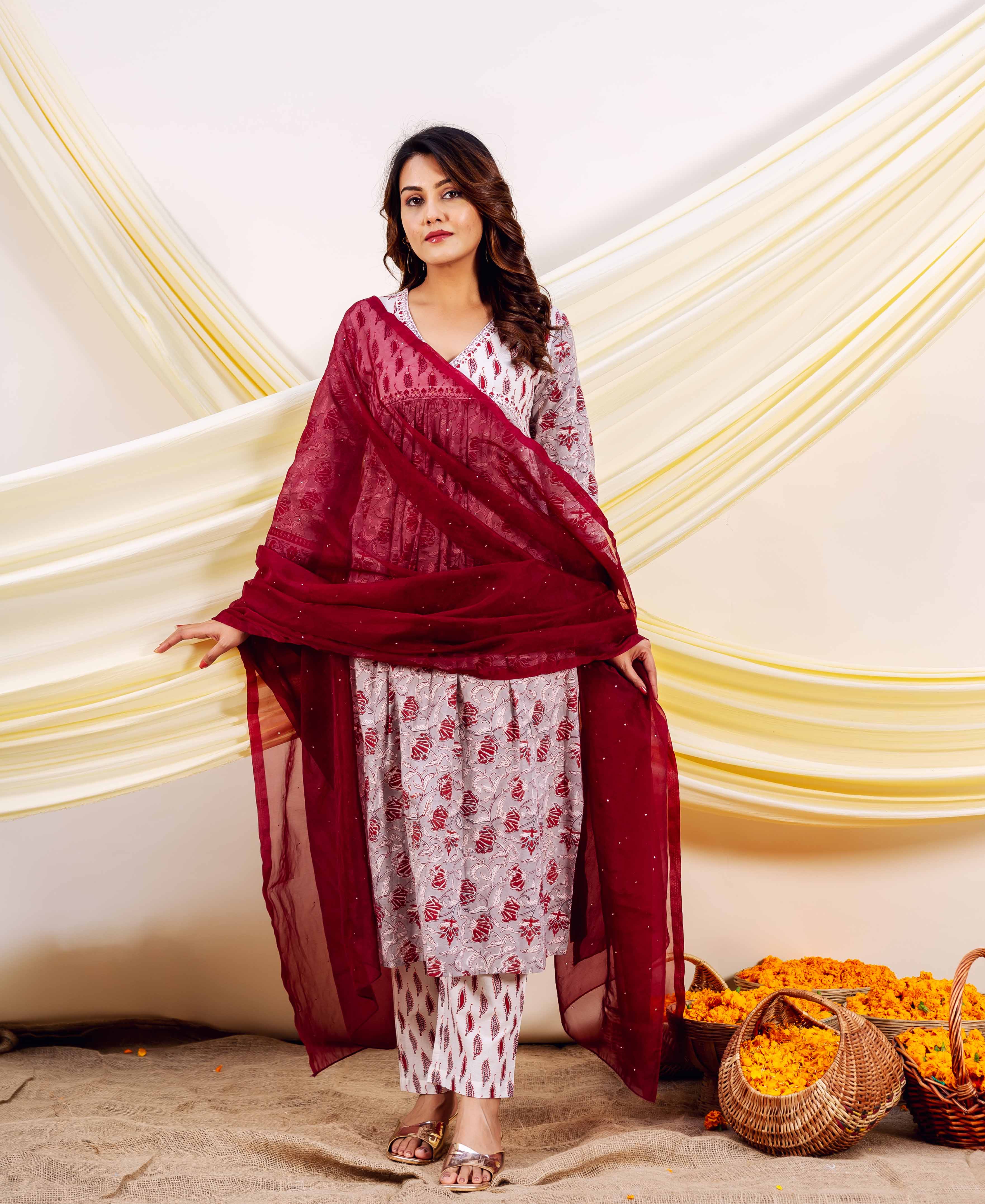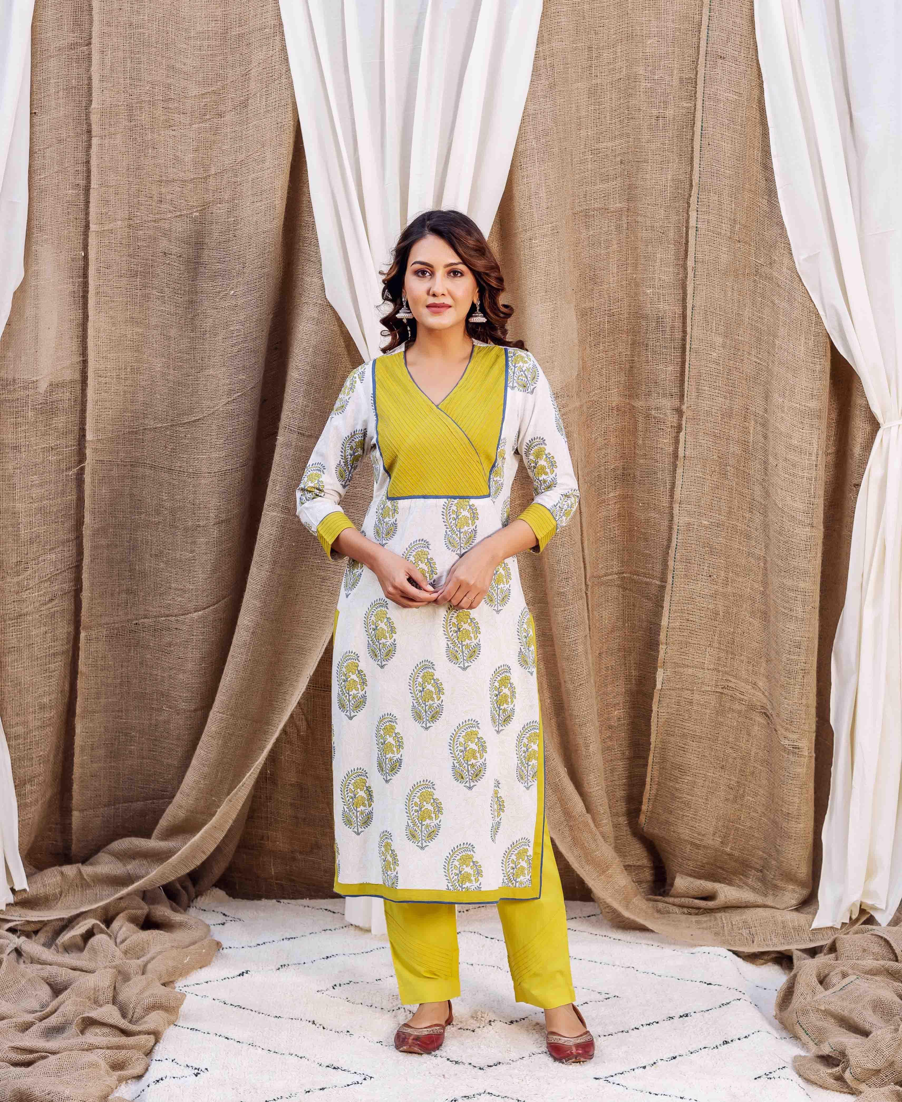 Indigo Hand Block Printed & Embroidered Straight Kurta