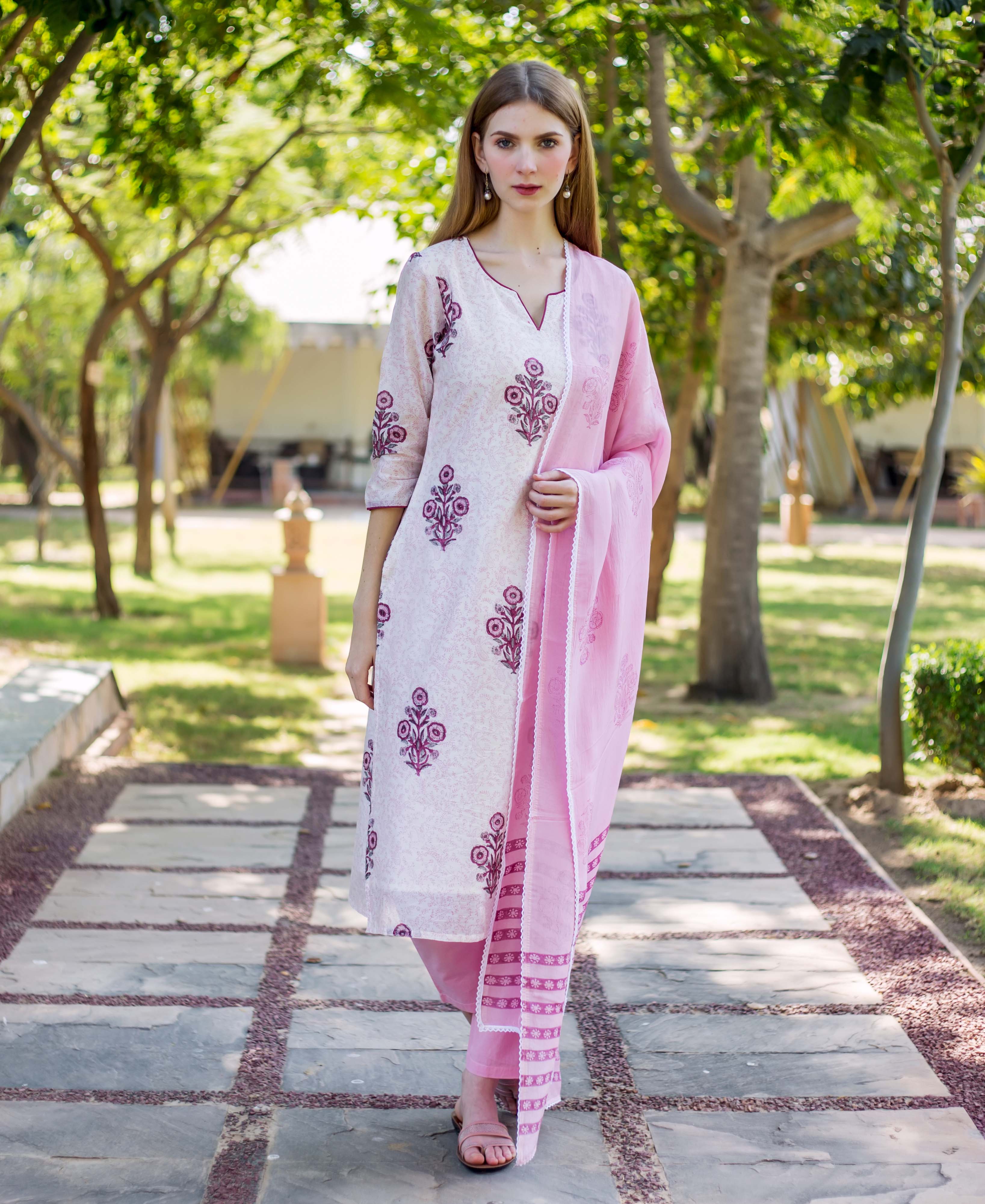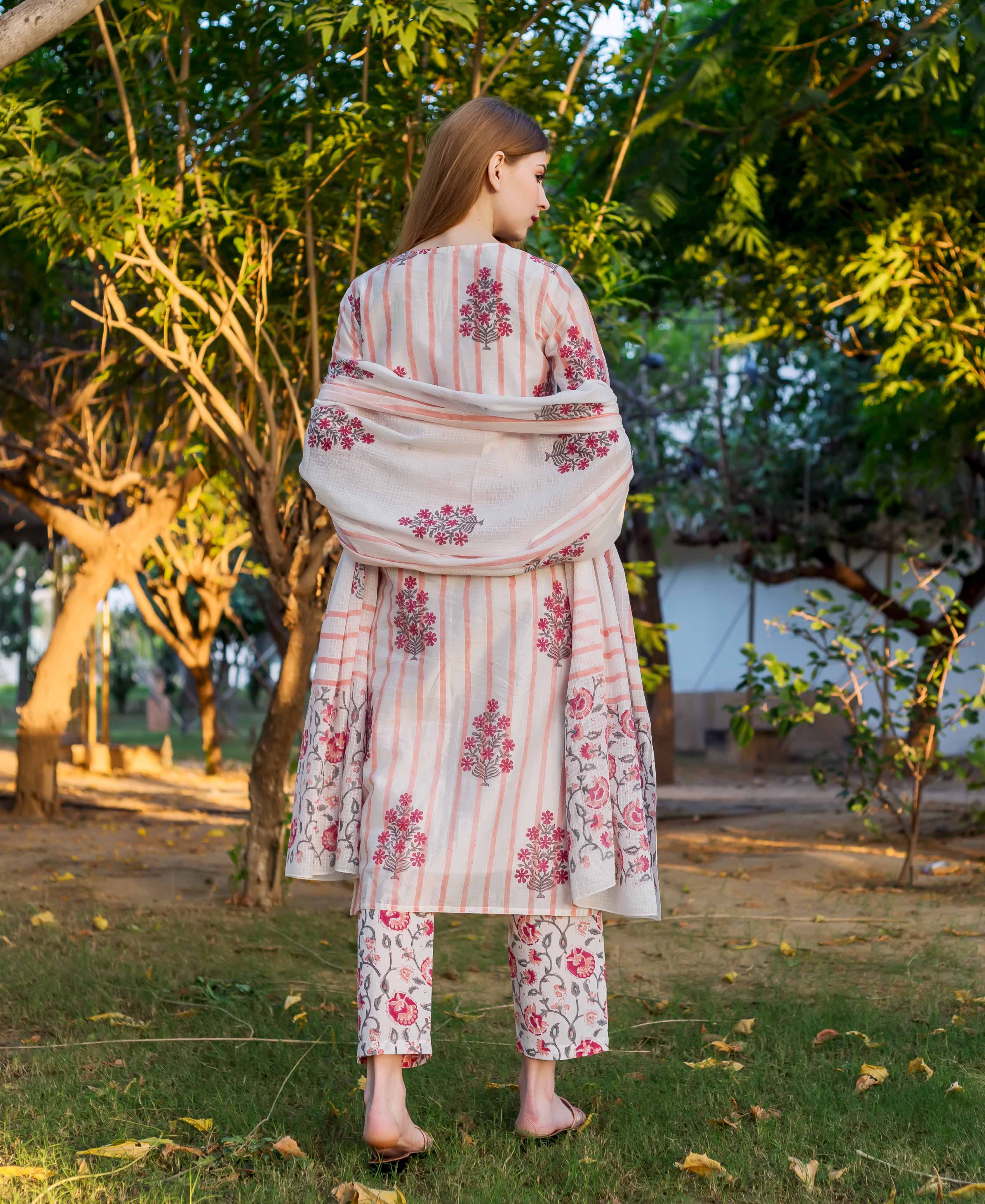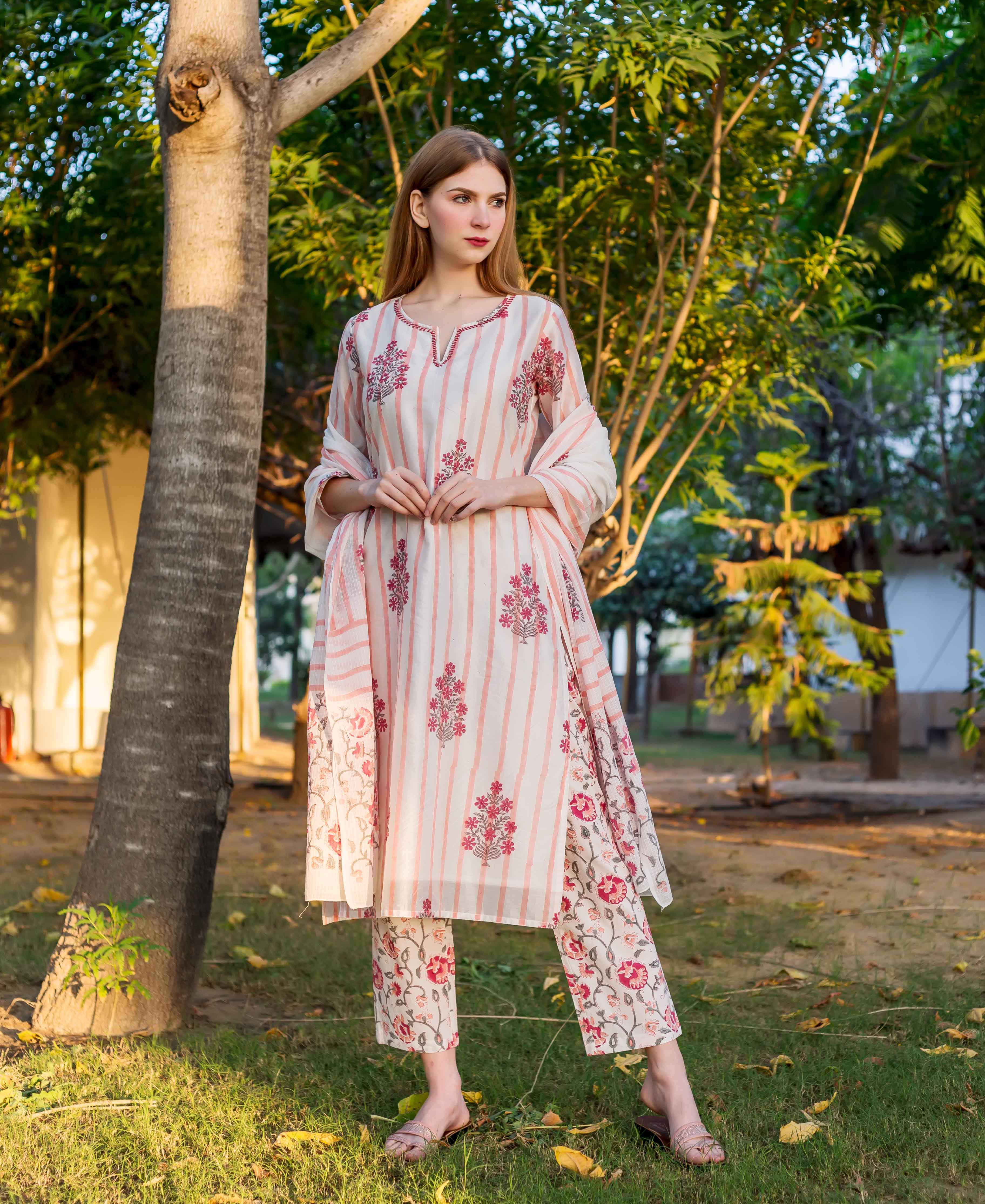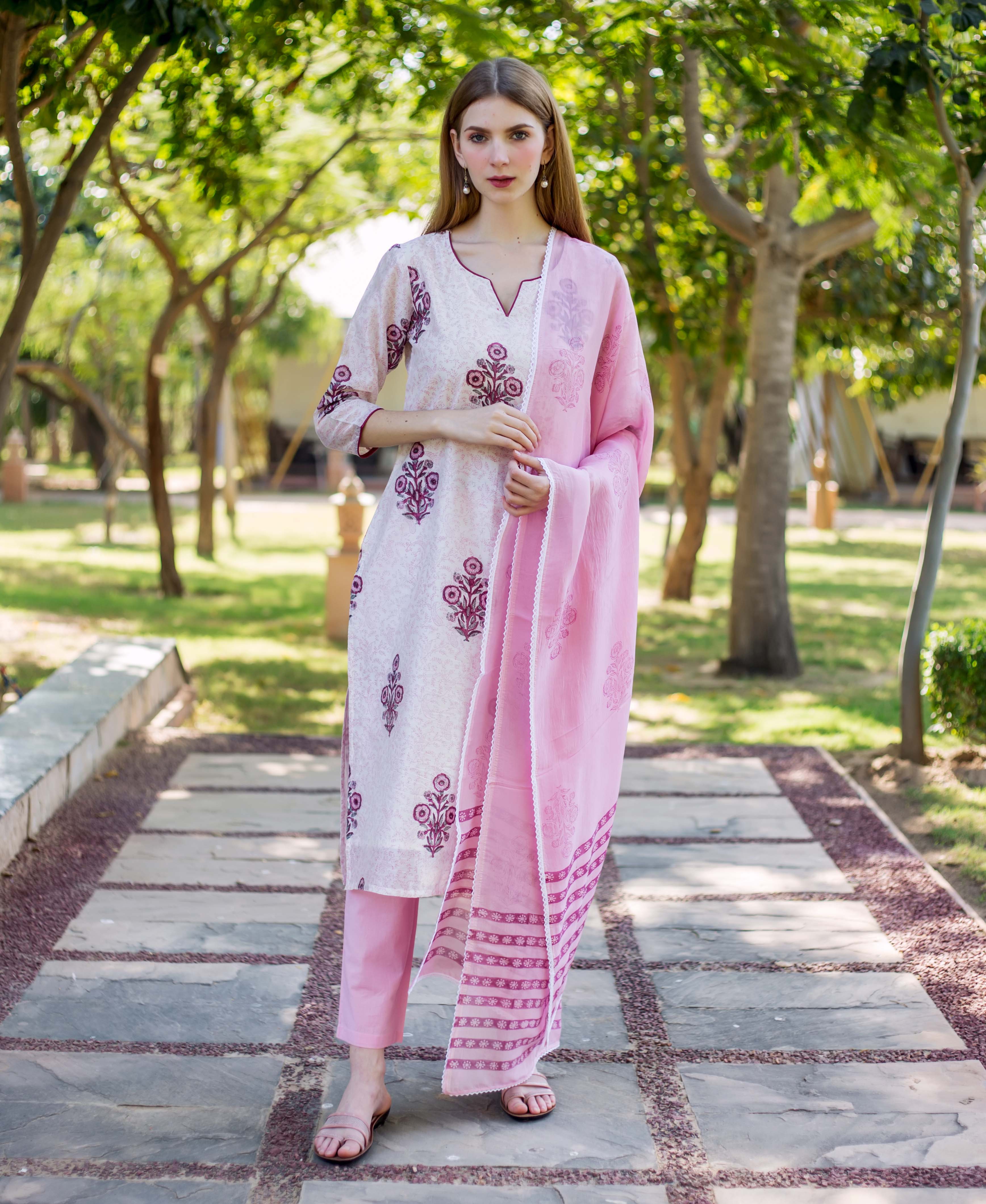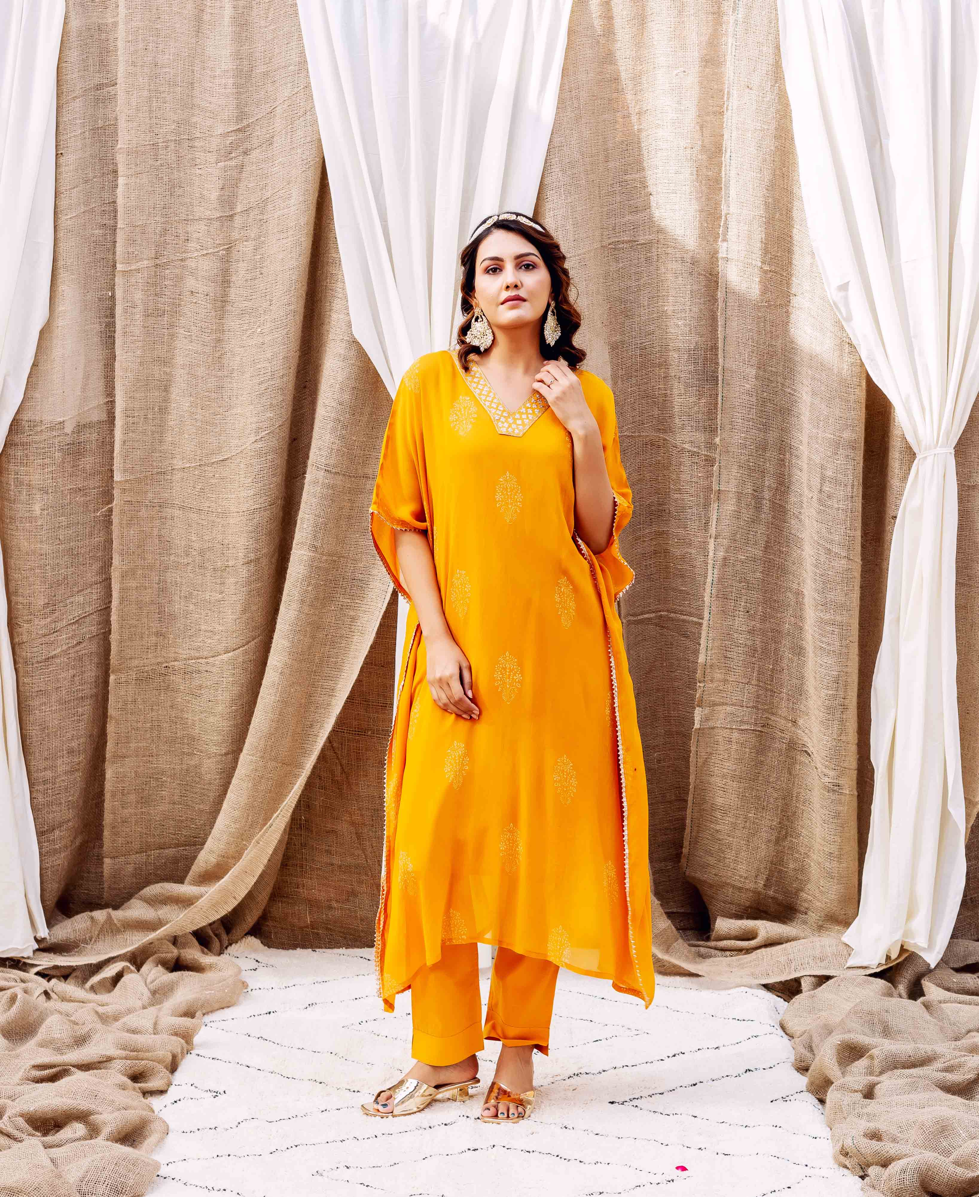 Indigo Hand Block Printed & Embroidered Straight Kurta