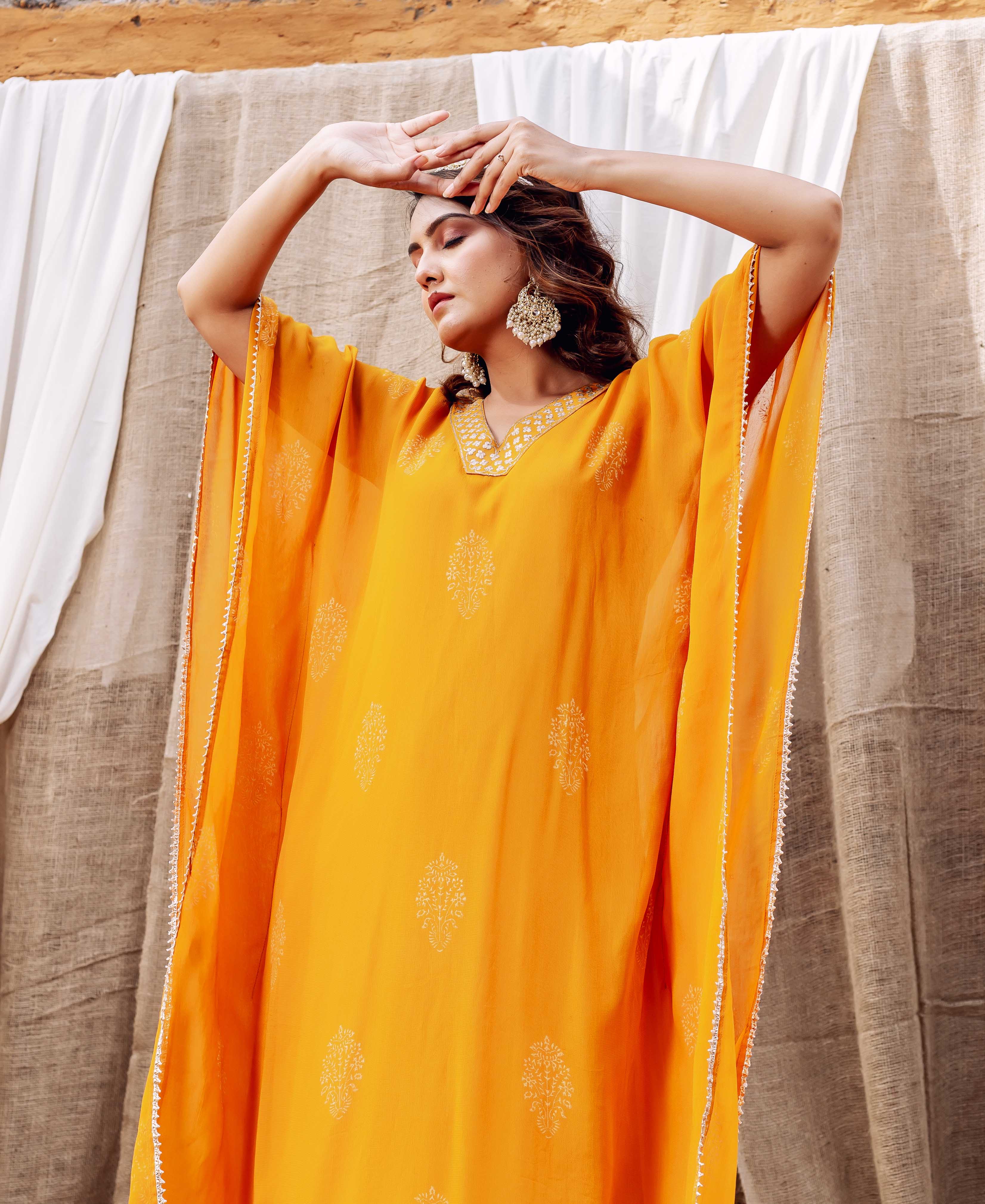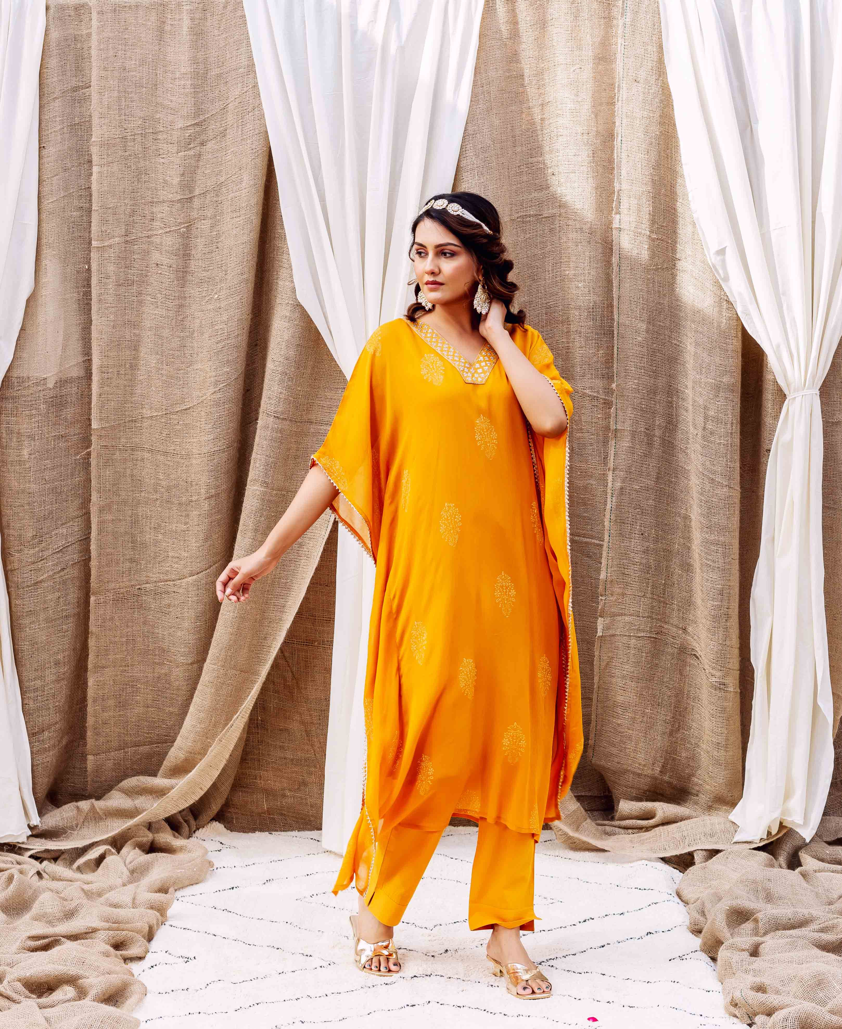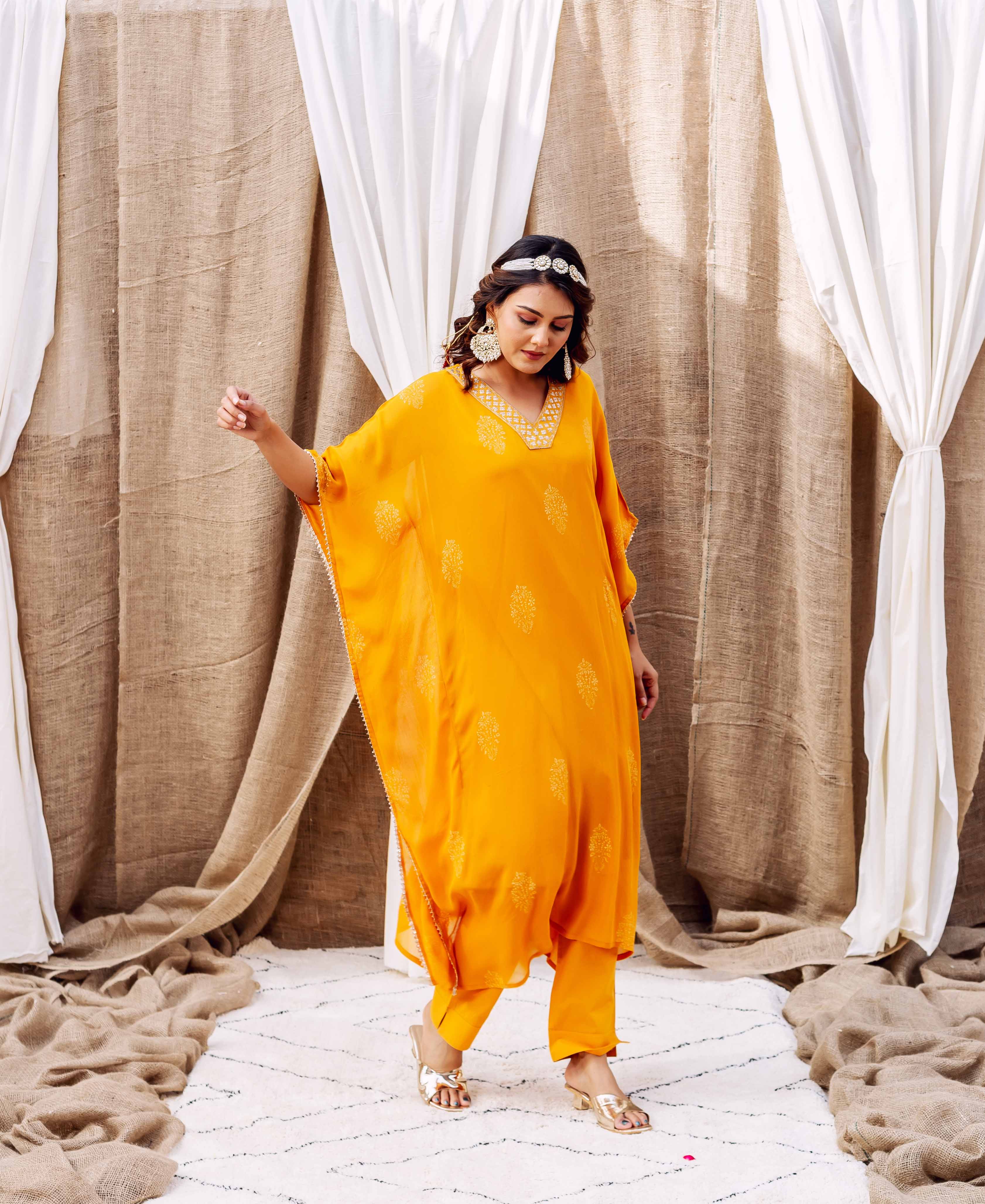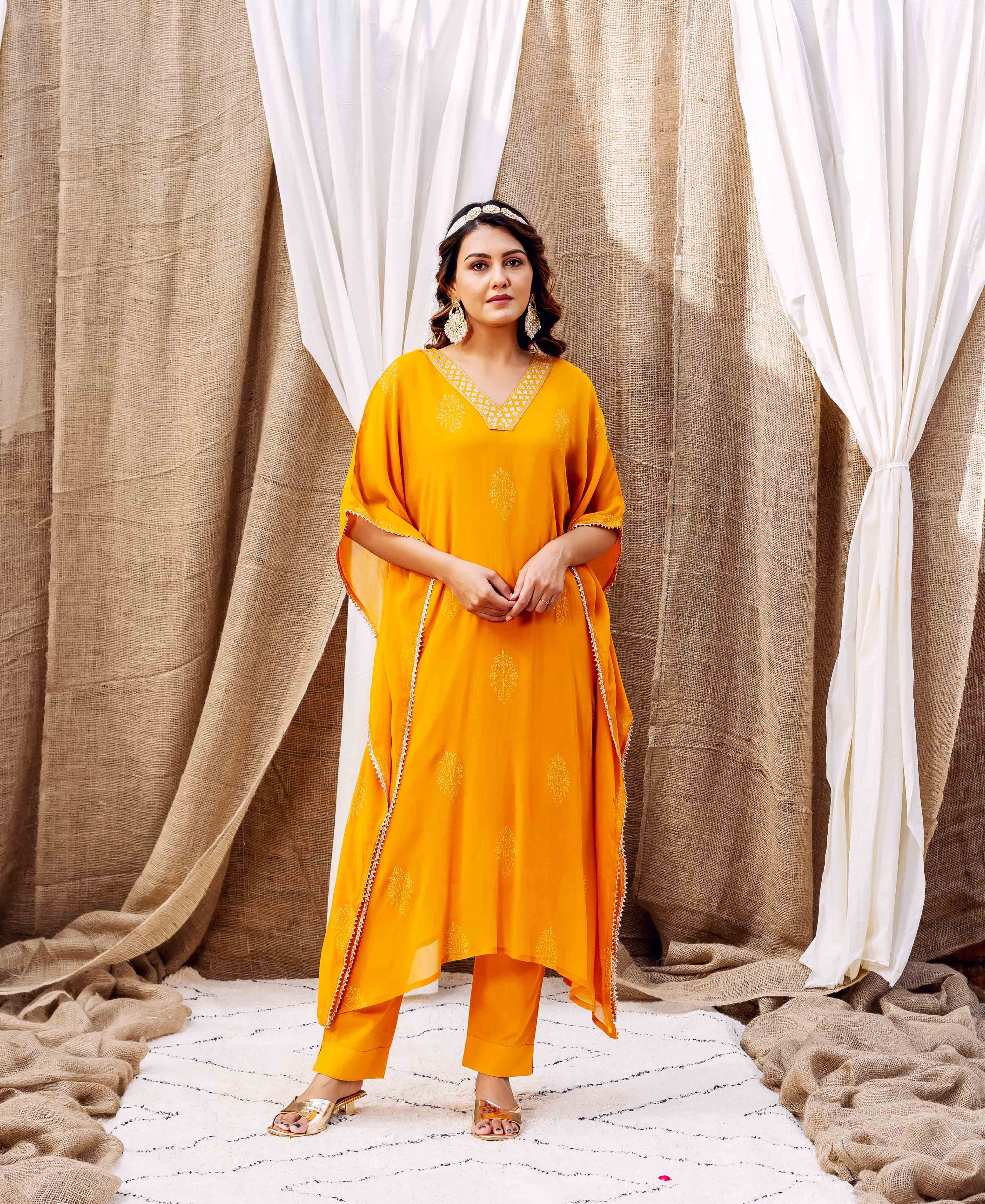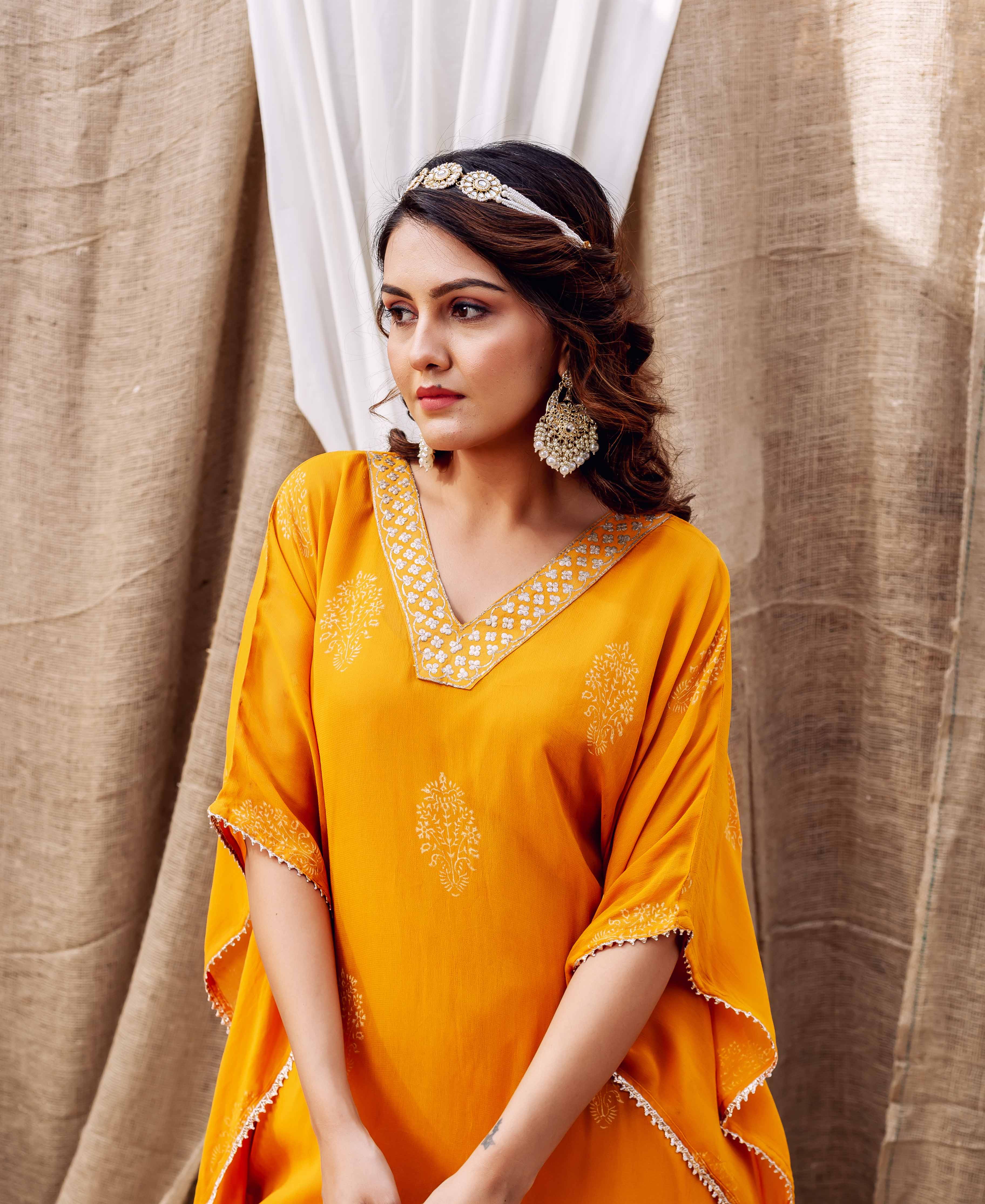 Indigo Hand Block Printed & Embroidered Straight Kurta
