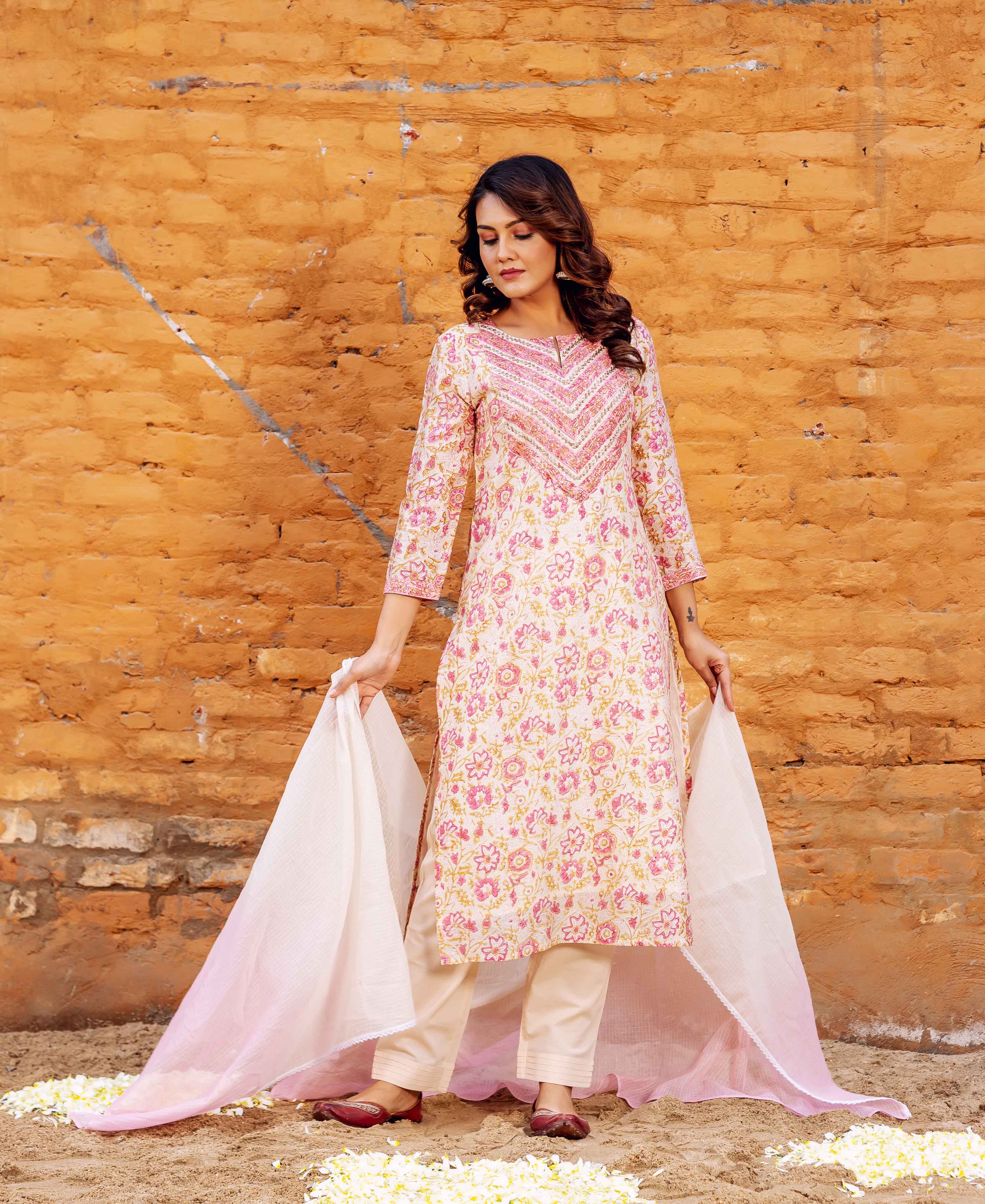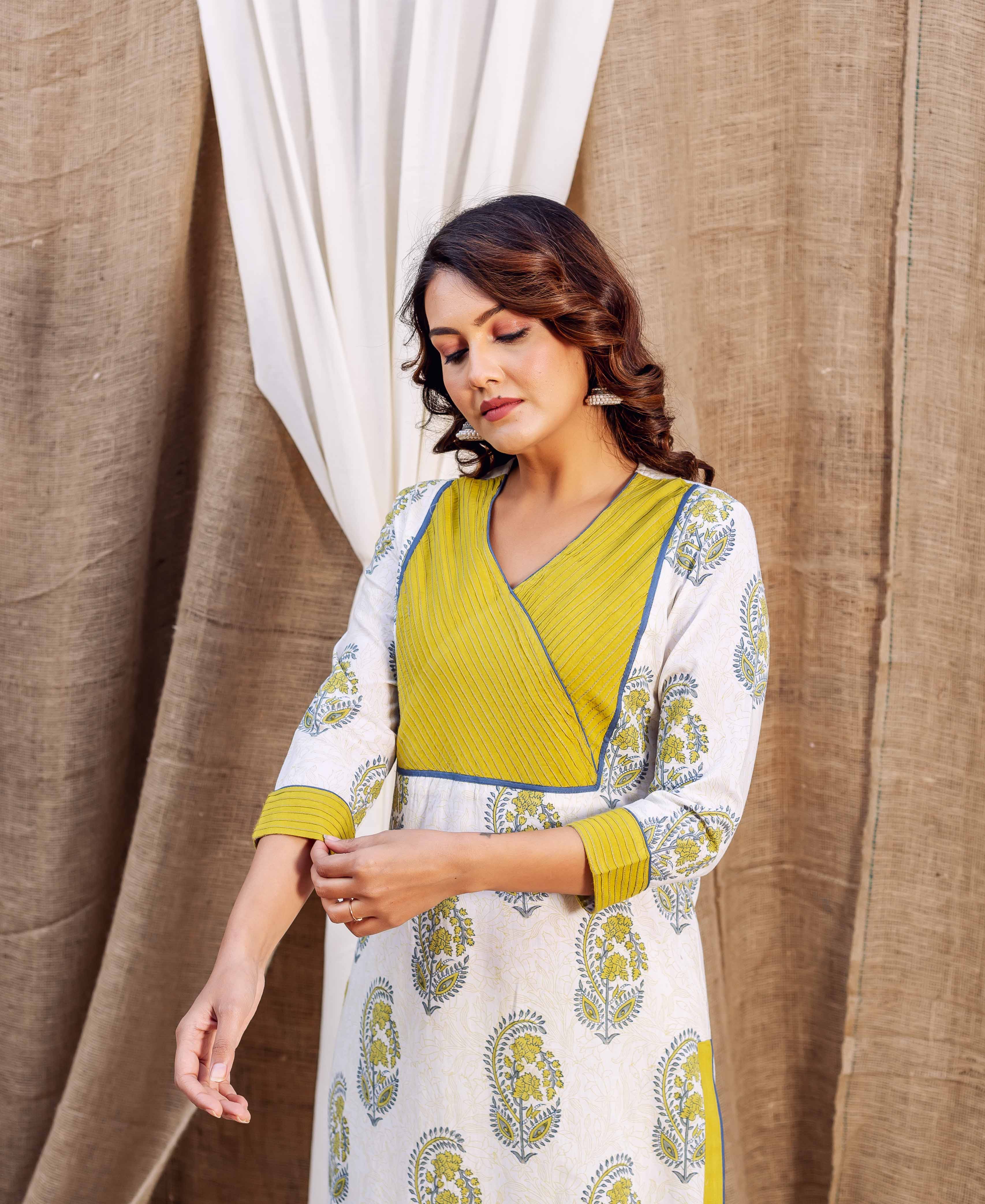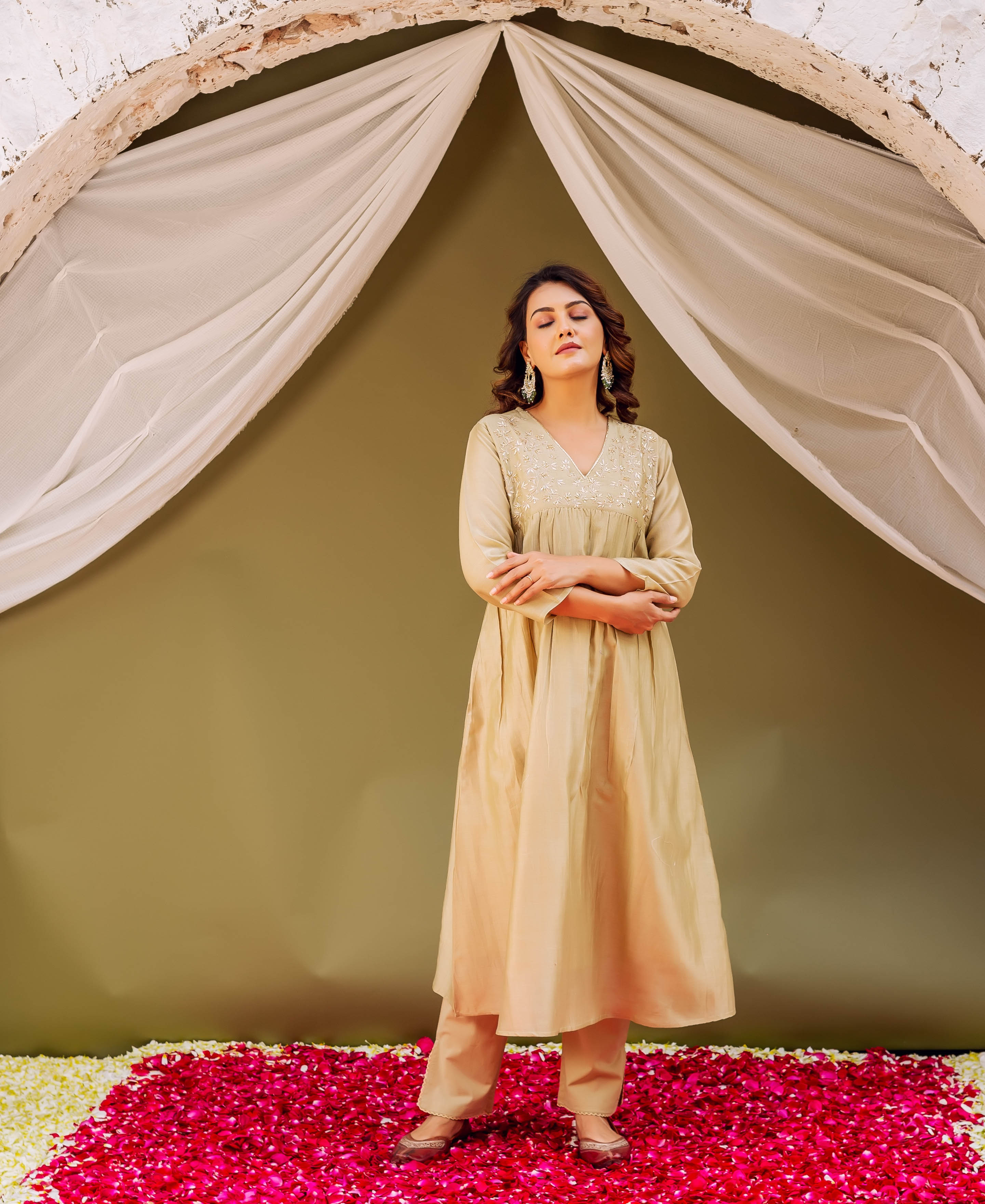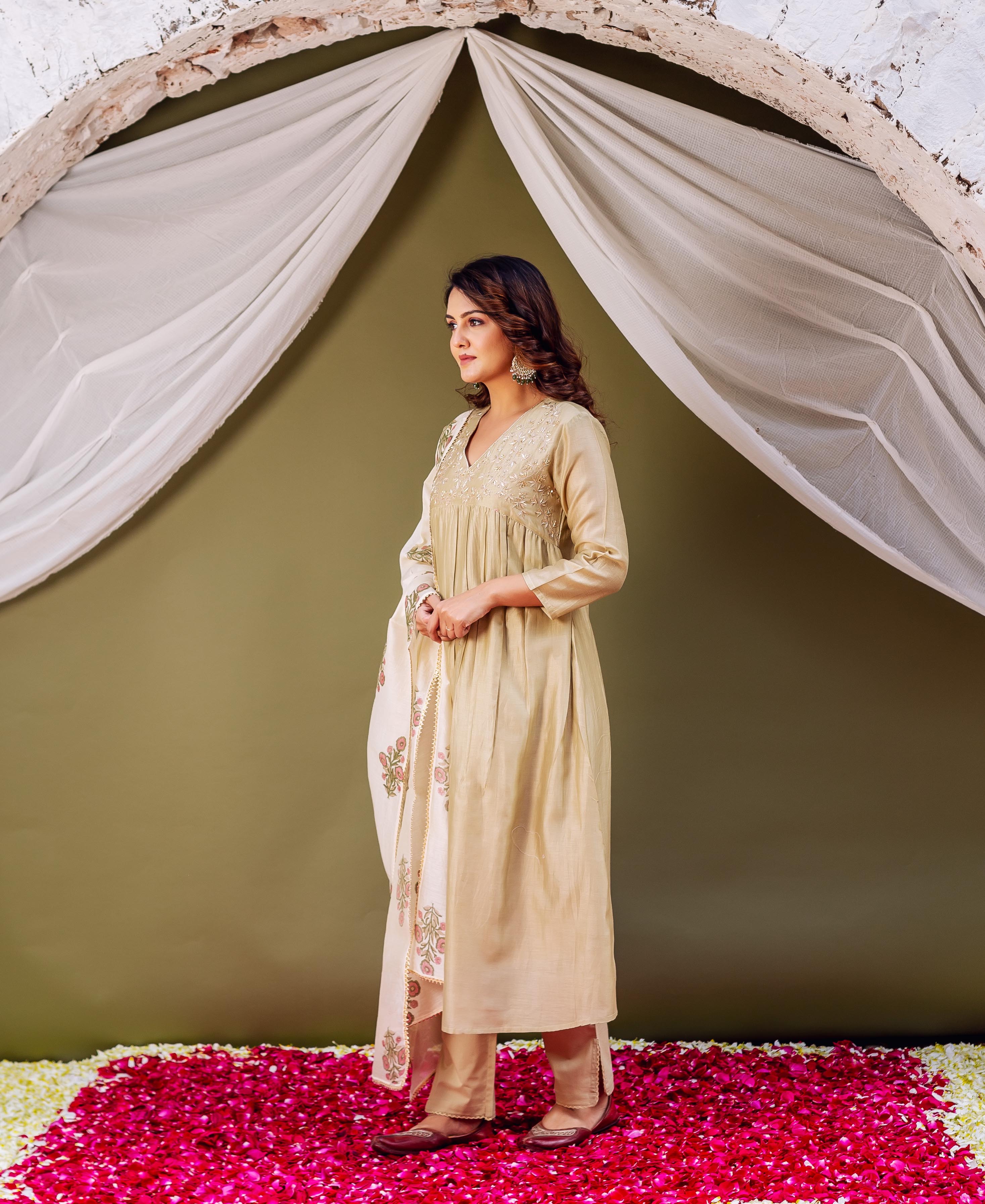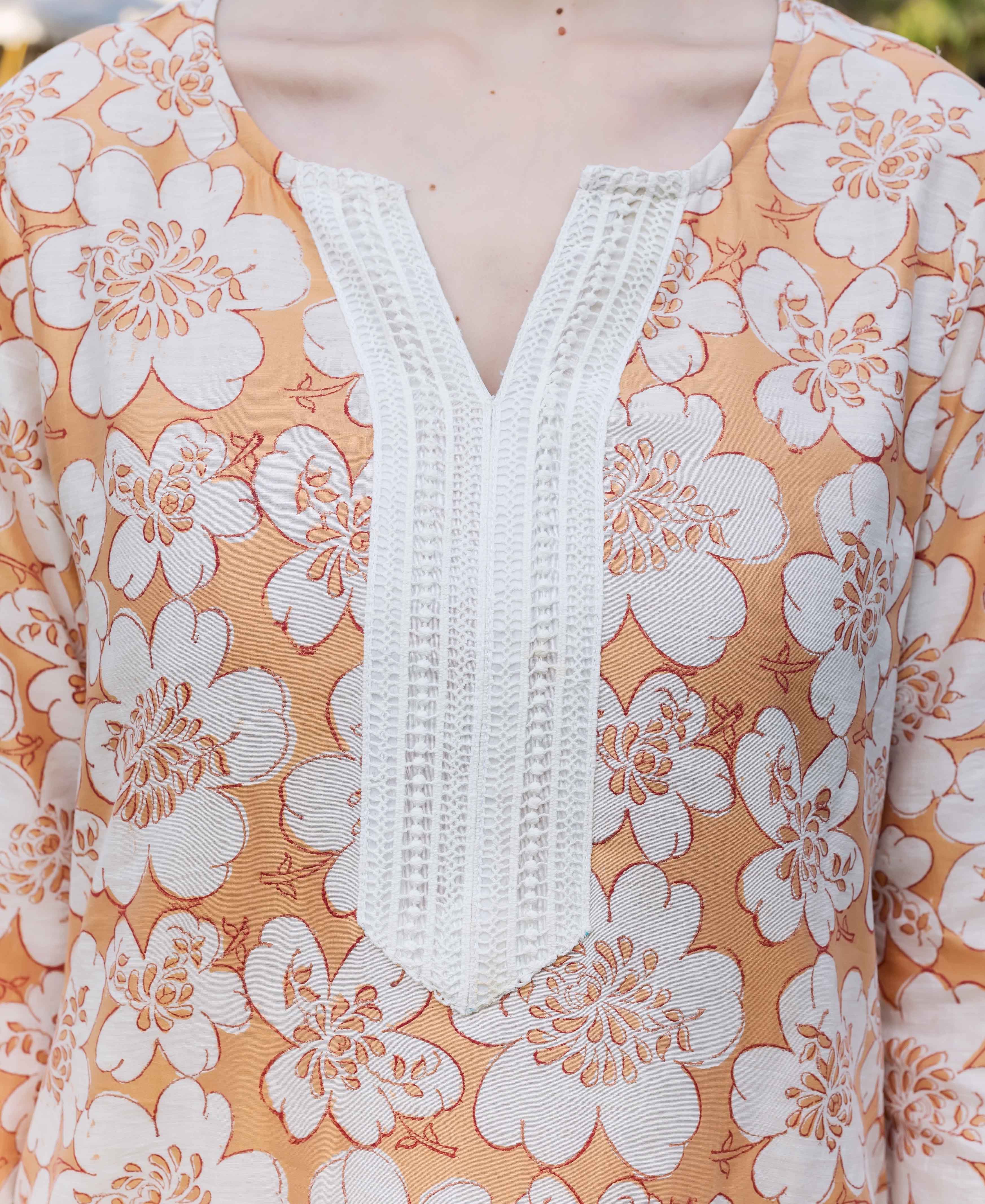 Off White Straight Embroidered Kurta with Pintuck and Lace Details