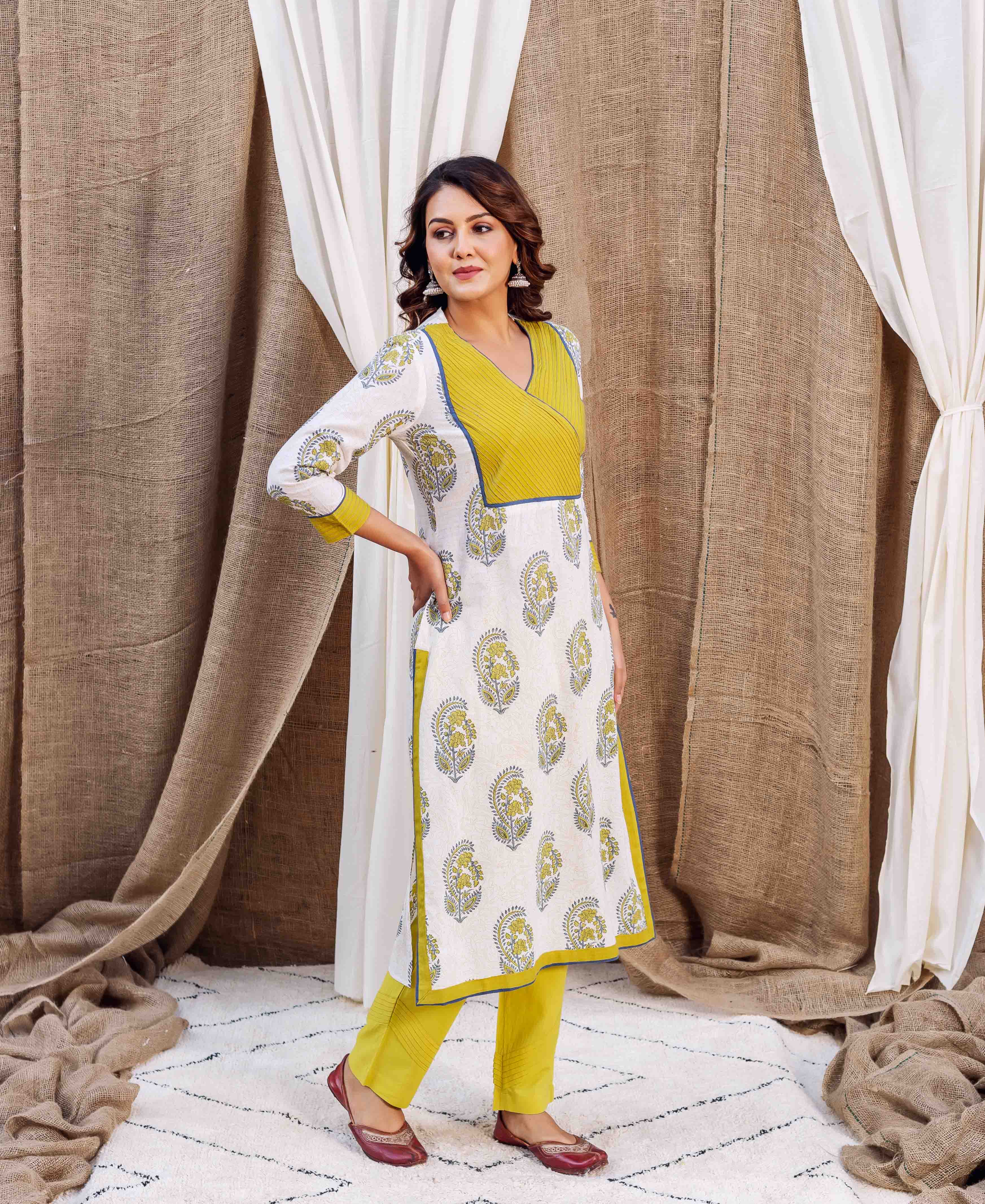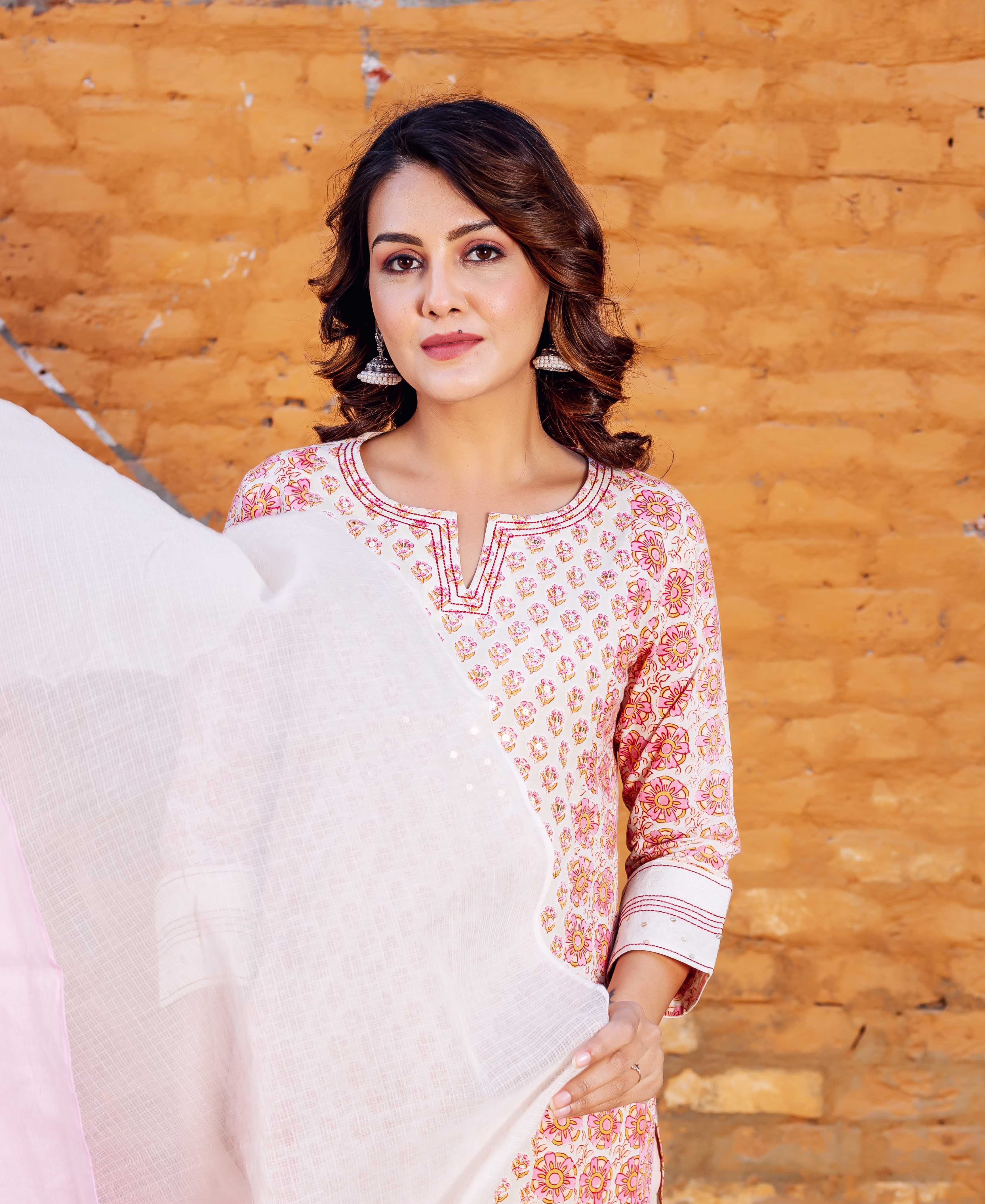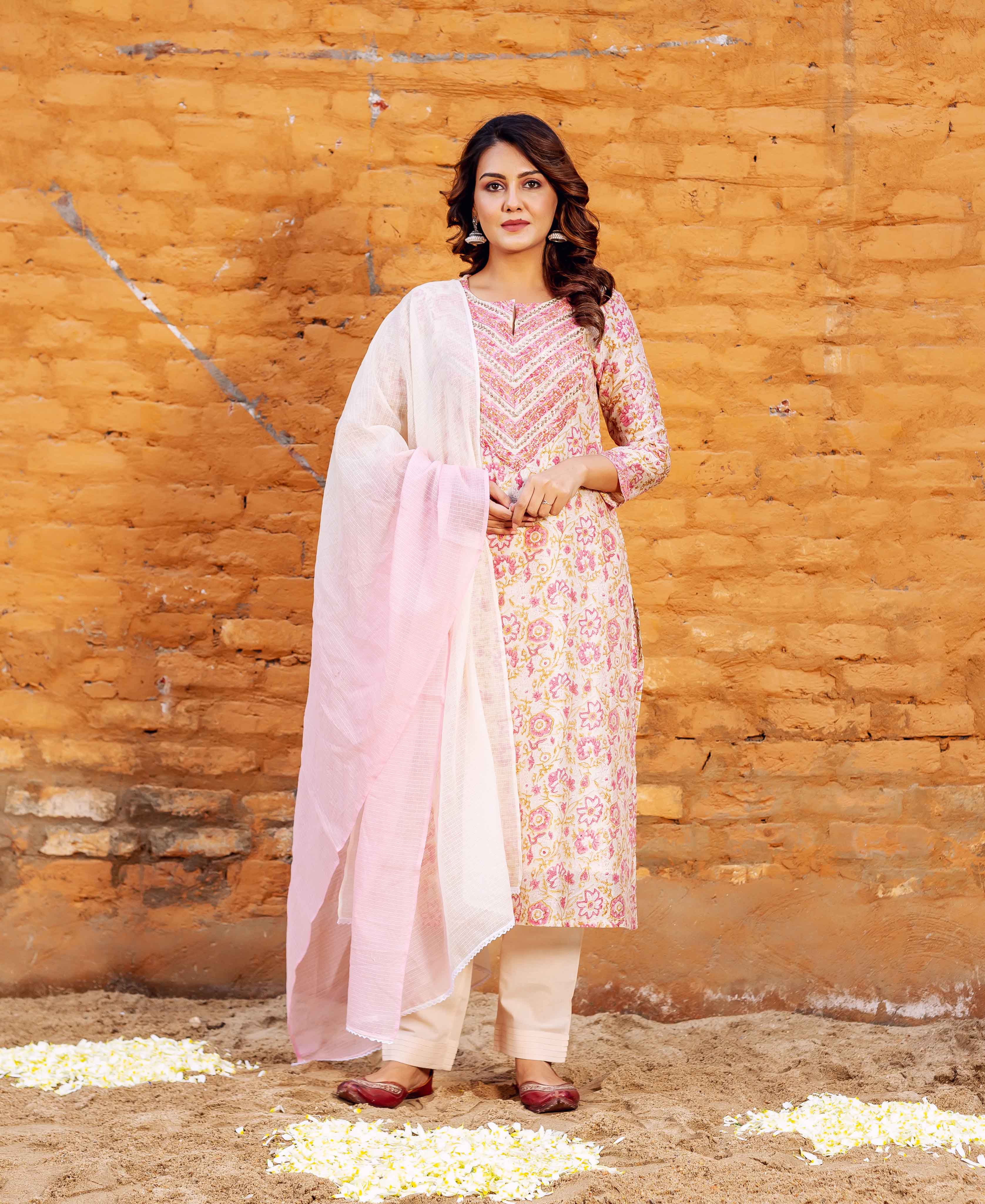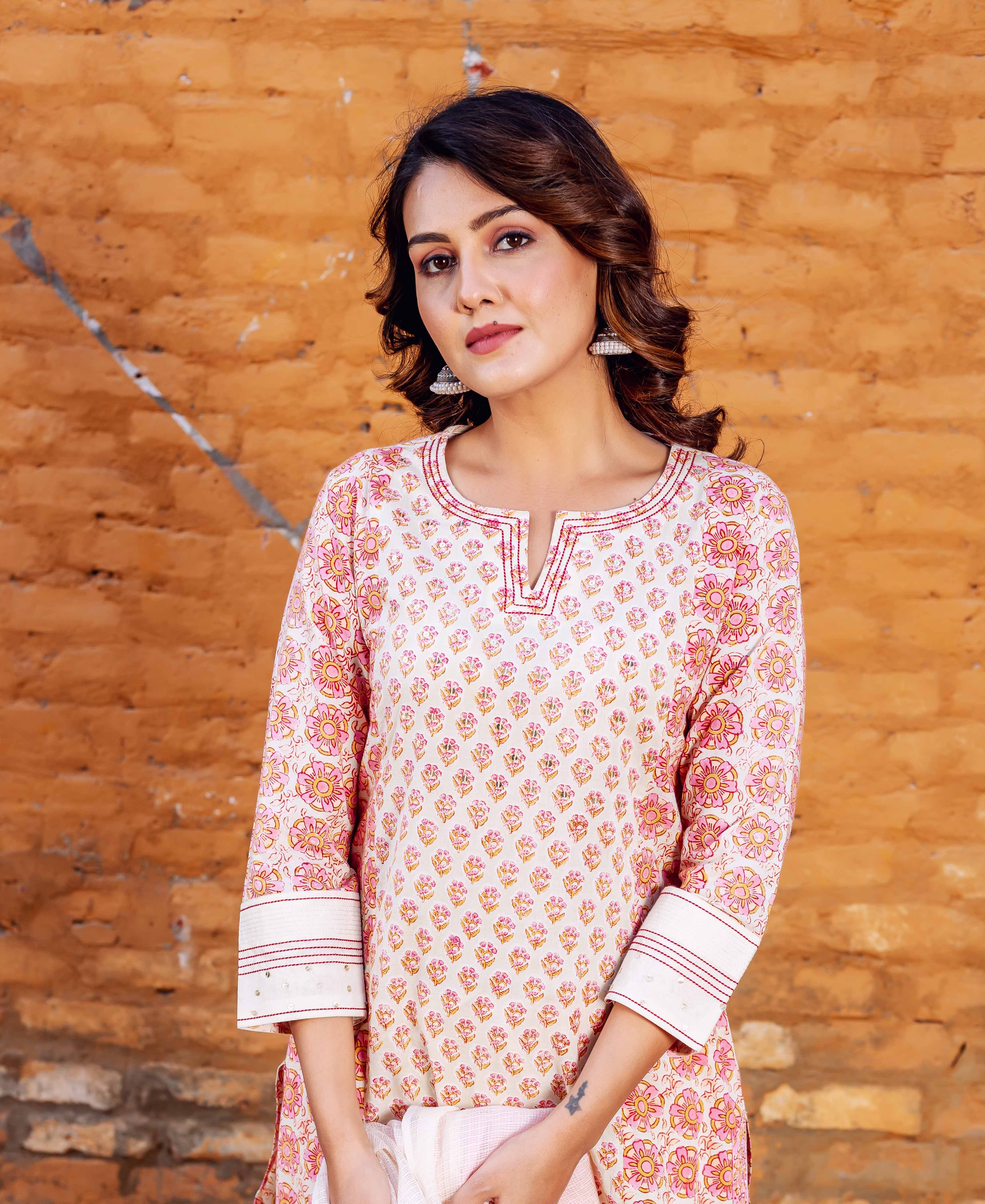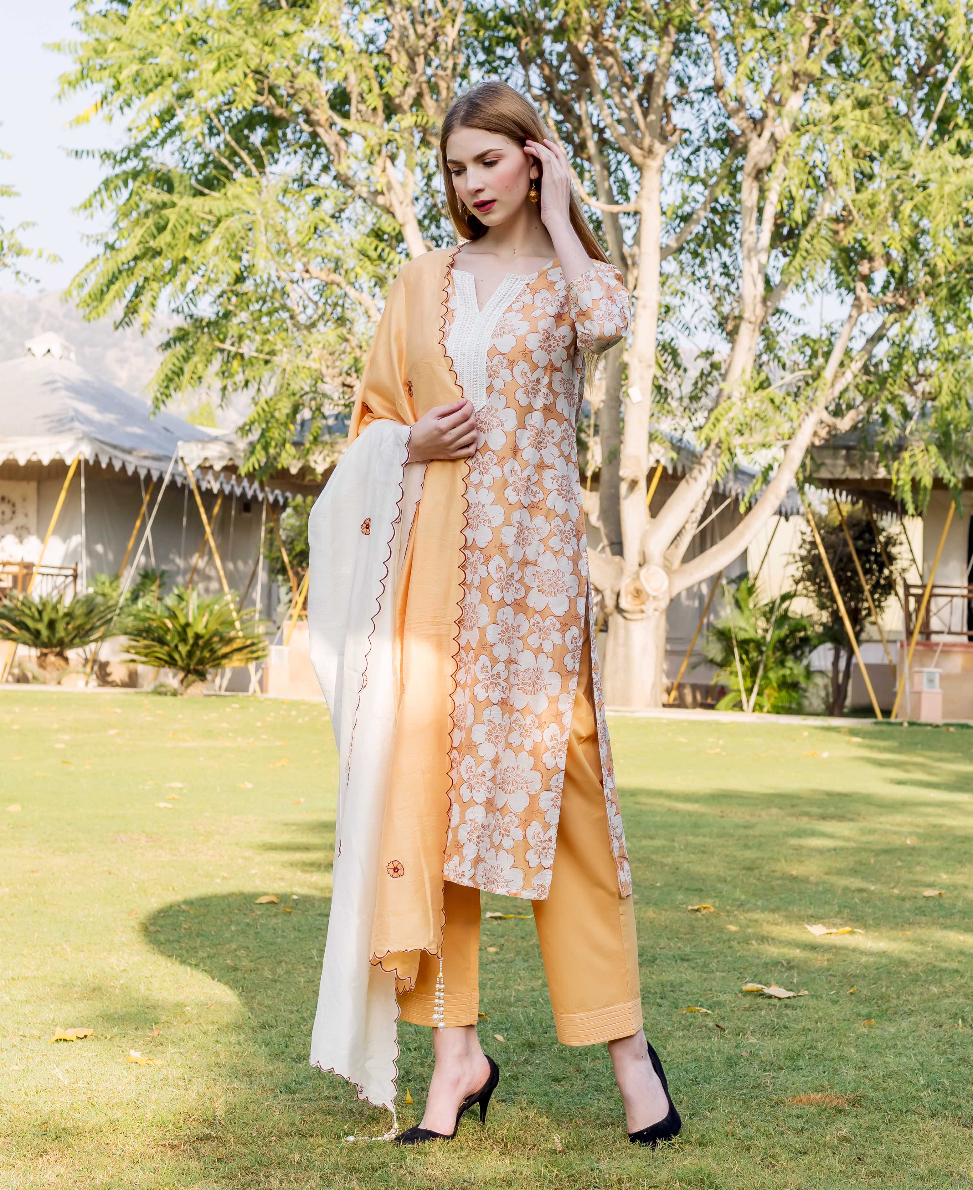 Off White Straight Embroidered Kurta with Pintuck and Lace Details