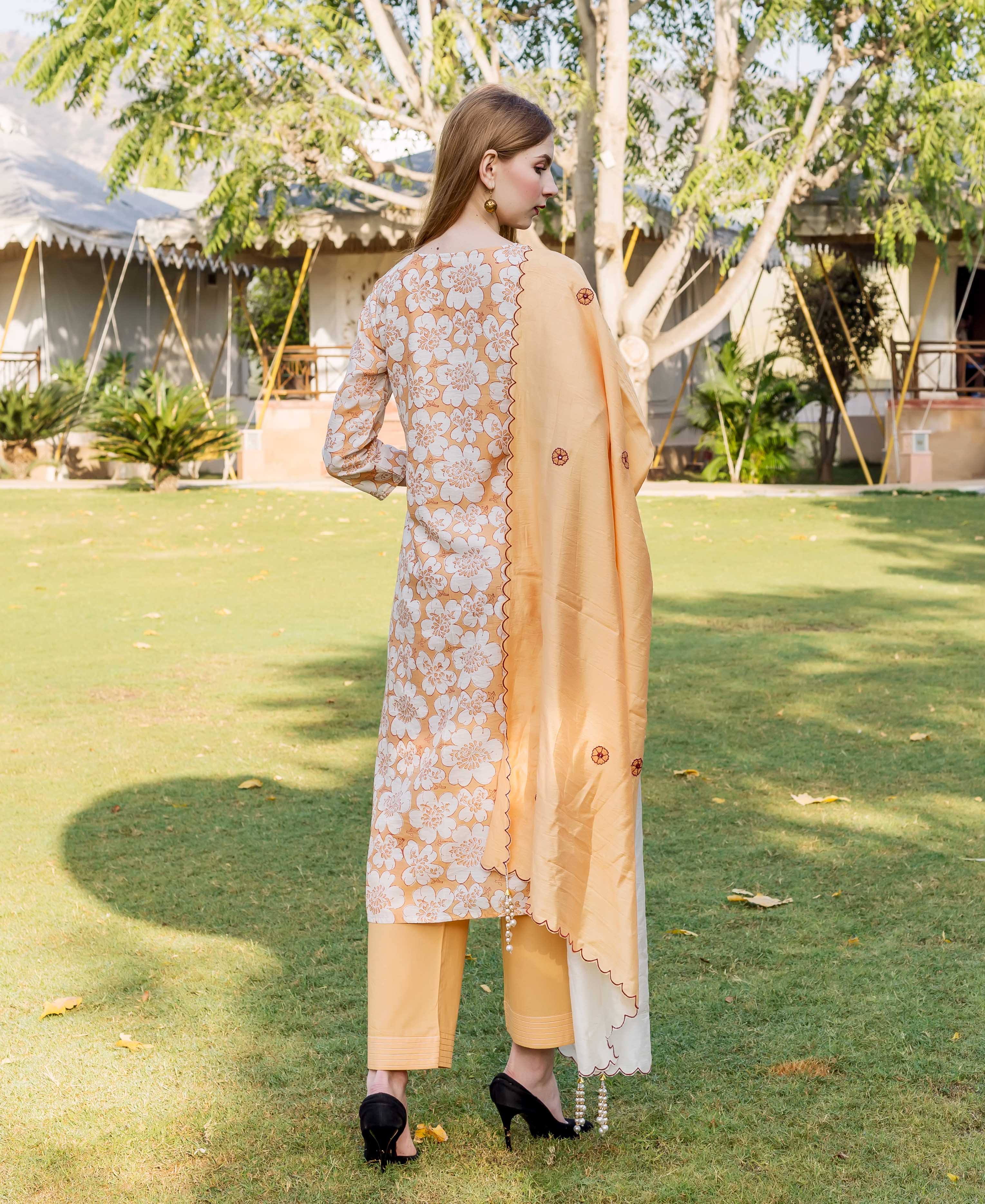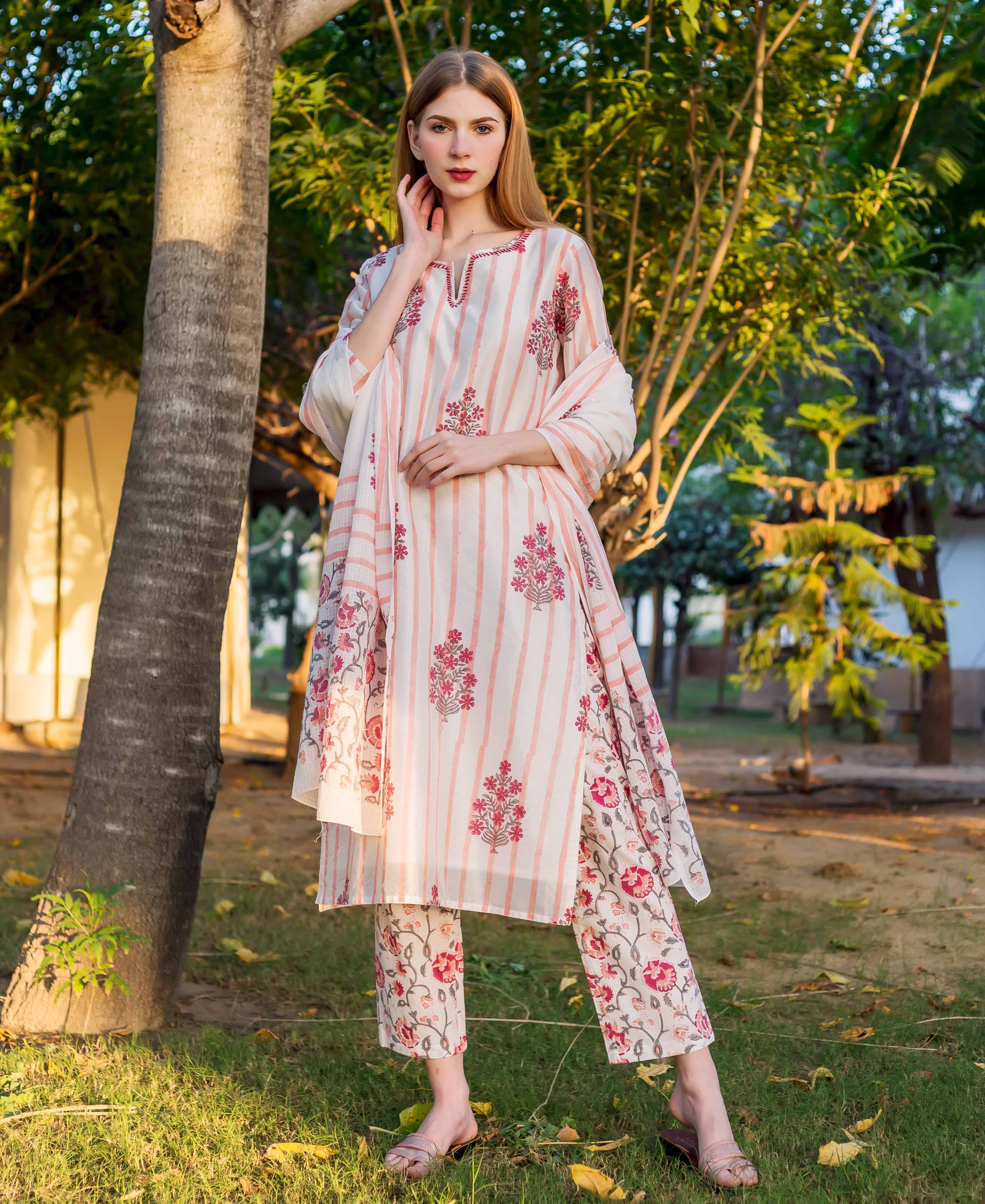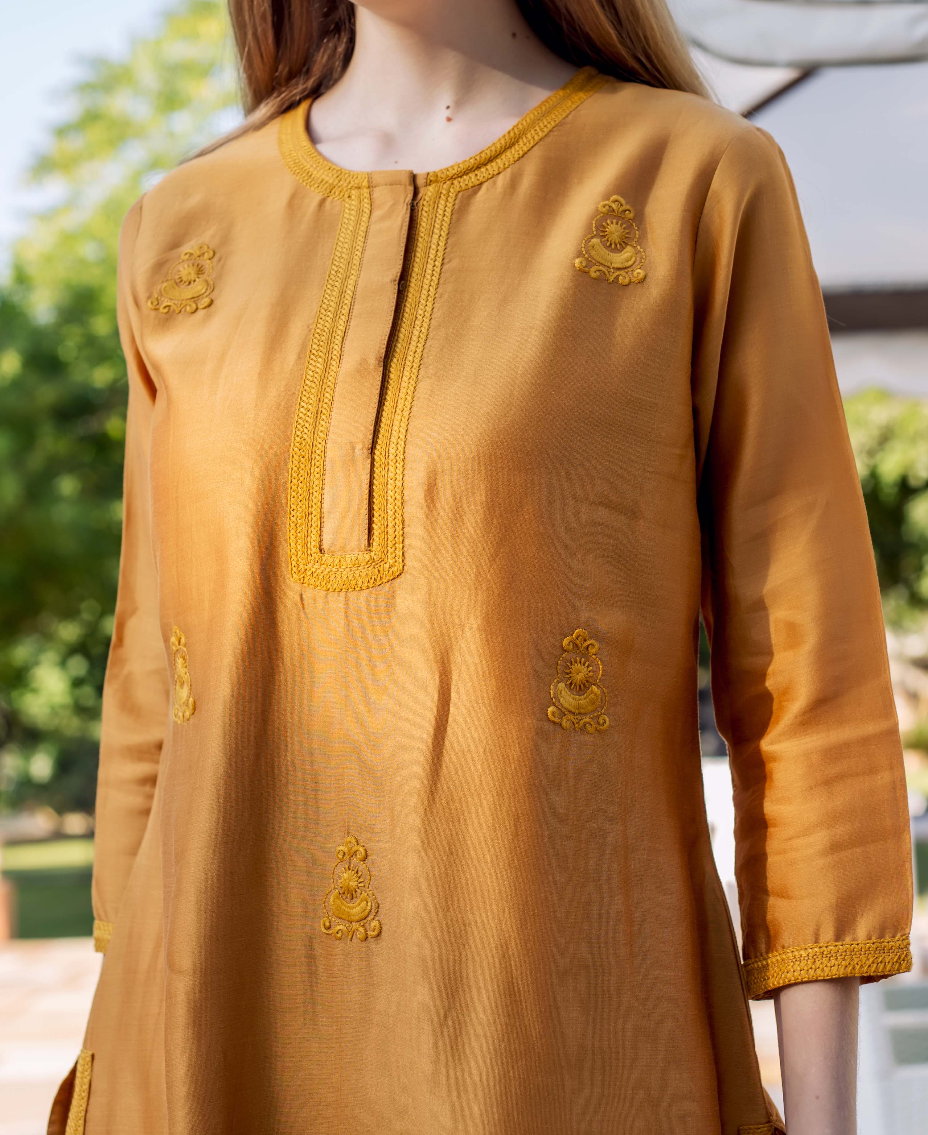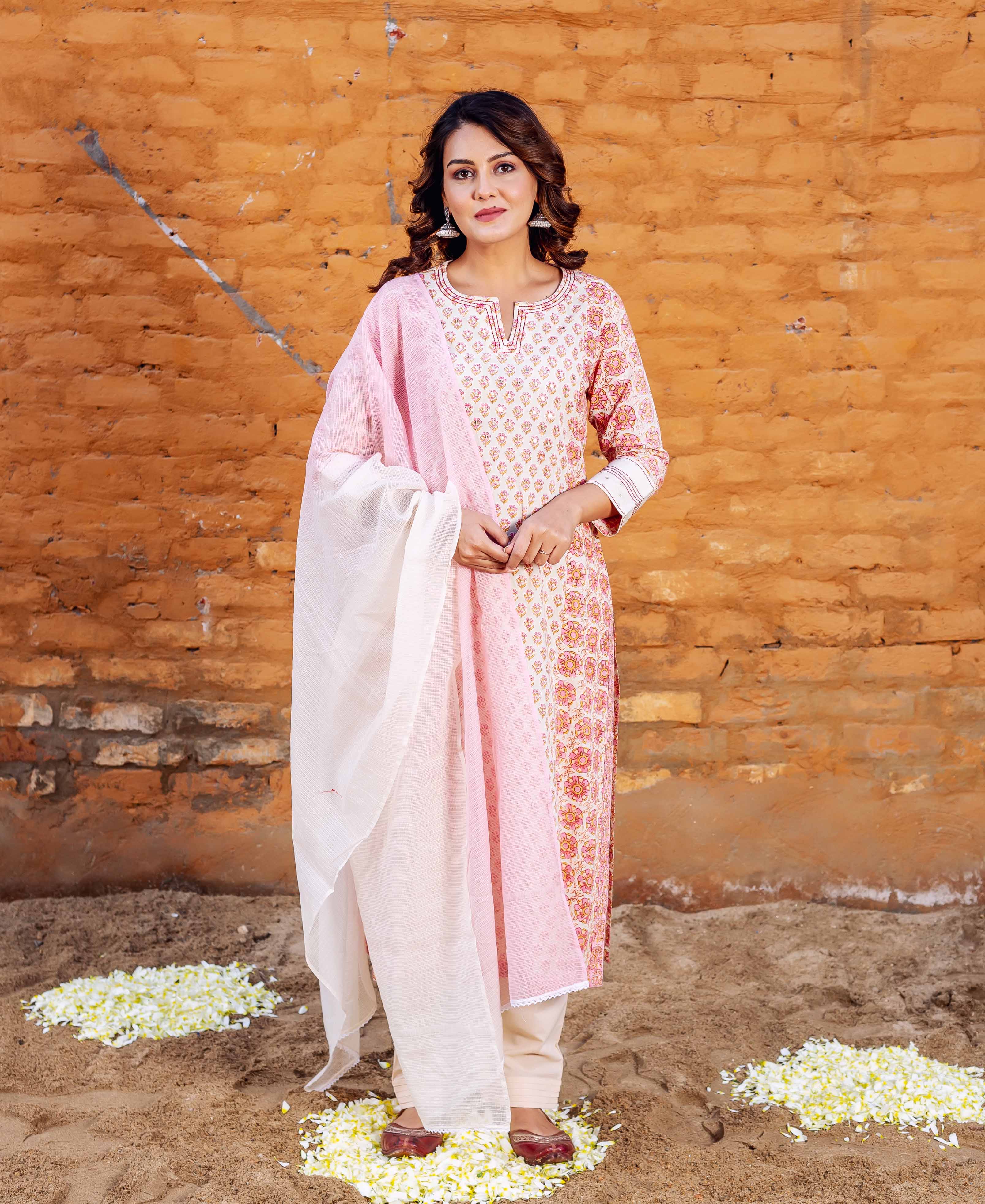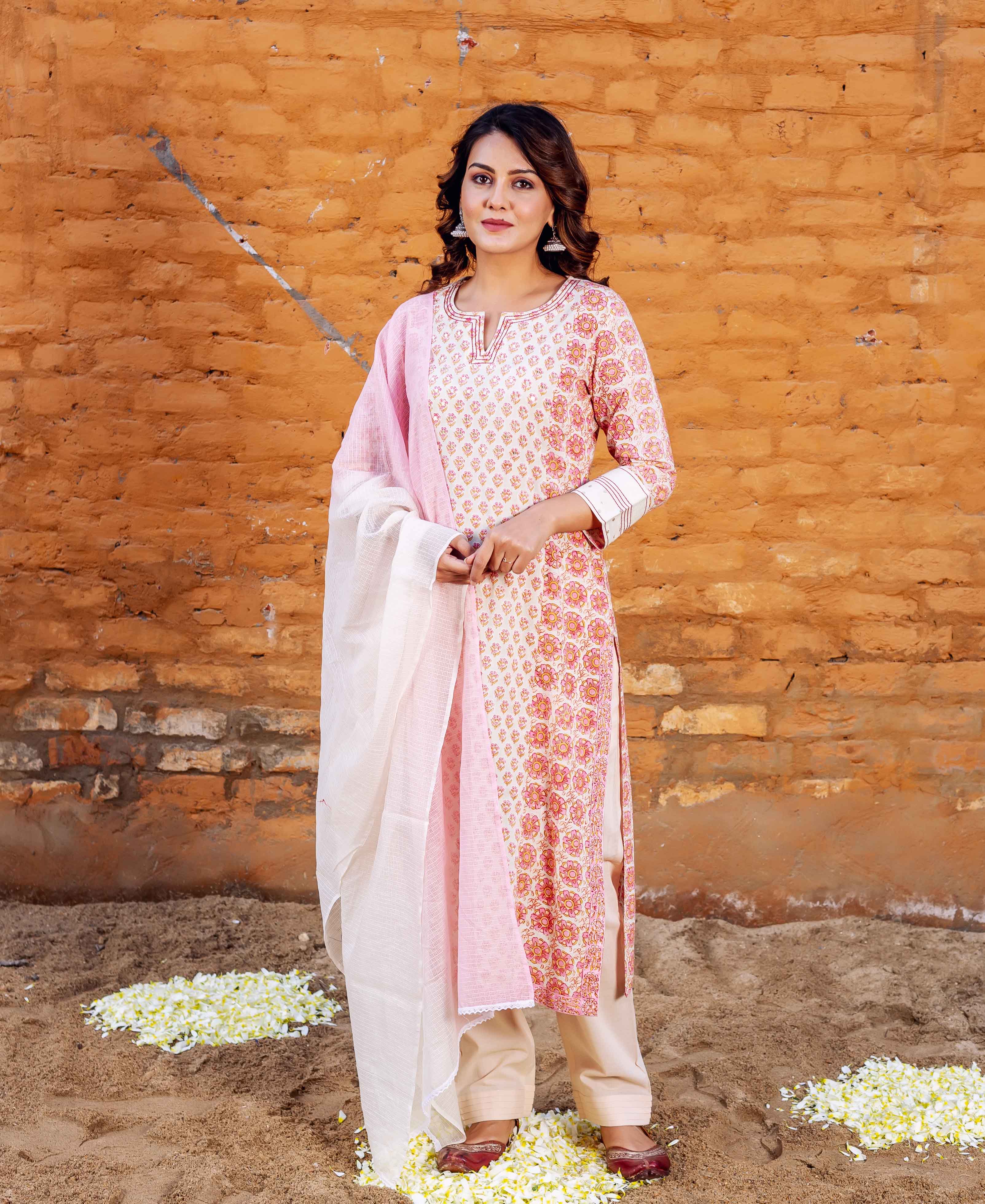 Off White Straight Embroidered Kurta with Pintuck and Lace Details