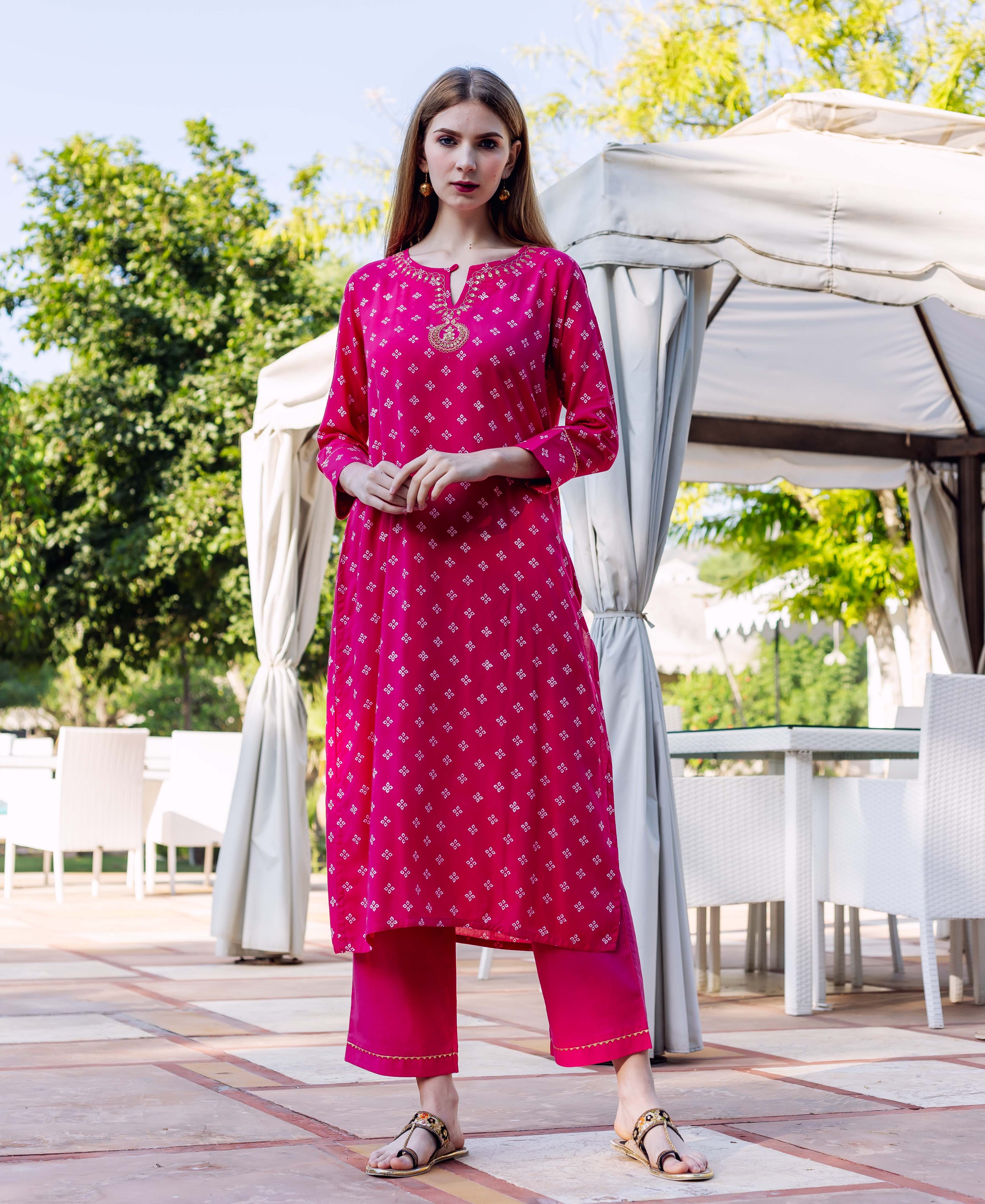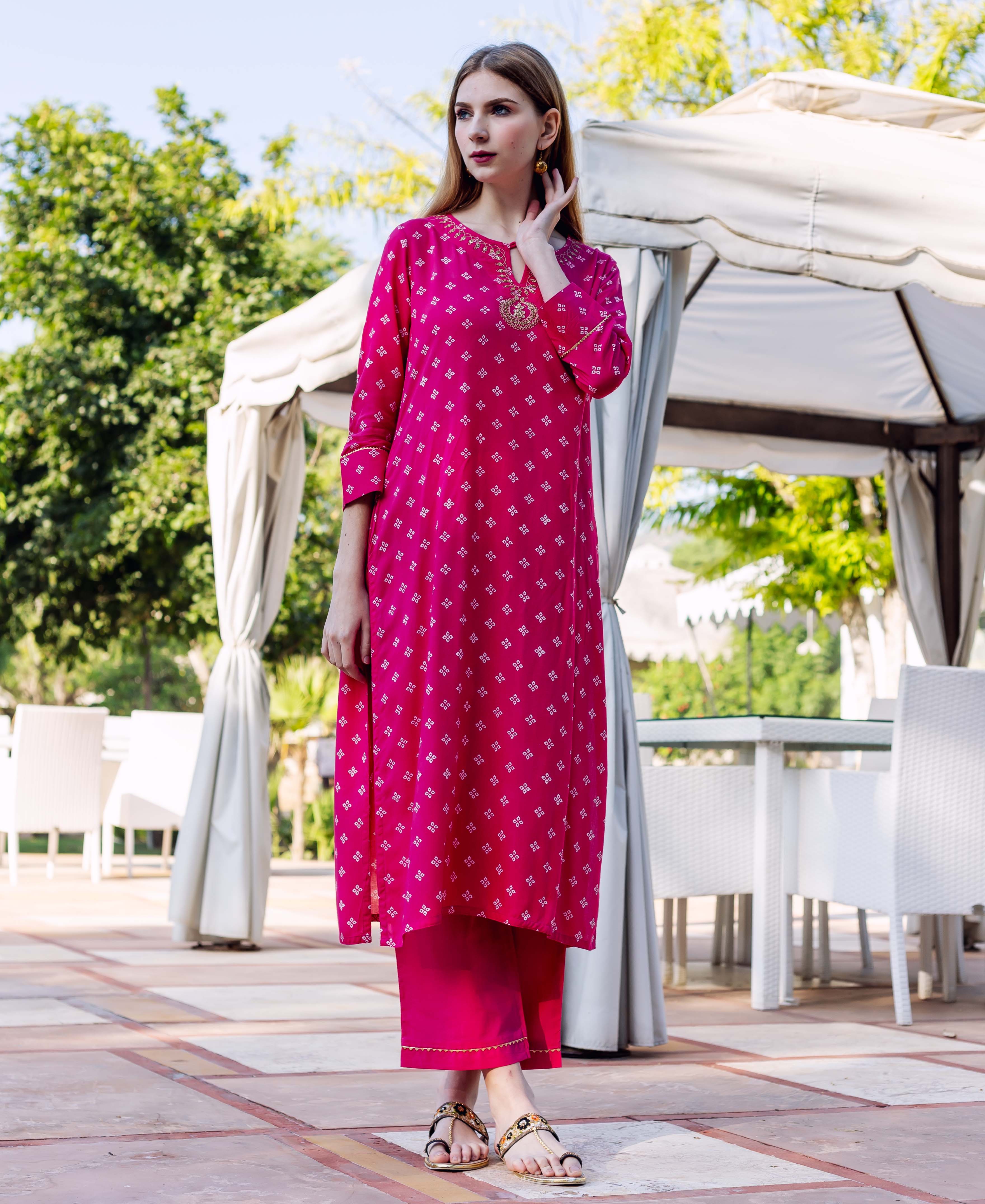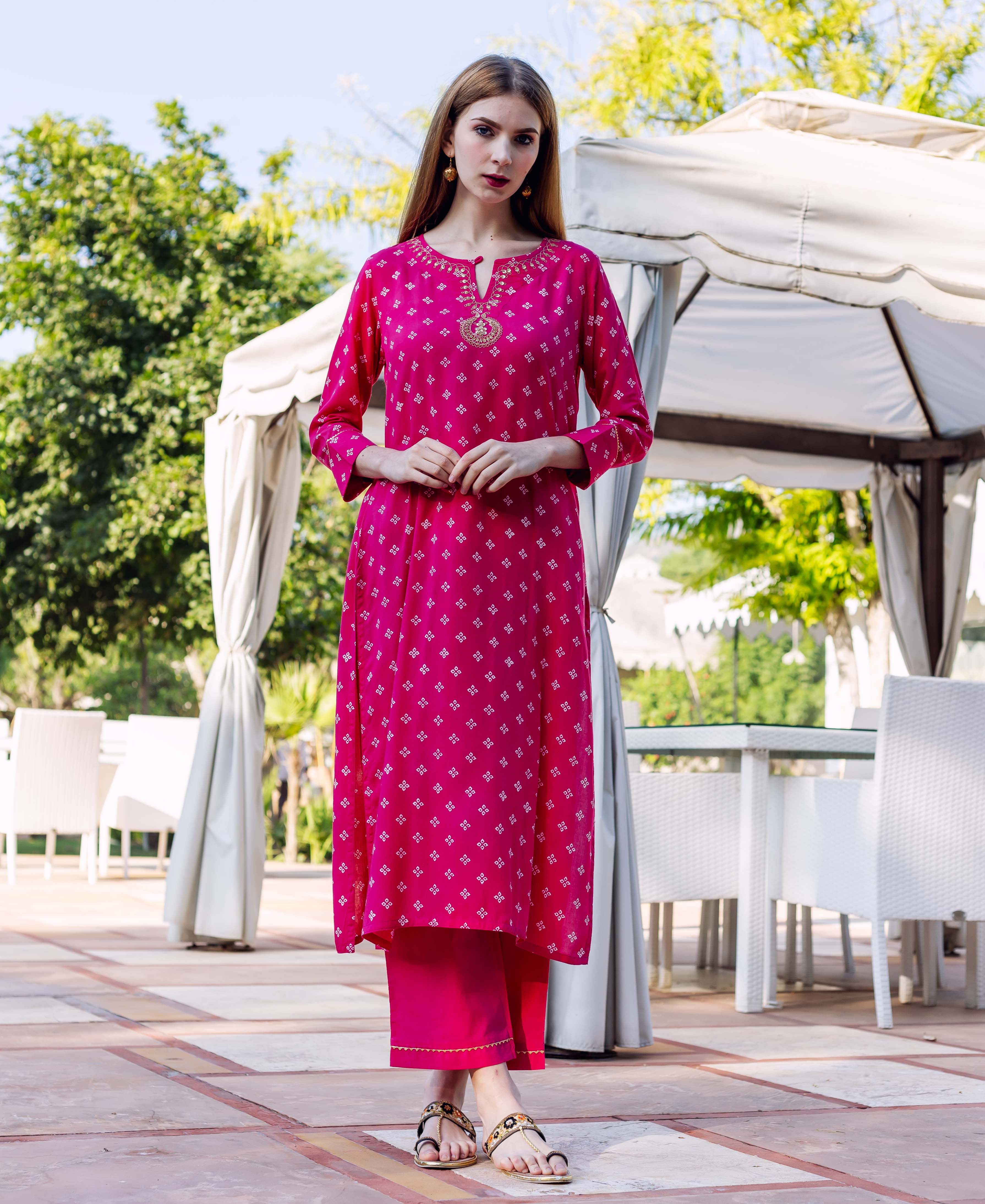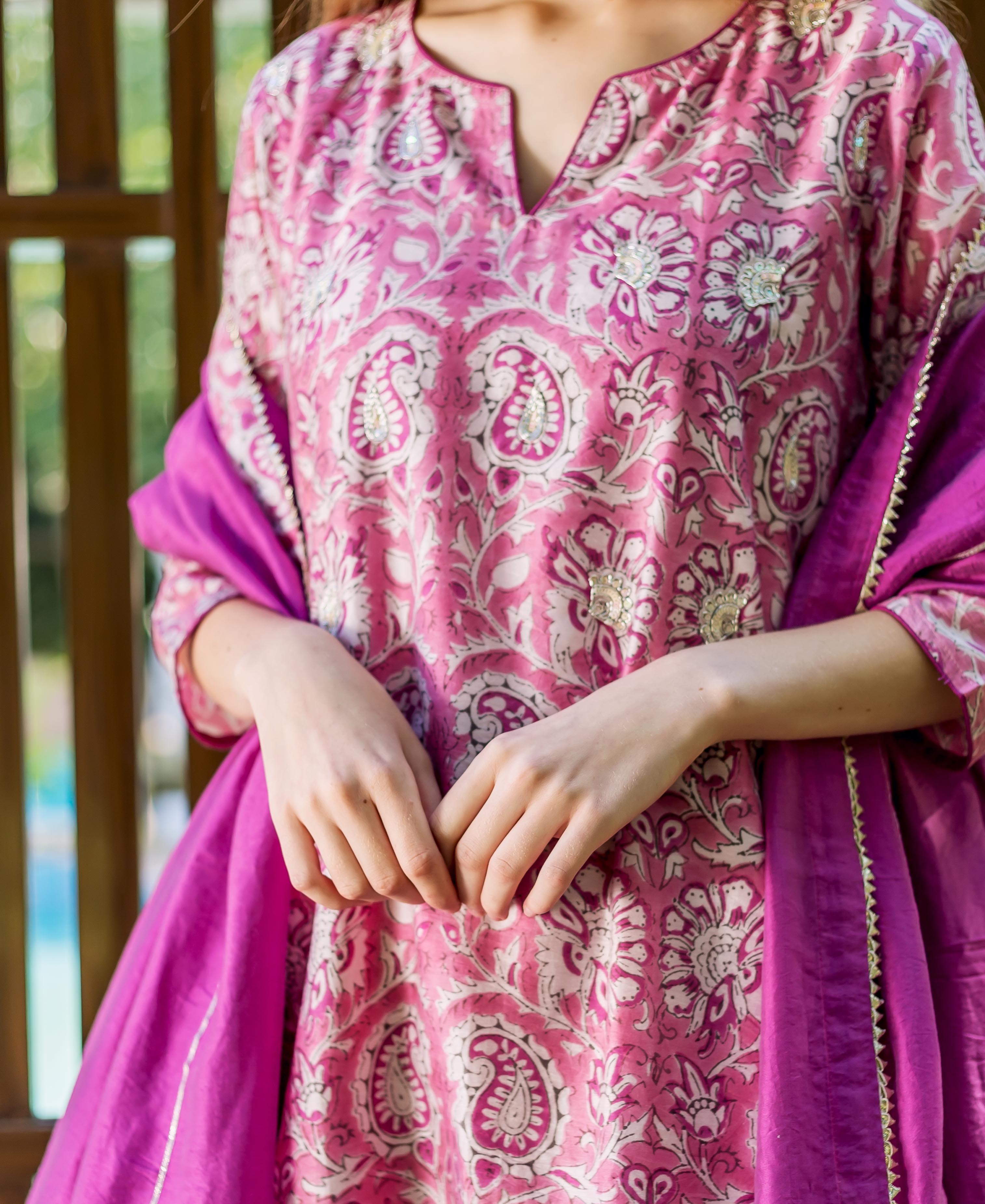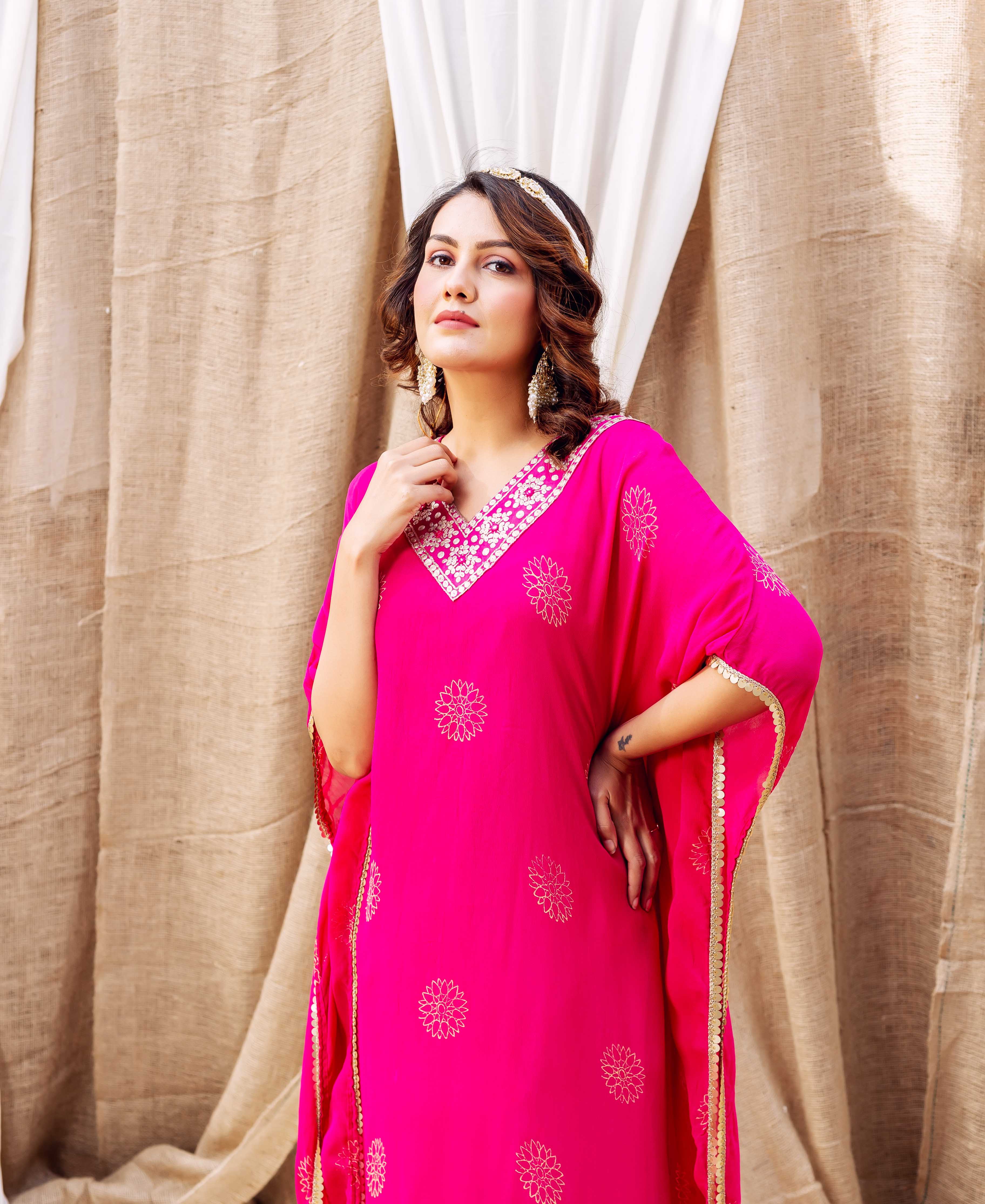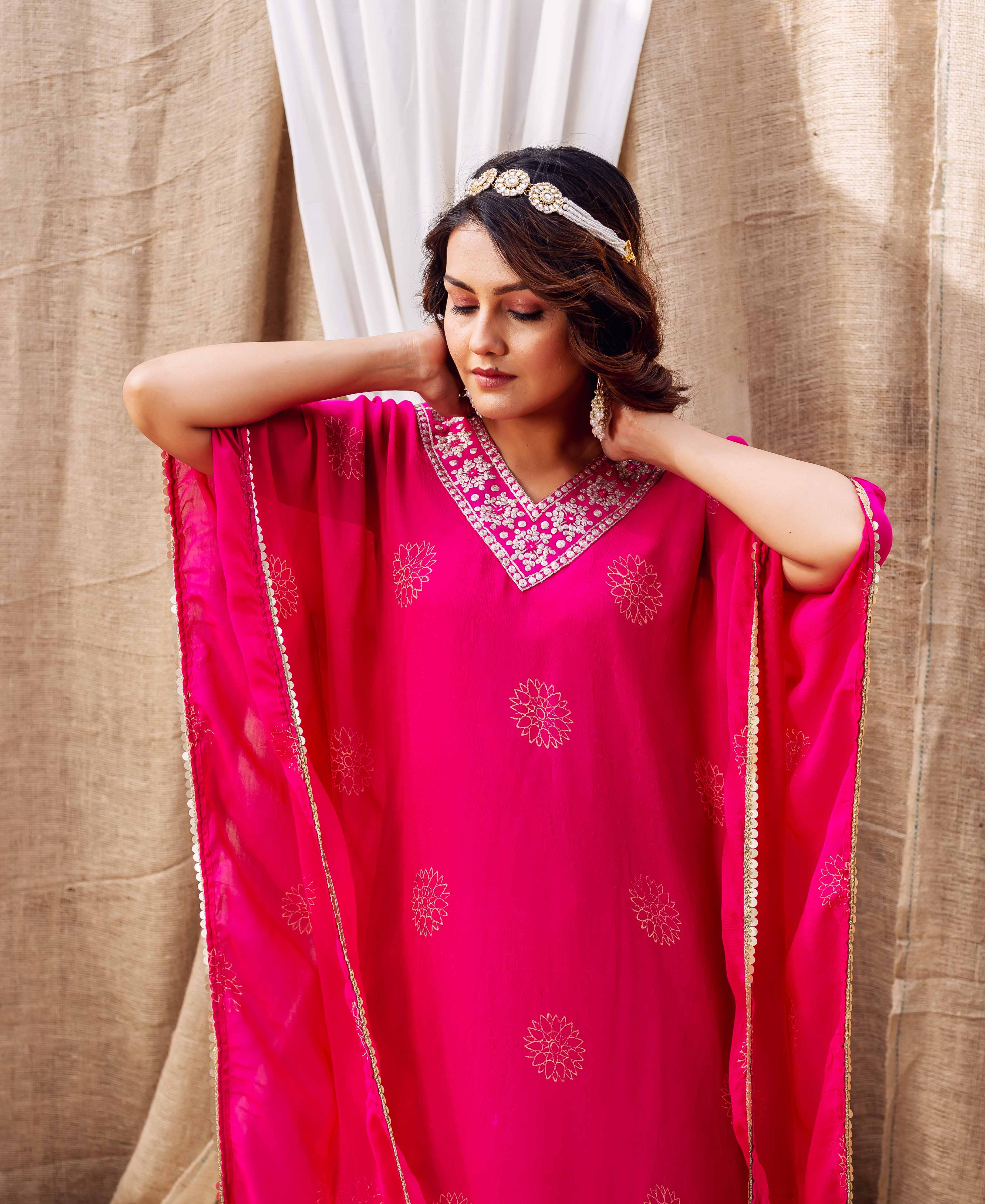 Eshika Raspberry Pink Embroidered Chanderi Dress