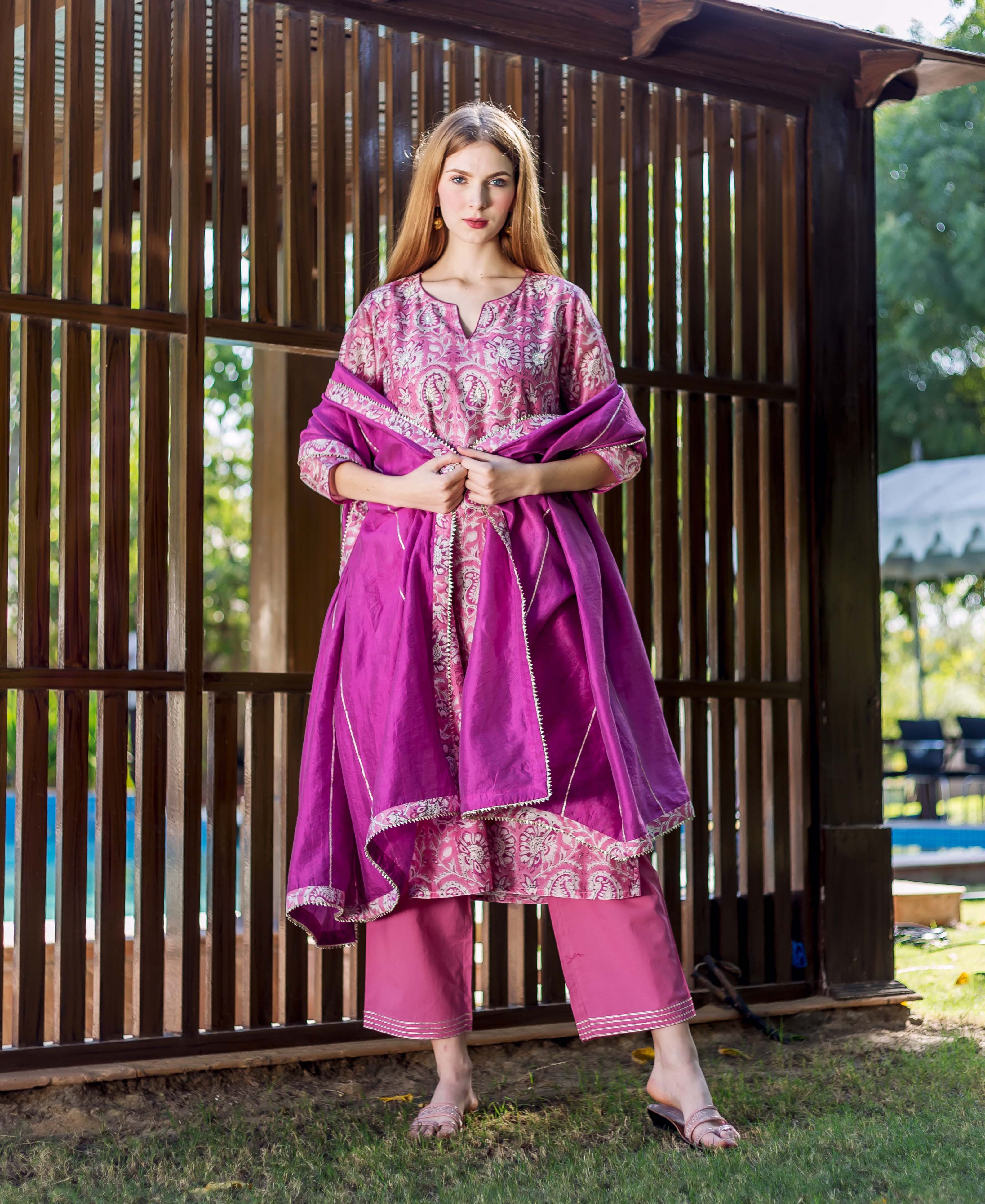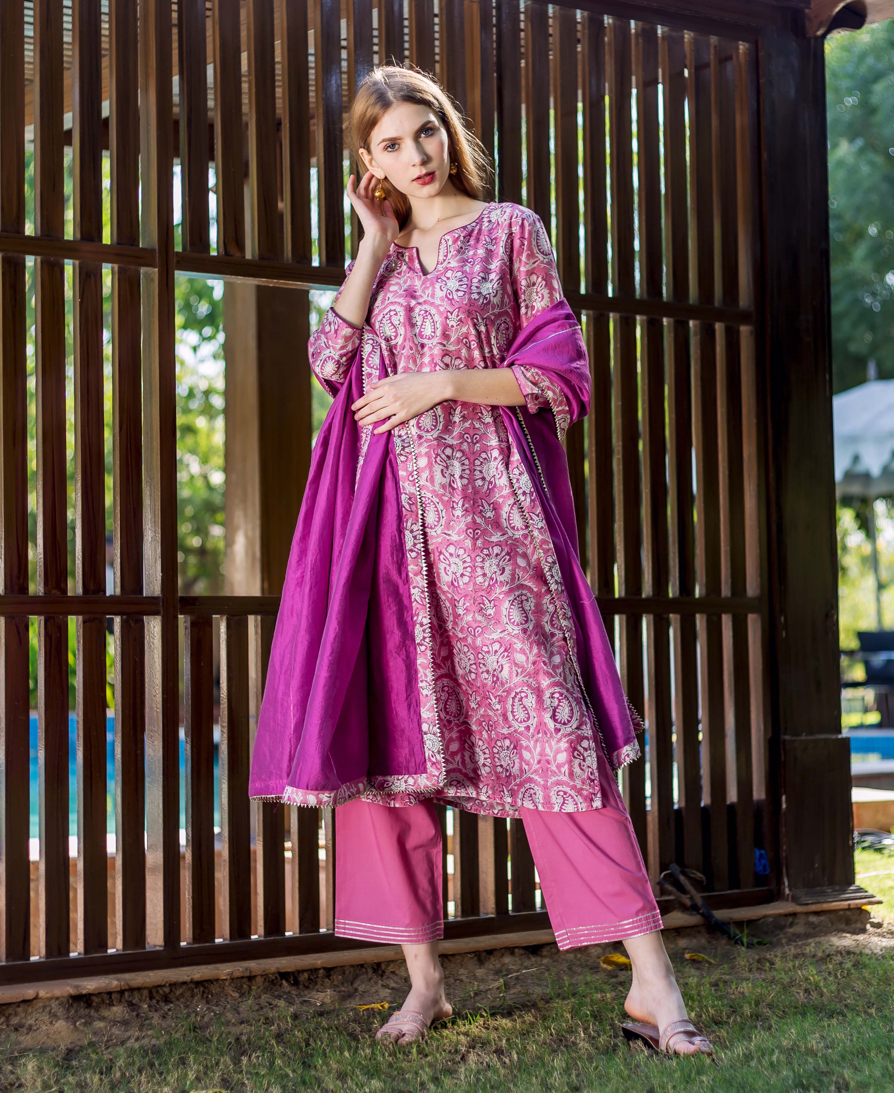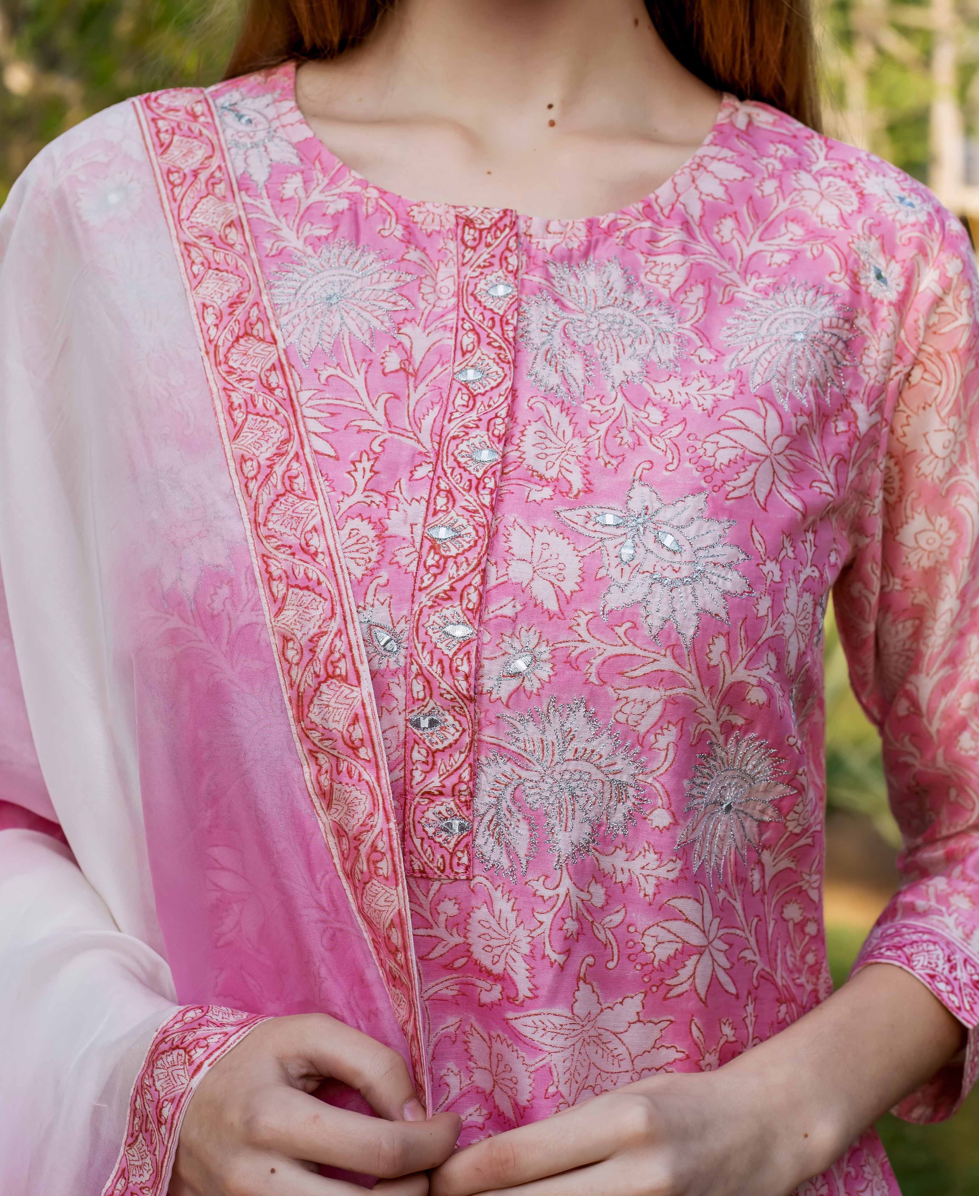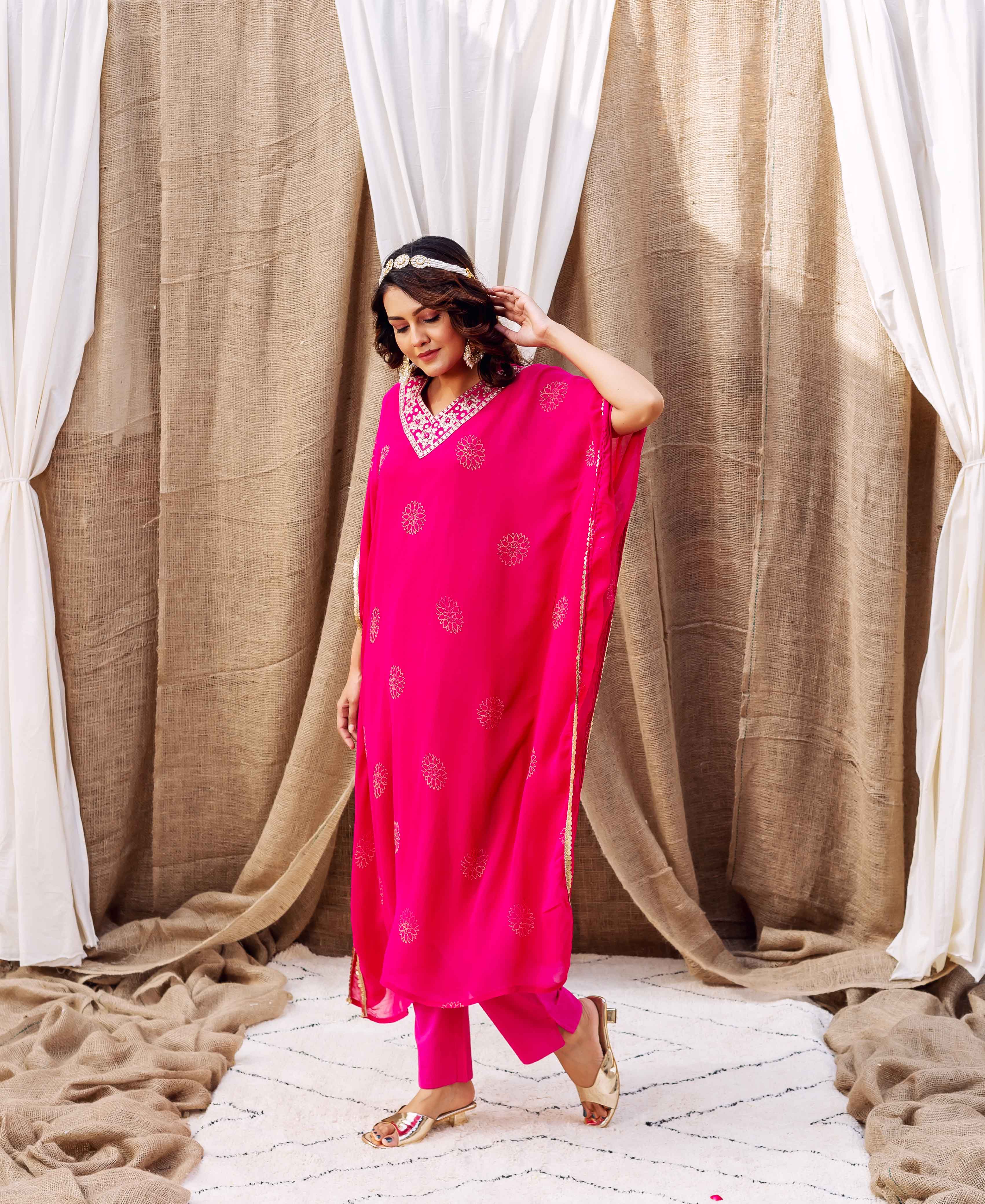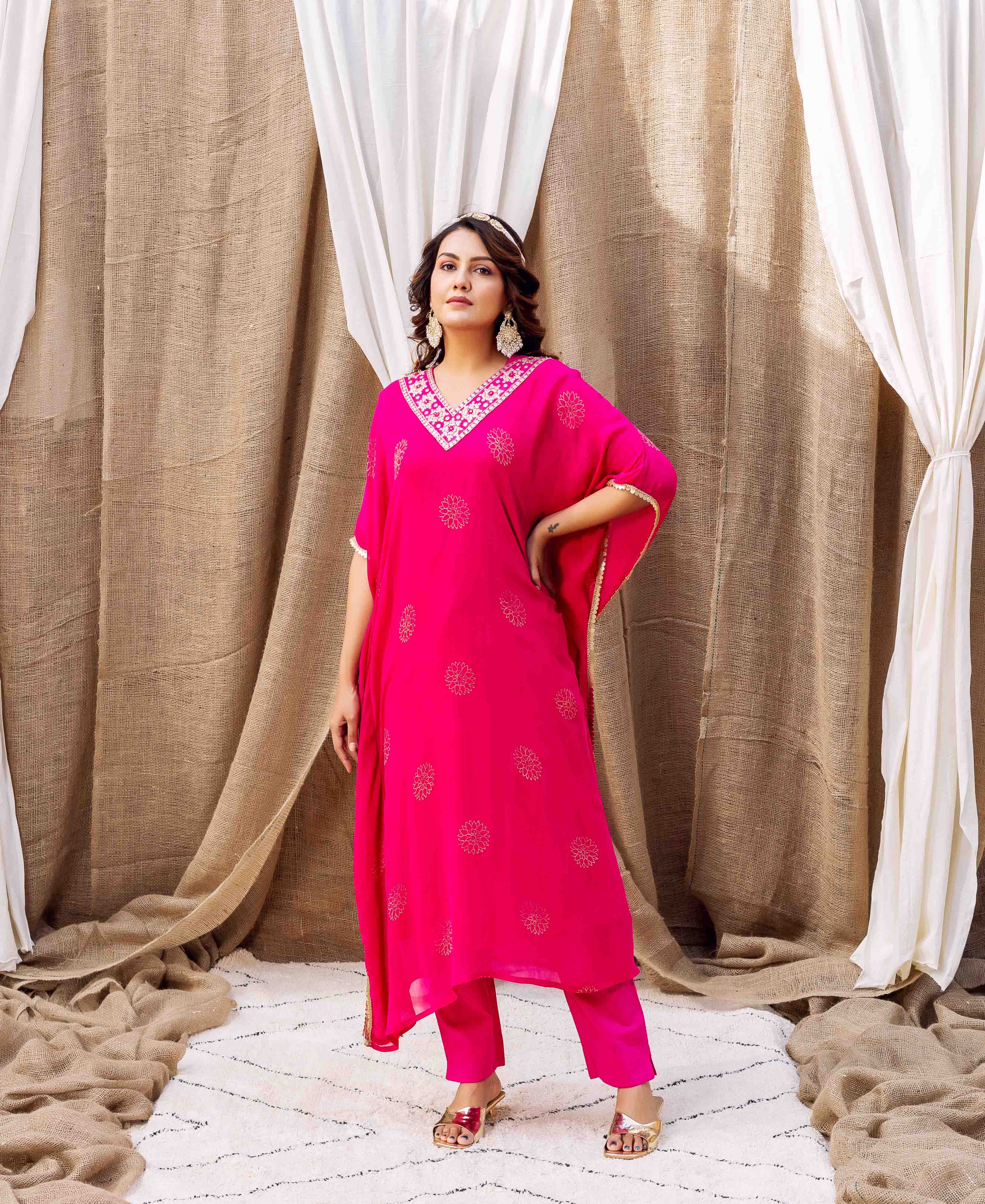 Eshika Raspberry Pink Embroidered Chanderi Dress