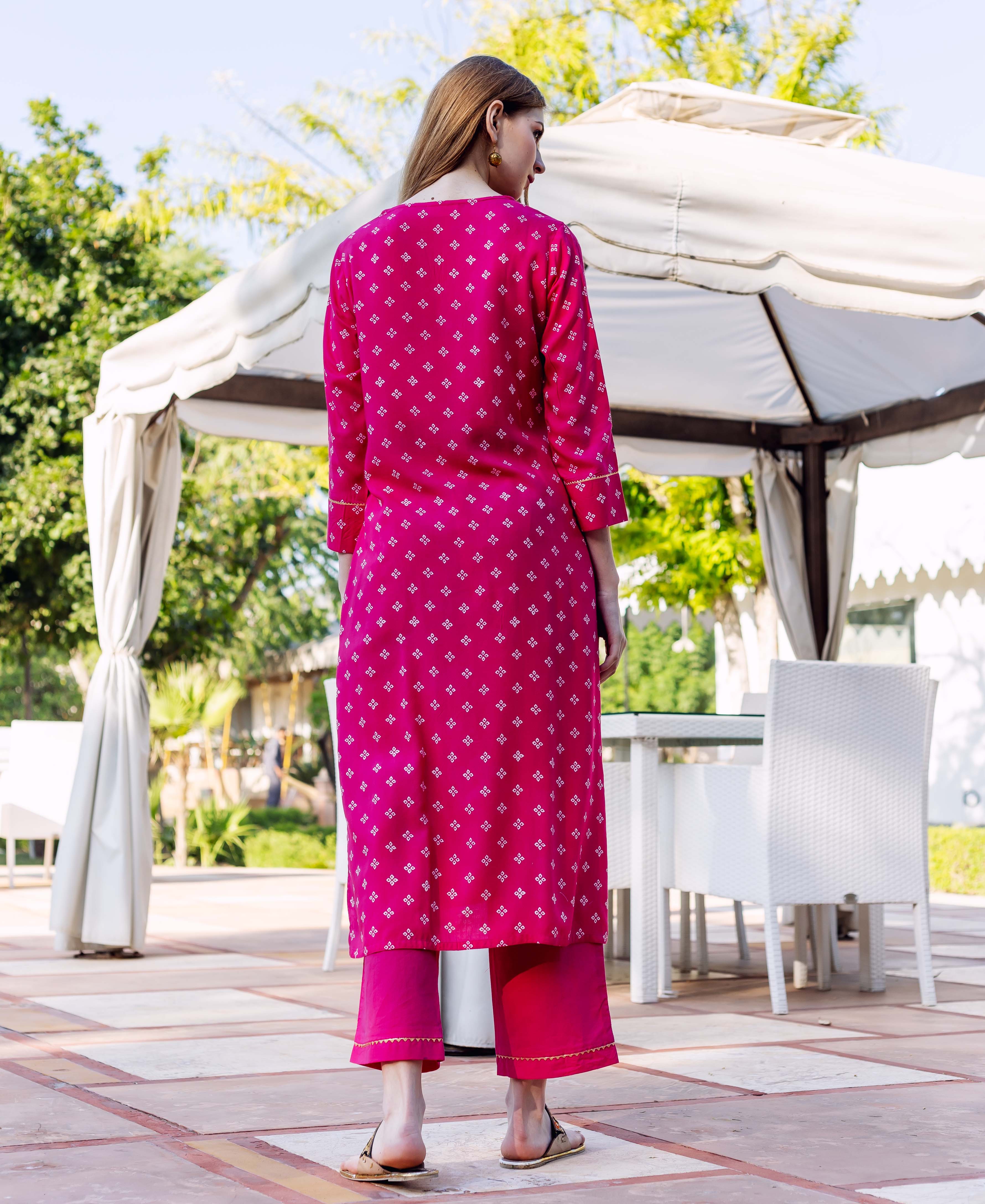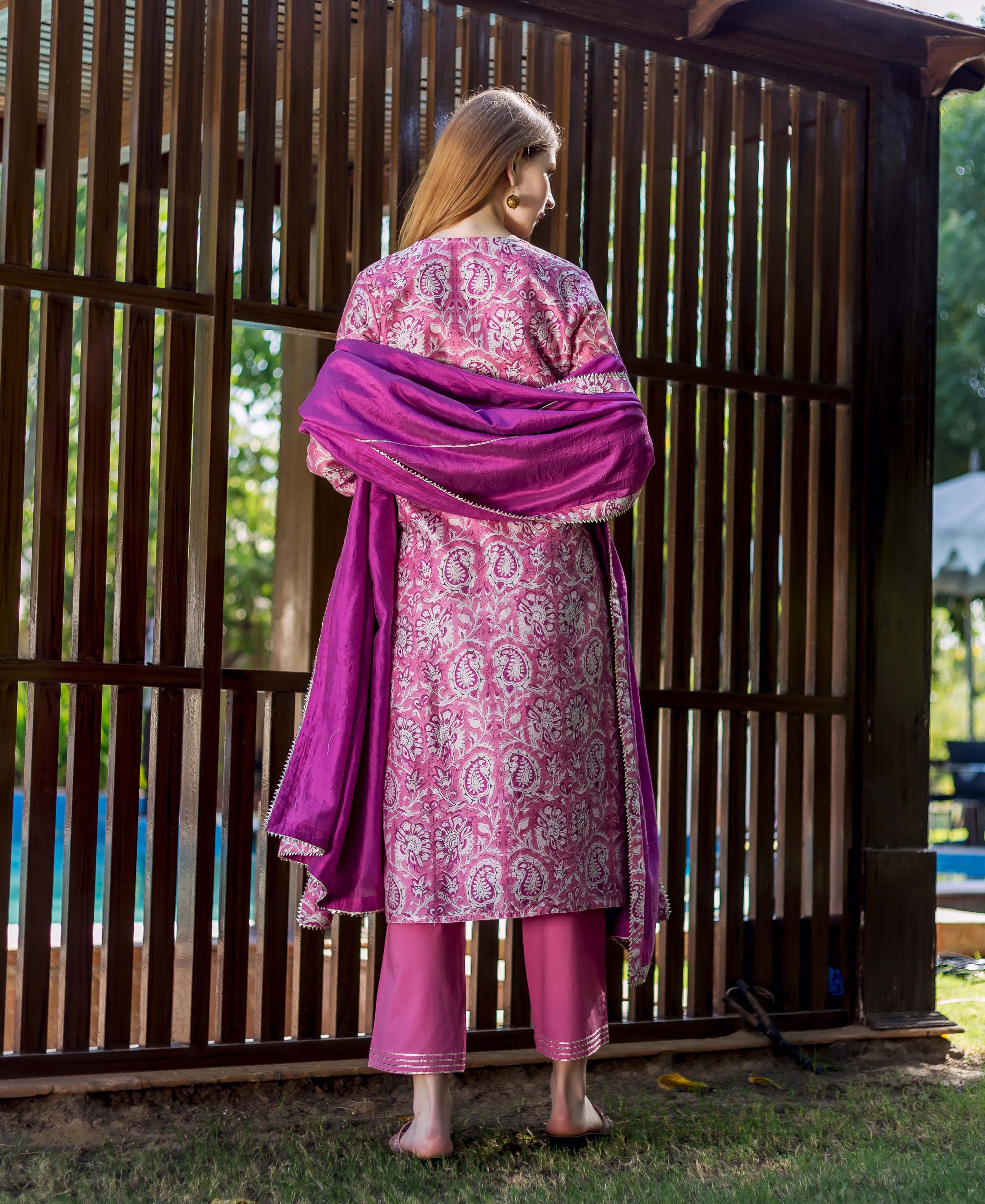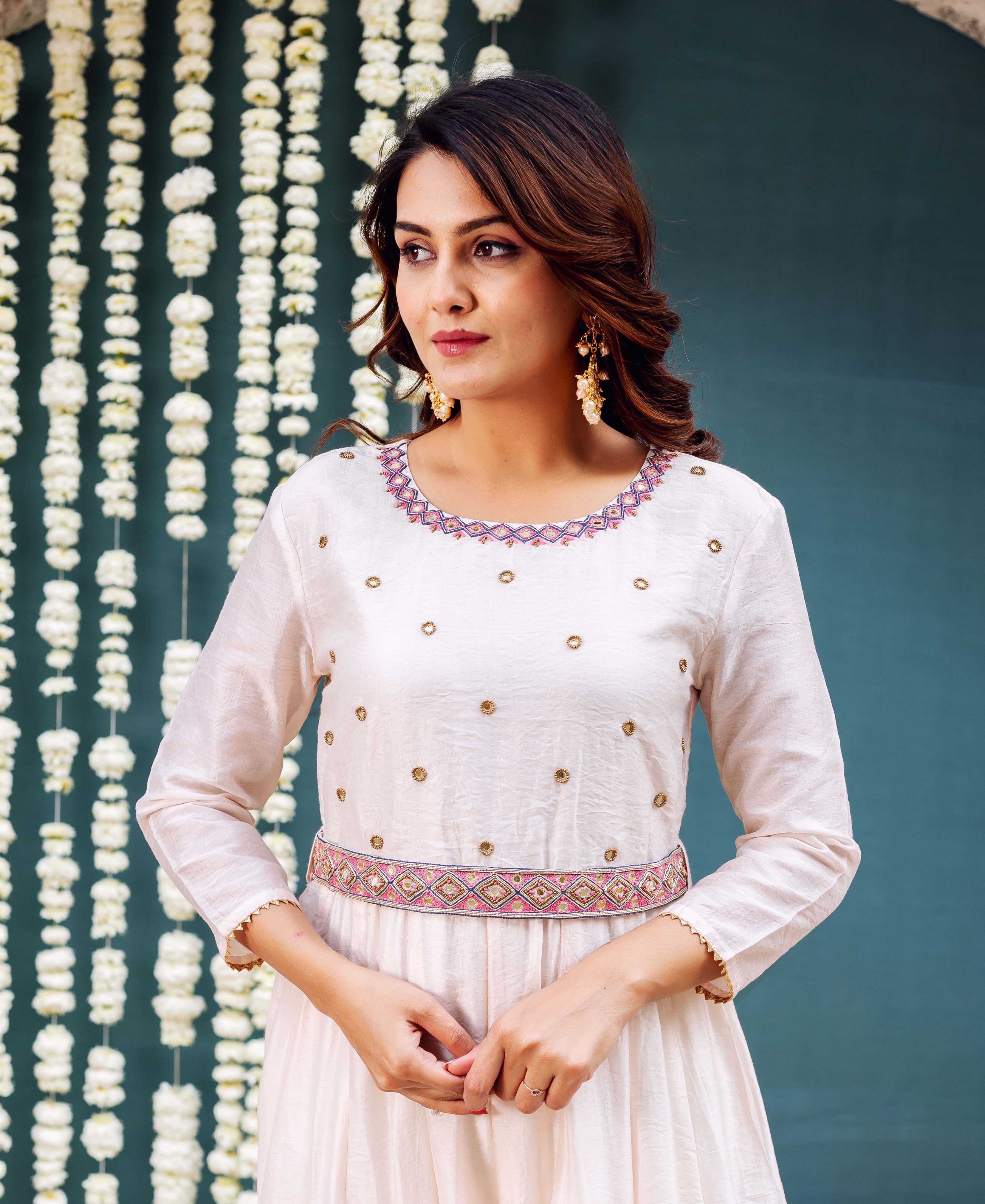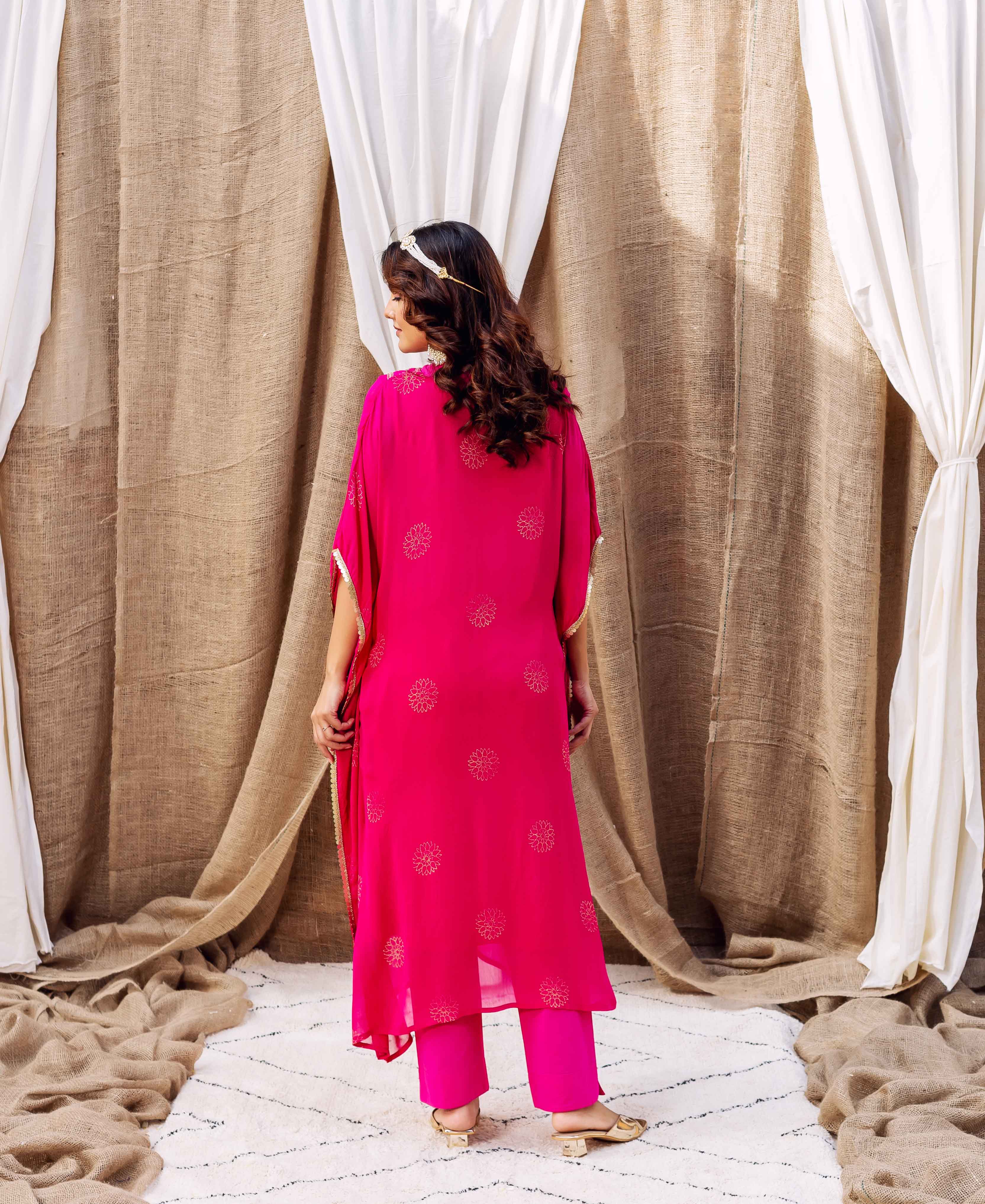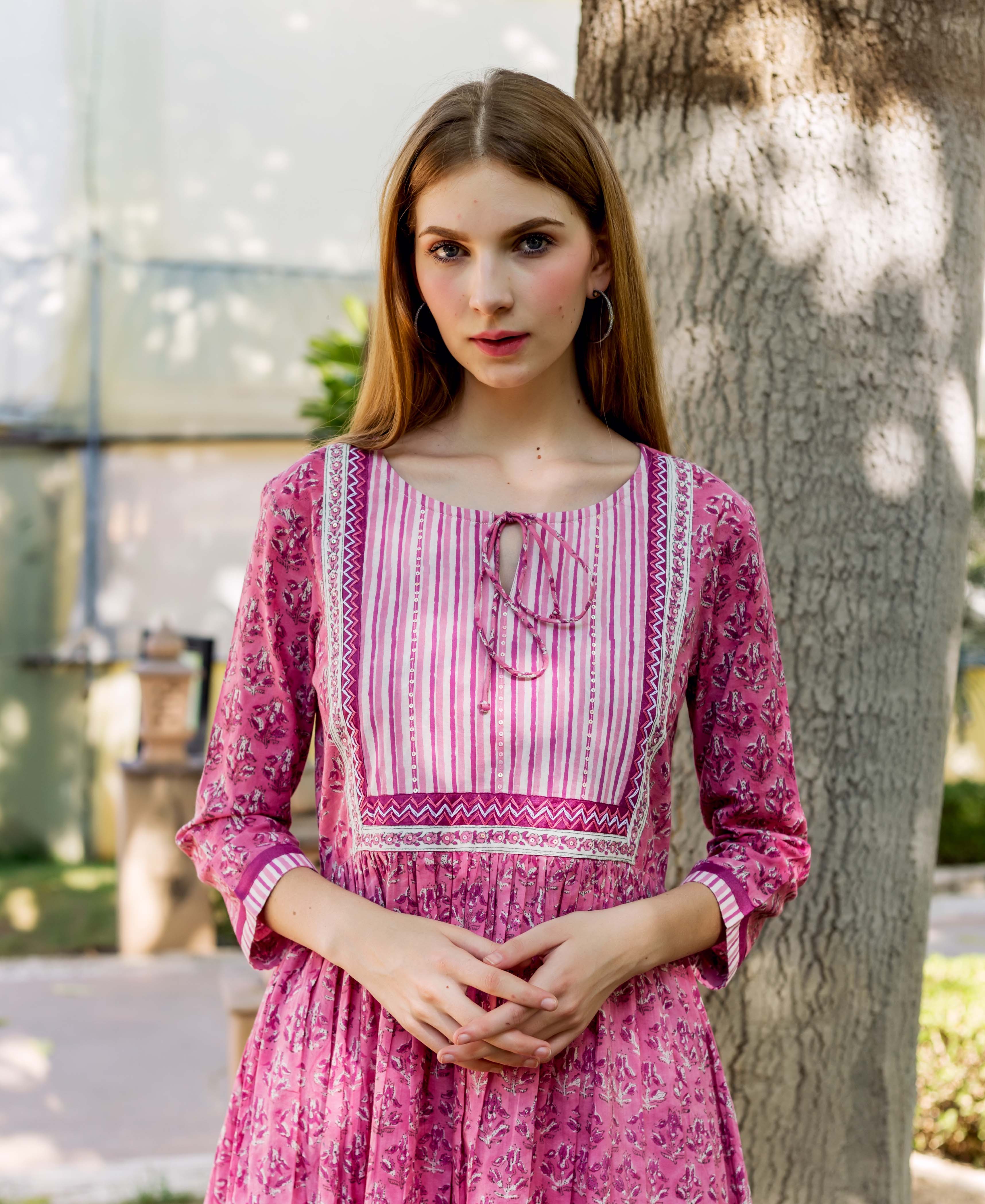 Eshika Raspberry Pink Embroidered Chanderi Dress