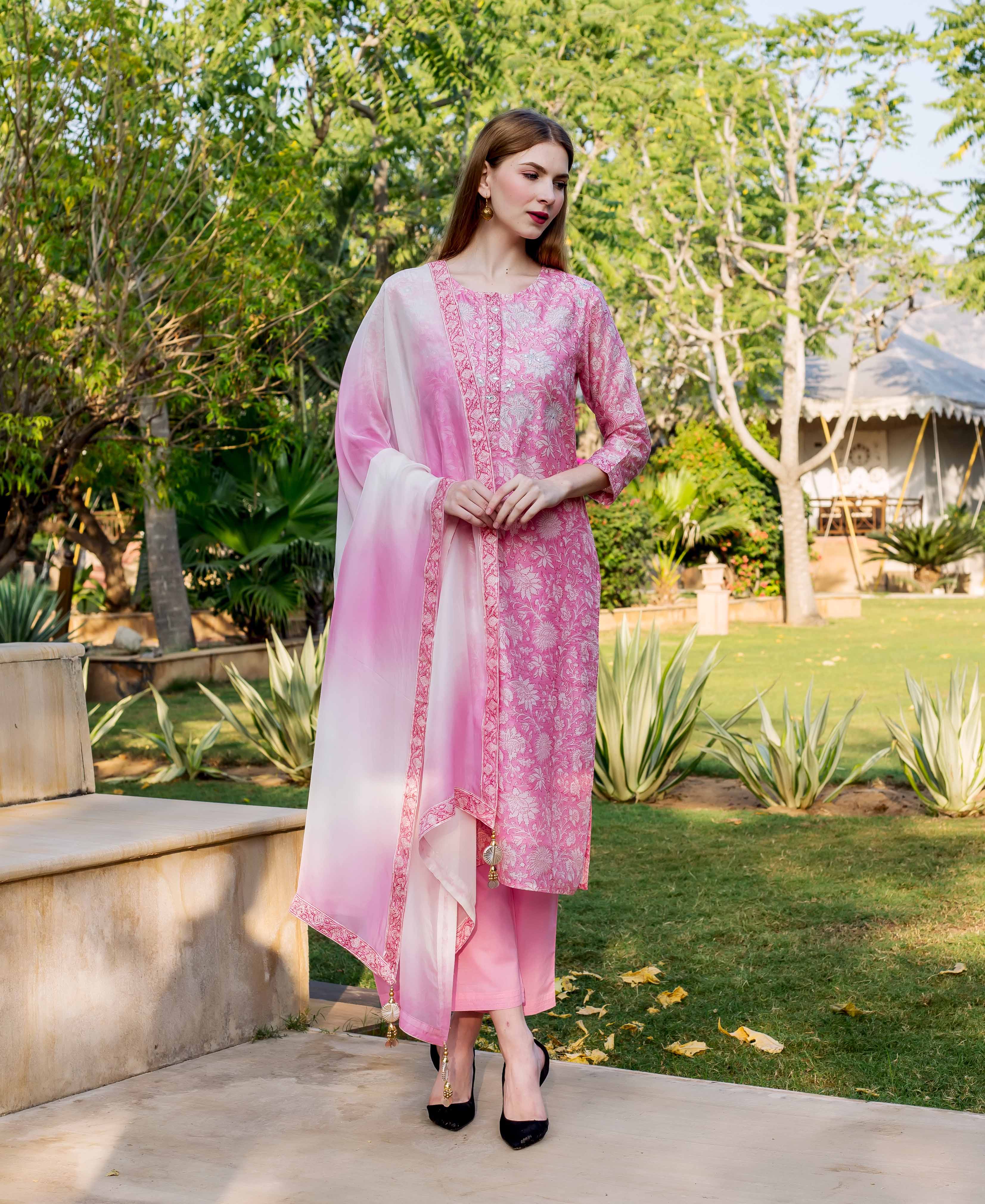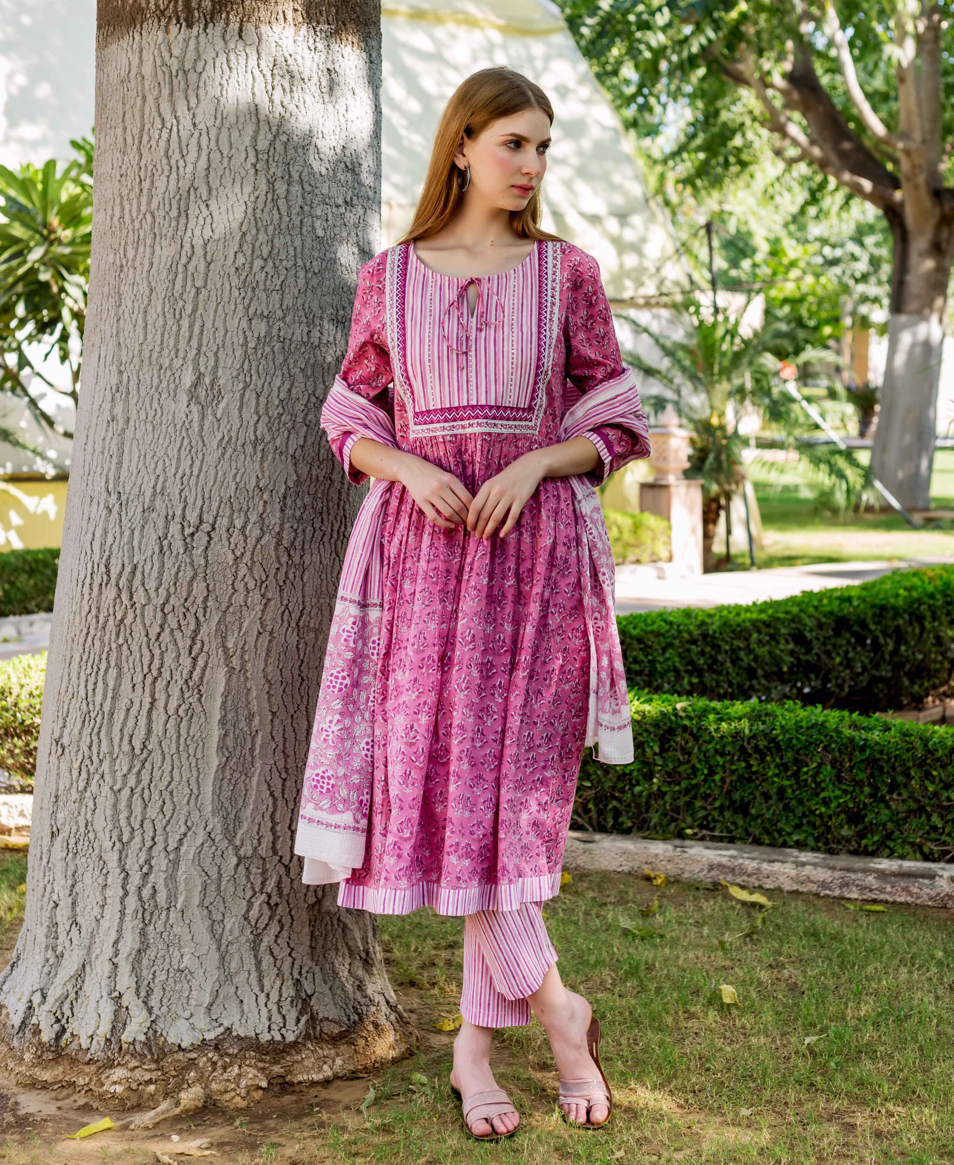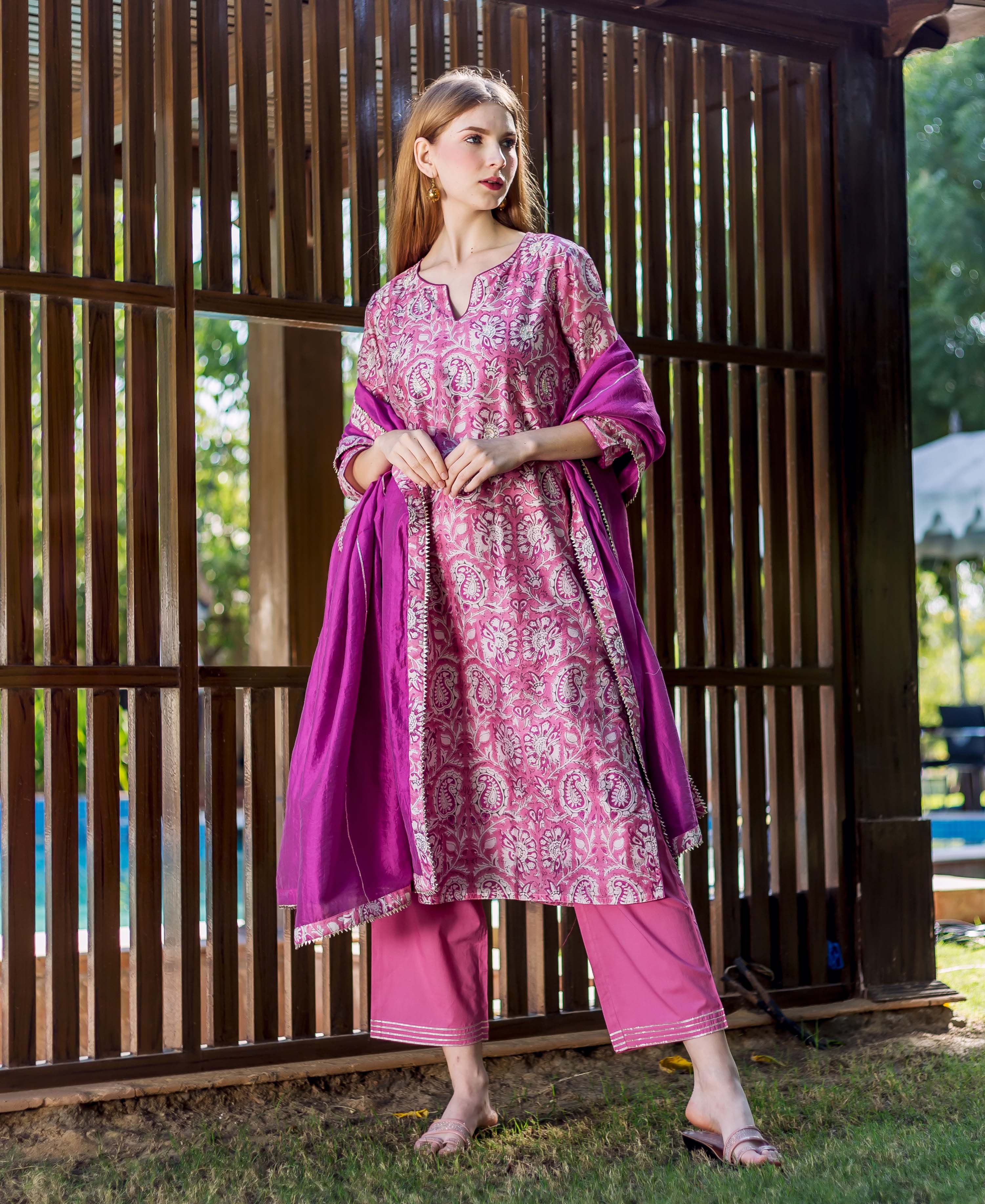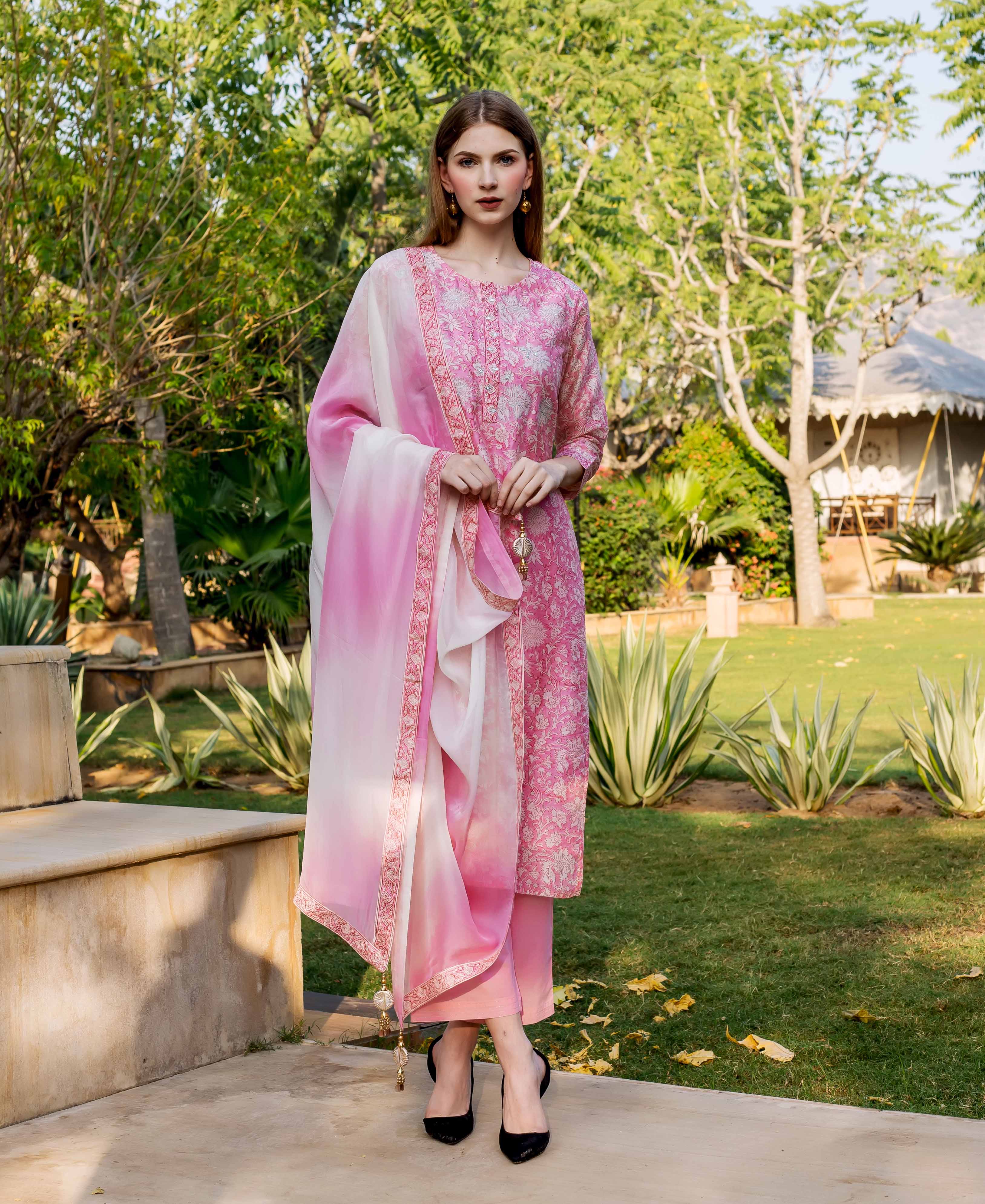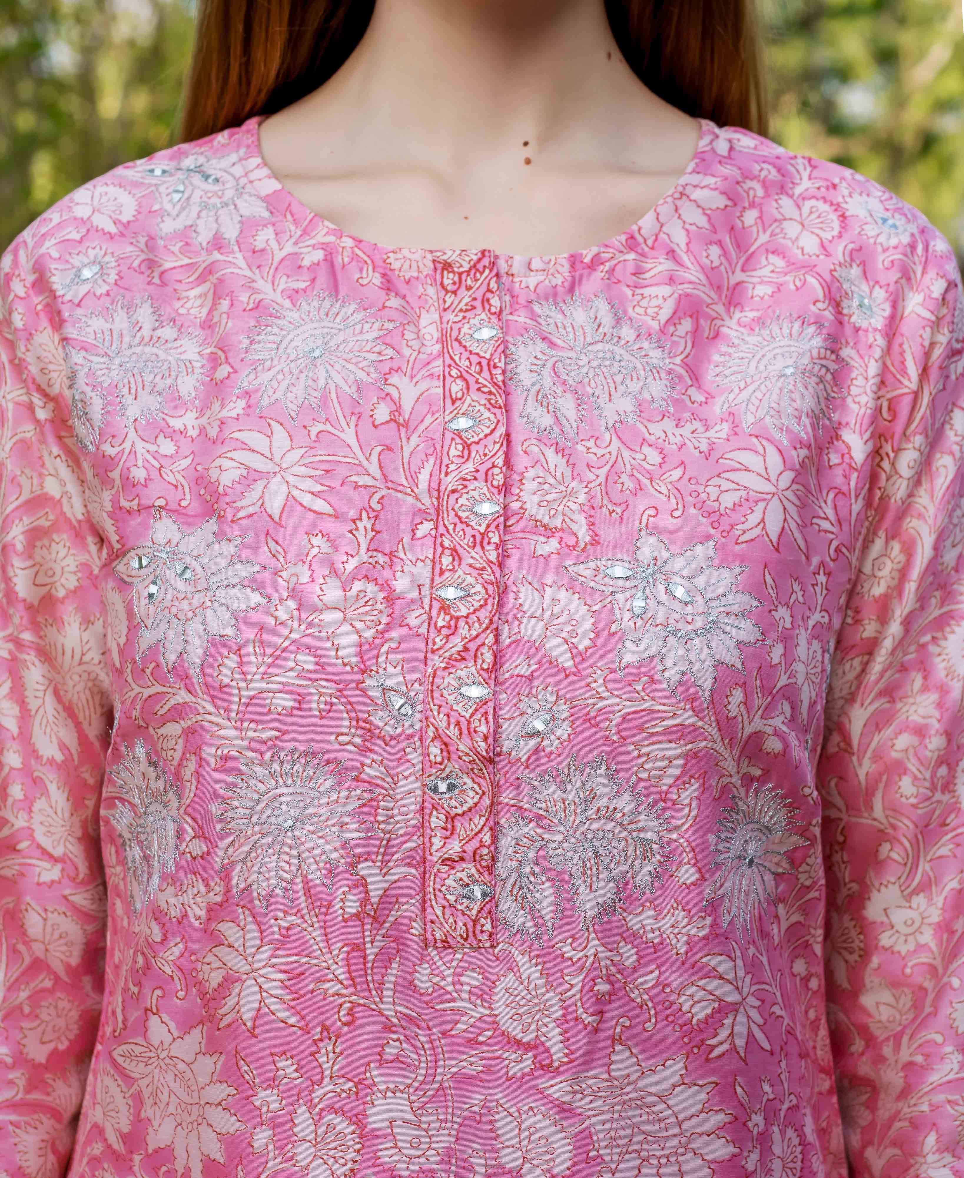 Eshika Raspberry Pink Embroidered Chanderi Dress