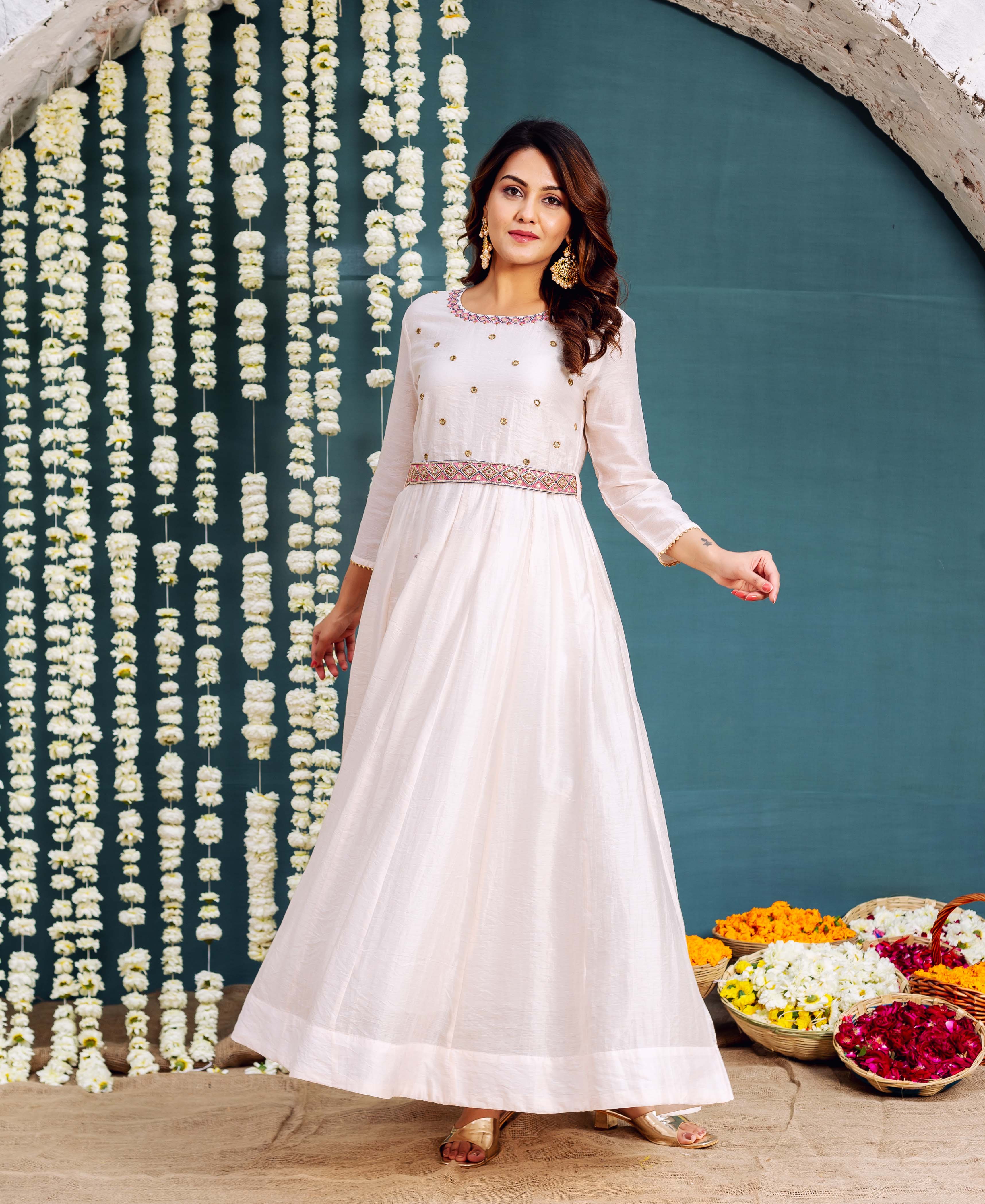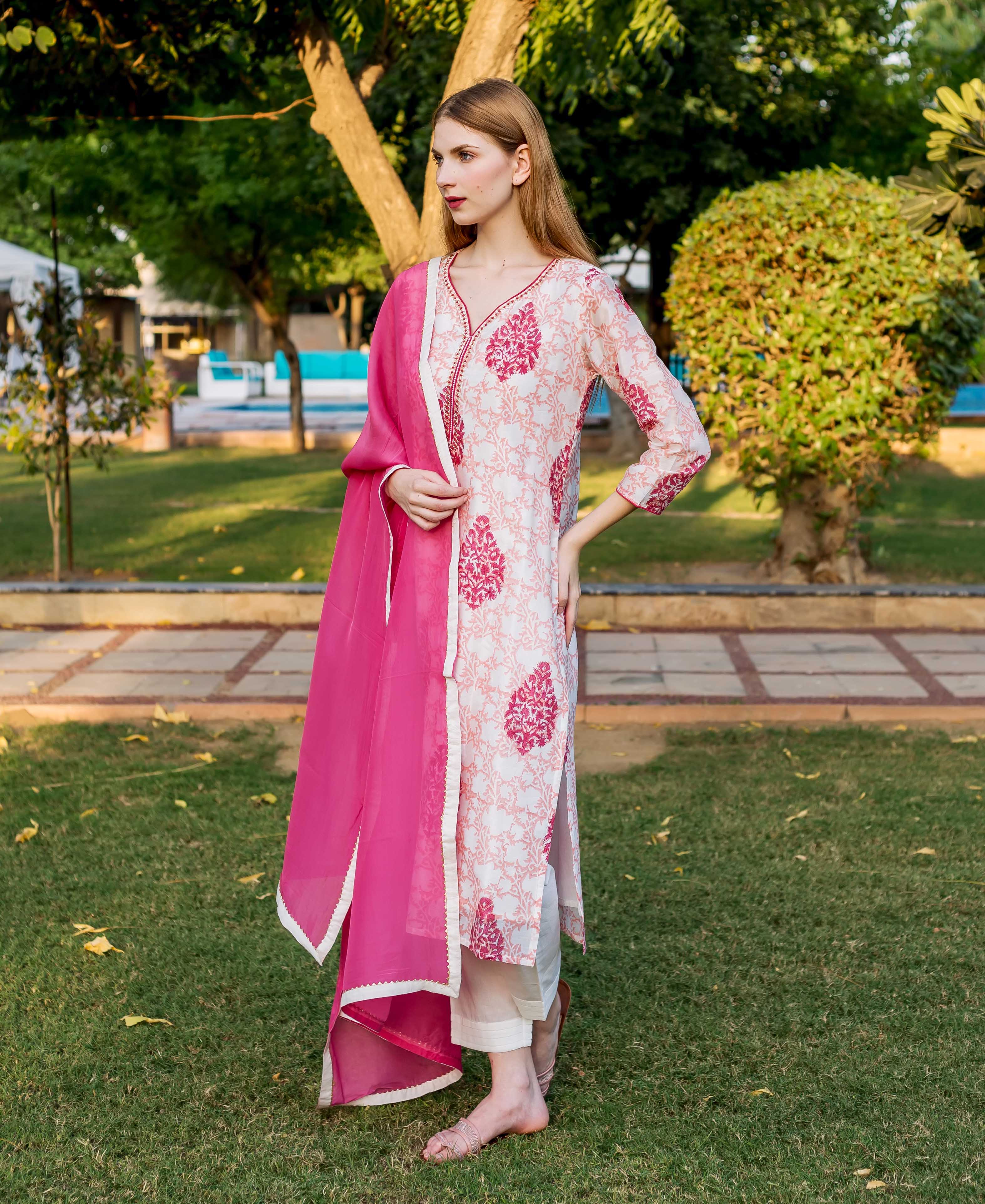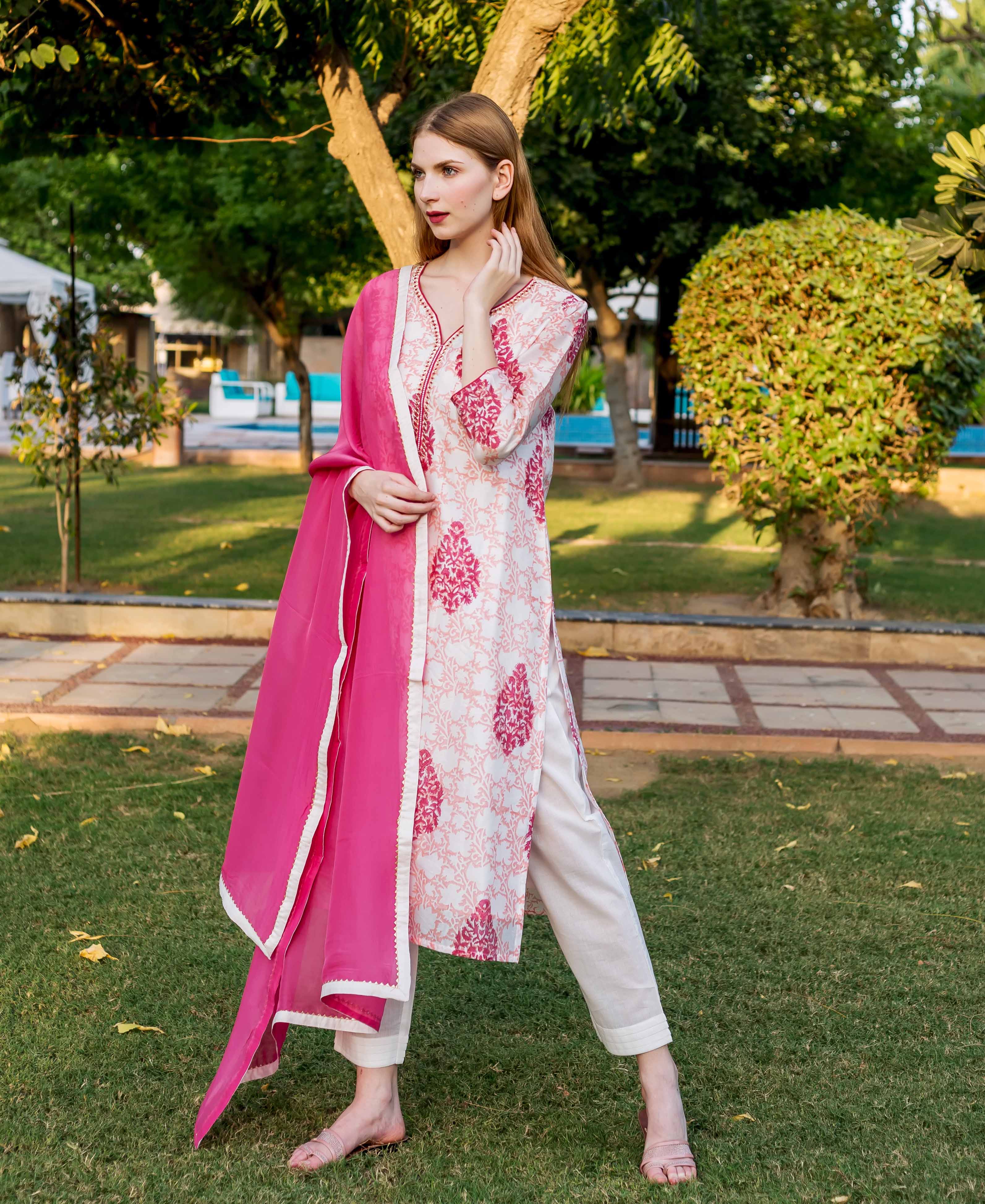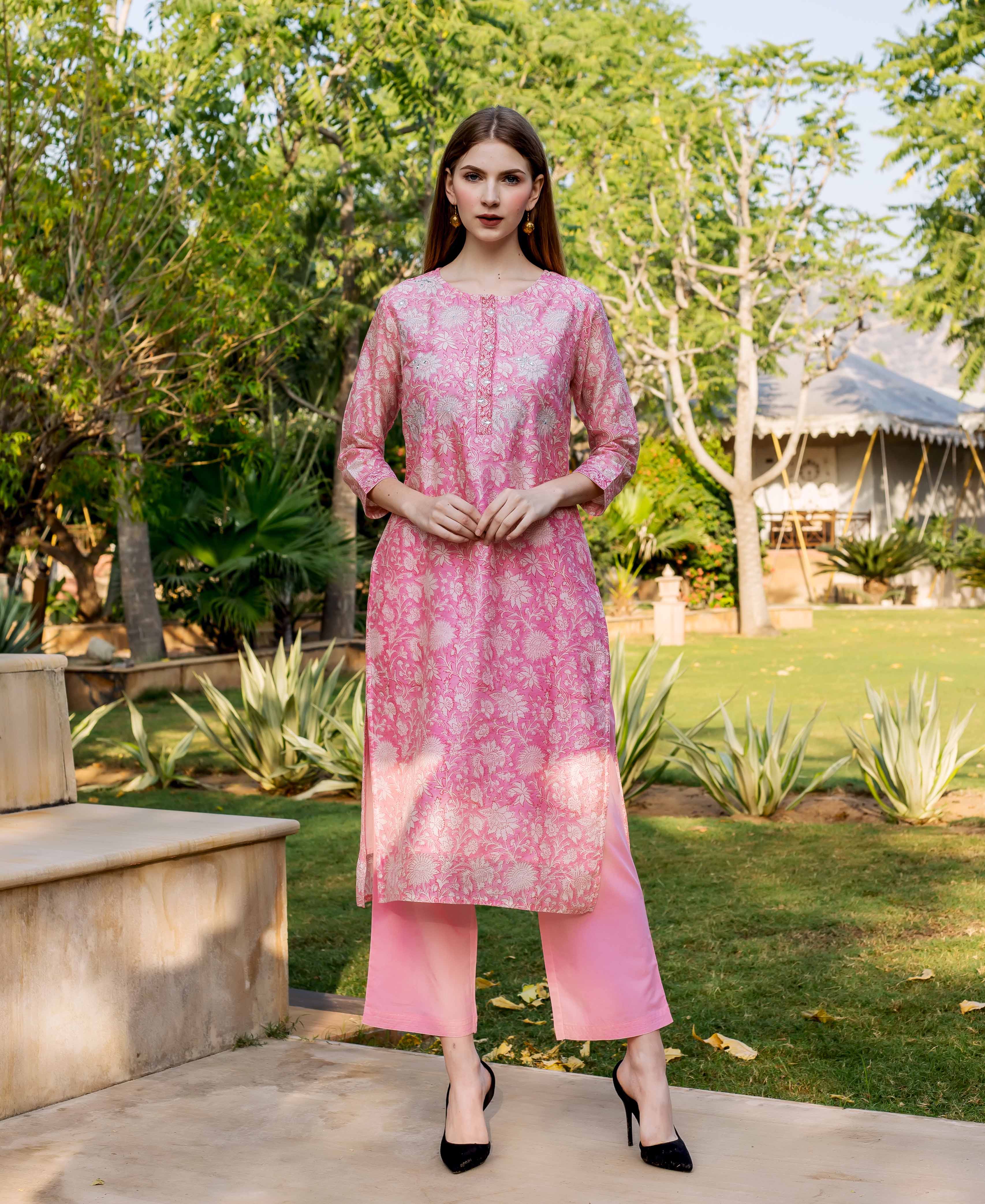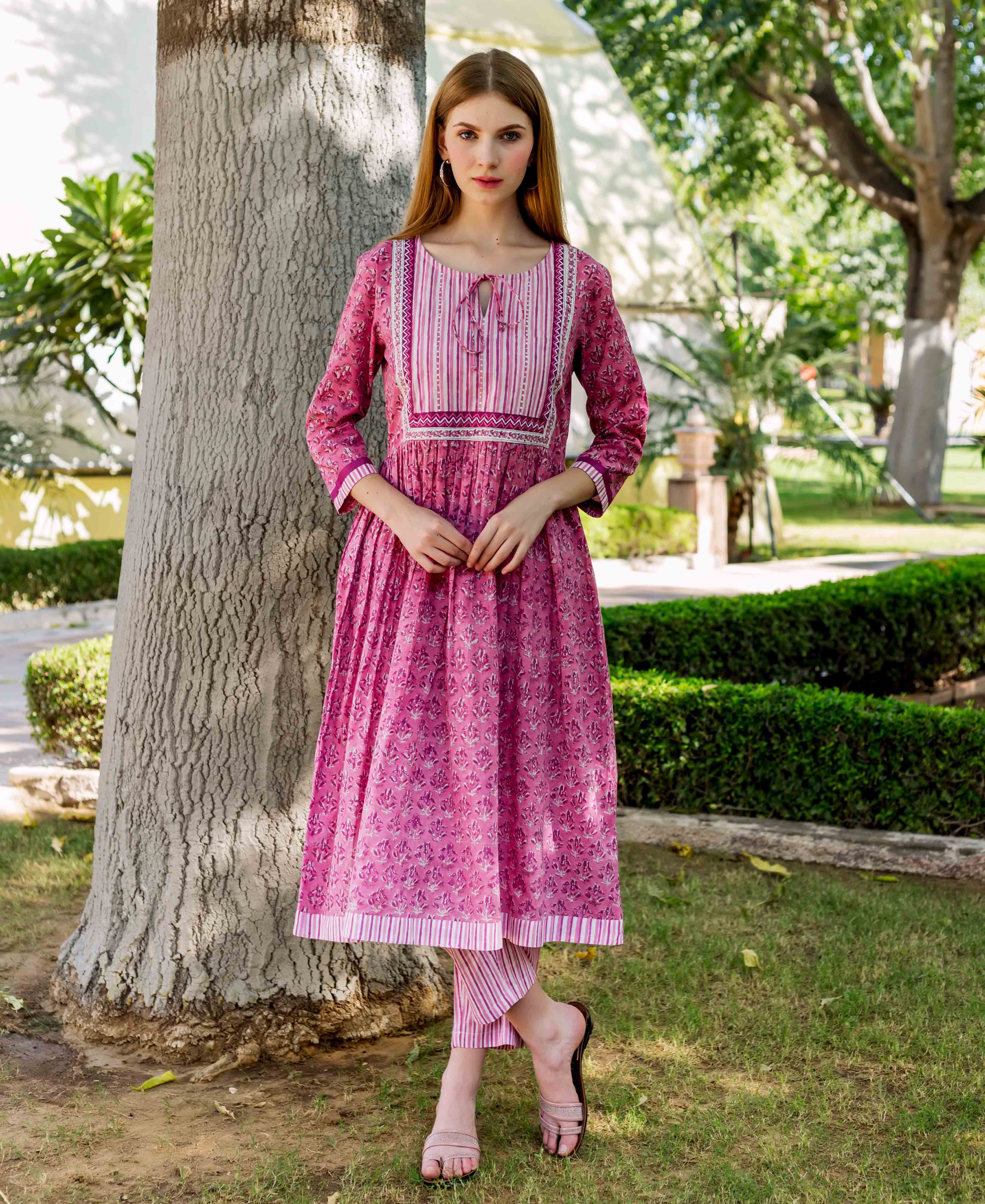 Eshika Raspberry Pink Embroidered Chanderi Dress