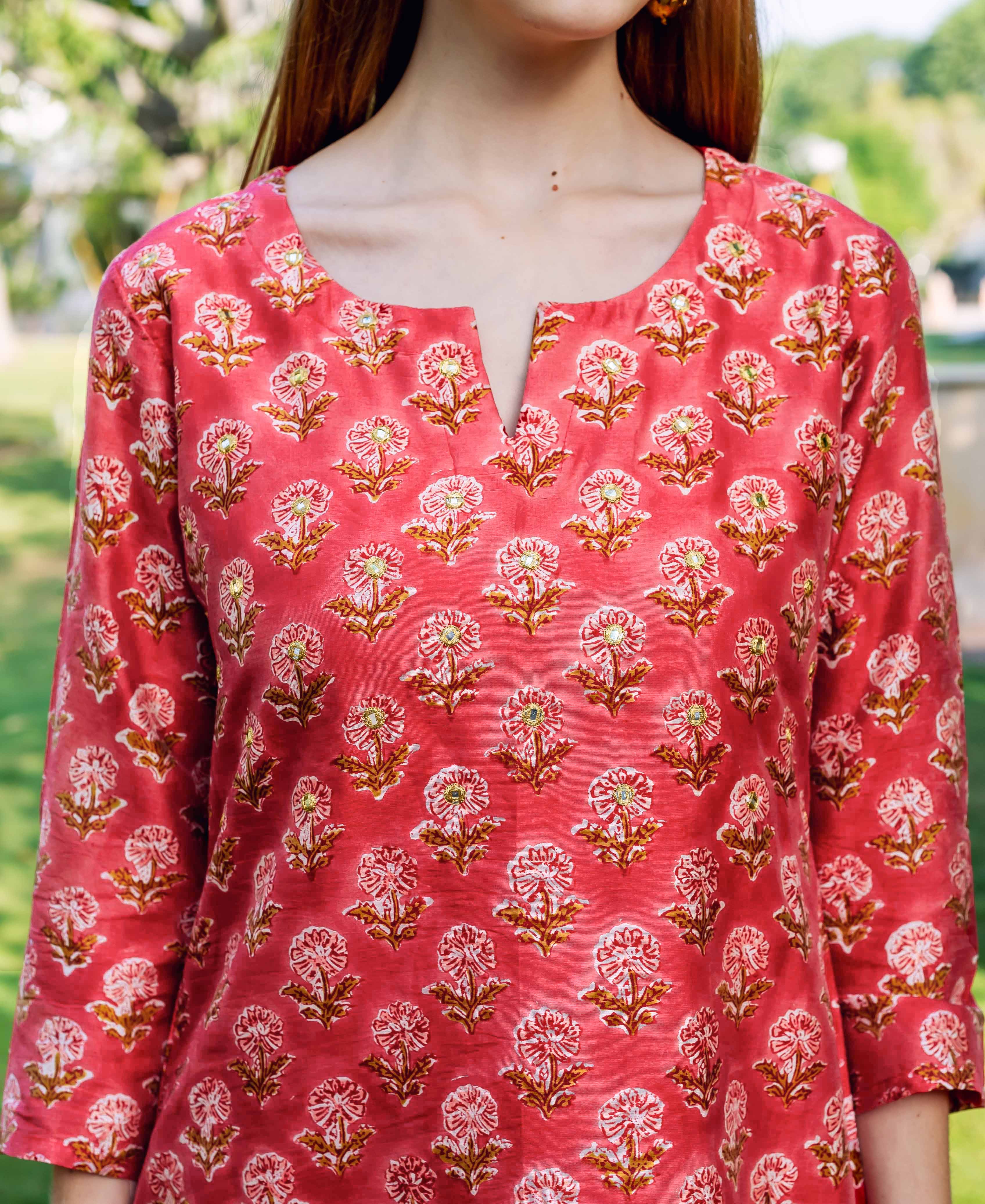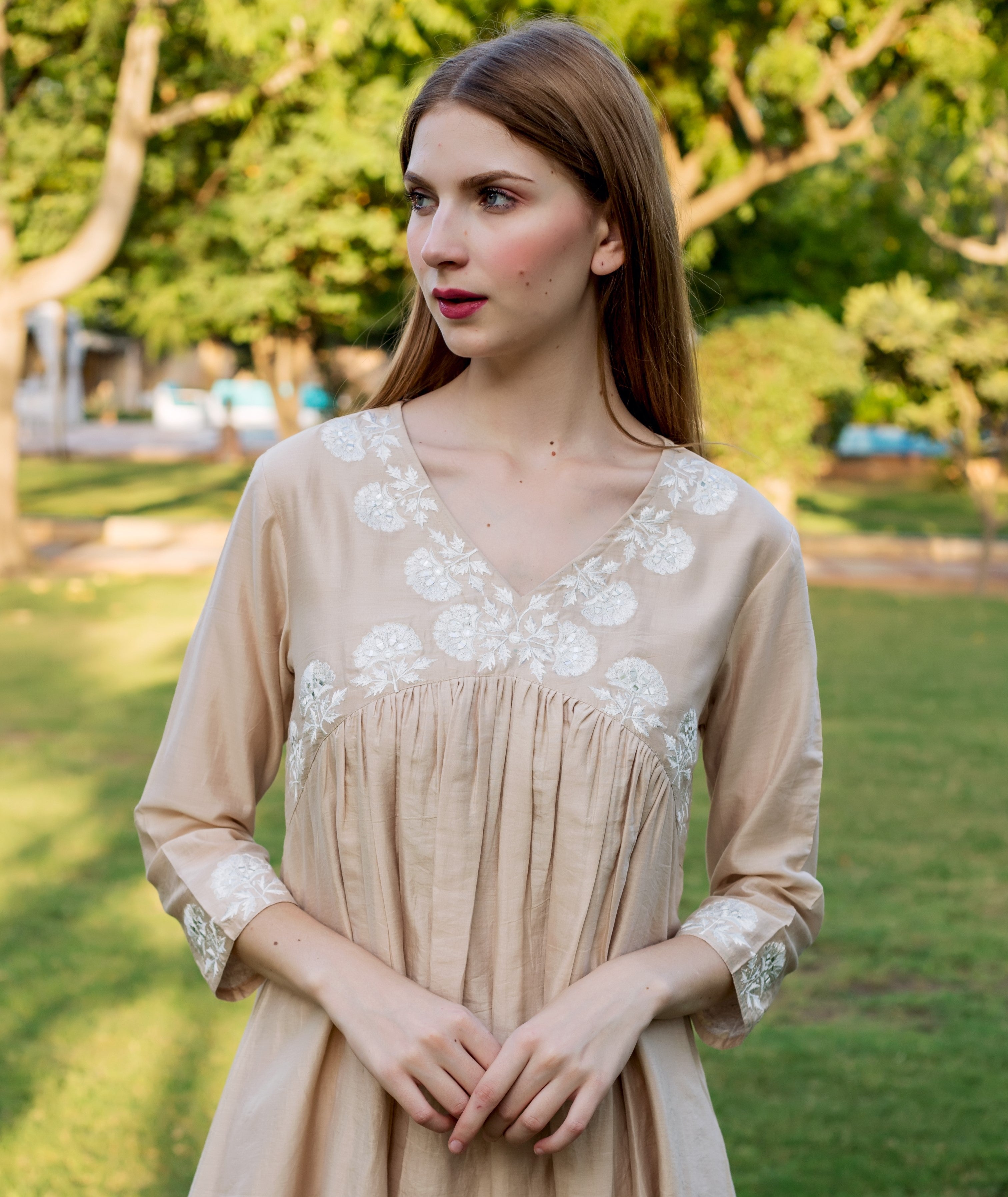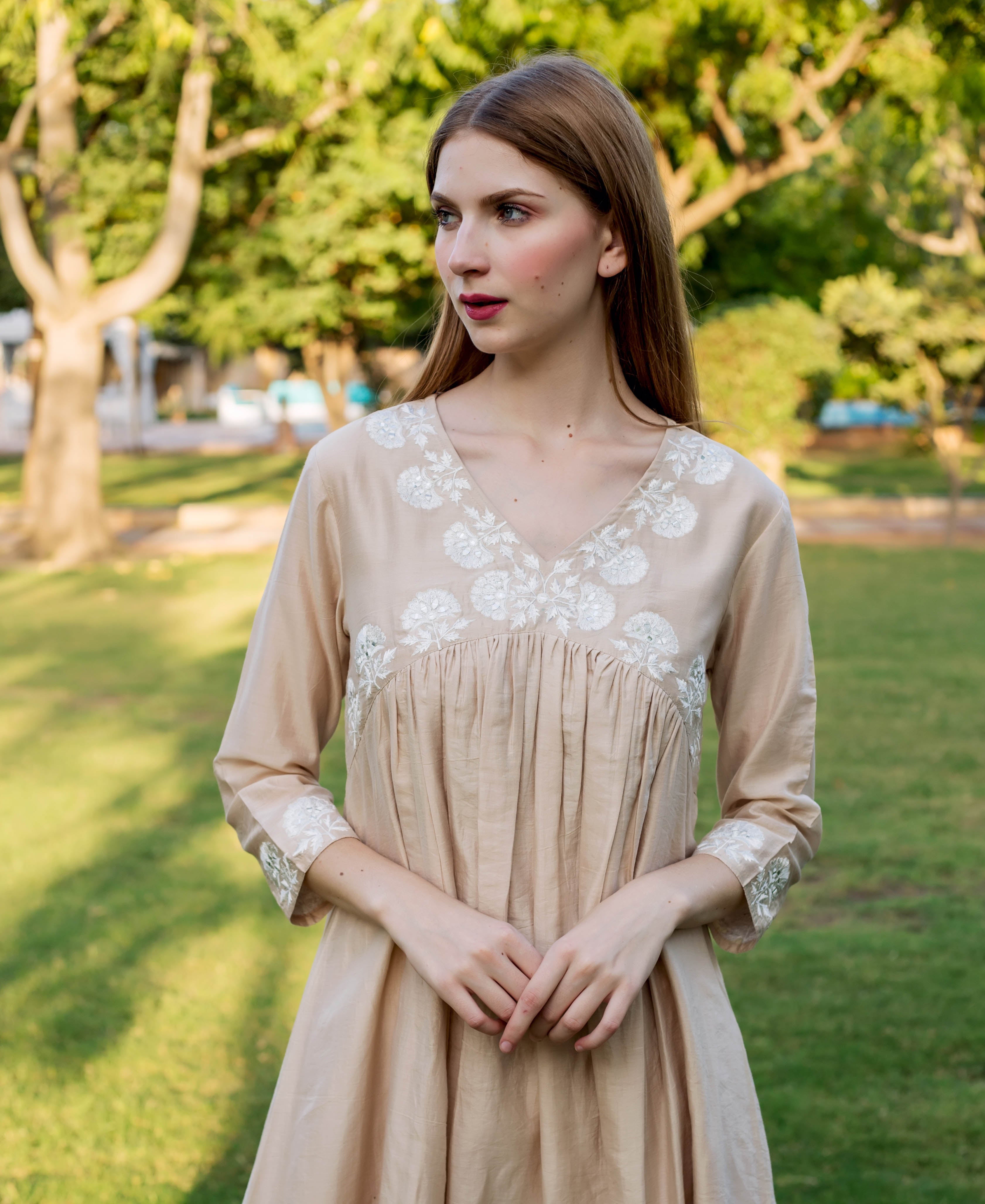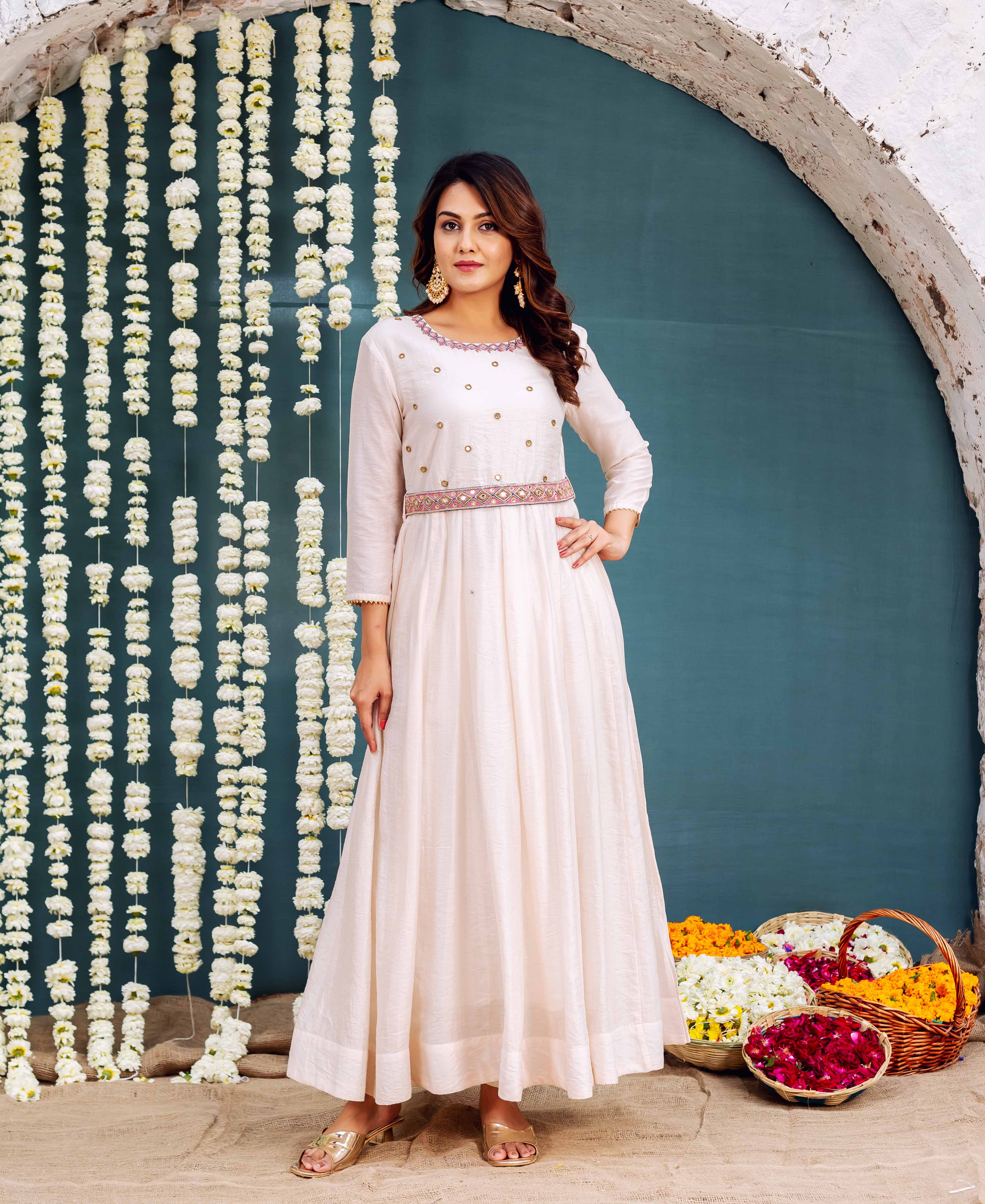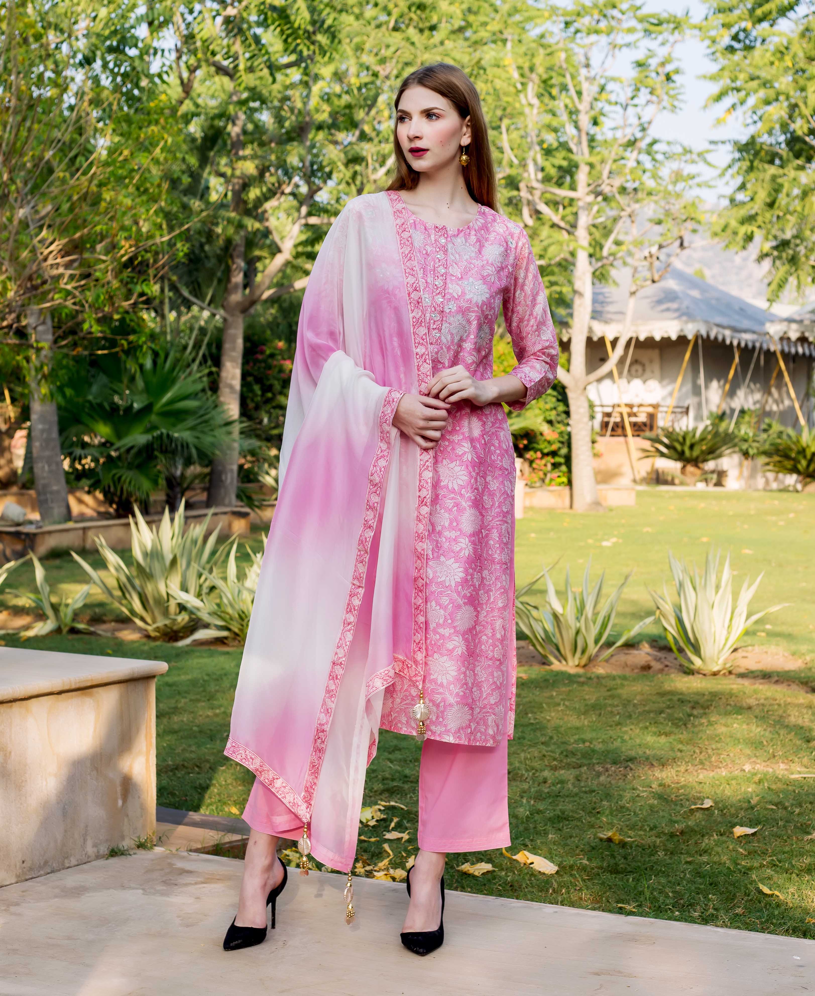 Eshika Raspberry Pink Embroidered Chanderi Dress