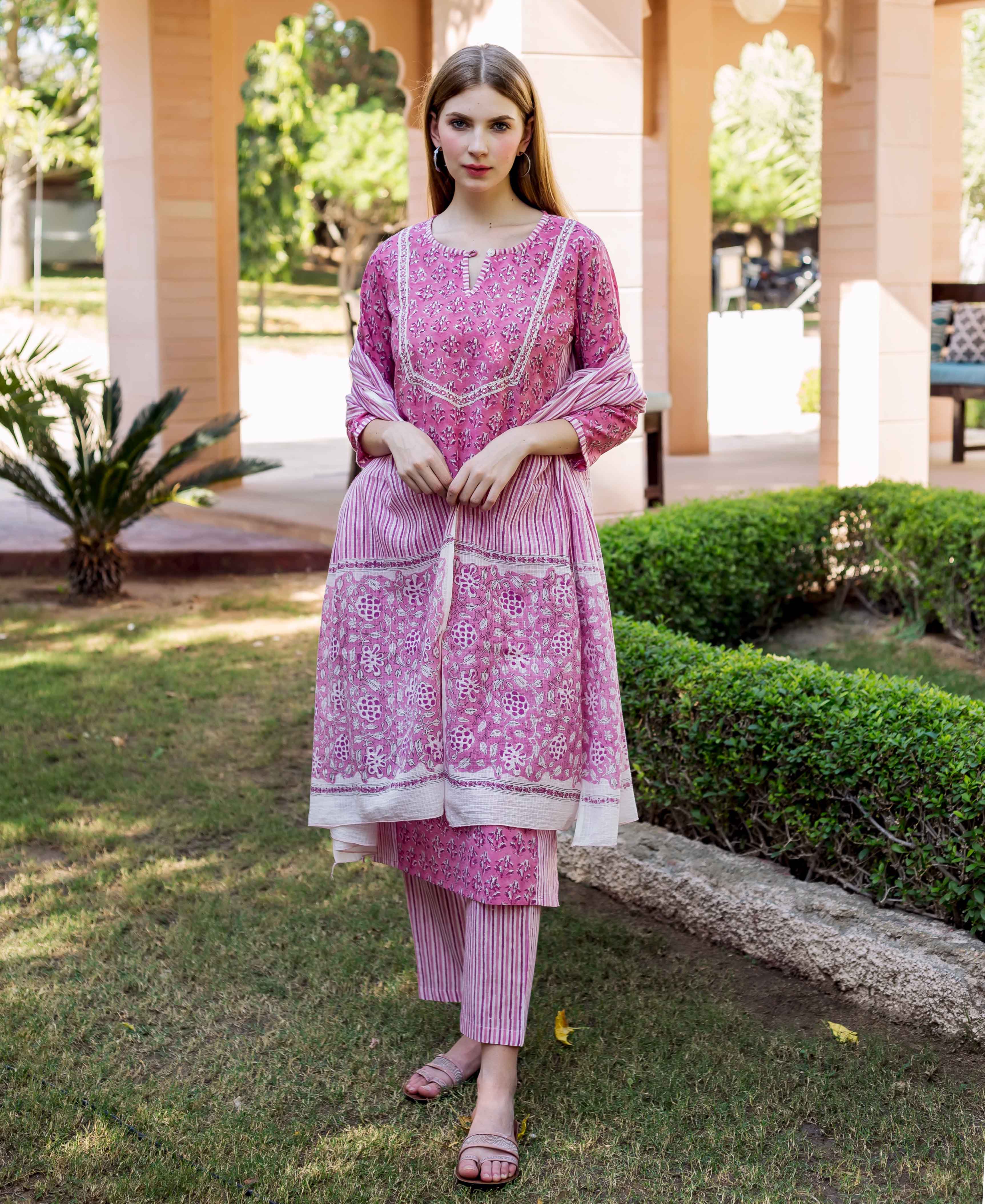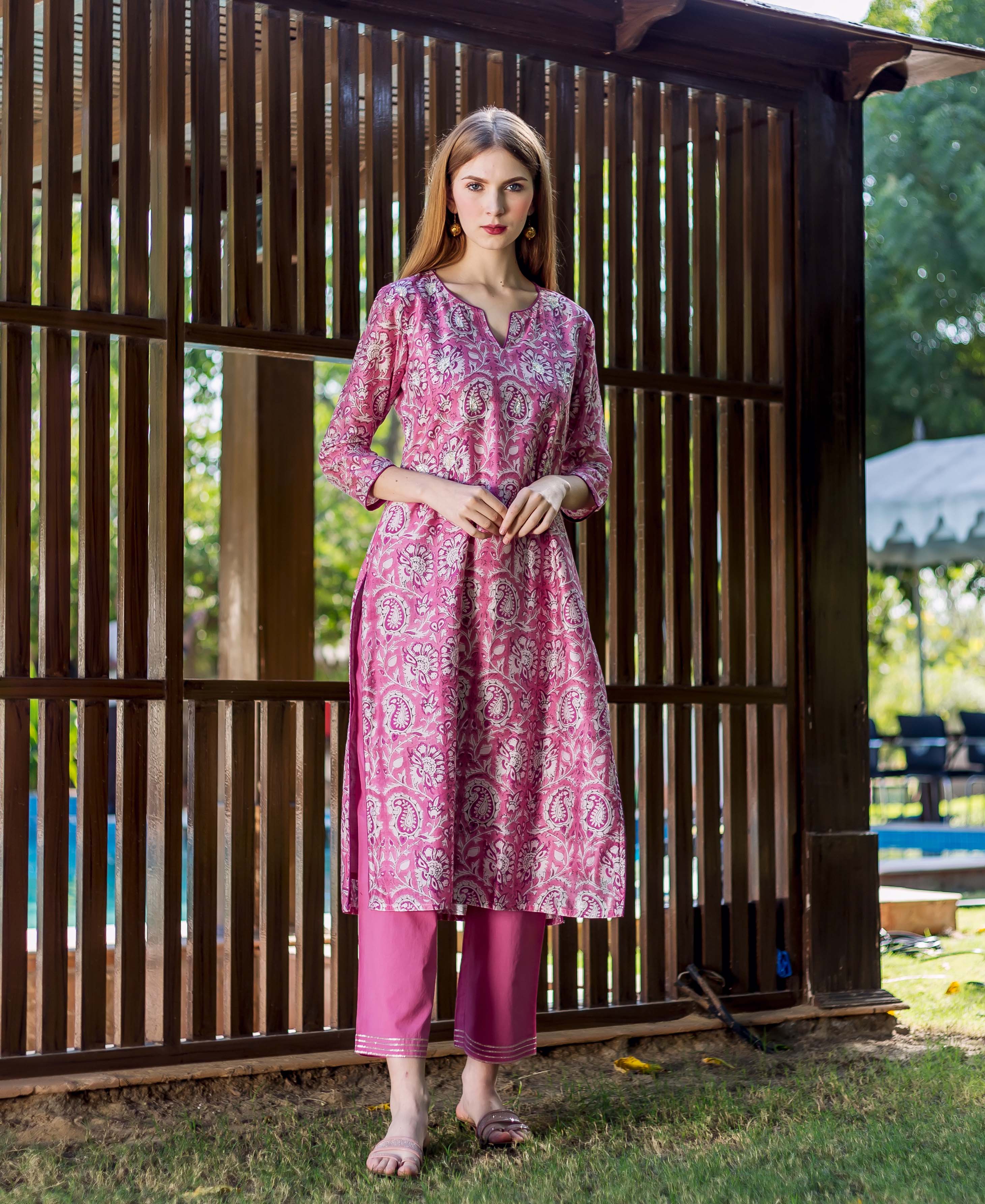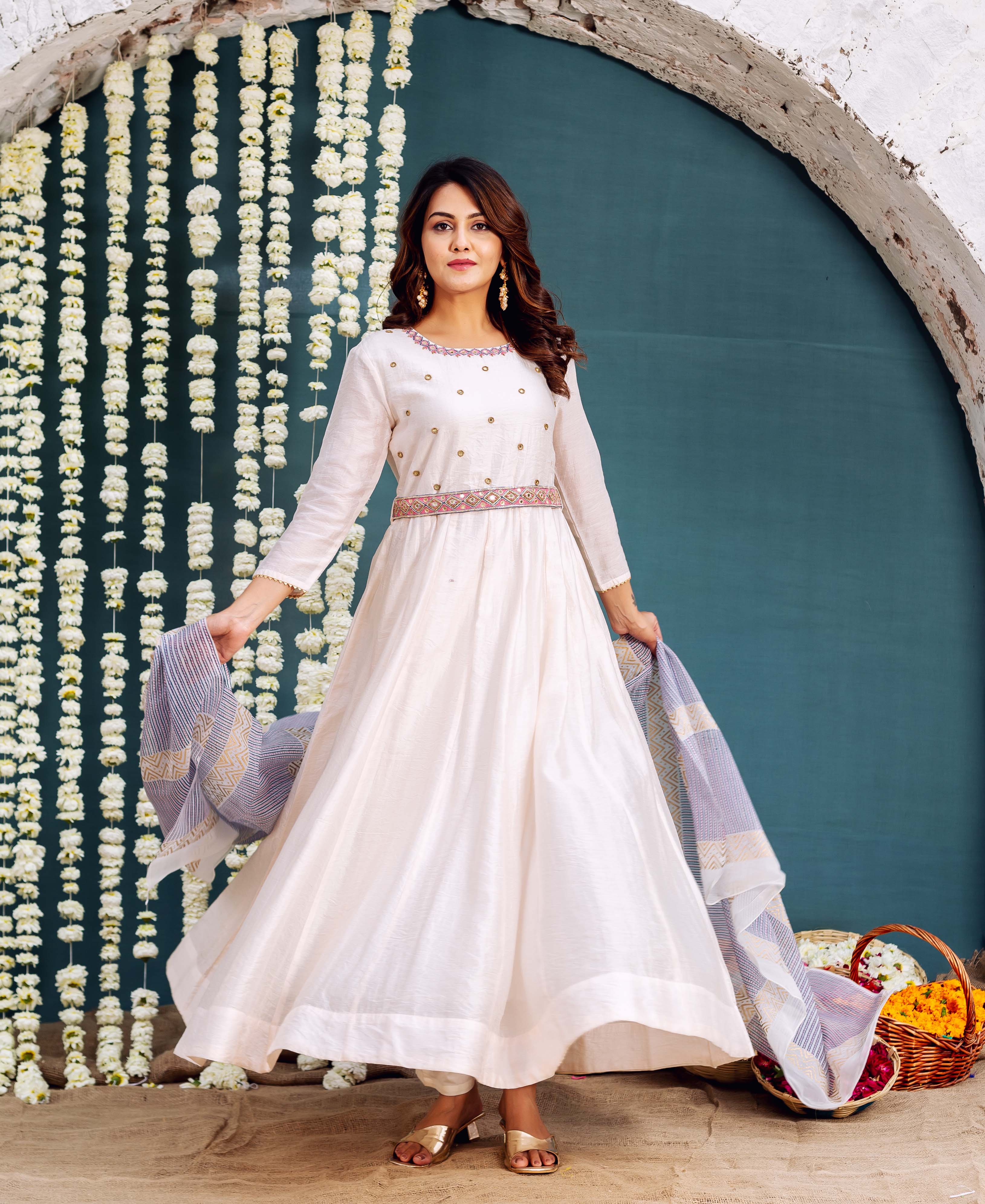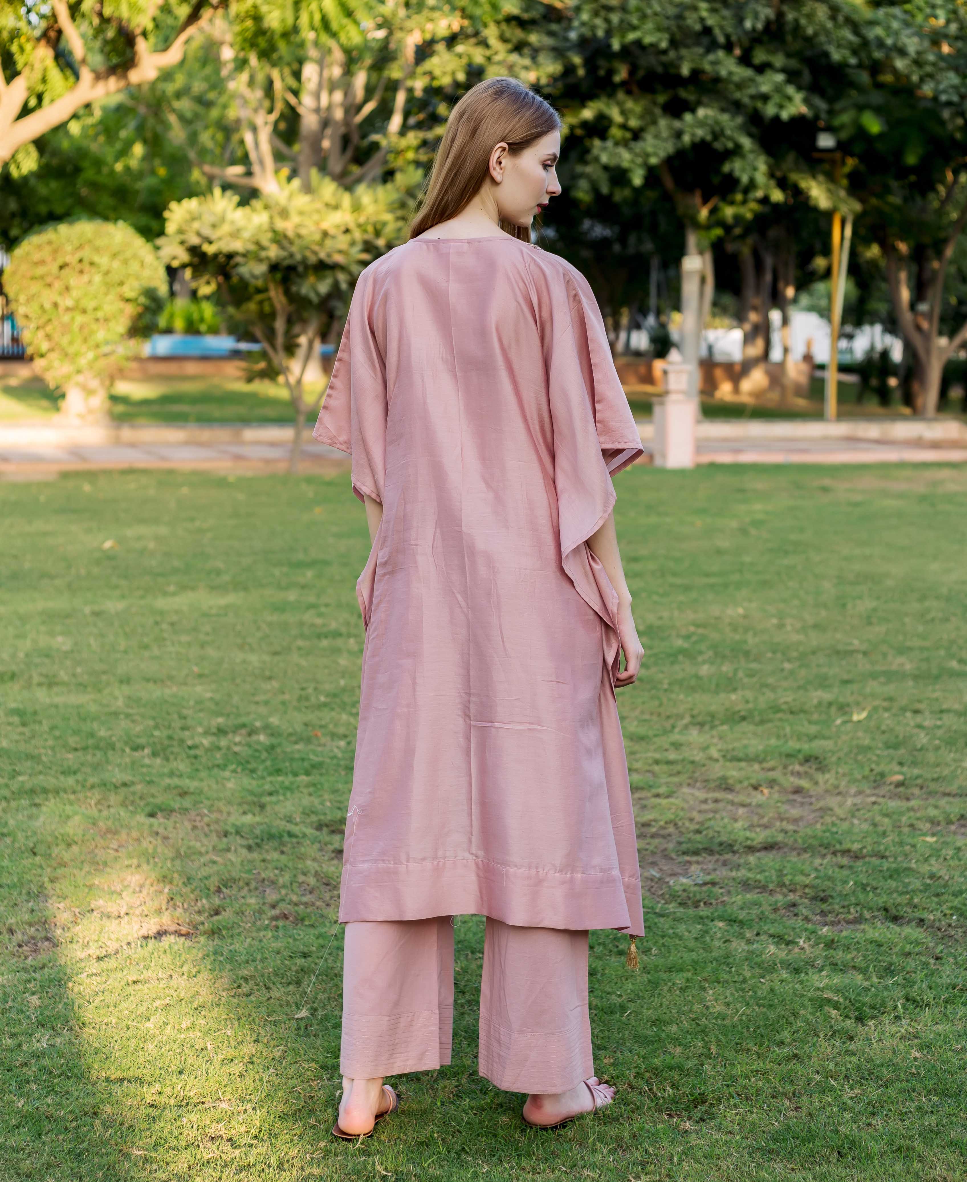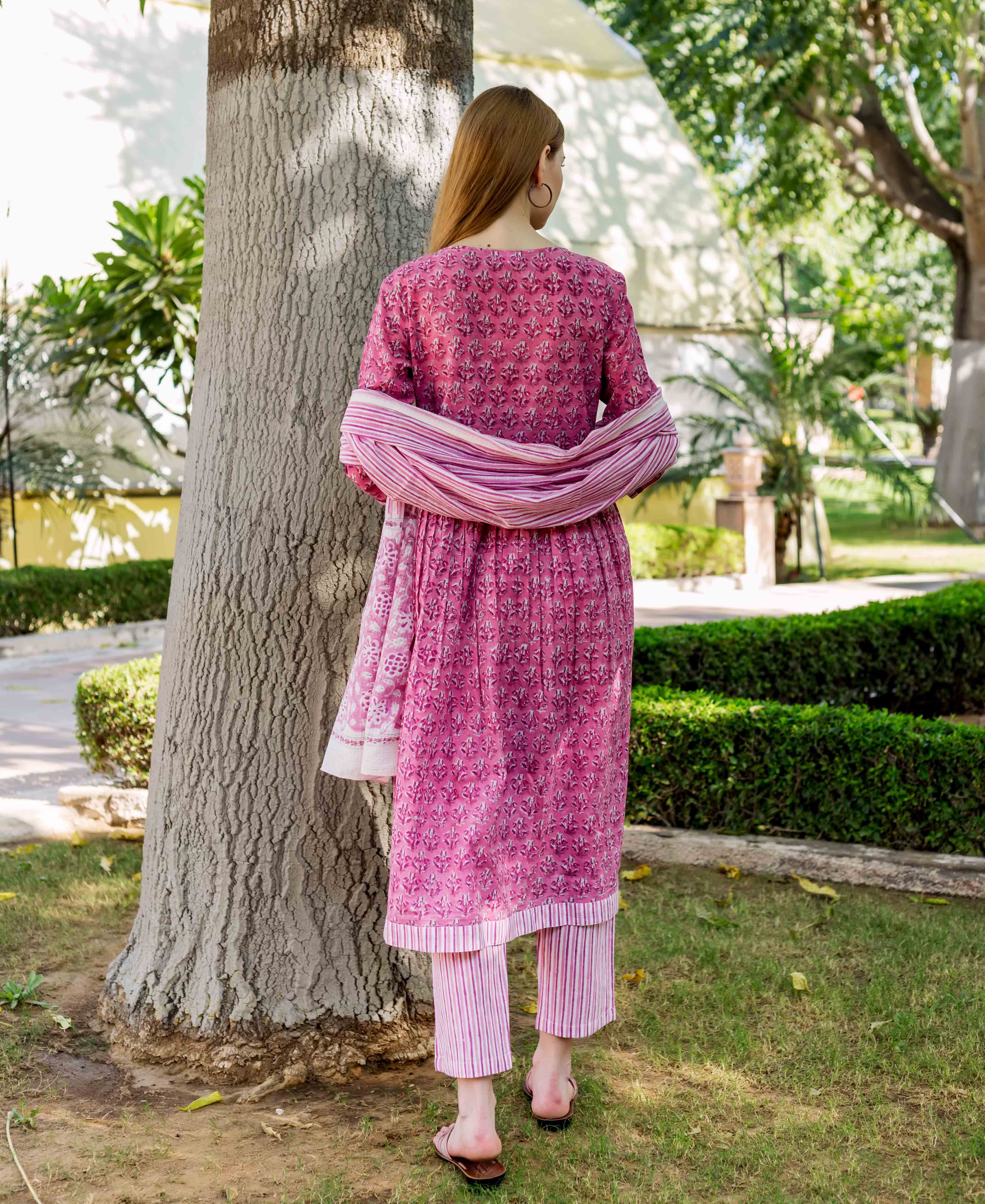 Eshika Raspberry Pink Embroidered Chanderi Dress