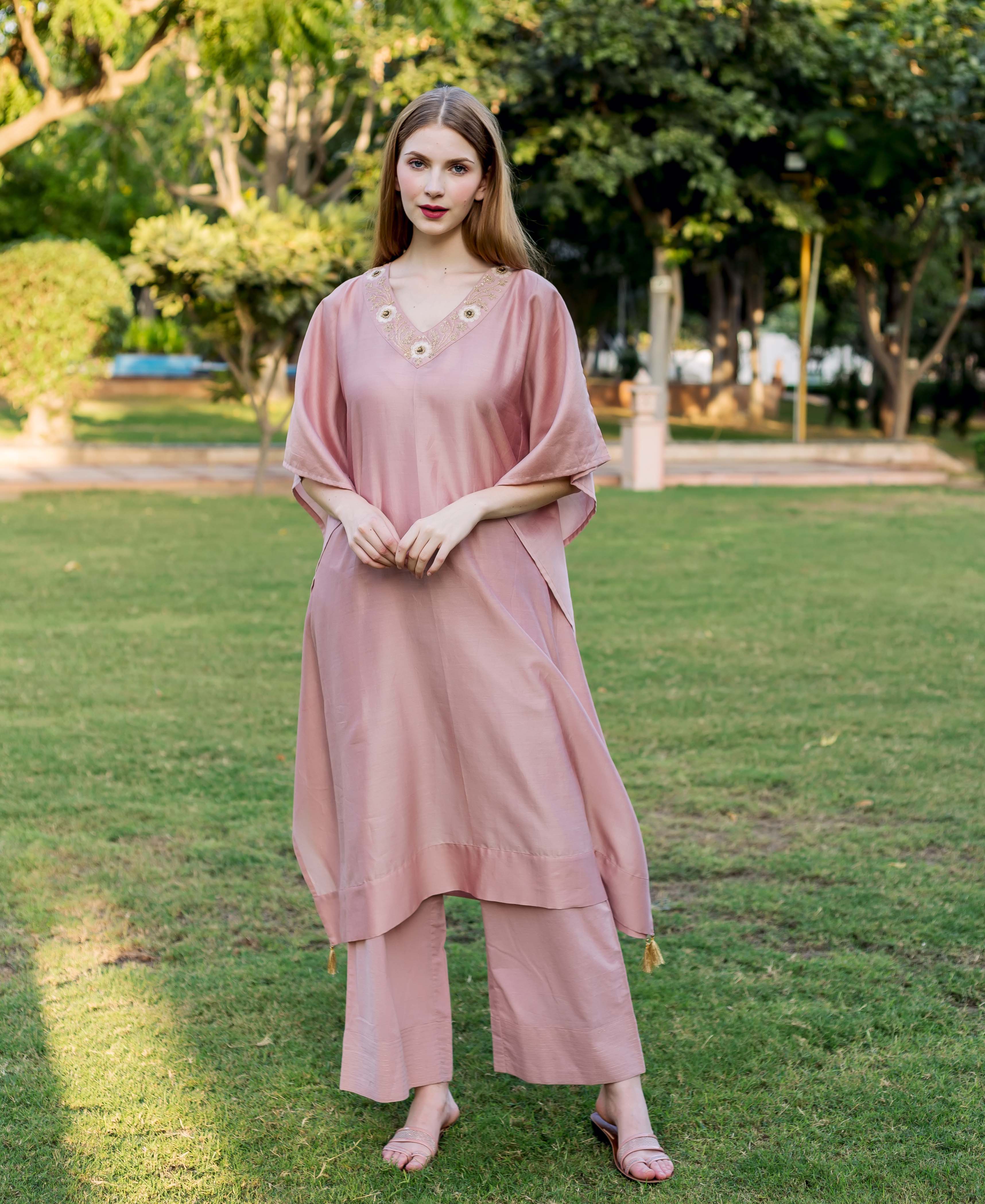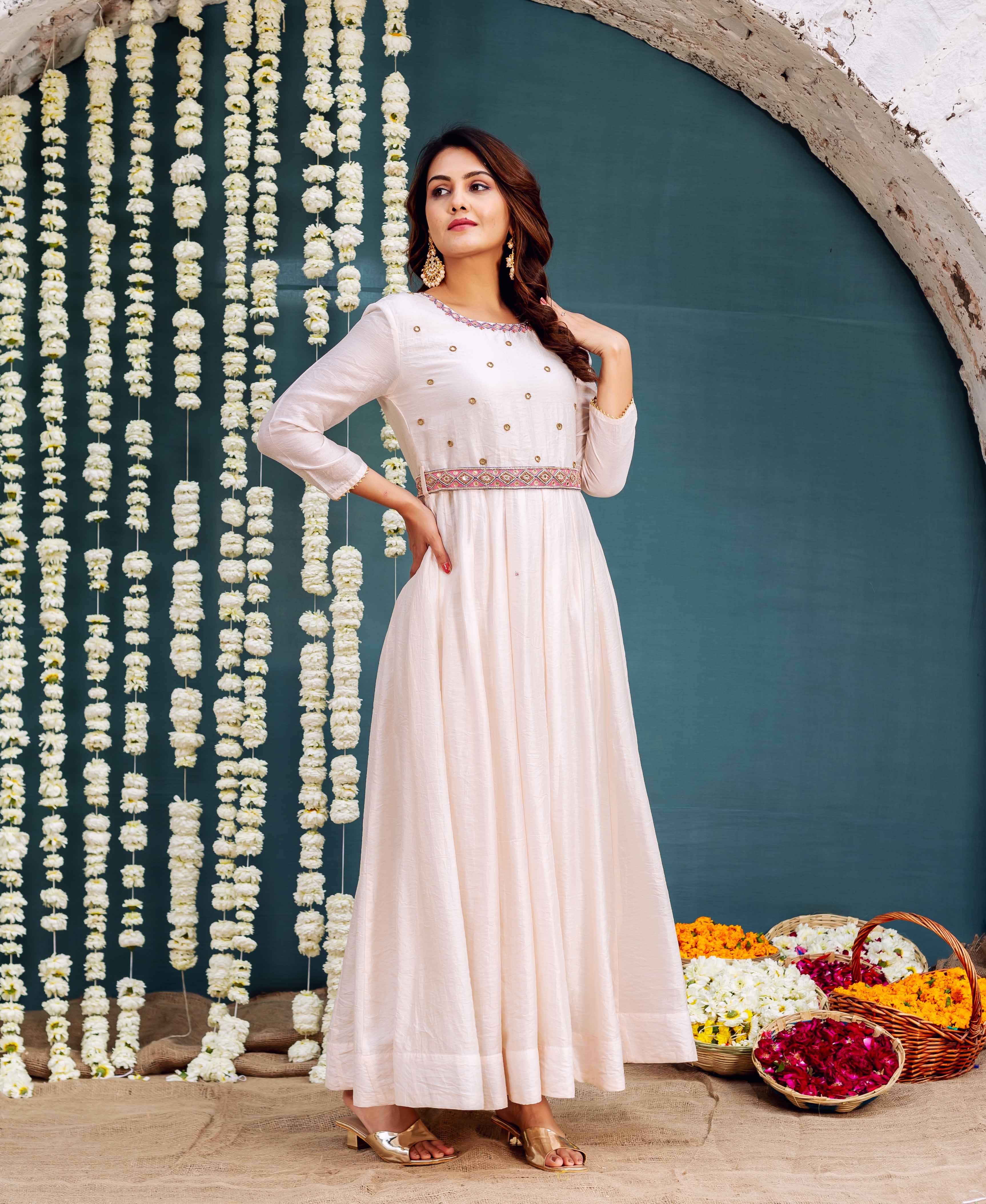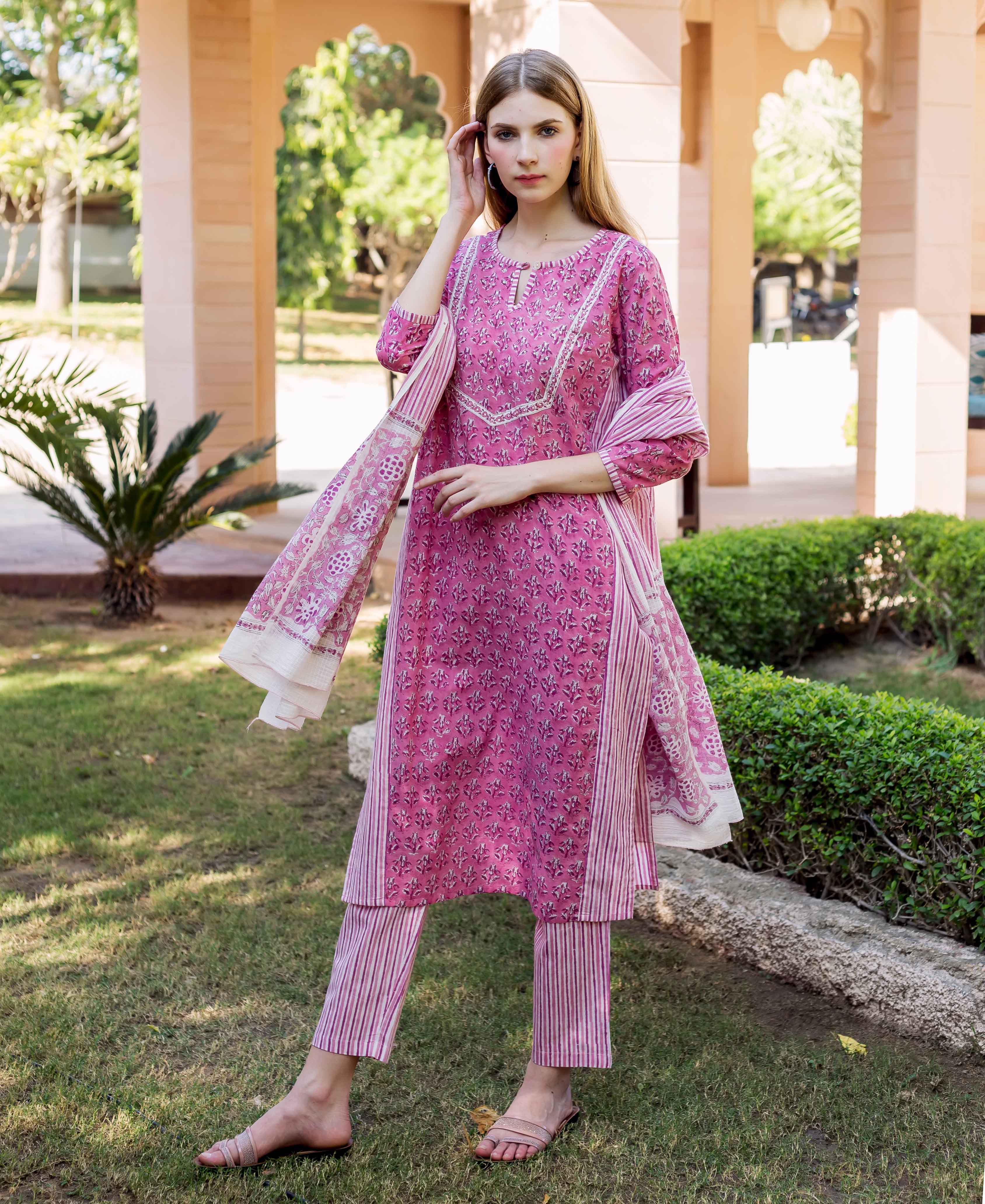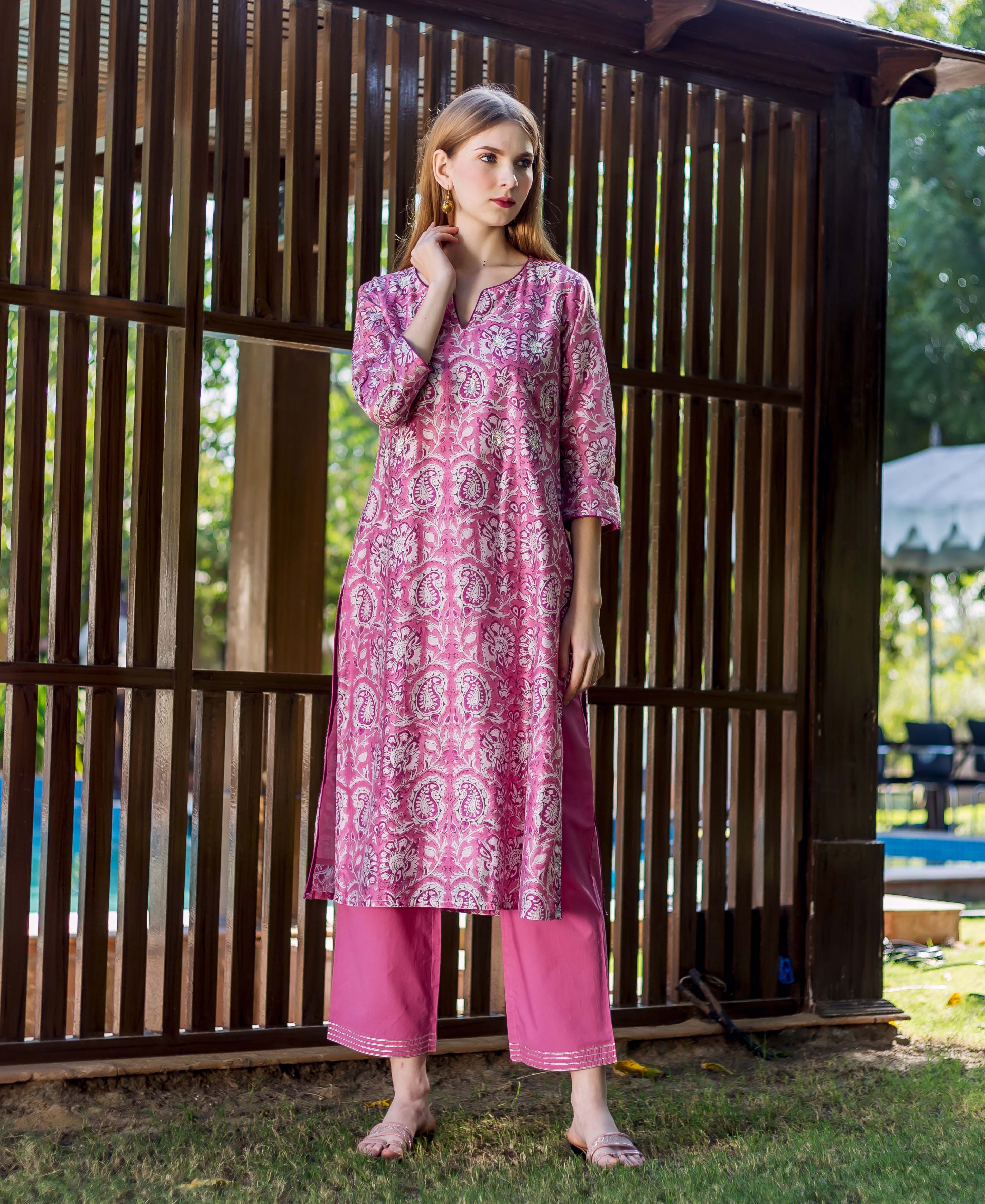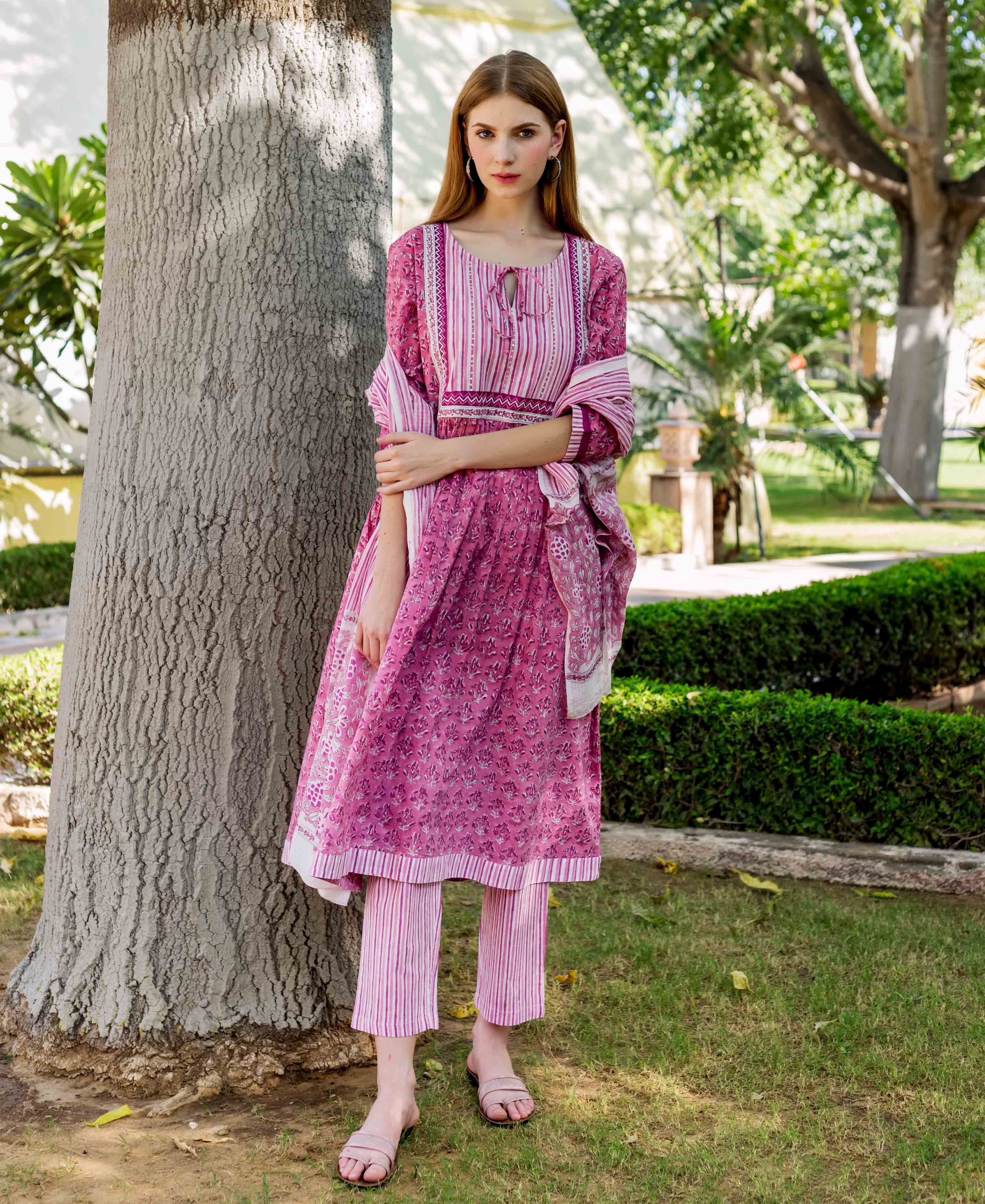Eshika Raspberry Pink Embroidered Chanderi Dress