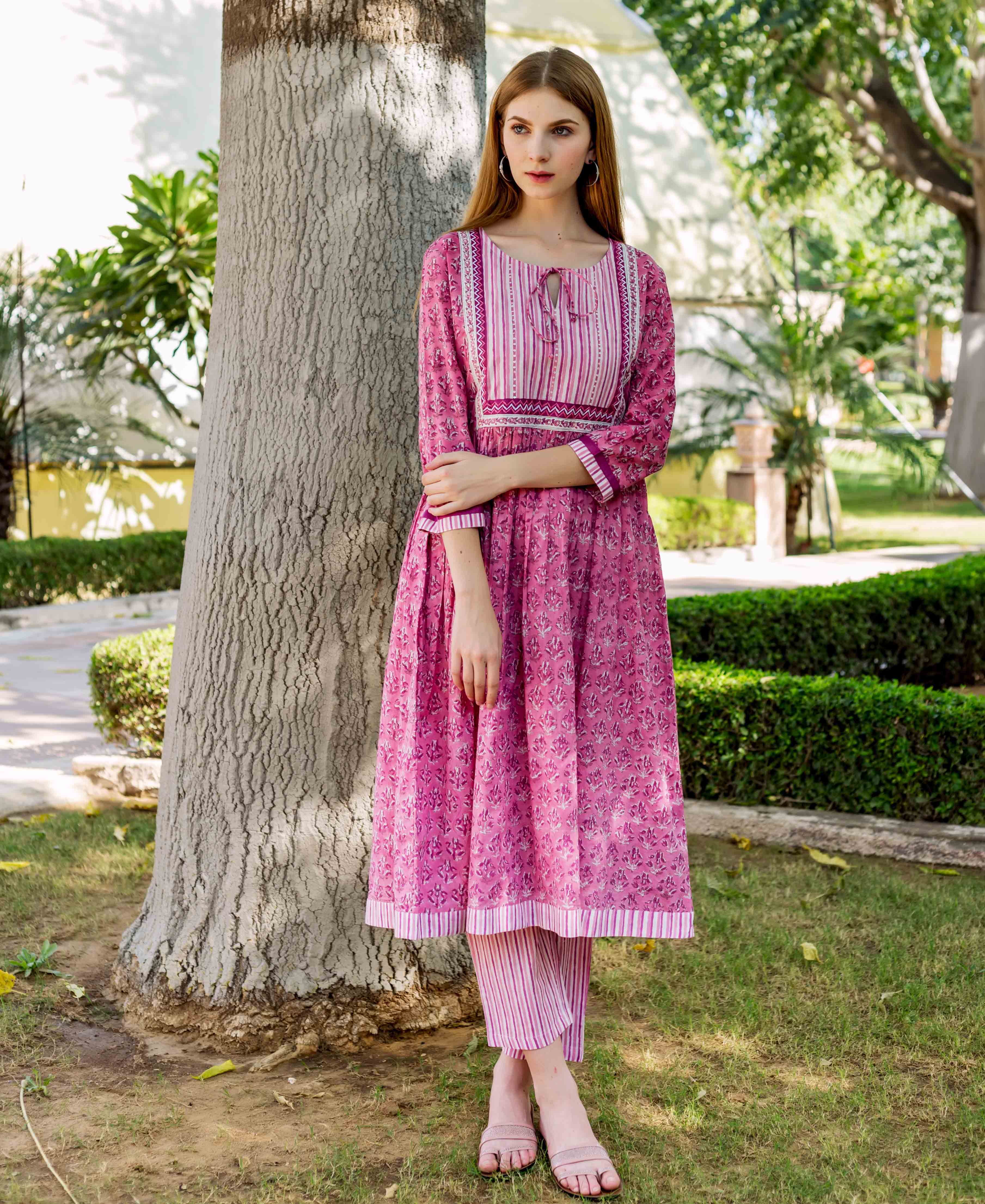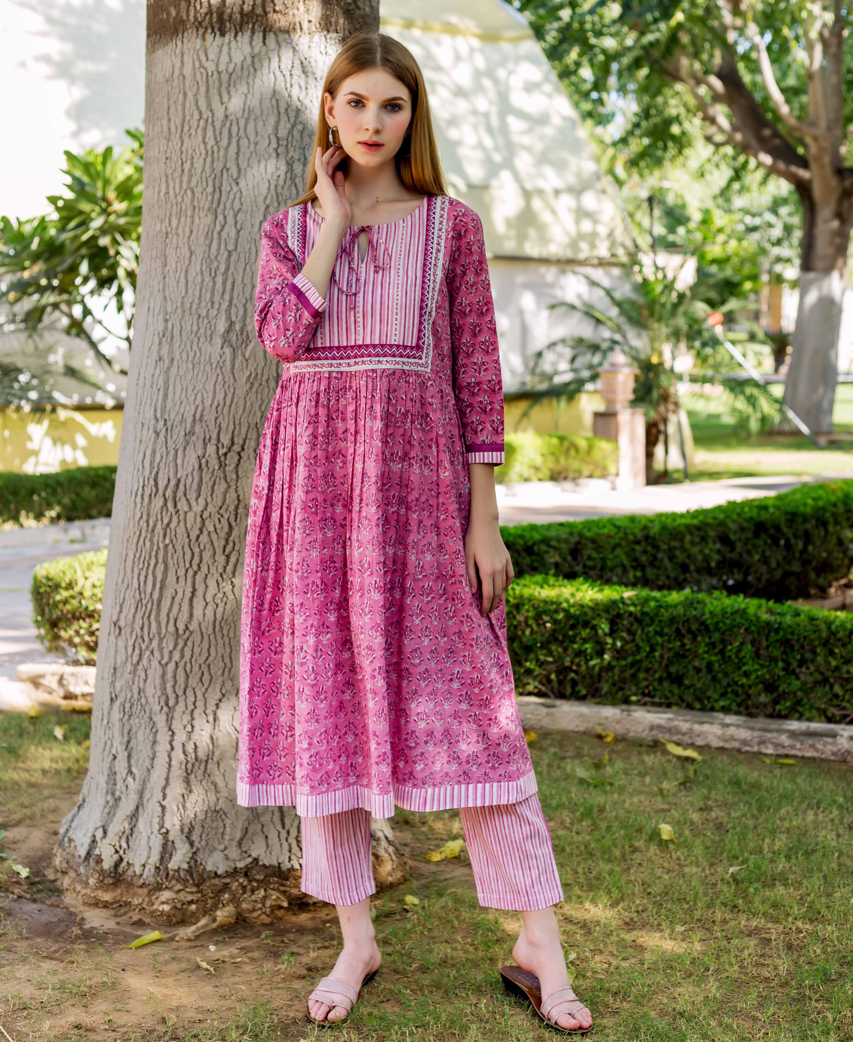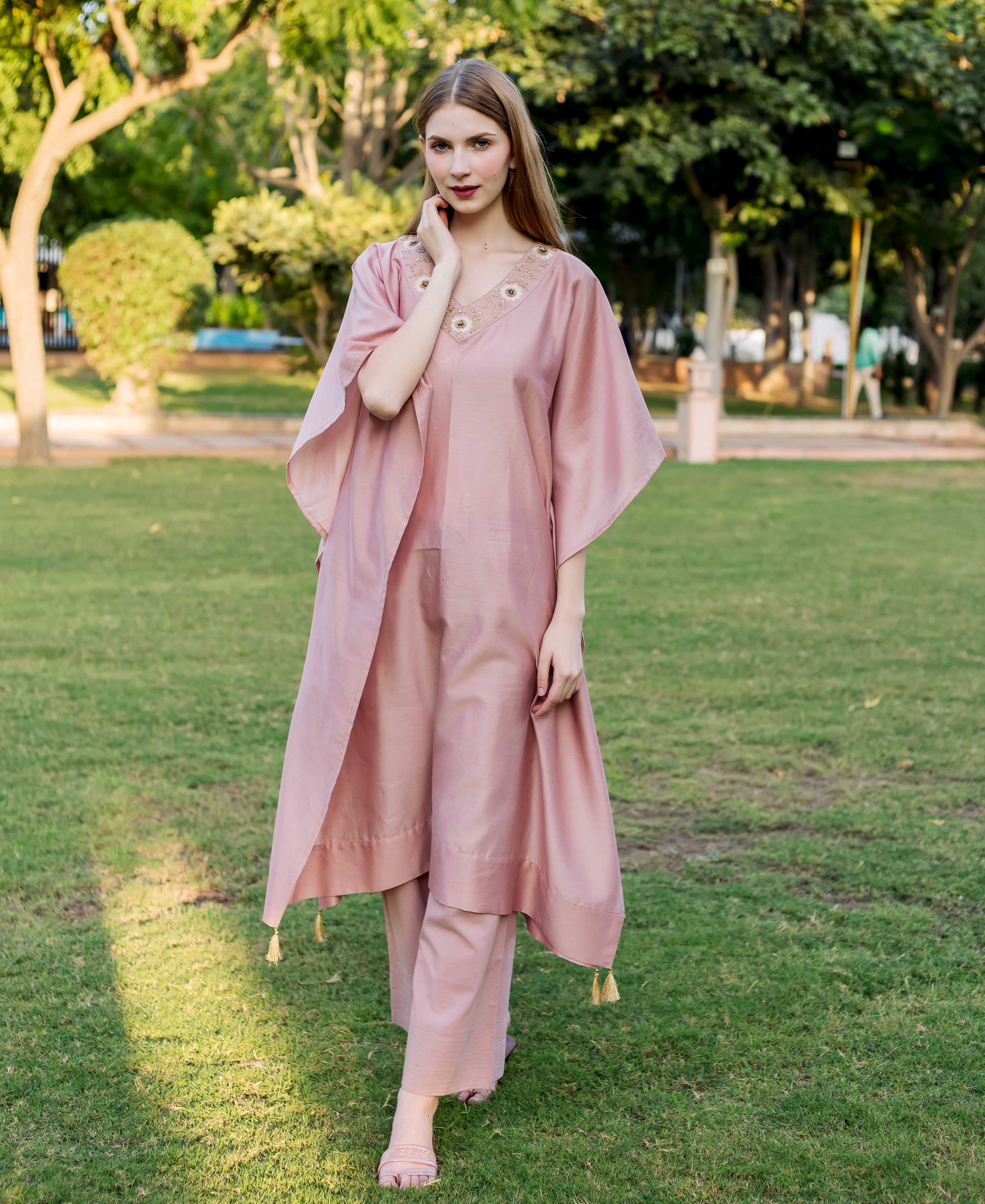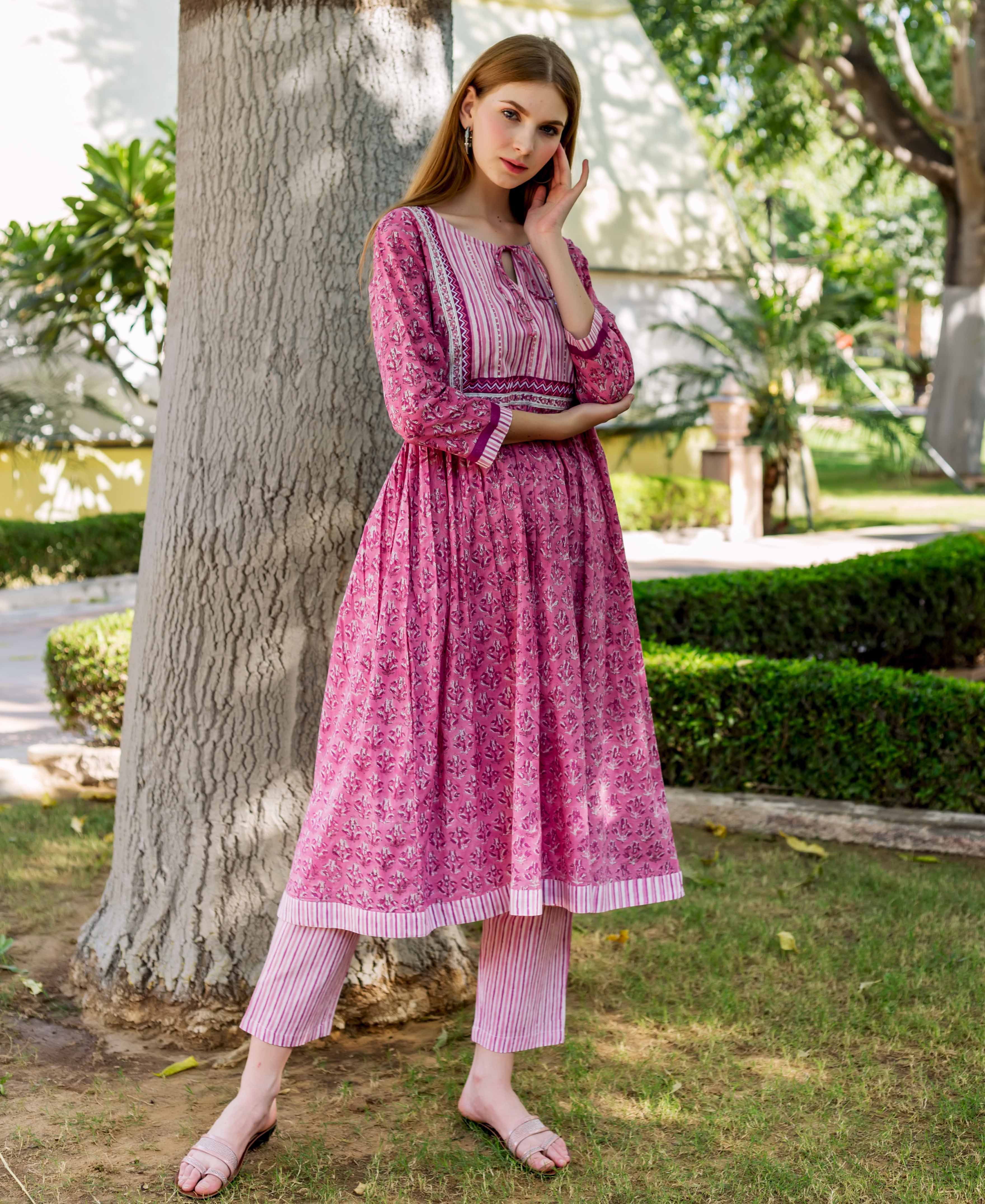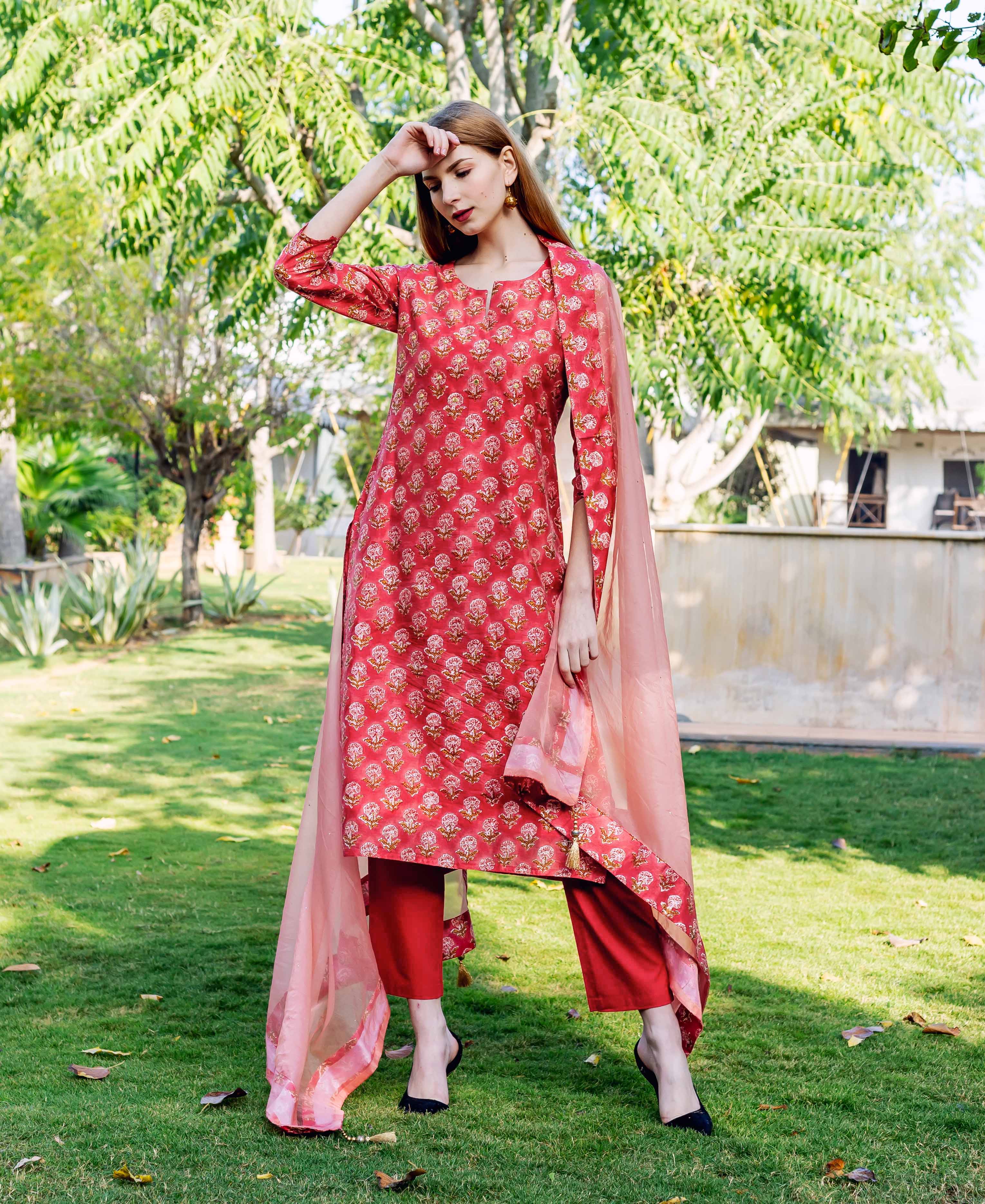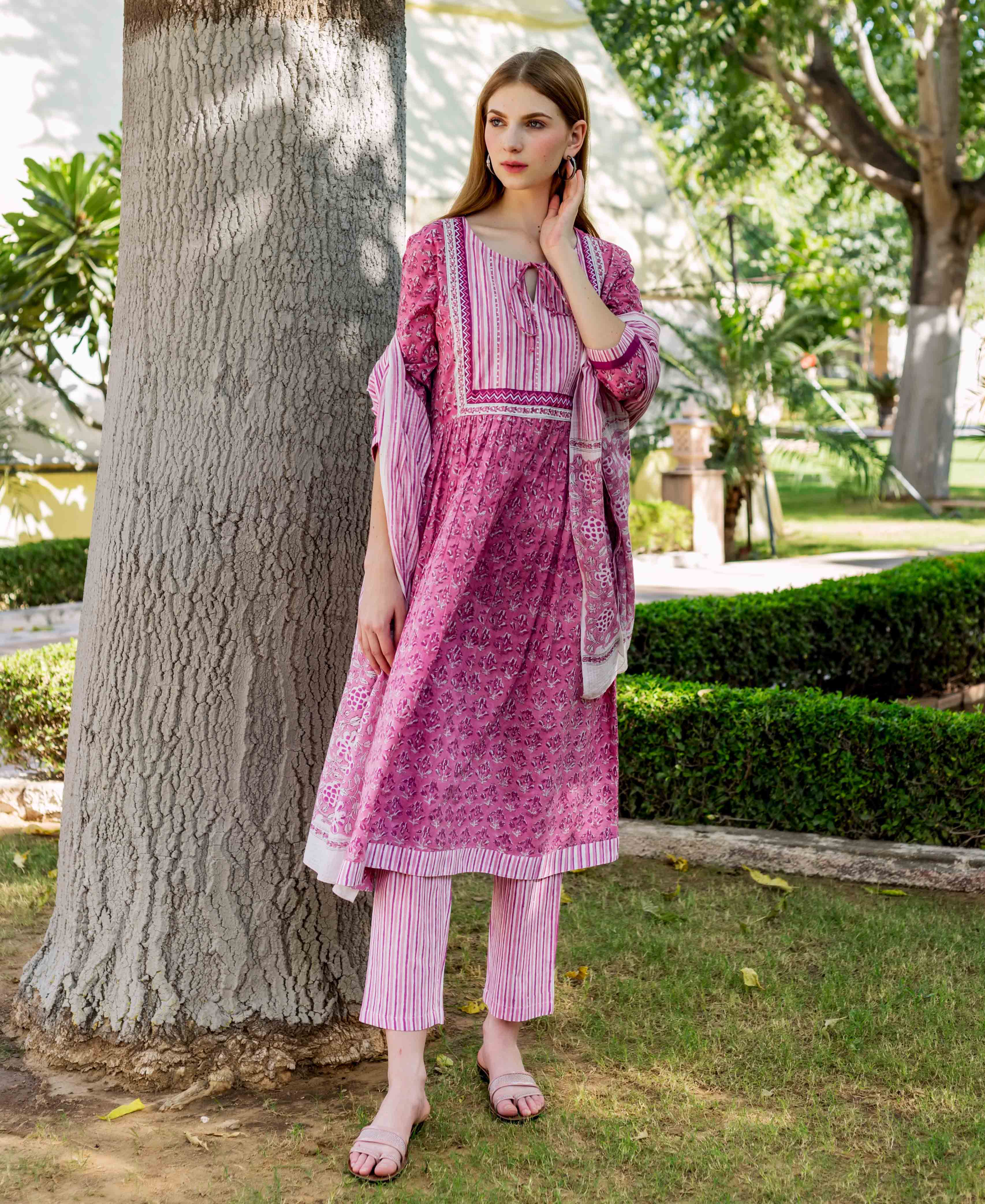 Eshika Raspberry Pink Embroidered Chanderi Dress